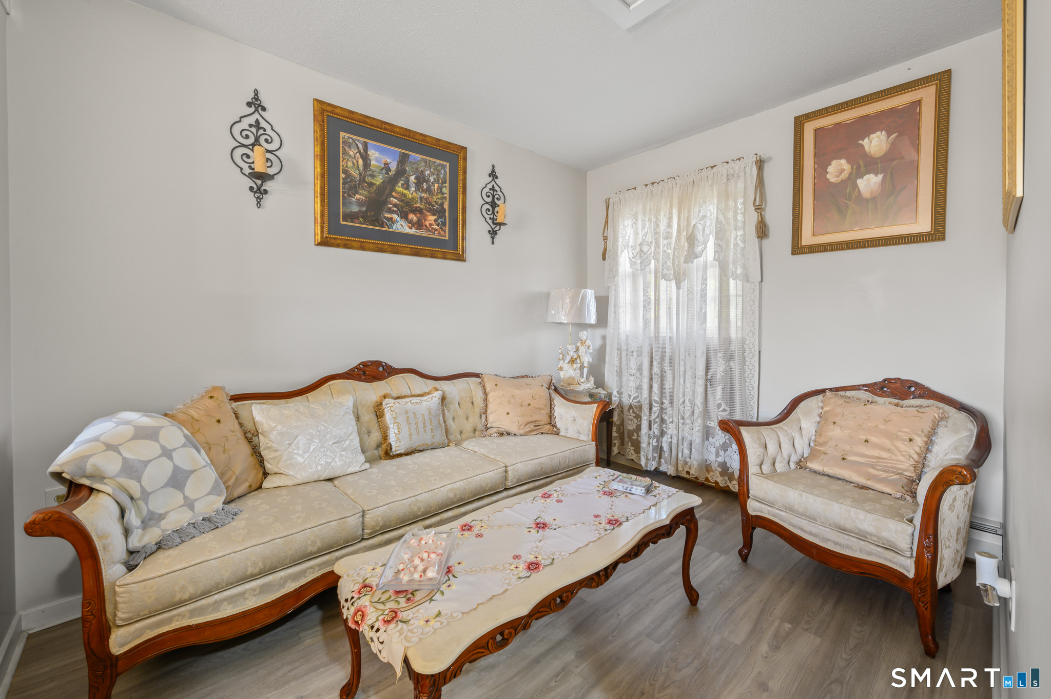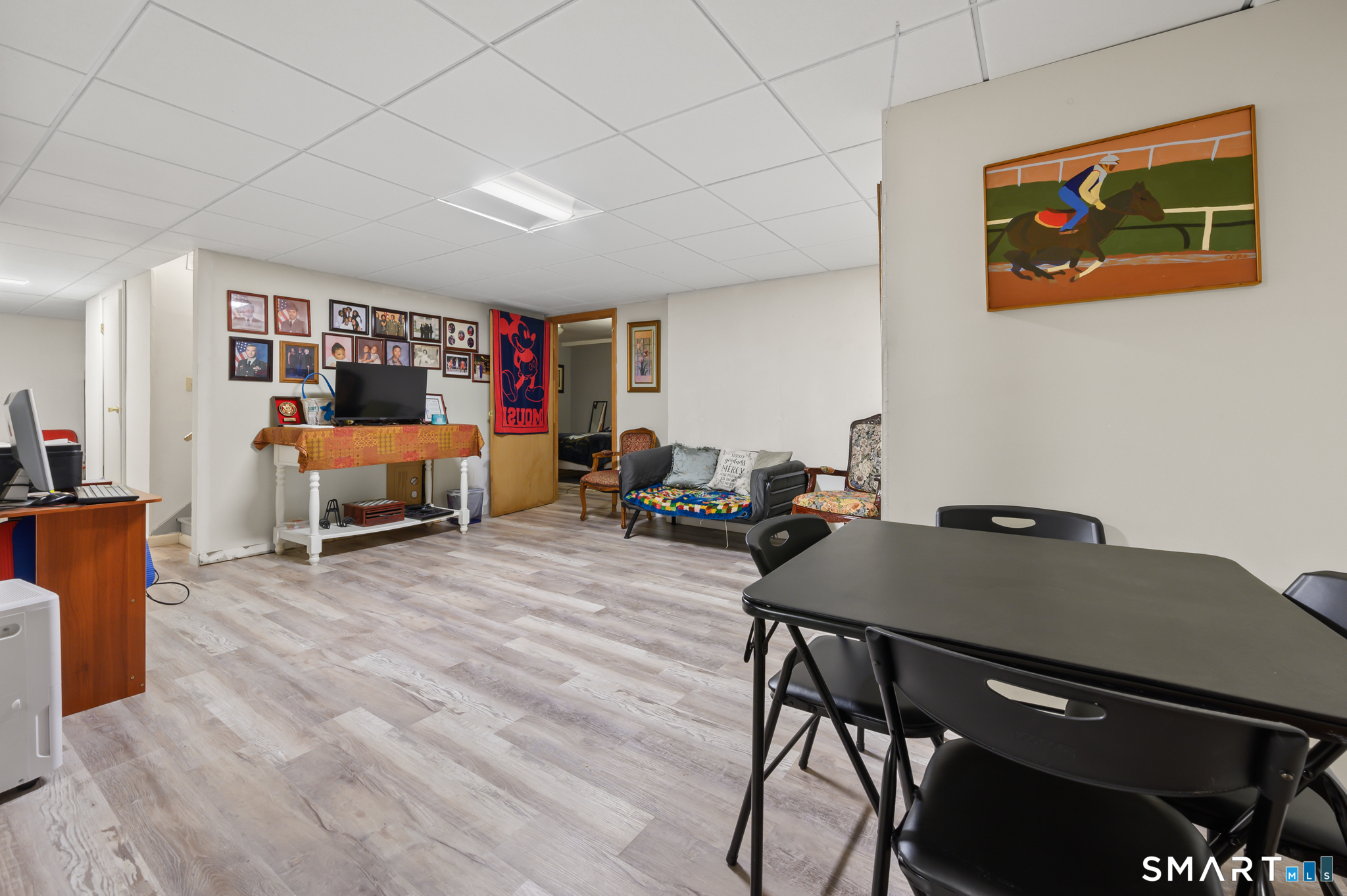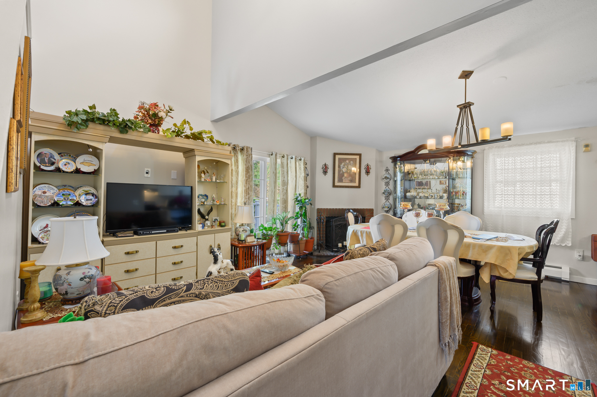 Welcome to 10 Linden Court. This stunning end unit townhouse is located in desirable Mills Pond. Spacious open floor plan features a living room with cathedral ceiling, fireplace, and slider to a private deck, perfect for an evening cocktail or entertaining. Hardwood floors flow through the main living and dining areas. The white kitchen offers a large island with seating, stainless steel appliances, gas stove, and pantry closet. This home offers true one floor living. The first floor includes a master suite with walk-in closet, full bath and convenient first-floor laundry. Upstairs, a versatile loft with luxury vinyl plank flooring and an updated half bath provides ideal space for a home office, guest area or den. The lower lever with 2 finished rooms and full bath can be used as a workout space, family room, or an additional bedroom. Other features include an attached one-car garage, gas heat, and gas hot water. Unit is located at the end of a cul-de-sac. Complex hosts an inground pool, basketball court and more. Located on the Bloomfield/Simsbury line, less than 5 miles to I-91 and less than 20 minutes to Bradley Airport. Do not miss out on this one, come see it today!