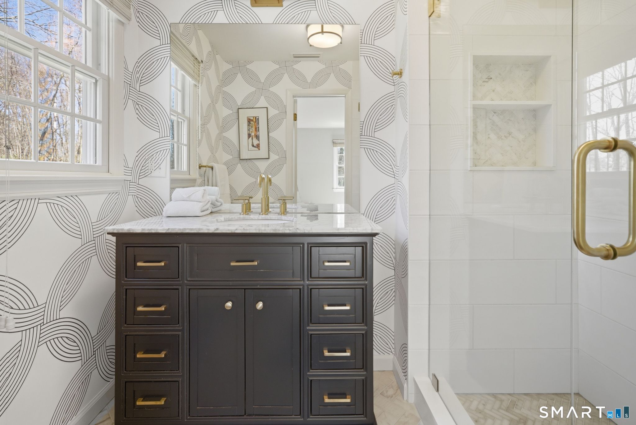 Set along a storybook private drive, where a gently winding brook passes beneath charming stone bridges, this is a home defined as much by its setting as by the way it lives. There's a quiet magic here-a sense of privacy and calm that feels rare, yet a warmth that makes it easy to imagine putting down roots and staying awhile. Inside, the home unfolds with an easy, natural flow. The spaces are generous without excess, designed for real living and the moments that shape it. The kitchen and great room come together as the heart of the home-open, inviting, and filled with light-where everyday routines and gatherings blend seamlessly. Cathedral ceilings and a wood-burning fireplace add both scale and comfort, creating a place that feels equally suited for slow mornings and full evenings. Thoughtful flexibility is woven throughout, with spaces to work, create, and grow, along with a finished lower level that adapts as life evolves. Upstairs, the primary suite offers a sense of retreat, set apart for quiet and privacy, while several additional bedrooms provide room to expand, host, and settle in. Outdoors, the property invites a slower pace. Dining on the deck, tending to a garden, or simply enjoying the open yard feels effortless, with the soft sound of the brook never far away. Here, privacy and connection coexist-tucked away in a setting that feels like its own small world, yet just minutes from town, train, and shoreline. A place to grow into, and a place to stay.