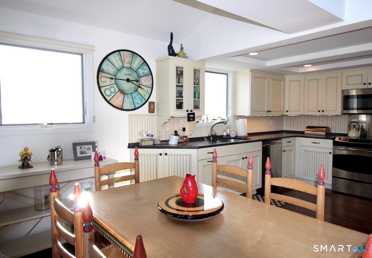 Work from the beach in June in this central air-conditioned beach home!!! Three bedrooms on three different floors. Fully furnished air conditioned spectacular contemporary with gorgeous views from 3 decks to beach across the street and four houses down from private beach available for 2 week rental...Saturday June 13th to Saturday June 27st. $5000 for those 2 weeks...No one week rentals. Enjoy 2 weeks in this beautiful bright air conditioned home in Pilots Point Beach Association. Start the day with a walk along the beach, shore road or by the marina. Each of the three bedrooms with queen size beds is on a separate floors for privacy. There are 2 full bathrooms, one with shower and the other with tub/shower combination, and one half bath. Lots of drawers and closet space to unpack and make yourself at home. Sunrise and sunsets are beautiful from the three decks. There is dining in the marina, BBQ at the town beach right down the road and many restaurants nearby as well as shops and outlet stores. Beach access is two houses down and four houses to the main private beach. WiFi and cable TV provided. Credit and background check, security deposit and cleaning charge. No smoking. No pets. Owner/Agent.