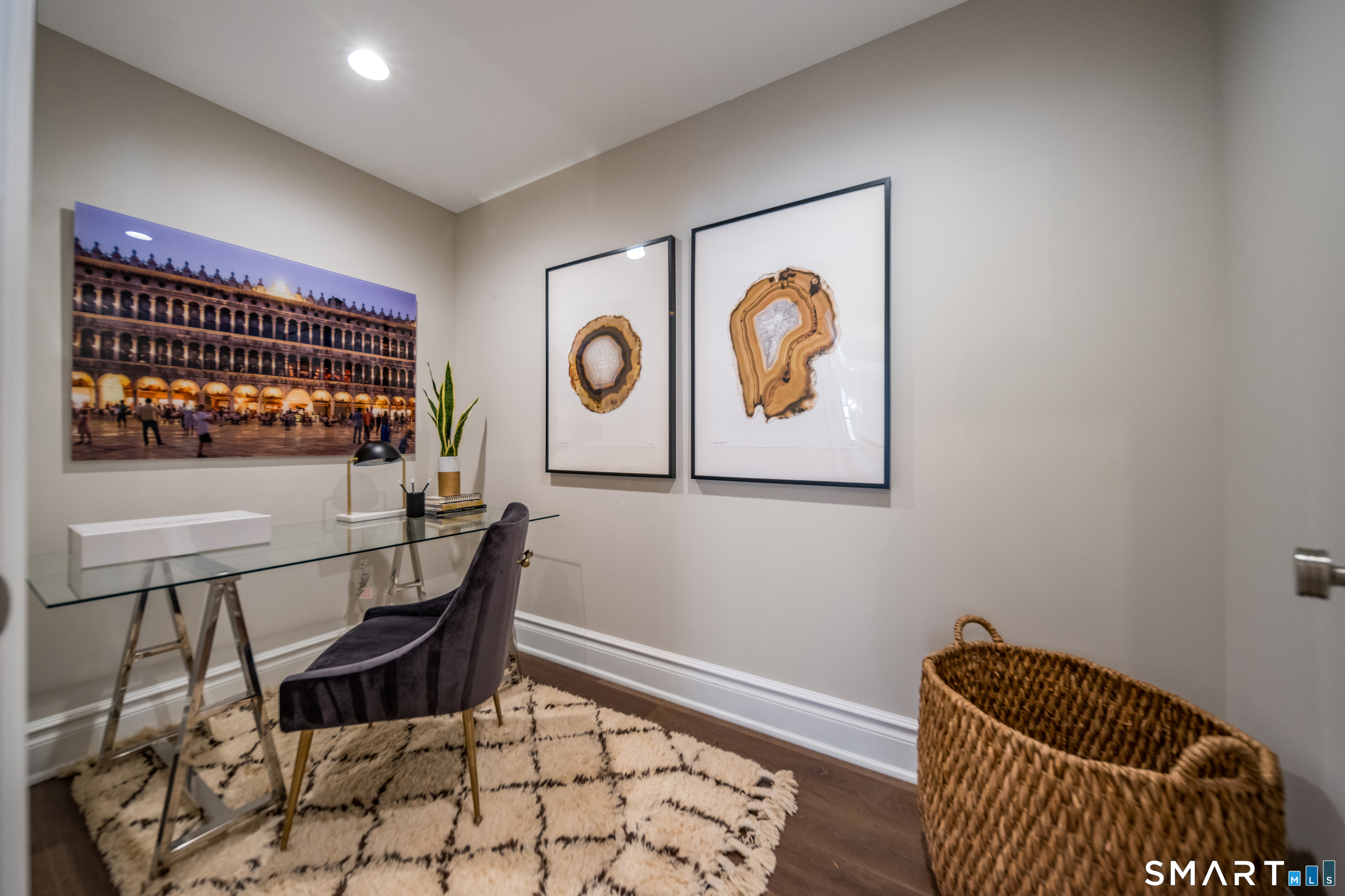 The Residences at 66 High Street provide a unique offering. An enclave of luxury condominiums. A private, peaceful setting overlooking the salt marsh and Long Island Sound, yet just a few blocks from the picturesque Guilford Green, the town center, and all the activity it has to offer. This immaculate first floor single level unit is in the Chittenden Building, finished in 2023. Light streams in. Striking spaces, soaring windows, high ceilings, and fine details, moldings, and trim. The open floor plan connects the living/dining/kitchen areas. A gas fireplace provides a focal point at one end, the clean design of the kitchen space at the other. French doors open to a covered patio. Two spacious bedrooms and a dedicated office space. The primary suite features a large walk-in closet and bathroom with an oversized, glass doored, shower. Amenities include underground parking, an inground pool, a fitness room, and a dog park. From 66 High, just a few minutes from shopping, restaurants, the town beach, the train station, and commuting routes. And Guilford is a few hours from Boston and New York City.