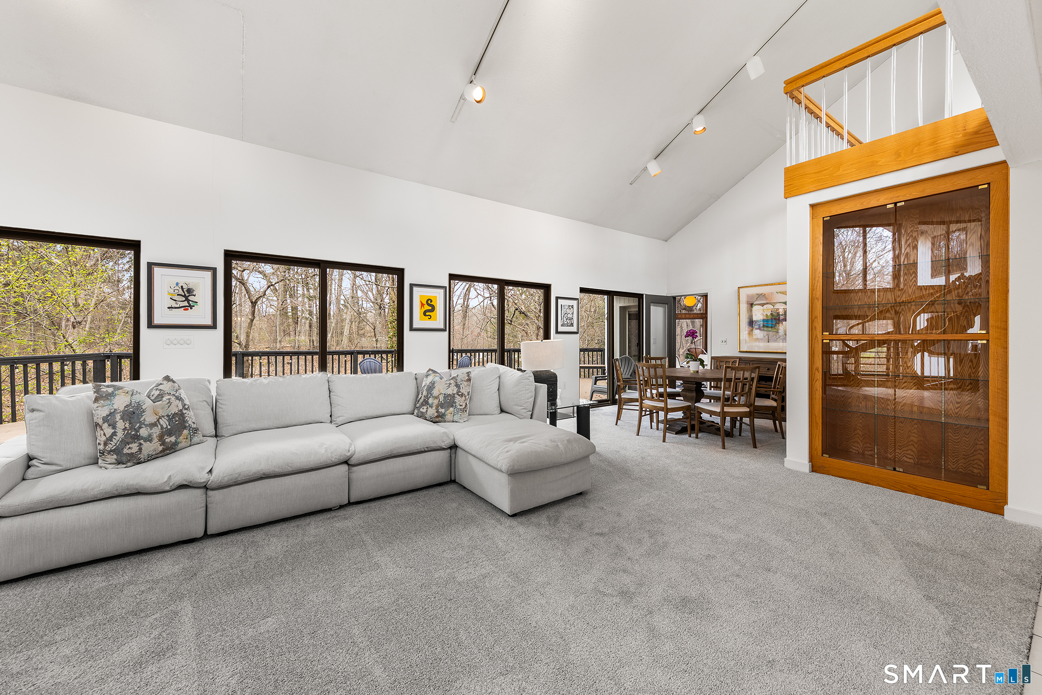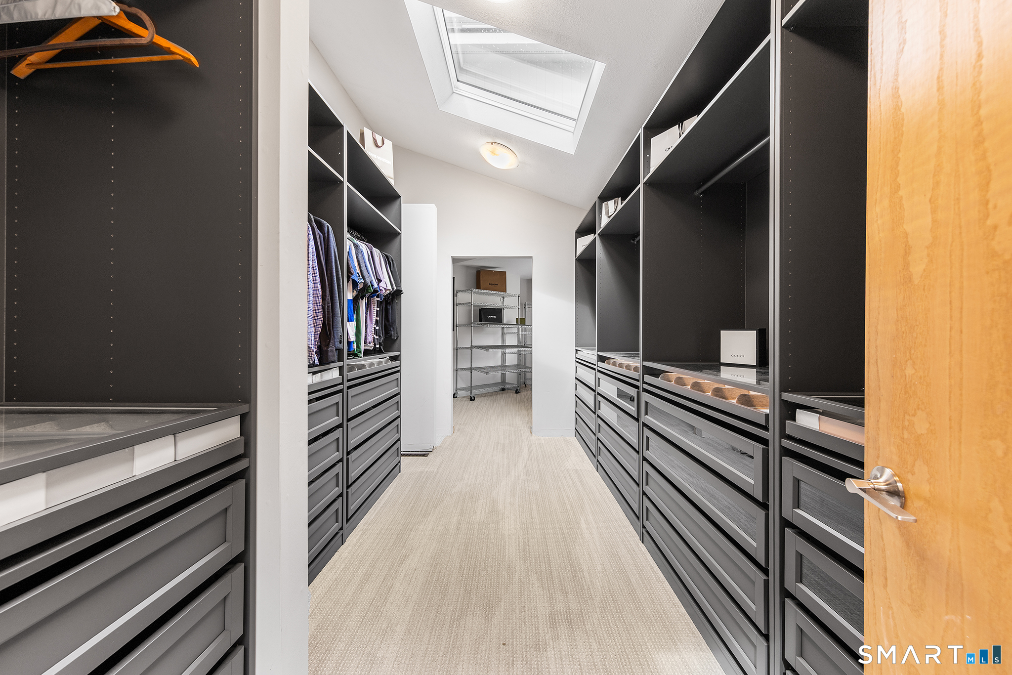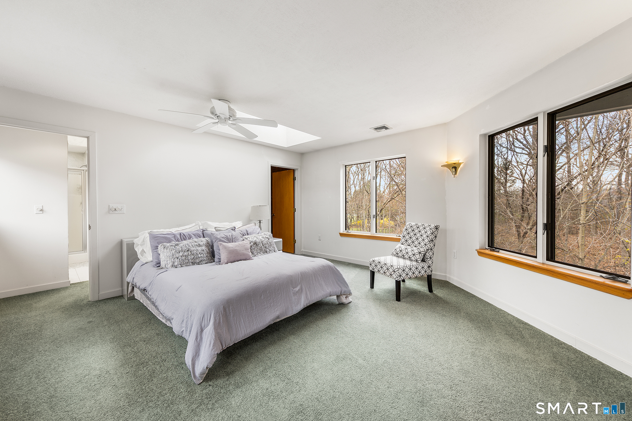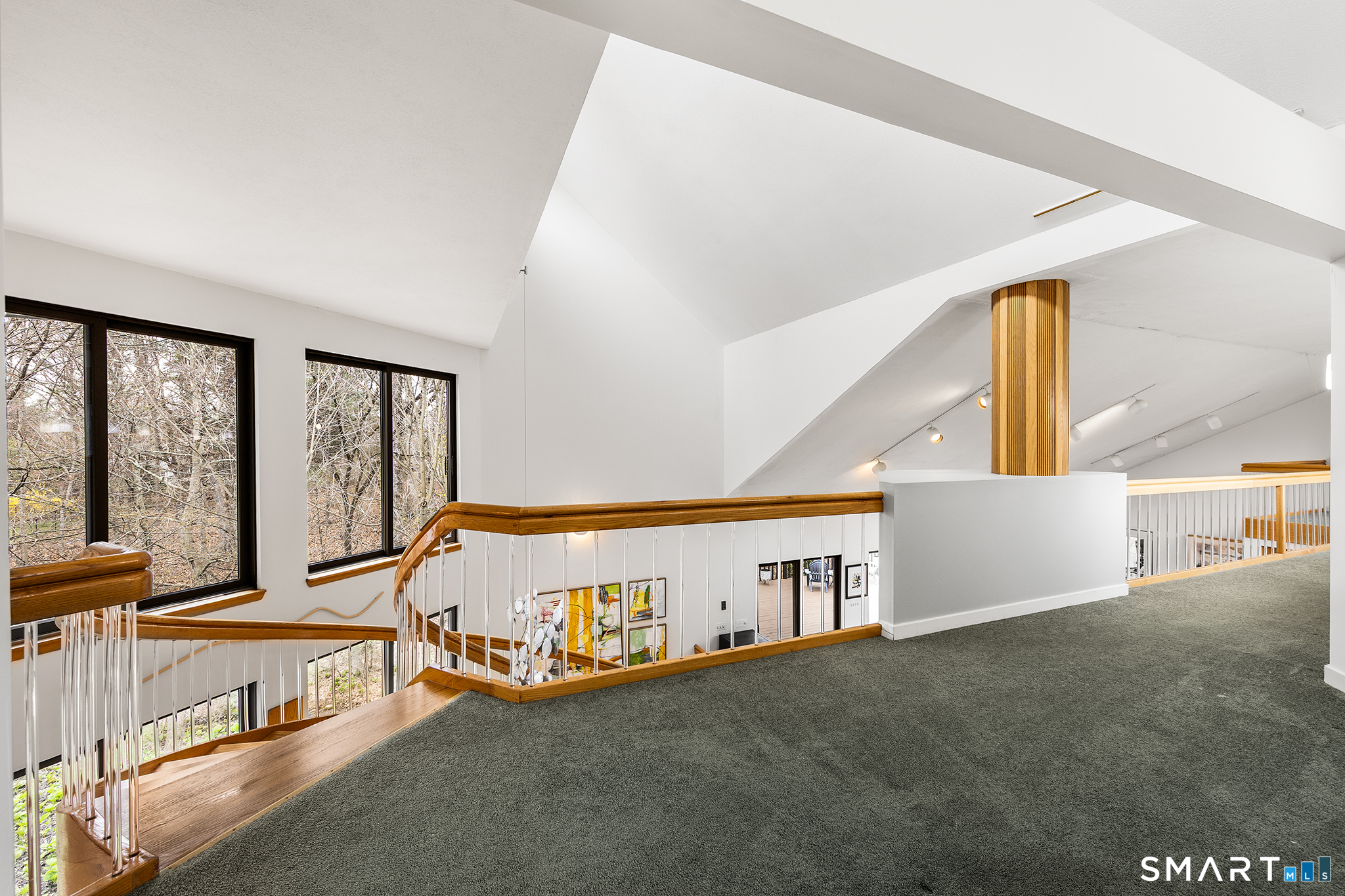 The spectacular awaits in Cheshire - welcome to 25 Surrey Drive! This one-of-a-kind bespoke architectural masterpiece perfectly blends cosmopolitan design with a tranquil brook-side setting, creating a truly livable work of art. Inside, the dramatic, sculptural staircase immediately commands your attention, spanning 3 levels of striking proportions & walls of glass. The main level features soaring ceilings & a grand open concept layout tailormade for hosting. The chic kitchen anchors the space with a large granite island, double oven, & tremendous storage including a double refrigerator set-up & beverage cooler. Seamless indoor outdoor flow with multiple sliders from the living/dining area to a massive entertaining deck & stunning vaulted ceiling screened sun room for quiet relaxation. Single level living is a breeze with a capacious first floor primary suite that is a continent unto itself. The palatial full marble bath features a soaking tub, XL shower, dual vanities, & a separate laundry room for convenience. The DREAM skylit walk-in closet challenges even the most dedicated fashionistas to fill its seemingly endless racks & soft-close drawers. A sunny office or dressing room rounds out the suite. Upstairs, there's a 2nd full suite w cedar WIC & double vanity ensuite. The sensational 50' loft is the ultimate gallery, library, studio or lounge space - a rare vibe-setting find!