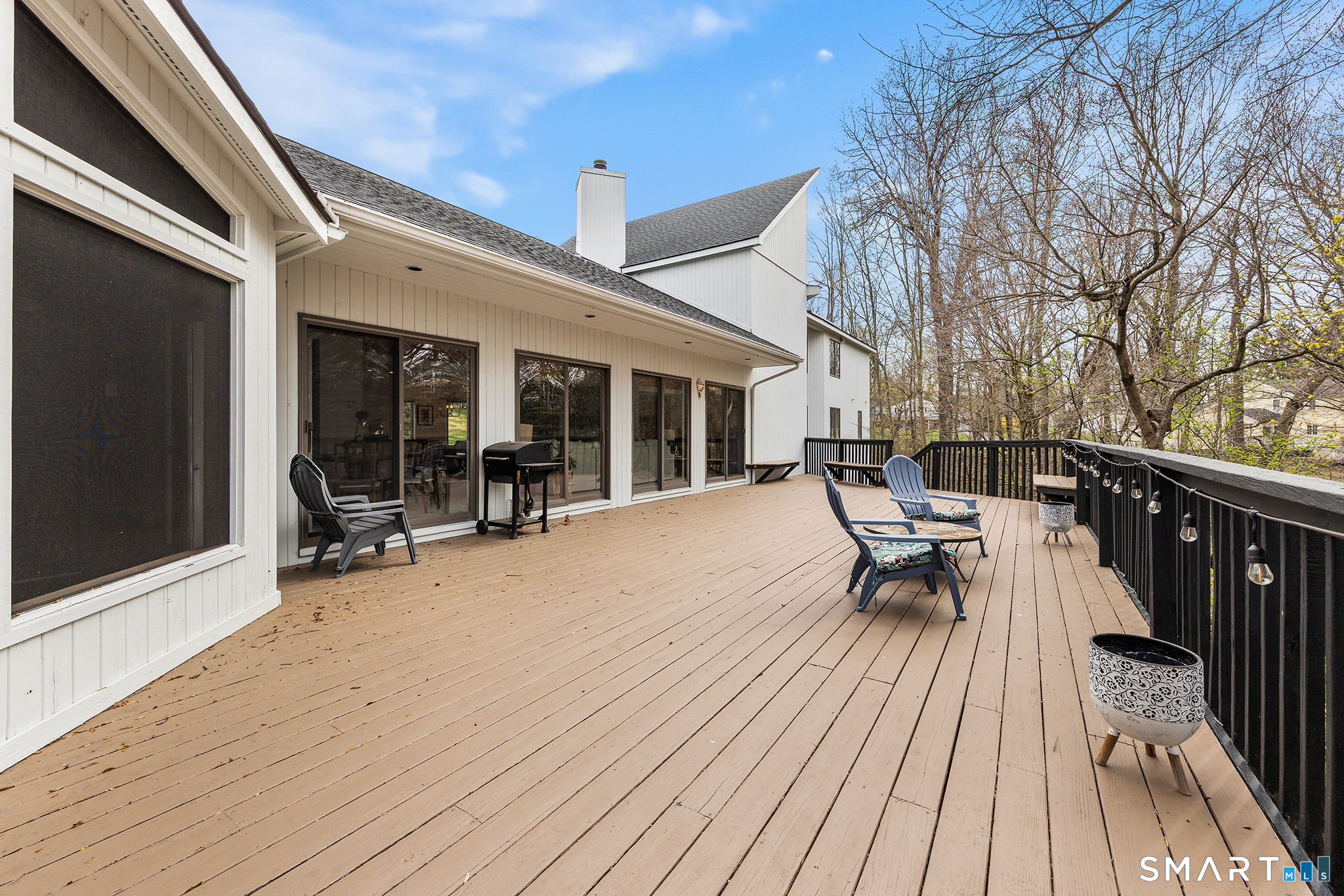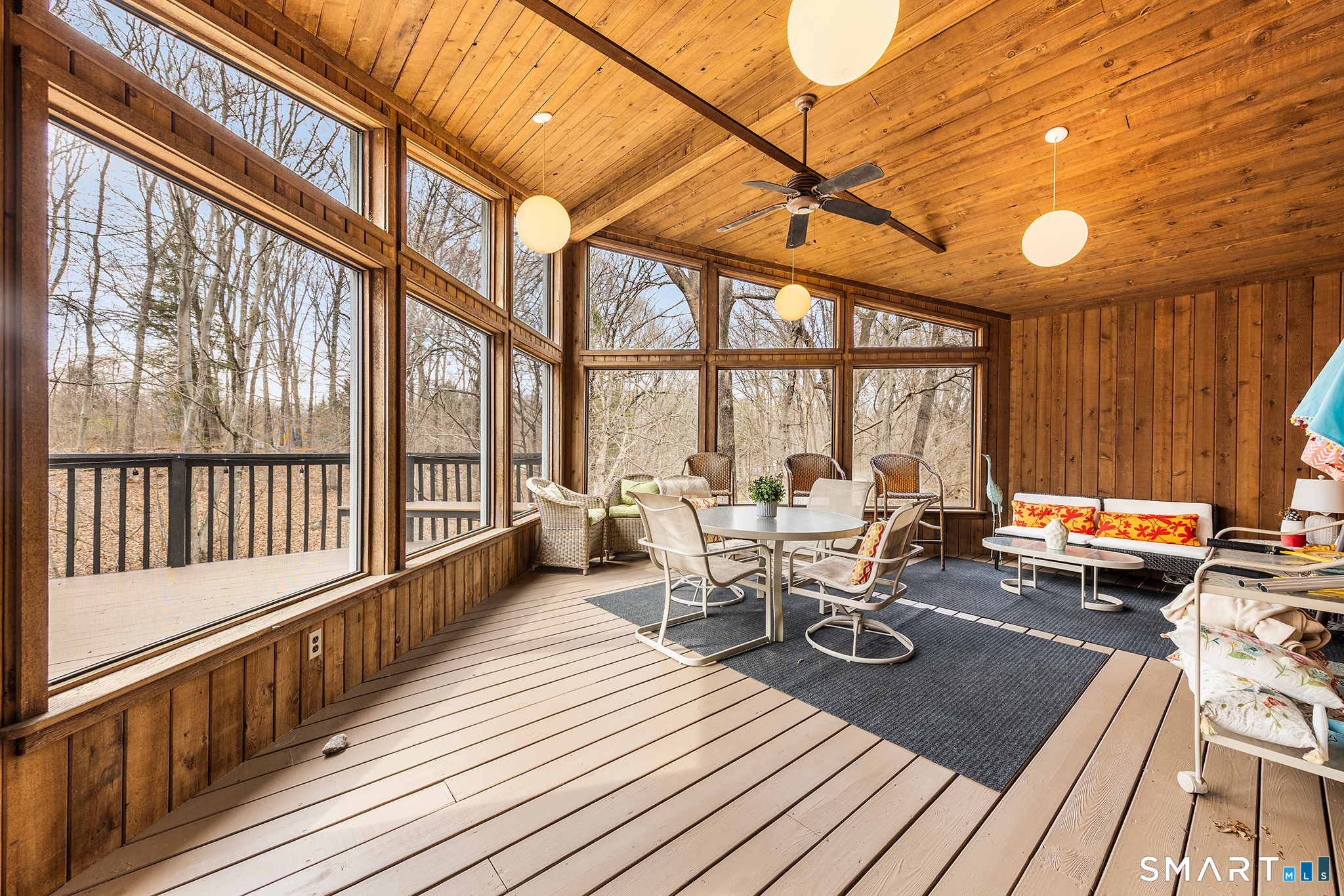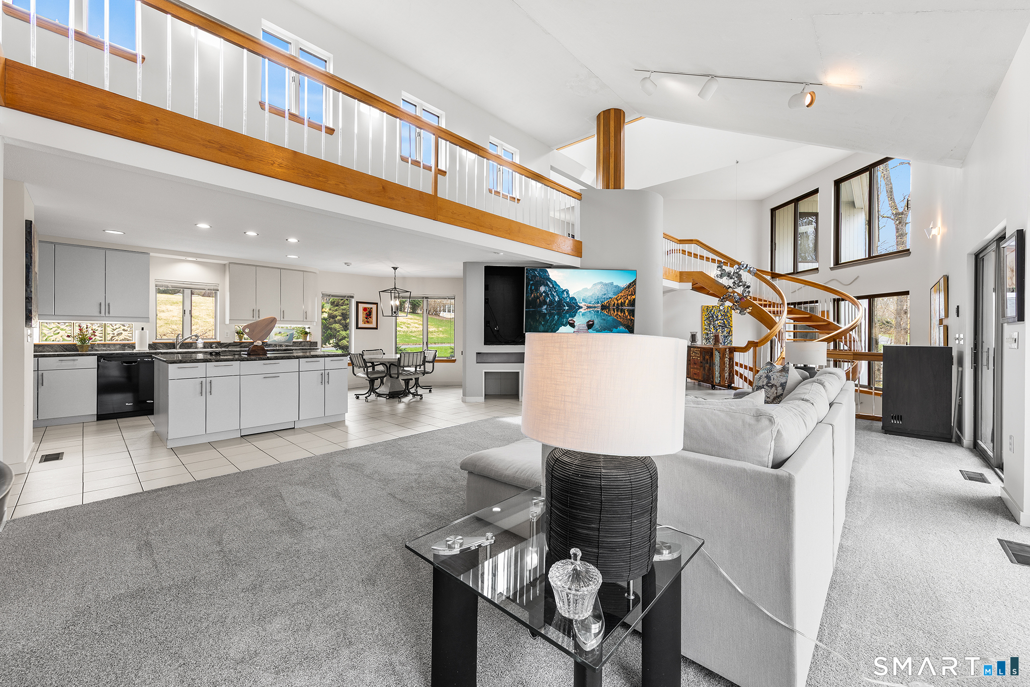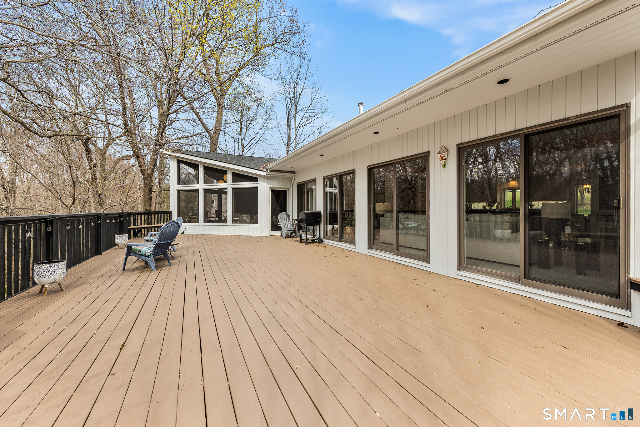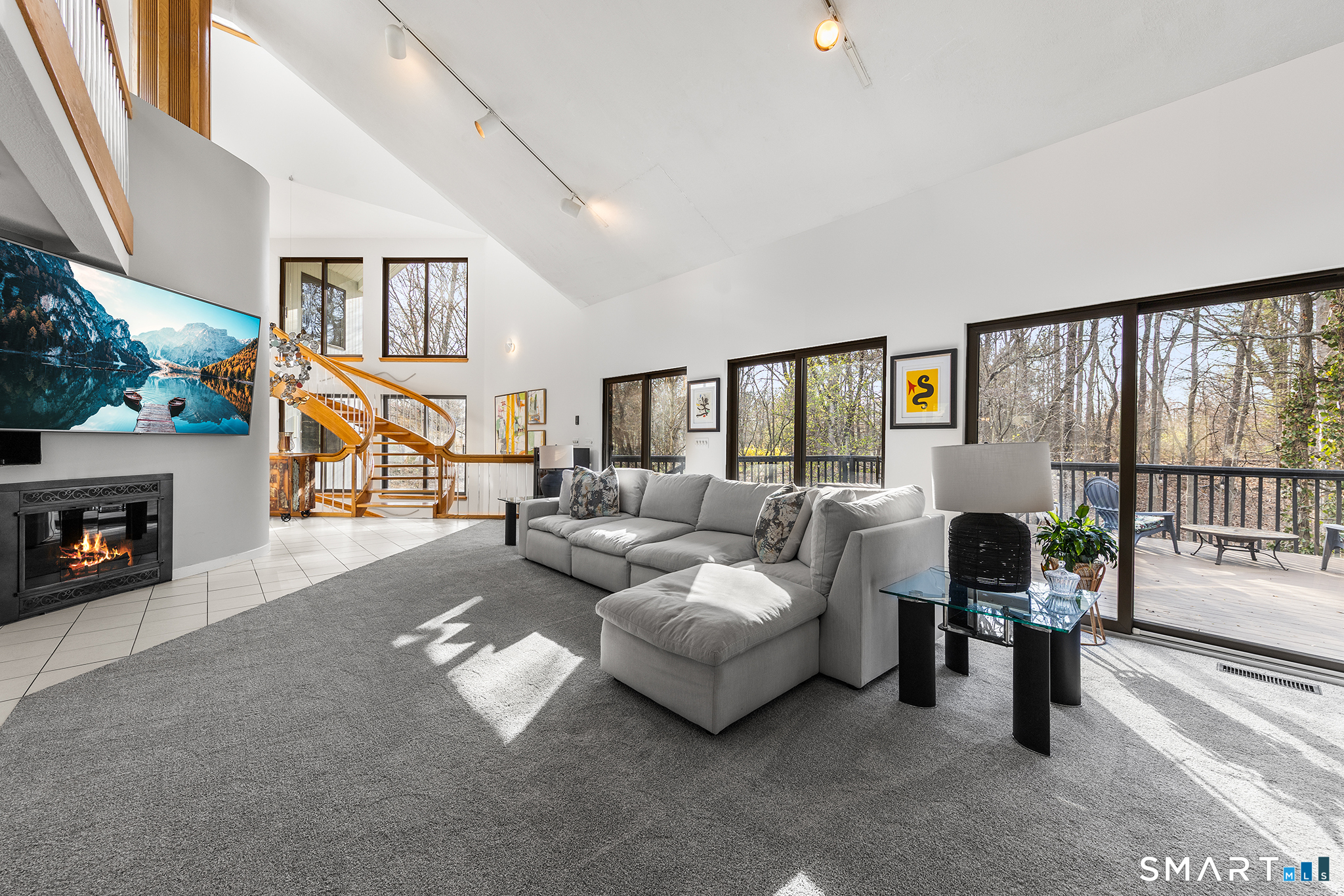 The spectacular awaits in Cheshire - welcome to 25 Surrey Drive! This one-of-a-kind bespoke architectural masterpiece perfectly blends cosmopolitan design with a tranquil brook-side setting, creating a truly livable work of art. Inside, the dramatic, sculptural staircase immediately commands your attention, spanning 3 levels of striking proportions & walls of glass. The main level features soaring ceilings & a grand open concept layout tailormade for hosting. The chic kitchen anchors the space with a large granite island, double oven, & tremendous storage including a double refrigerator set-up & beverage cooler. Seamless indoor outdoor flow with multiple sliders from the living/dining area to a massive entertaining deck & stunning vaulted ceiling screened sun room for quiet relaxation. Single level living is a breeze with a capacious first floor primary suite that is a continent unto itself. The palatial full marble bath features a soaking tub, XL shower, dual vanities, & a separate laundry room for convenience. The DREAM skylit walk-in closet challenges even the most dedicated fashionistas to fill its seemingly endless racks & soft-close drawers. A sunny office or dressing room rounds out the suite. Upstairs, there's a 2nd full suite w cedar WIC & double vanity ensuite. The sensational 50' loft is the ultimate gallery, library, studio or lounge space - a rare vibe-setting find!