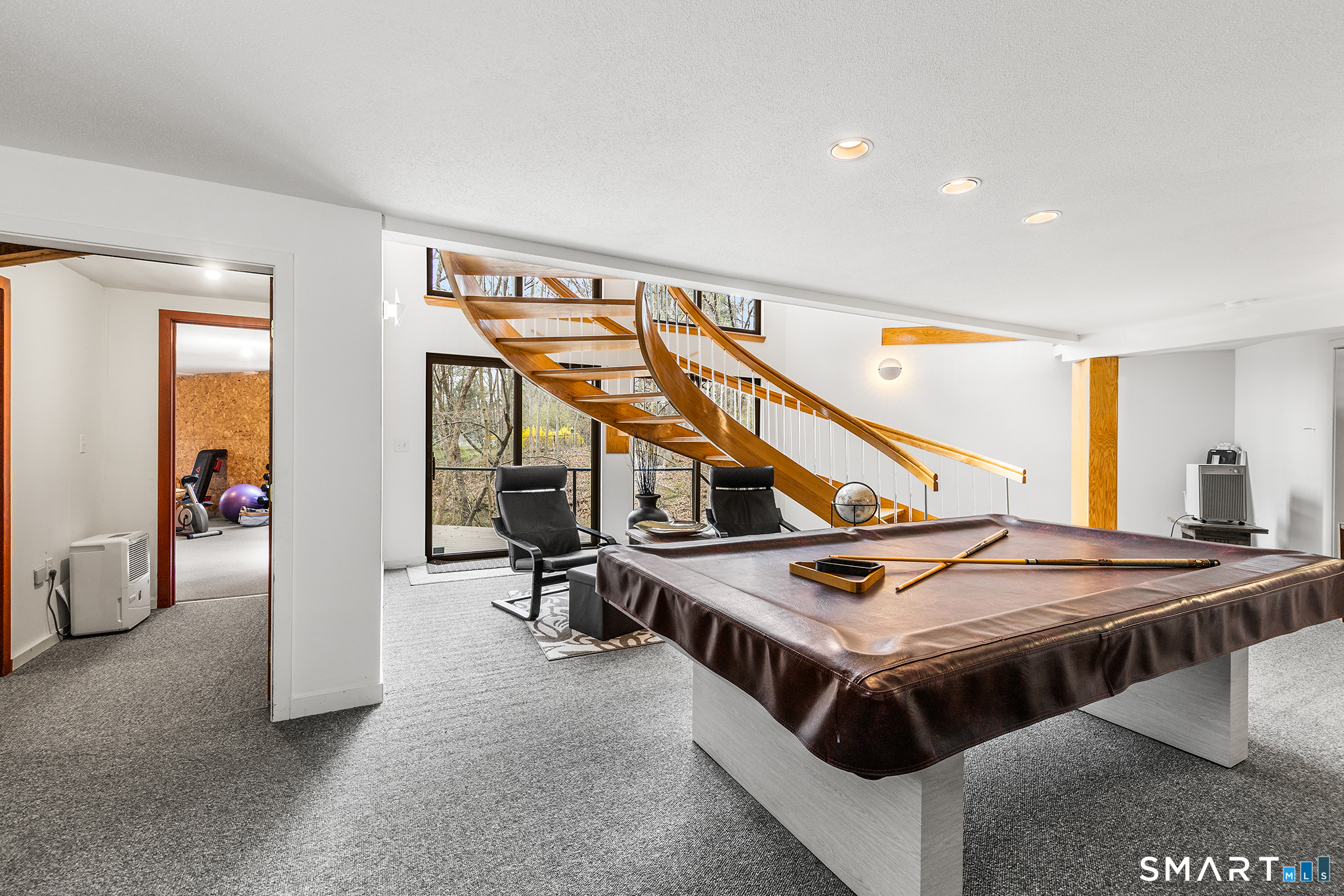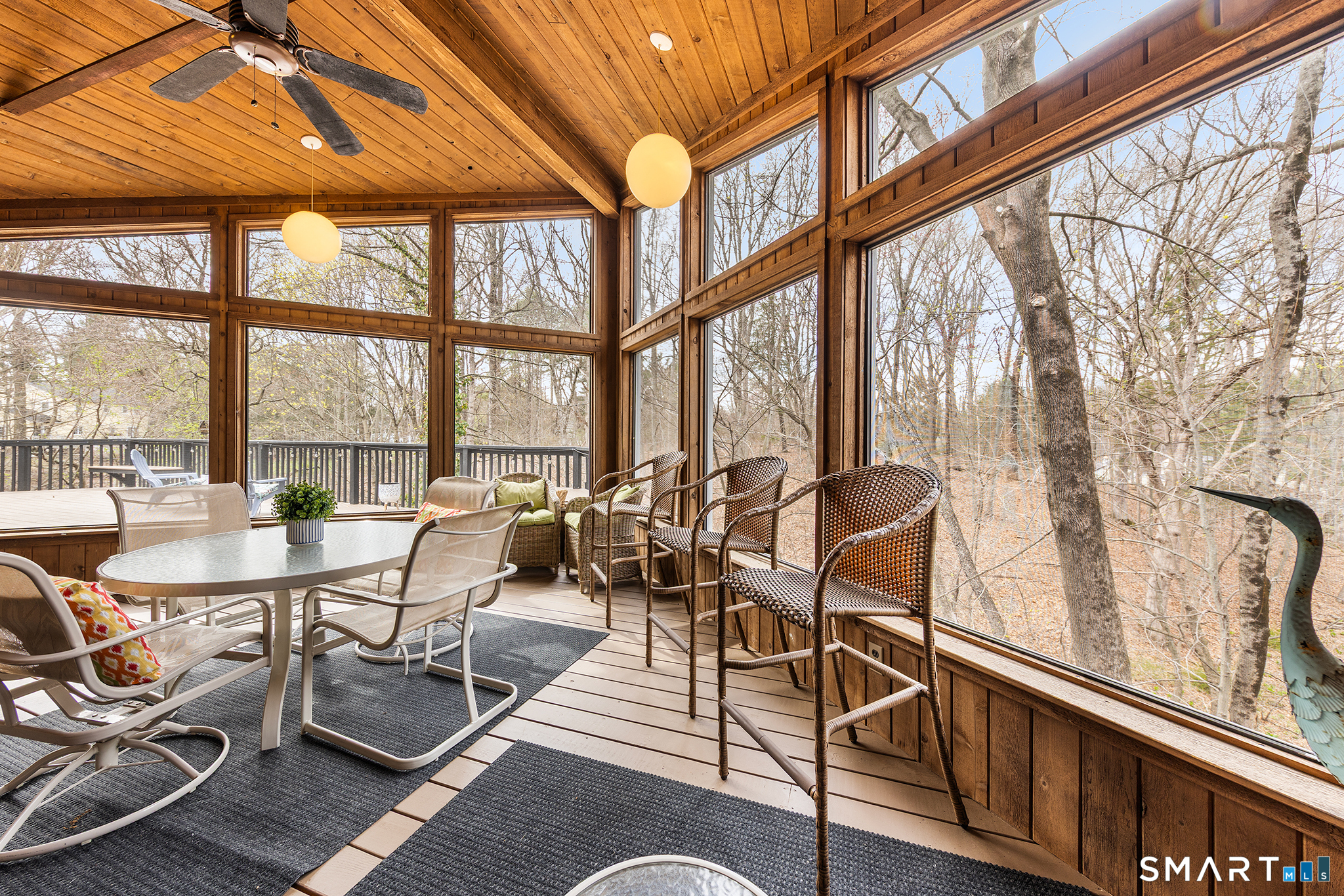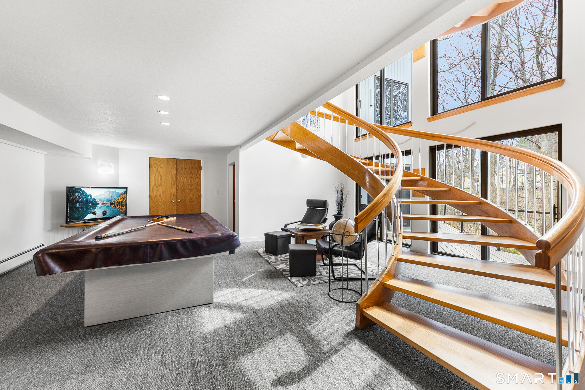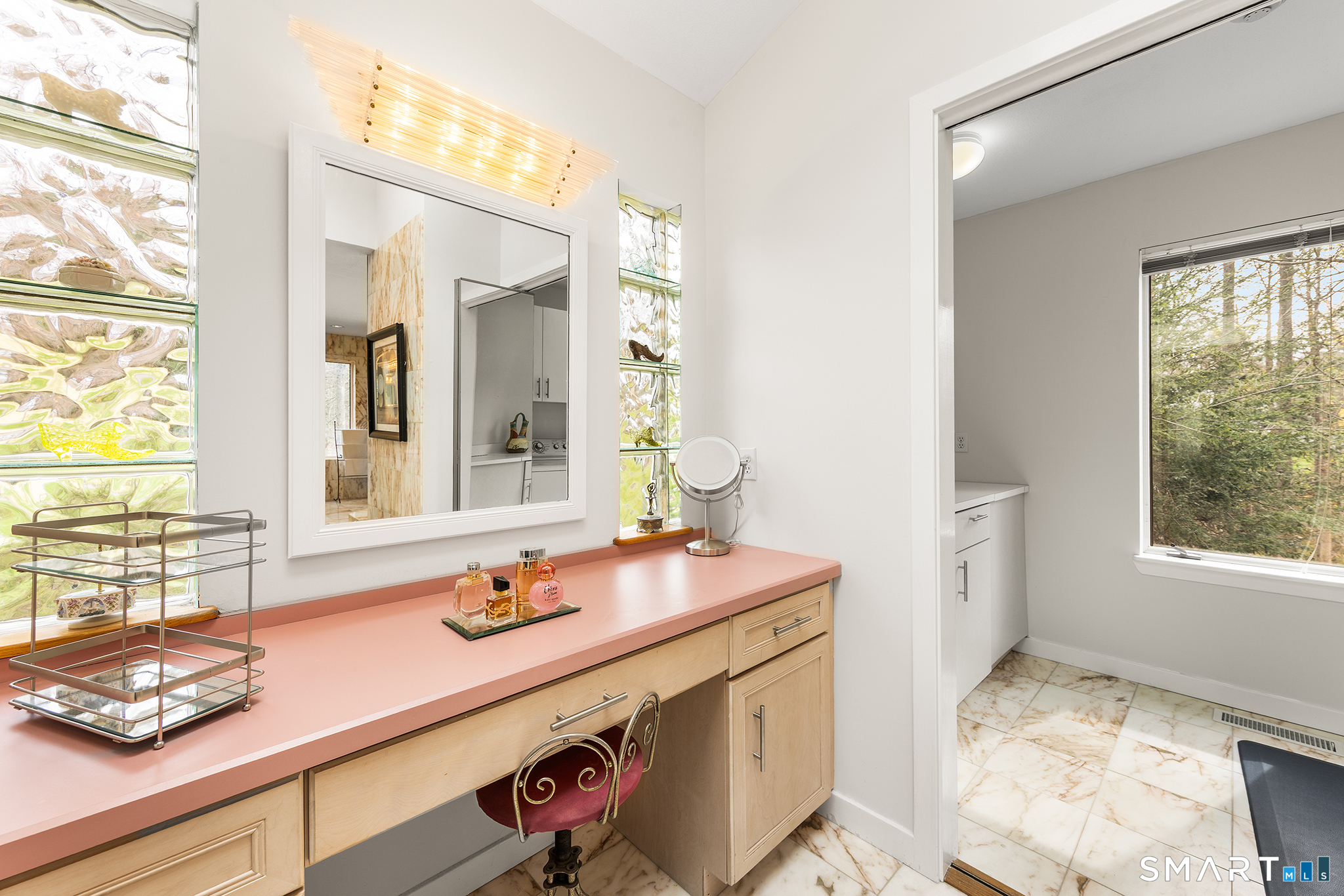 The spectacular awaits in Cheshire - welcome to 25 Surrey Drive! This one-of-a-kind bespoke architectural masterpiece perfectly blends cosmopolitan design with a tranquil brook-side setting, creating a truly livable work of art. Inside, the dramatic, sculptural staircase immediately commands your attention, spanning 3 levels of striking proportions & walls of glass. The main level features soaring ceilings & a grand open concept layout tailormade for hosting. The chic kitchen anchors the space with a large granite island, double oven, & tremendous storage including a double refrigerator set-up & beverage cooler. Seamless indoor outdoor flow with multiple sliders from the living/dining area to a massive entertaining deck & stunning vaulted ceiling screened sun room for quiet relaxation. Single level living is a breeze with a capacious first floor primary suite that is a continent unto itself. The palatial full marble bath features a soaking tub, XL shower, dual vanities, & a separate laundry room for convenience. The DREAM skylit walk-in closet challenges even the most dedicated fashionistas to fill its seemingly endless racks & soft-close drawers. A sunny office or dressing room rounds out the suite. Upstairs, there's a 2nd full suite w cedar WIC & double vanity ensuite. The sensational 50' loft is the ultimate gallery, library, studio or lounge space - a rare vibe-setting find!