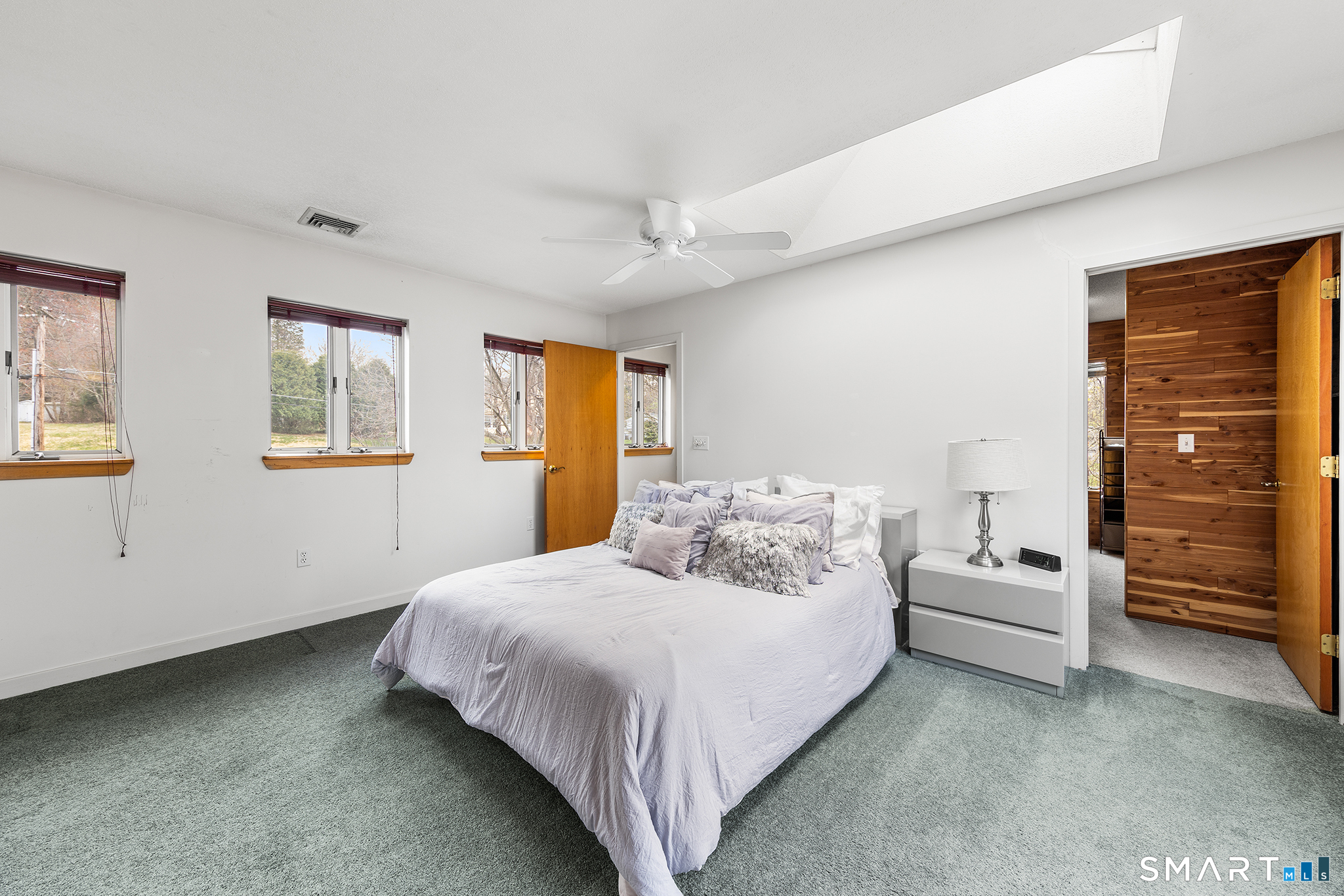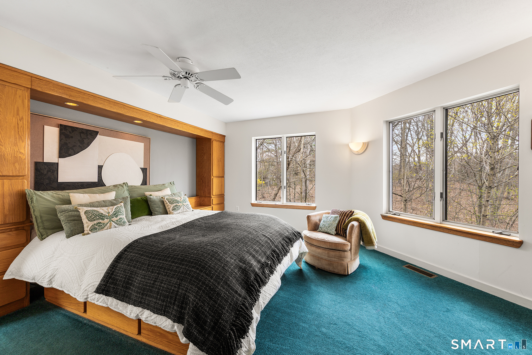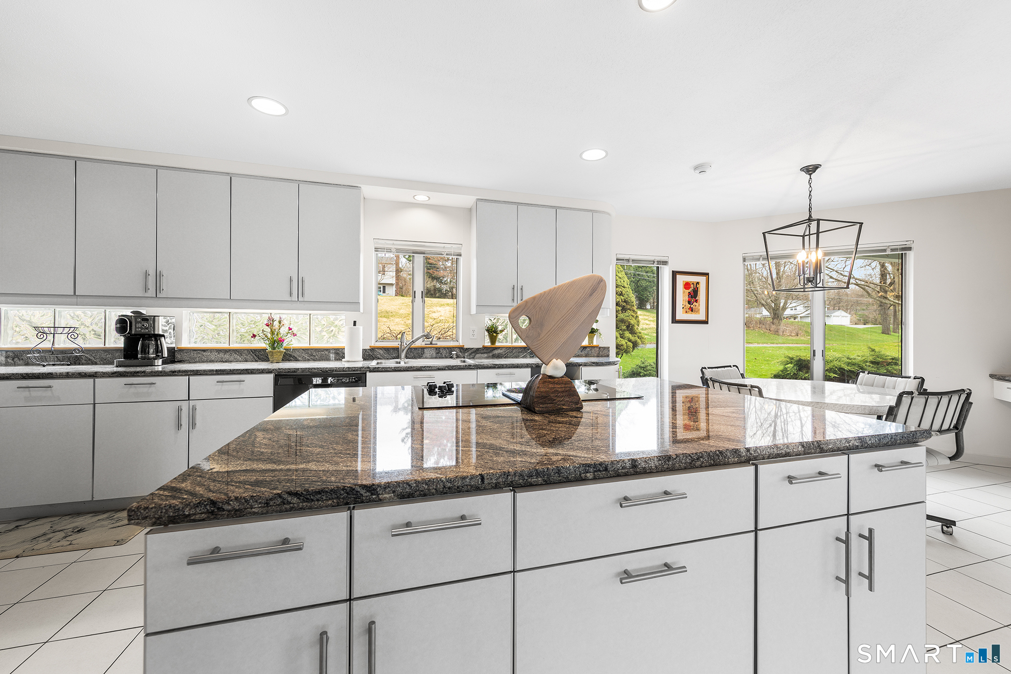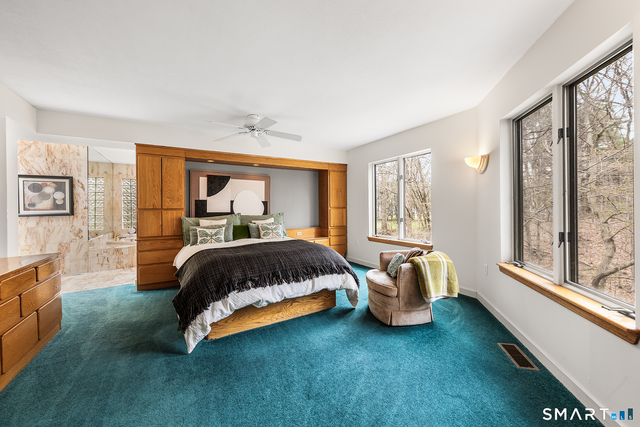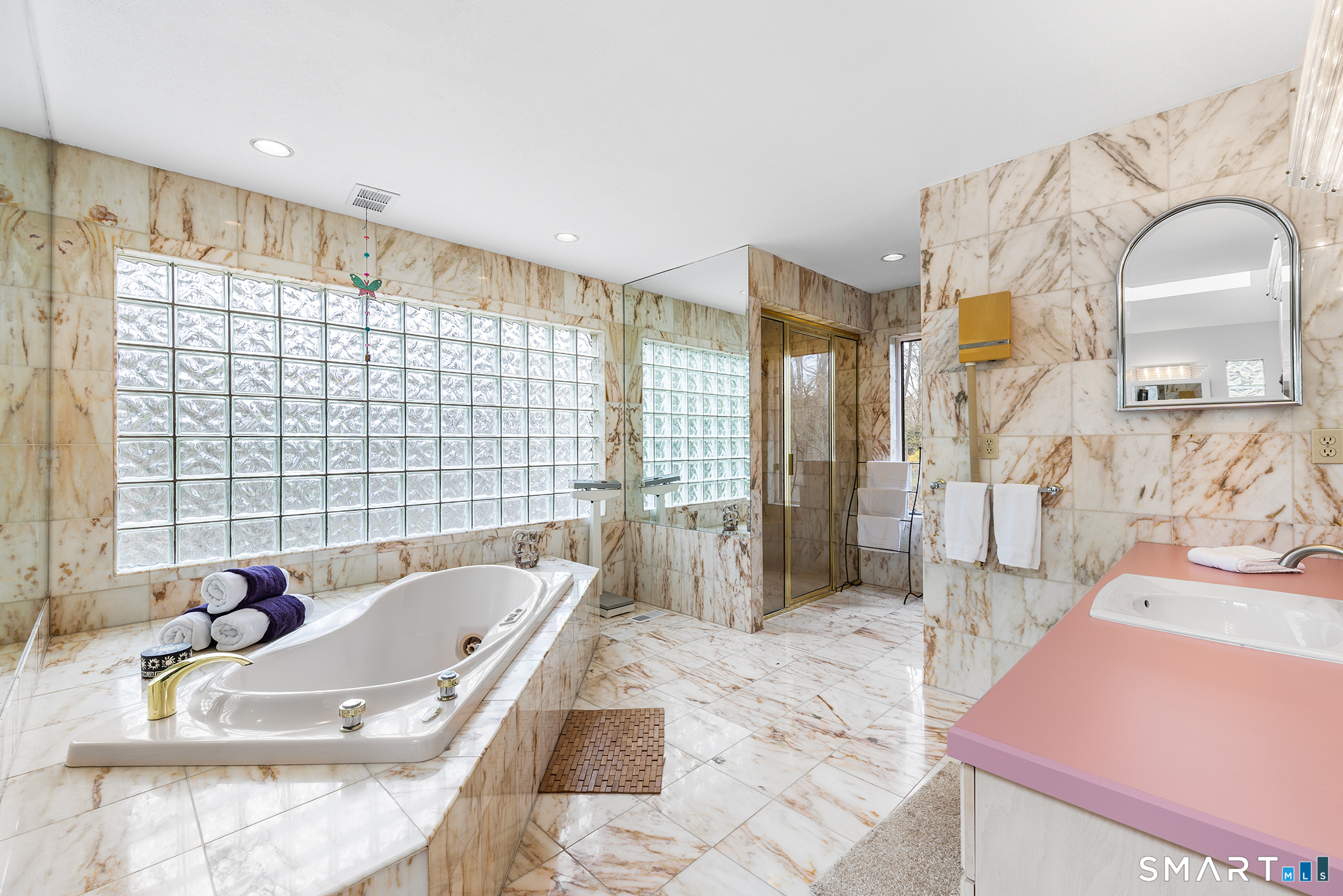 The spectacular awaits in Cheshire - welcome to 25 Surrey Drive! This one-of-a-kind bespoke architectural masterpiece perfectly blends cosmopolitan design with a tranquil brook-side setting, creating a truly livable work of art. Inside, the dramatic, sculptural staircase immediately commands your attention, spanning 3 levels of striking proportions & walls of glass. The main level features soaring ceilings & a grand open concept layout tailormade for hosting. The chic kitchen anchors the space with a large granite island, double oven, & tremendous storage including a double refrigerator set-up & beverage cooler. Seamless indoor outdoor flow with multiple sliders from the living/dining area to a massive entertaining deck & stunning vaulted ceiling screened sun room for quiet relaxation. Single level living is a breeze with a capacious first floor primary suite that is a continent unto itself. The palatial full marble bath features a soaking tub, XL shower, dual vanities, & a separate laundry room for convenience. The DREAM skylit walk-in closet challenges even the most dedicated fashionistas to fill its seemingly endless racks & soft-close drawers. A sunny office or dressing room rounds out the suite. Upstairs, there's a 2nd full suite w cedar WIC & double vanity ensuite. The sensational 50' loft is the ultimate gallery, library, studio or lounge space - a rare vibe-setting find!