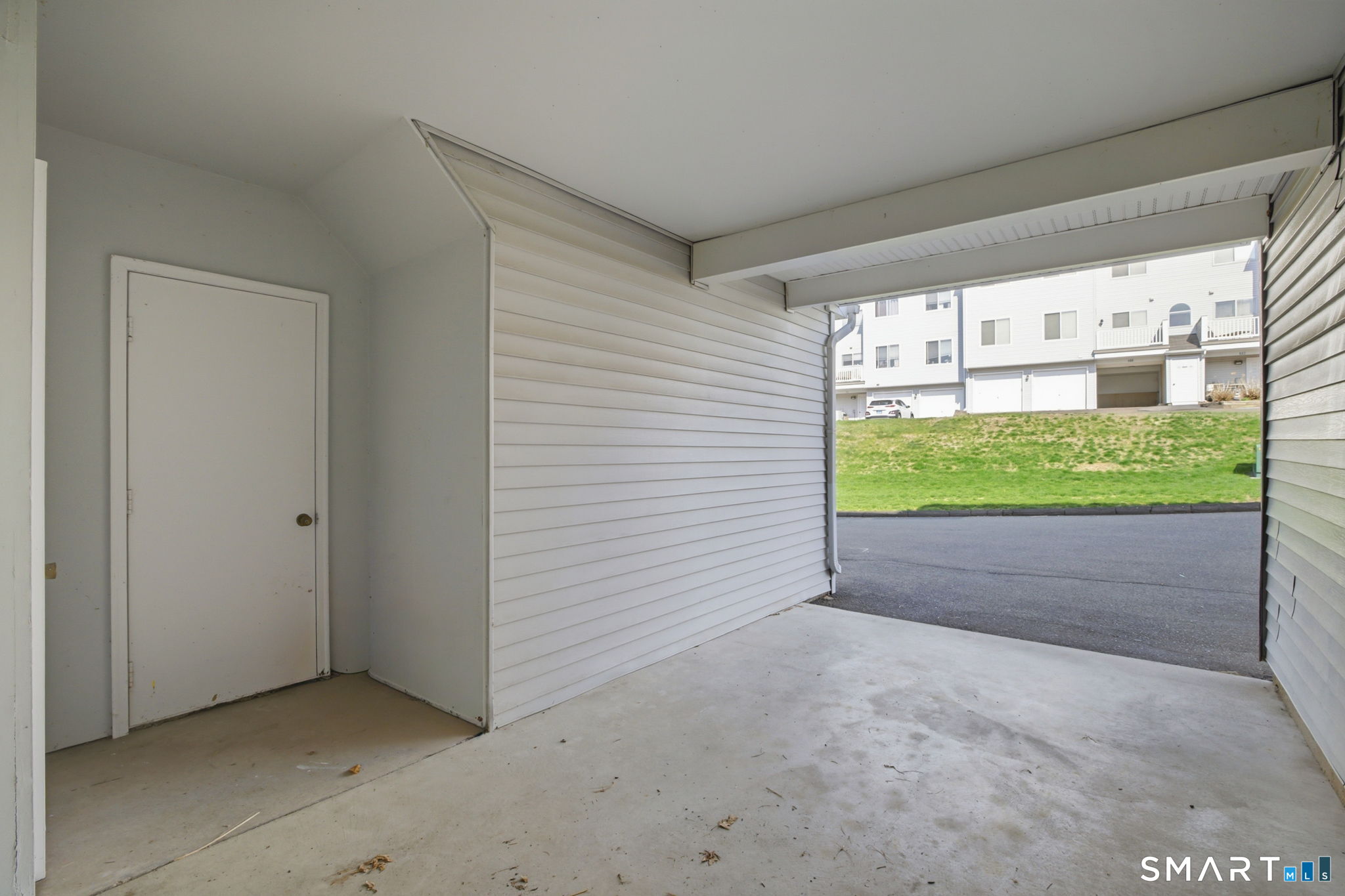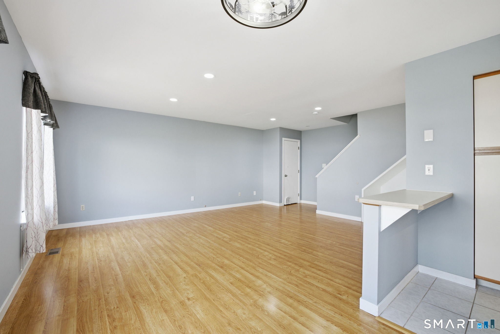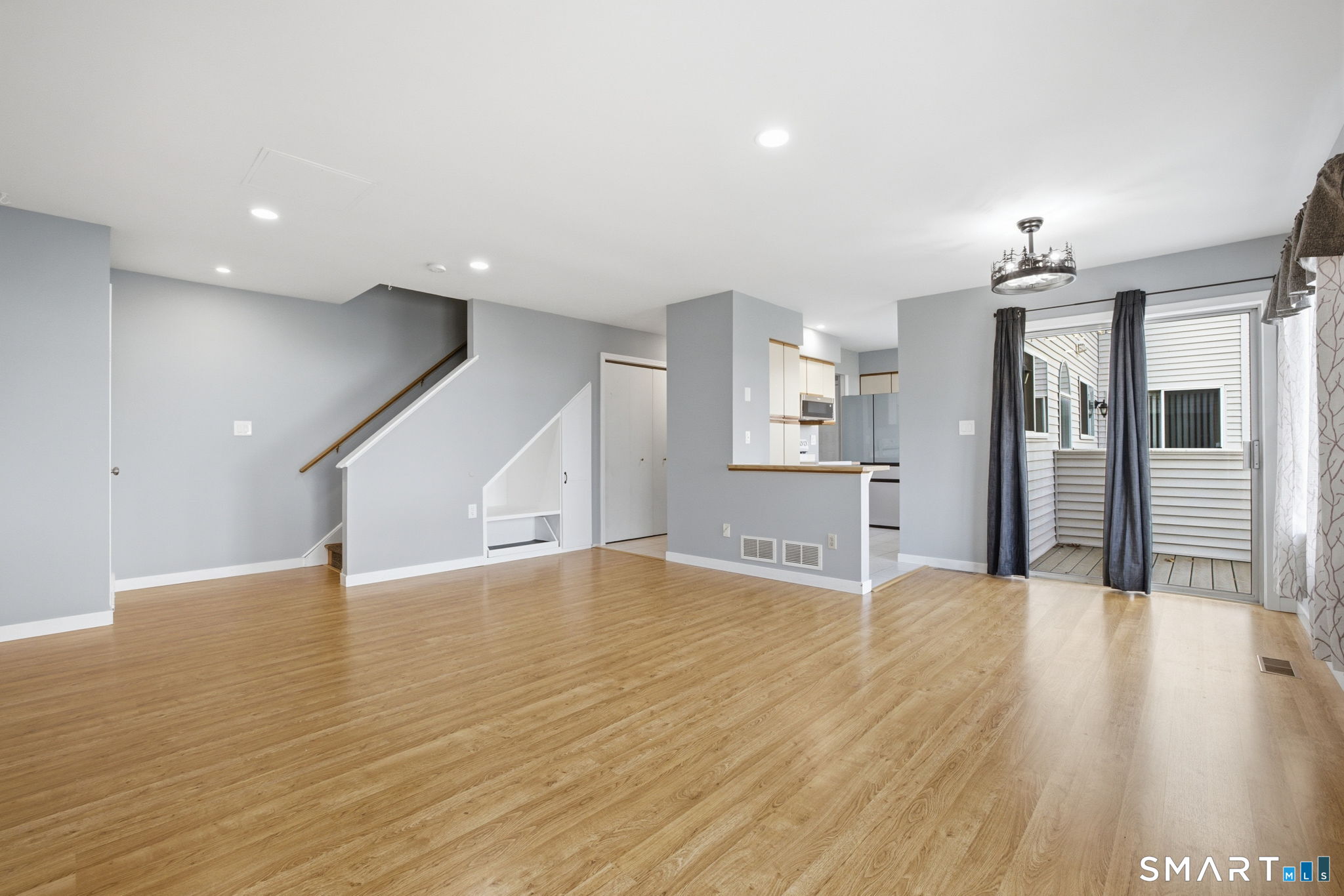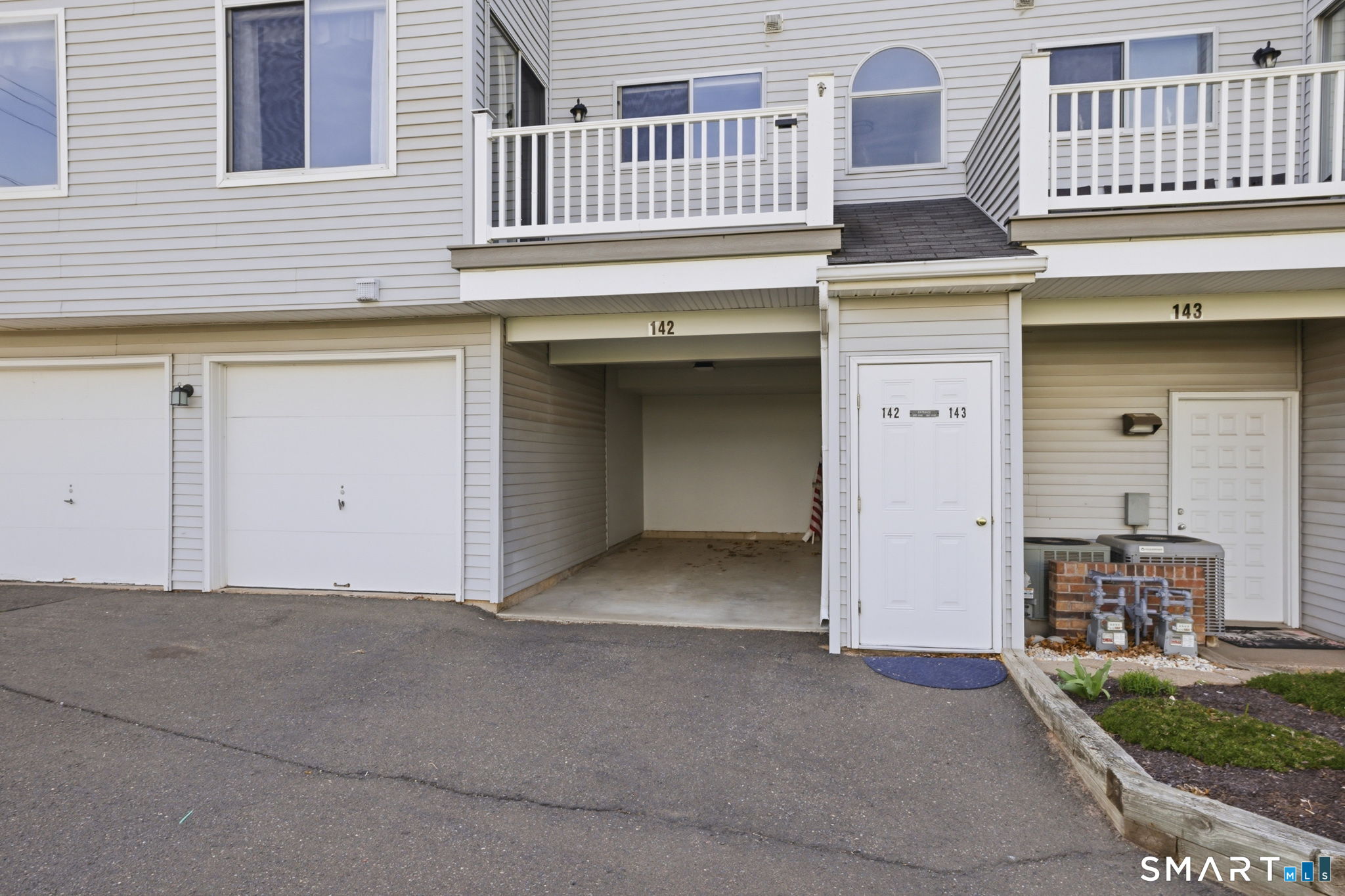Welcome to Staffordshire Commons! This well-maintained townhouse offers spacious, low-maintenance living in a prime Wallingford location. The main level features a bright, open living and dining area, a functional kitchen with a breakfast bar, half bath, and in-unit laundry, with sliders leading to a private outdoor space. Recessed lighting throughout unit. Enjoy year-round comfort with central air and efficient natural gas heat. The lower level includes a rare two-car garage, plus a carport with an additional room for a home gym or storage. Conveniently located just minutes from Route 5, I-91, and the Merritt Parkway, with shopping, dining, and Wallingford's low-cost municipal electric.