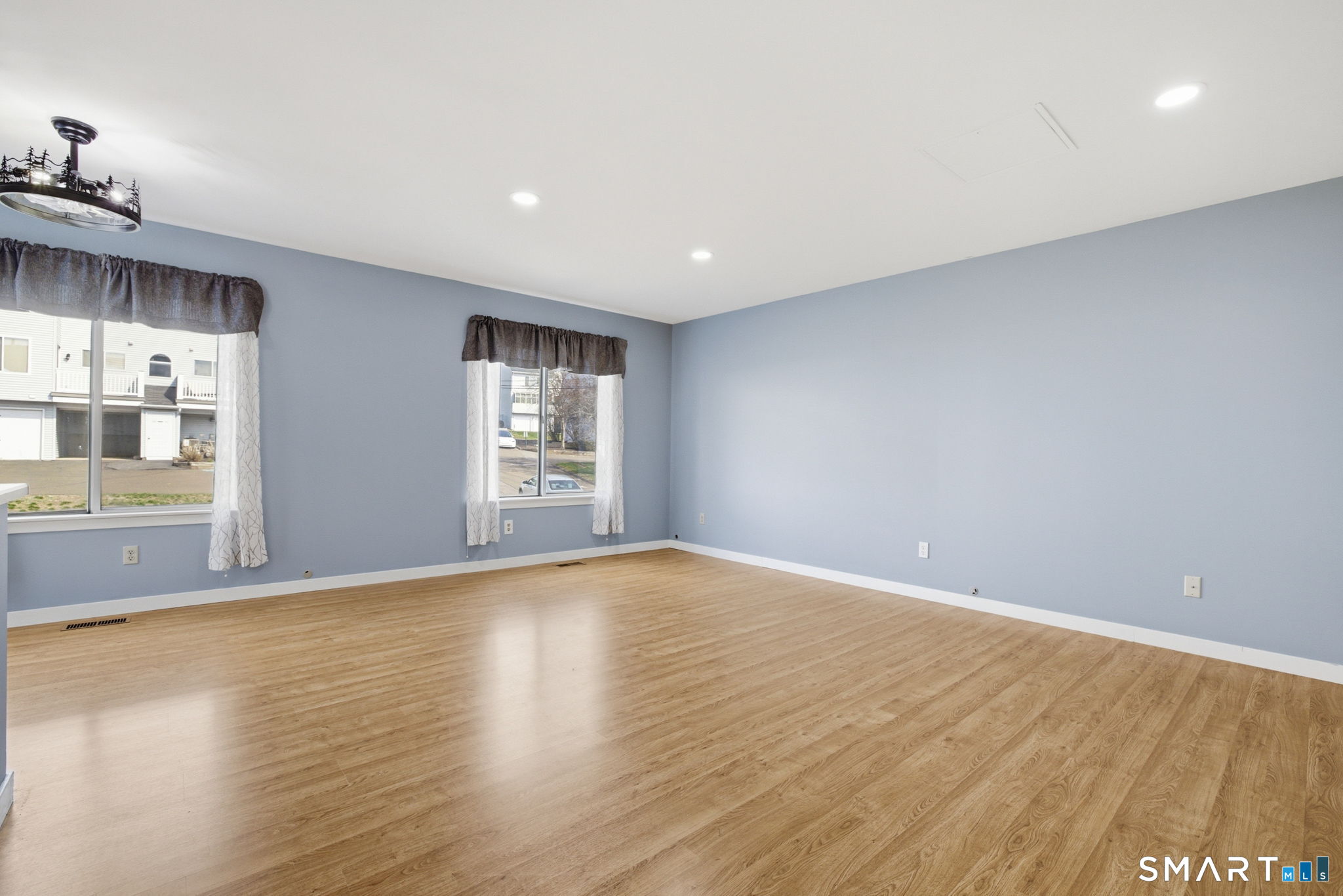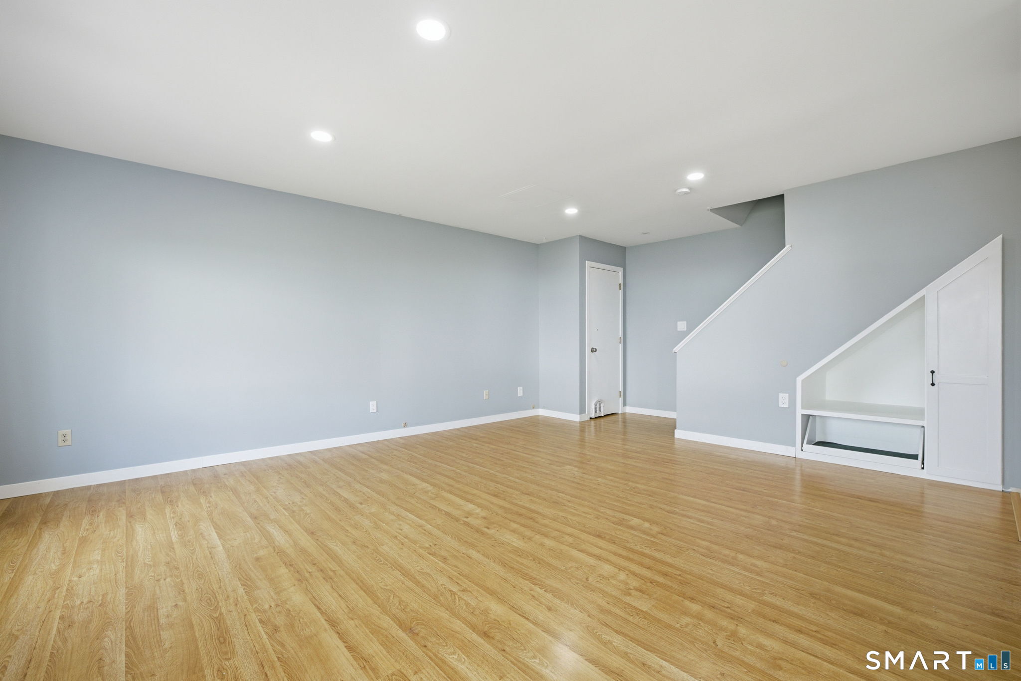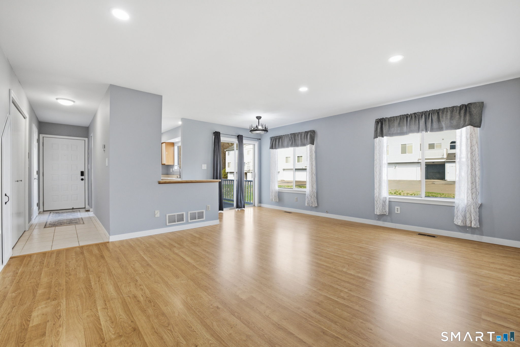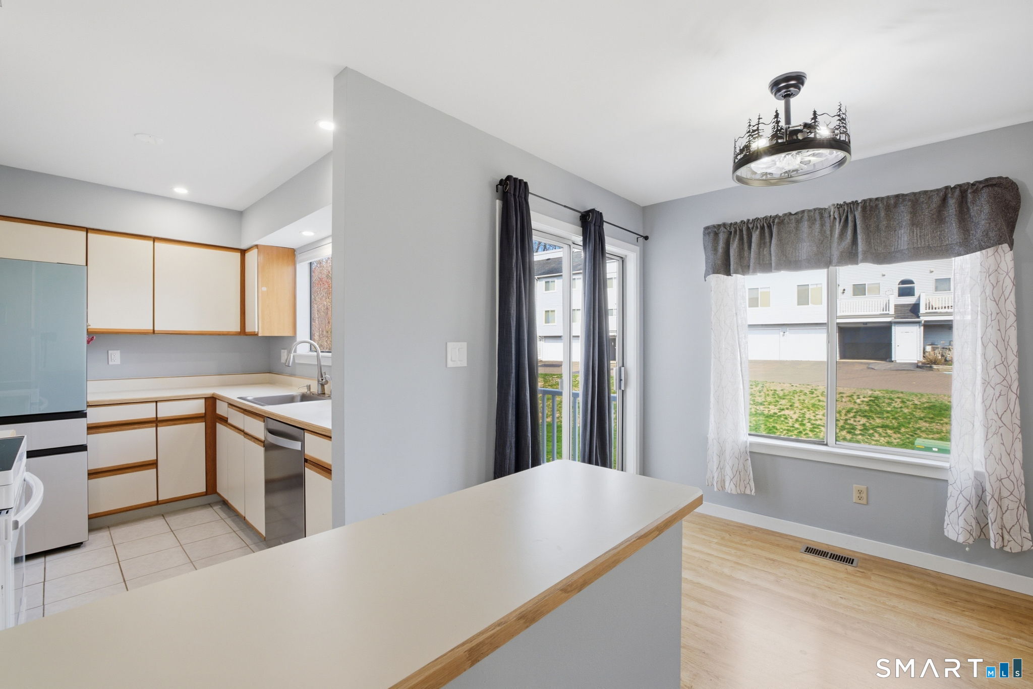 Welcome to Staffordshire Commons! This well-maintained townhouse offers spacious, low-maintenance living in a prime Wallingford location. The main level features a bright, open living and dining area, a functional kitchen with a breakfast bar, half bath, and in-unit laundry, with sliders leading to a private outdoor space. Recessed lighting throughout unit. Enjoy year-round comfort with central air and efficient natural gas heat. The lower level includes a rare two-car garage, plus a carport with an additional room for a home gym or storage. Conveniently located just minutes from Route 5, I-91, and the Merritt Parkway, with shopping, dining, and Wallingford's low-cost municipal electric.