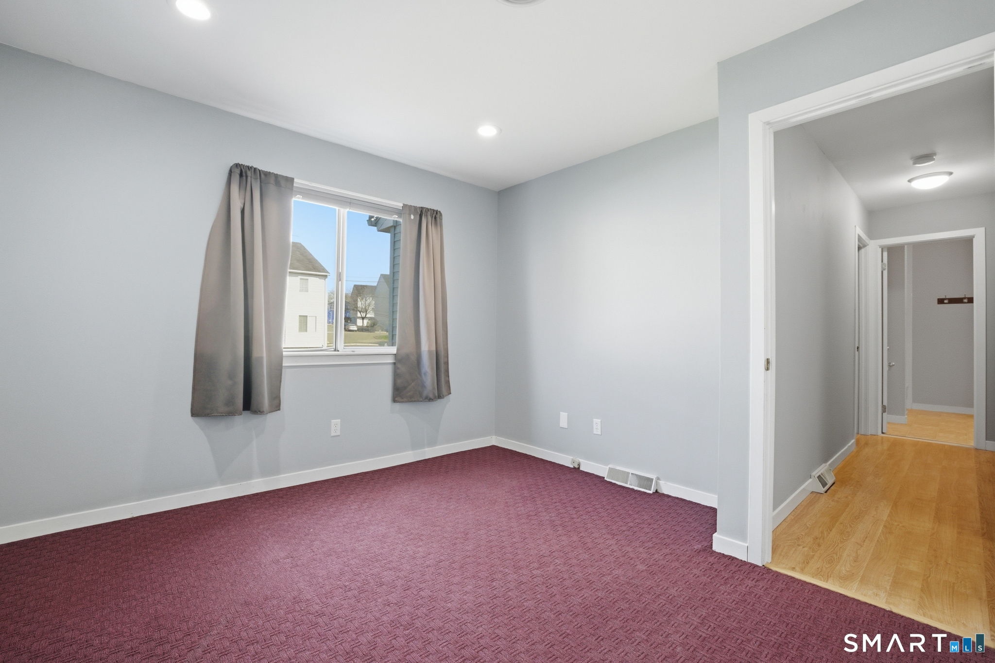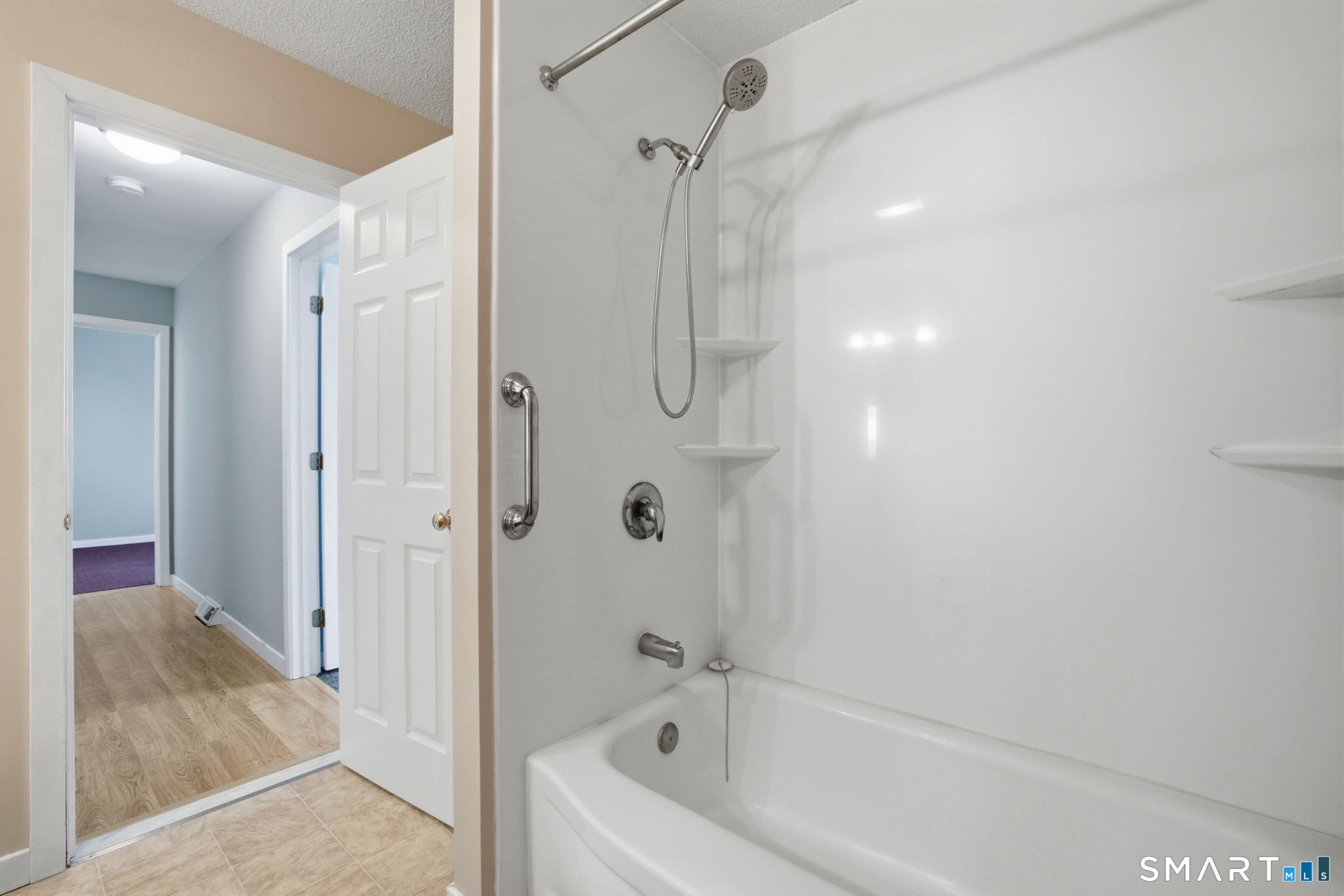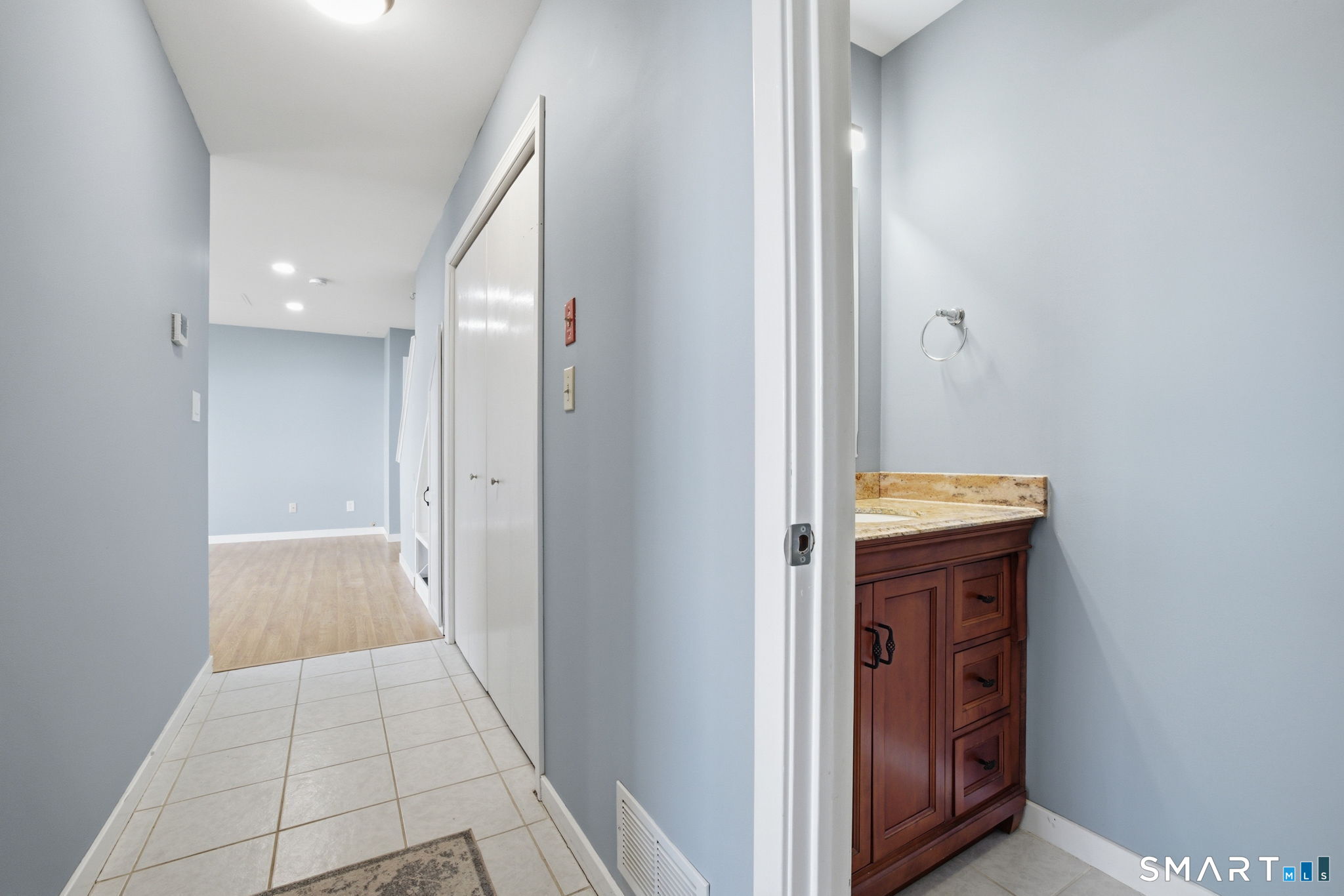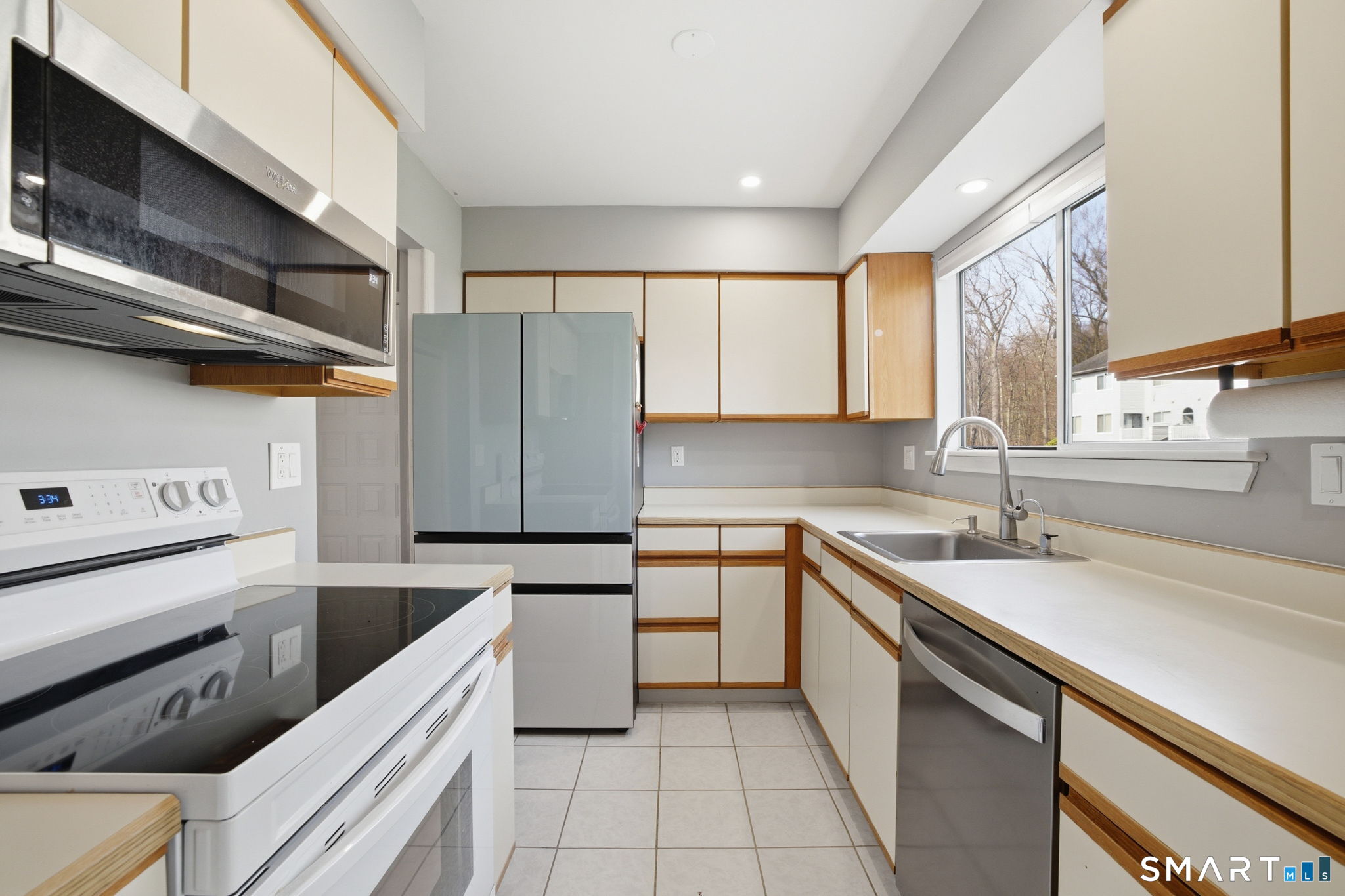 Welcome to Staffordshire Commons! This well-maintained townhouse offers spacious, low-maintenance living in a prime Wallingford location. The main level features a bright, open living and dining area, a functional kitchen with a breakfast bar, half bath, and in-unit laundry, with sliders leading to a private outdoor space. Recessed lighting throughout unit. Enjoy year-round comfort with central air and efficient natural gas heat. The lower level includes a rare two-car garage, plus a carport with an additional room for a home gym or storage. Conveniently located just minutes from Route 5, I-91, and the Merritt Parkway, with shopping, dining, and Wallingford's low-cost municipal electric.