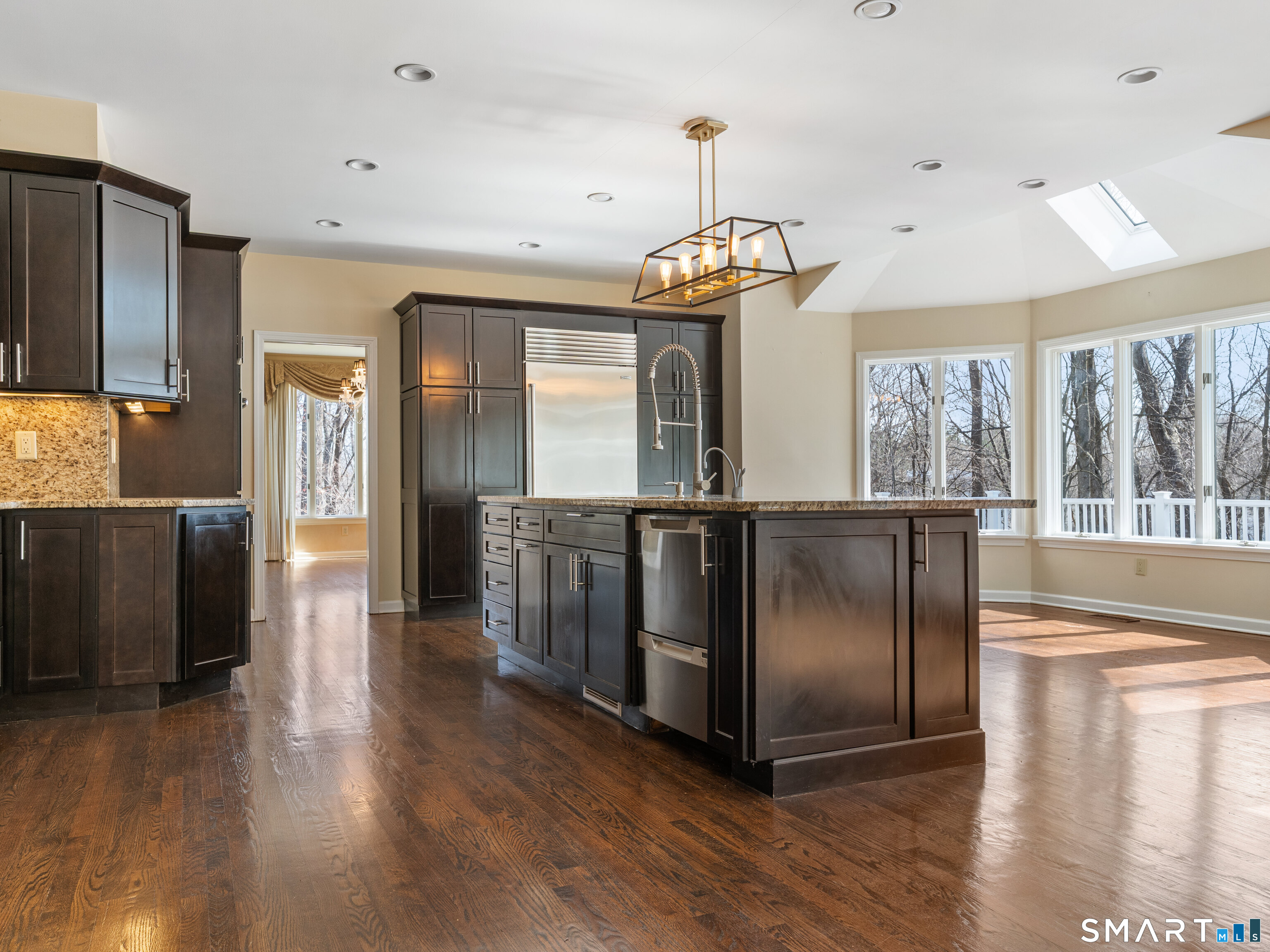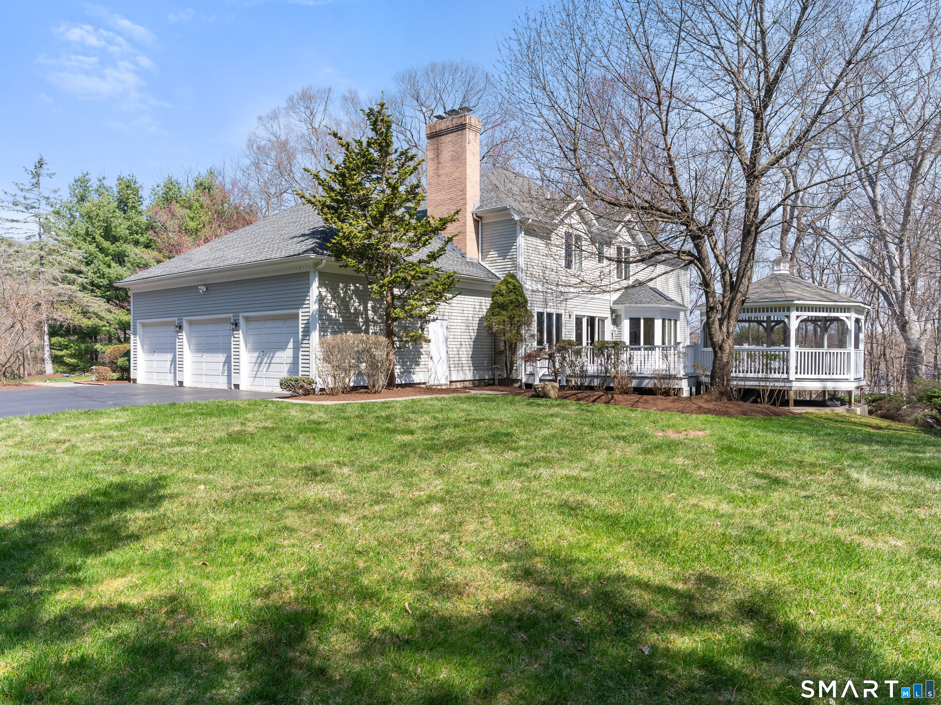 Majestically situated on a gentle hill designed to capture sweeping views of horses mountains and the picturesque countryside. This impressive 4,701 sq ft contemporary colonial is located in the highly sought after south Cheshire Mountaincrest neighborhood. A dramatic two-story marble foyer with a sweeping staircase welcomes you into elegant formal spaces, including a private office with glass French doors and built-ins, and a formal Living room with fireplace and expansive picture windows. The heart of the home is a gourmet kitchen featuring Sub-Zero refrigeration,& top of the line stainless steel appliances The large granite island with seating for five and the bright spacious breakfast nook makes dining a delight! The kitchen opens seamlessly into the spacious family room with gas fireplace, wet bar & sound system provides easy access to the expansive deck and screened gazebo-perfect for entertaining and enjoying the tranquil setting. The main level also includes a powder room, mudroom, laundry room, and access to the three-car garage with EV hook-up. Upstairs offers a luxurious primary suite, a bedroom with private bath, and two additional bedrooms that share a full bath. The walk-out finished lower level with a full bath provides additional flexible living space ideal for recreation, media, gym, or guests. Additional highlights include hardwood flooring throughout, quality upgrades, and a versatile floor plan designed for comfort and lifestyle!