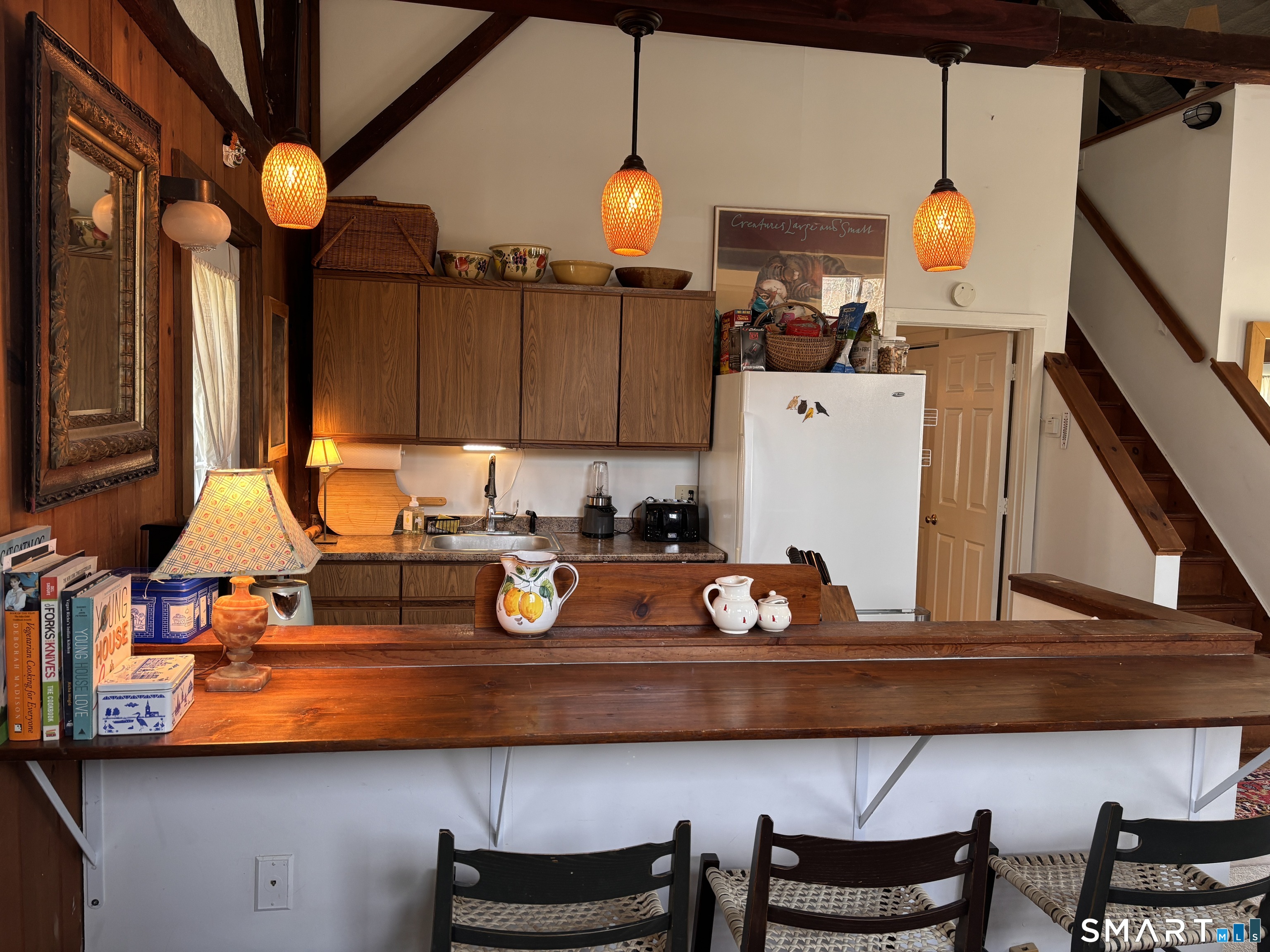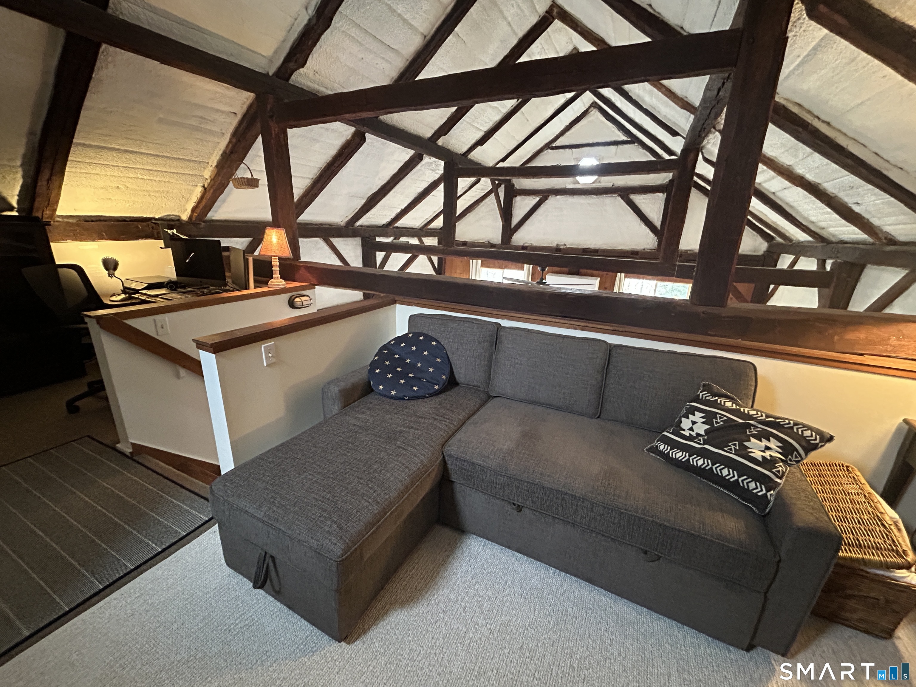 This adorable 19 century renovated barn/cottage is fully furnished with all utilities included. An open concept: living / dining room, kitchen combination with beamed cathedral ceilings makes for a spacious, dramatic environment. The loft space has been used as a spare bedroom with closet and office area. The full bath (equipped with a stackable washer and dryer, on main floor) has access to the living room and bedroom. Possible use of garage space can be discussed. Conveniently located: Lake Waramaug 5 minutes away, Litchfield 10 minutes, Washington Depot, 7 minutes, this New Preston gem is neat, sweet and complete with all expenses included, (within reasonable electric utility usage). Cottage is attached to main house with reasonable privacy, despite the proximity and shared yard. Listing agent related to owner.