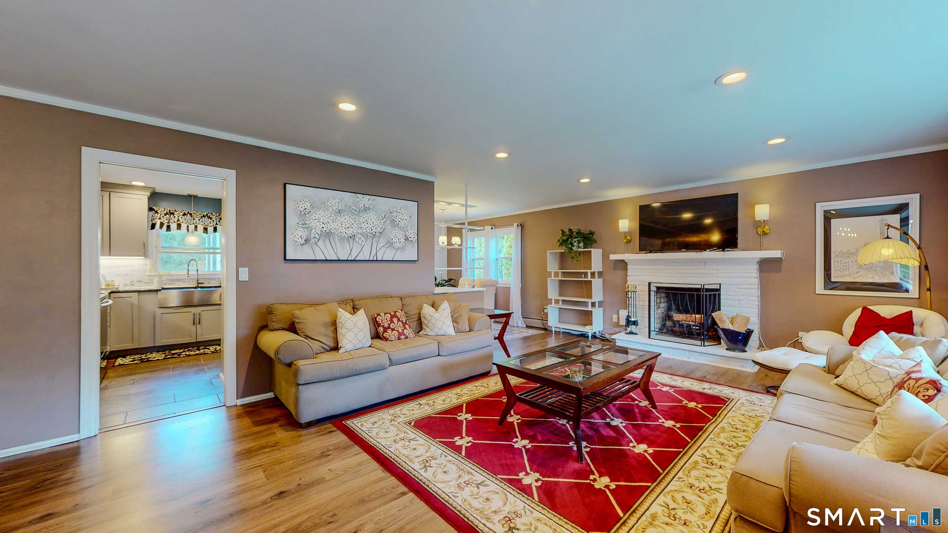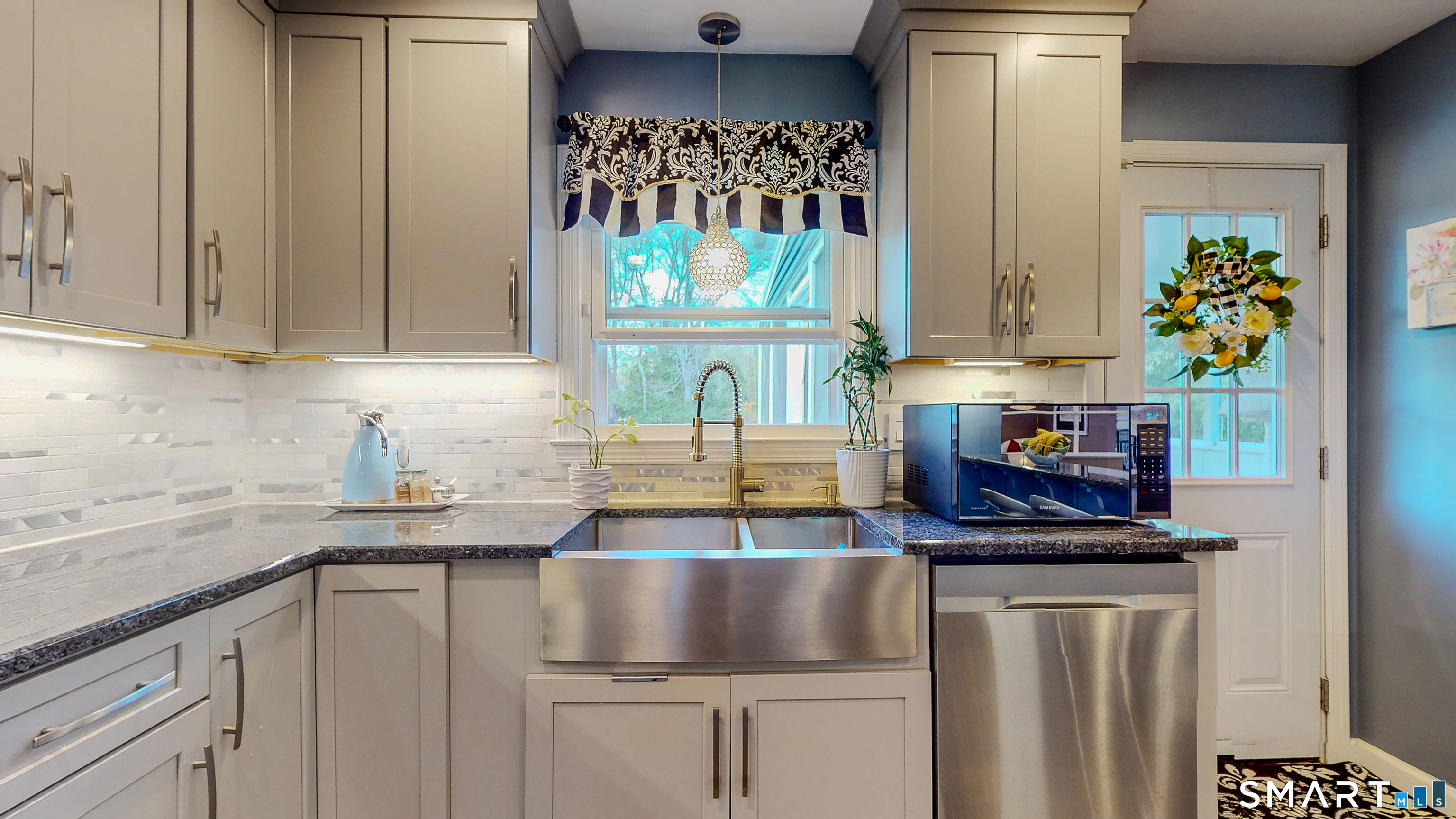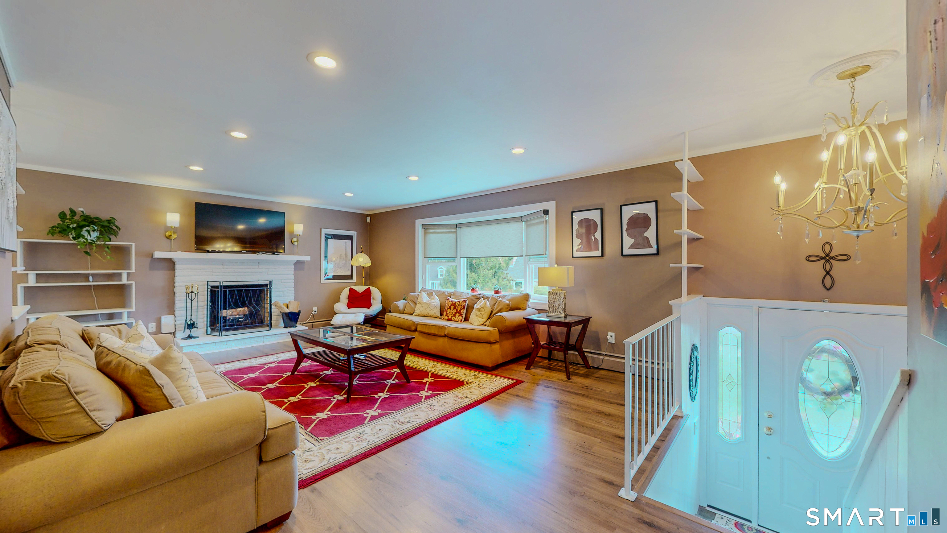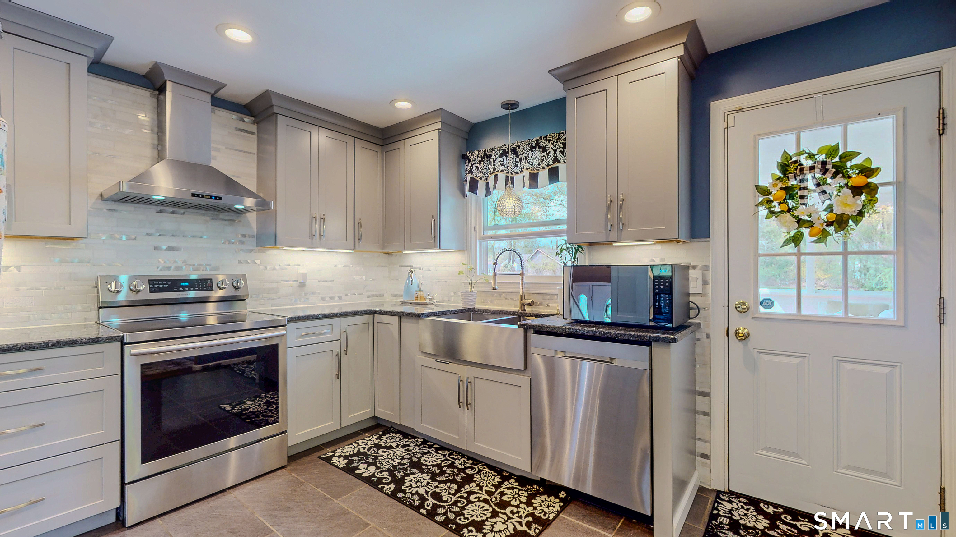 Welcome to this charming and spacious home, beautifully updated and truly move-in ready! The heart of the home is the stunning, fully remodeled kitchen featuring granite countertops, a farmhouse sink, stylish tile backsplash, and stainless steel appliances-perfect for everyday living and entertaining. The large living room offers warmth and character with a cozy fireplace and a bright bow window that fills the space with natural light. Just off the main living area, enjoy your morning coffee or unwind in the 3-season screened porch overlooking a private, level backyard-complete with a gorgeous slate patio ideal for relaxing or hosting guests. The finished lower level provides incredible flexibility and is perfect for a potential in-law setup, home office, or additional living space. Outside, the meticulously designed slate stone landscaping adds curb appeal and charm, while the new driveway and 1-car garage offer convenience. Additional features include an electronic dog fence, Ring cameras, and a security system-all included for peace of mind. This well-maintained home has seen many upgrades and has been cared for with pride. Ideally located near Trumbull's high rated schools: Jane Ryan Elementary is a 5-10 minute walk and Madison Middle School is only a mile away, beautiful parks, popular restaurants, and offering easy access for commuting to NYC and throughout Fairfield County, this home truly has it all.