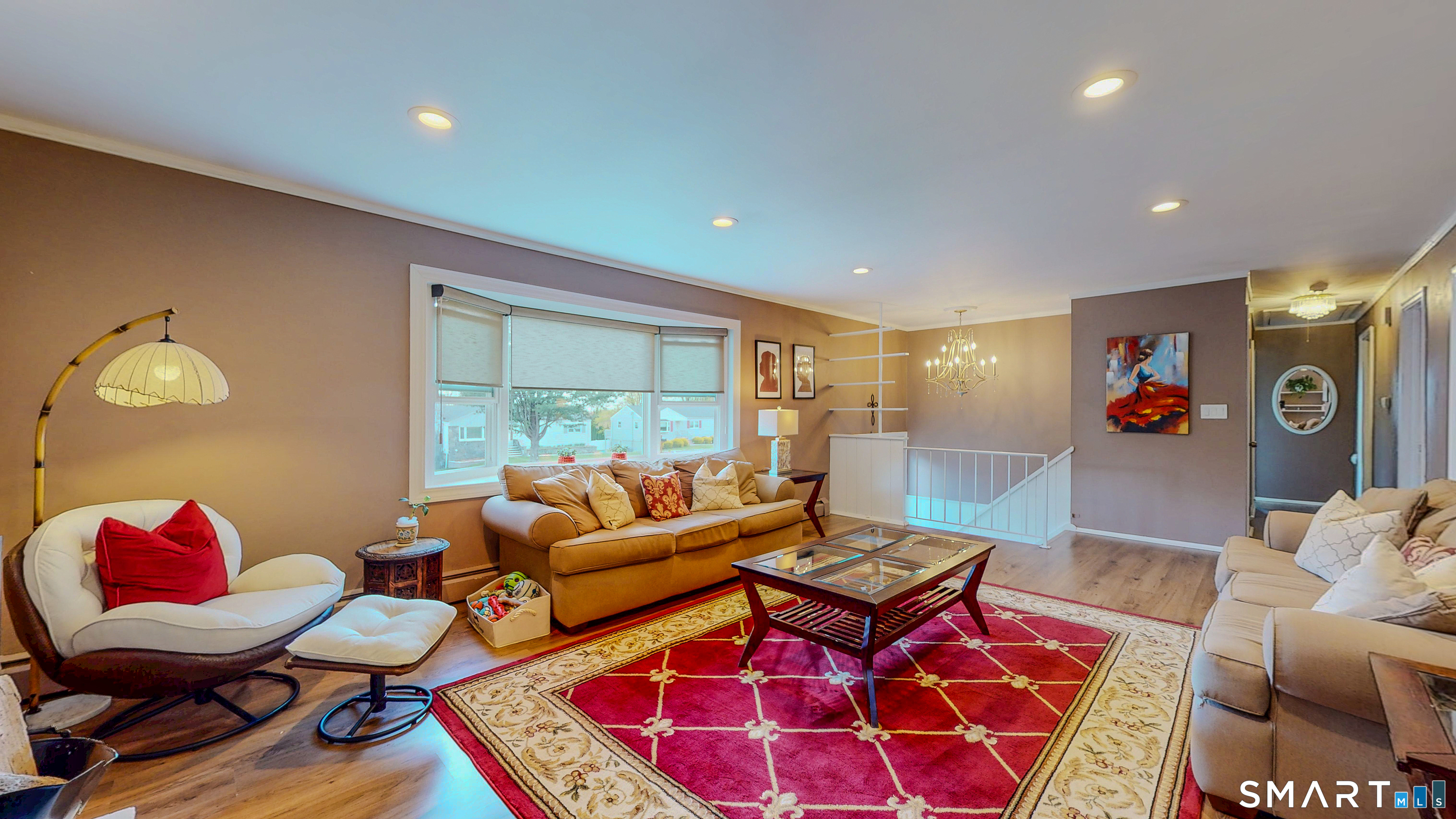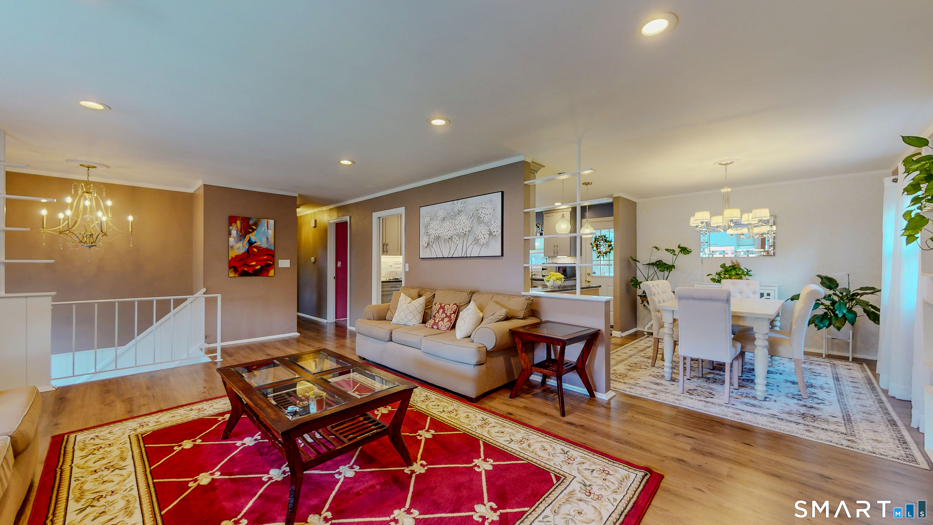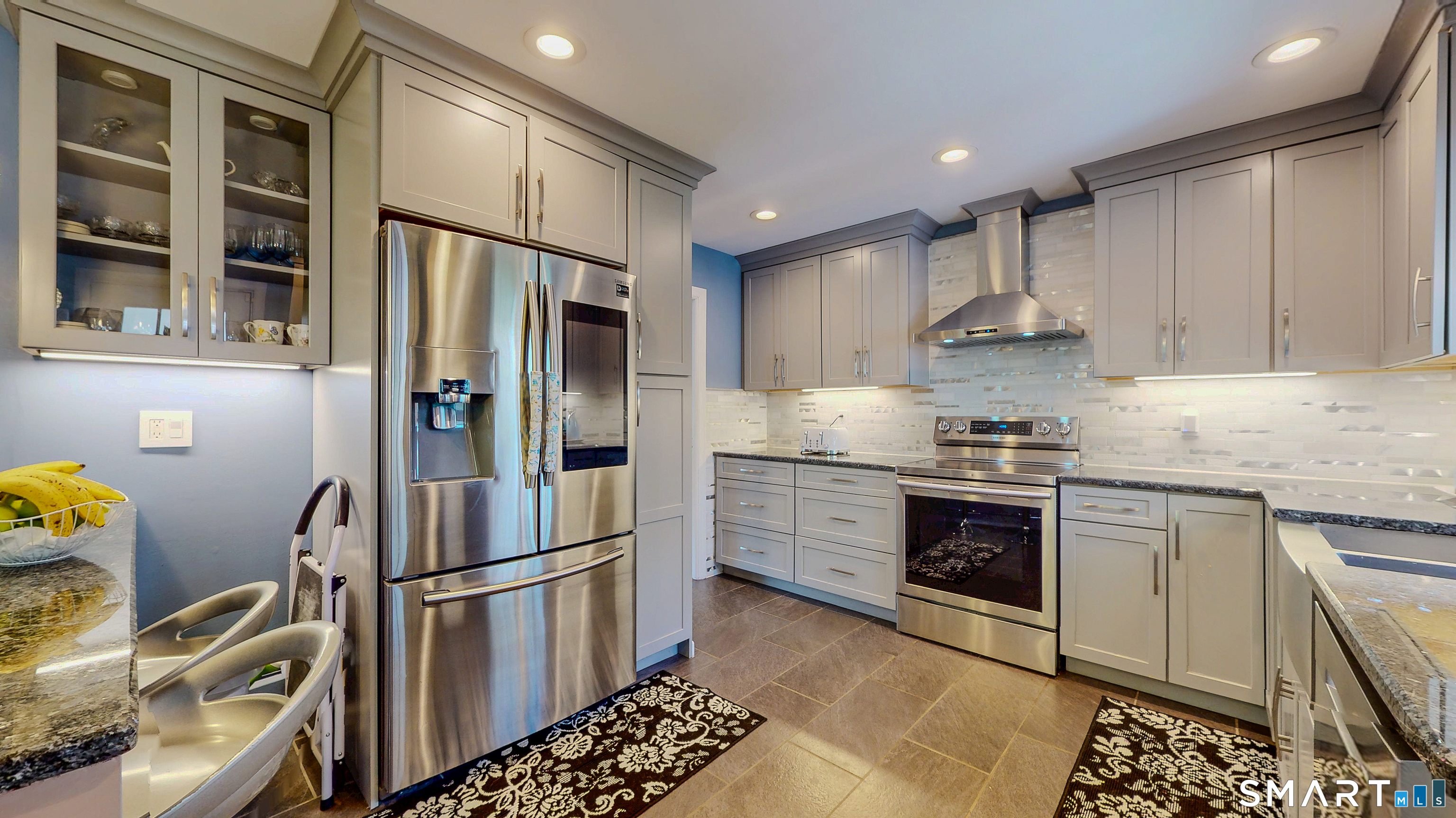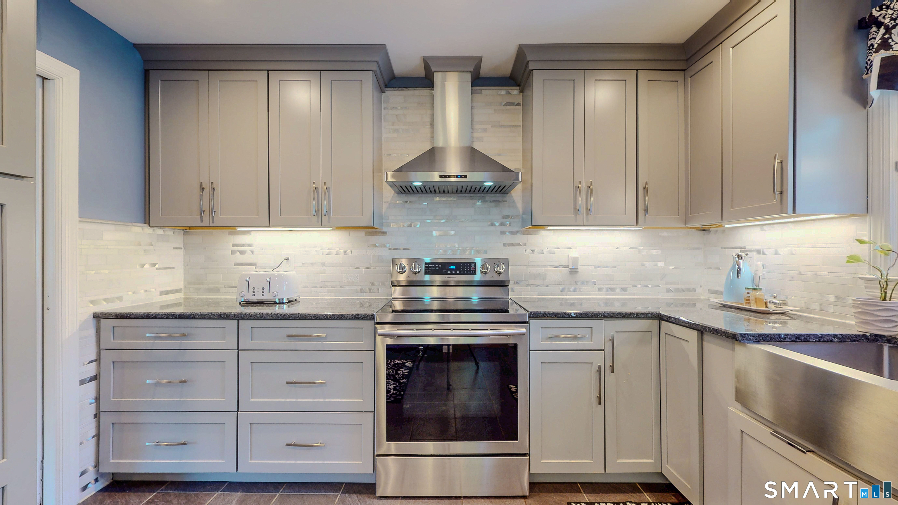 Welcome to this charming and spacious home, beautifully updated and truly move-in ready! The heart of the home is the stunning, fully remodeled kitchen featuring granite countertops, a farmhouse sink, stylish tile backsplash, and stainless steel appliances-perfect for everyday living and entertaining. The large living room offers warmth and character with a cozy fireplace and a bright bow window that fills the space with natural light. Just off the main living area, enjoy your morning coffee or unwind in the 3-season screened porch overlooking a private, level backyard-complete with a gorgeous slate patio ideal for relaxing or hosting guests. The finished lower level provides incredible flexibility and is perfect for a potential in-law setup, home office, or additional living space. Outside, the meticulously designed slate stone landscaping adds curb appeal and charm, while the new driveway and 1-car garage offer convenience. Additional features include an electronic dog fence, Ring cameras, and a security system-all included for peace of mind. This well-maintained home has seen many upgrades and has been cared for with pride. Ideally located near Trumbull's high rated schools: Jane Ryan Elementary is a 5-10 minute walk and Madison Middle School is only a mile away, beautiful parks, popular restaurants, and offering easy access for commuting to NYC and throughout Fairfield County, this home truly has it all.