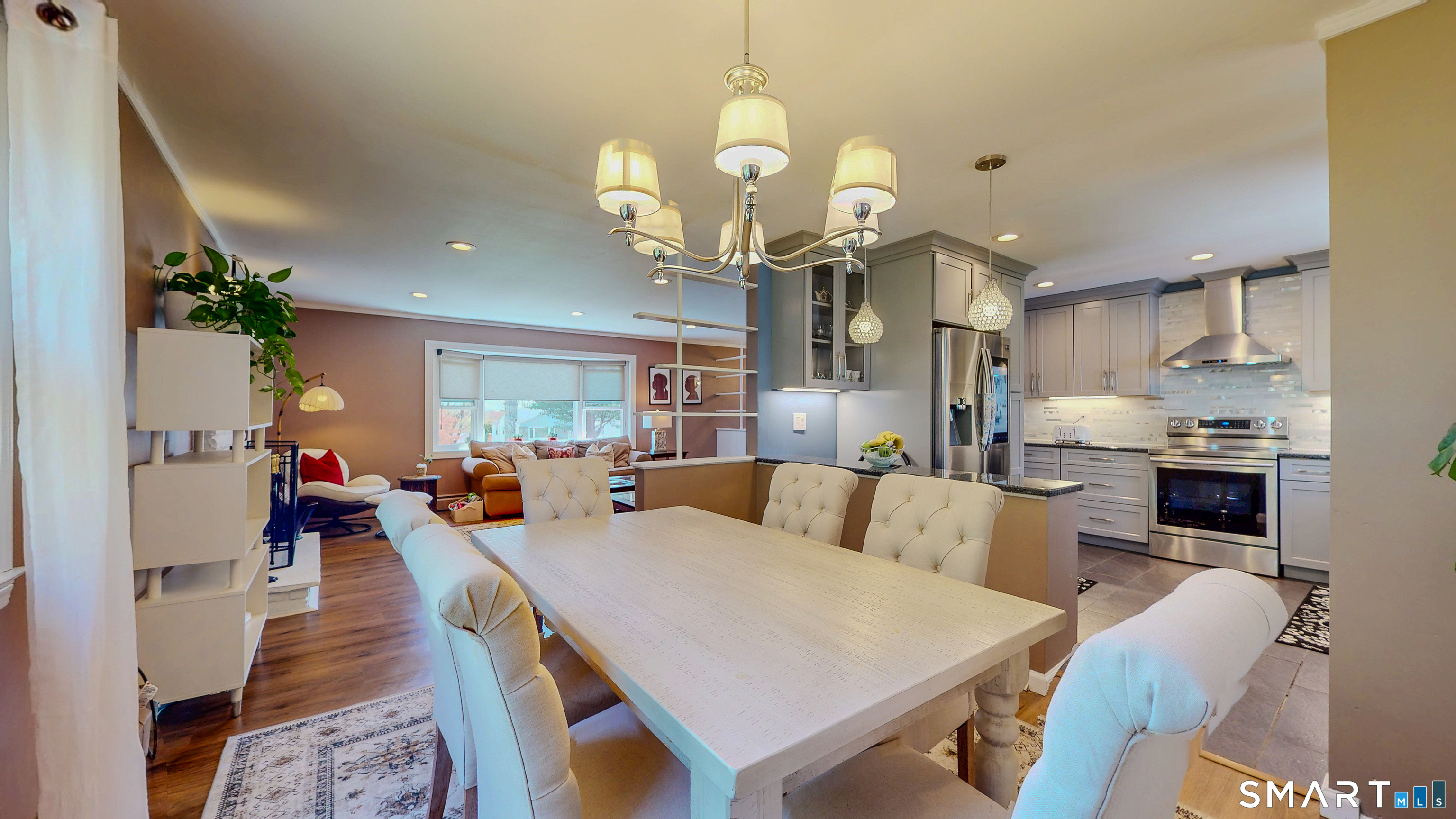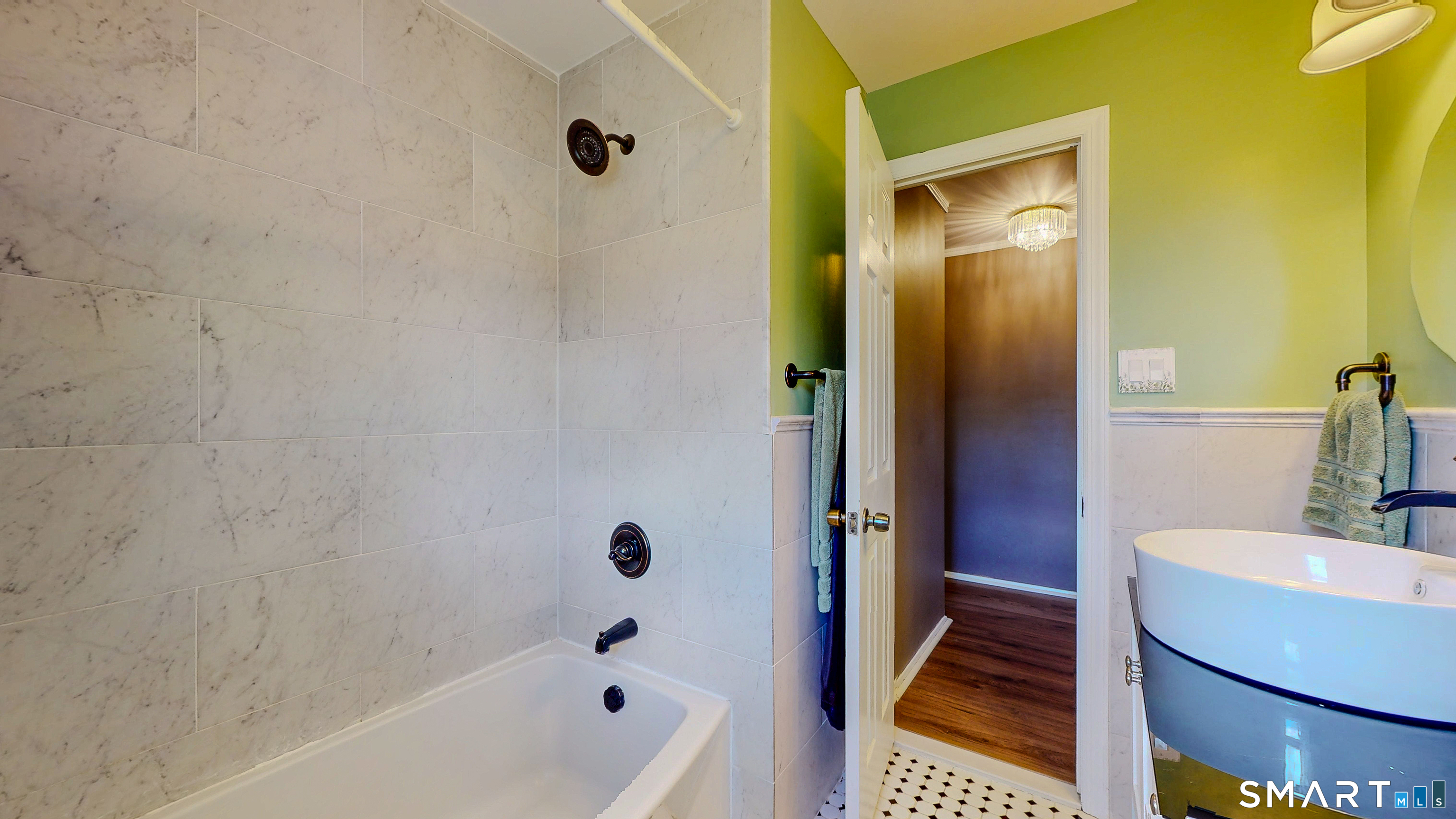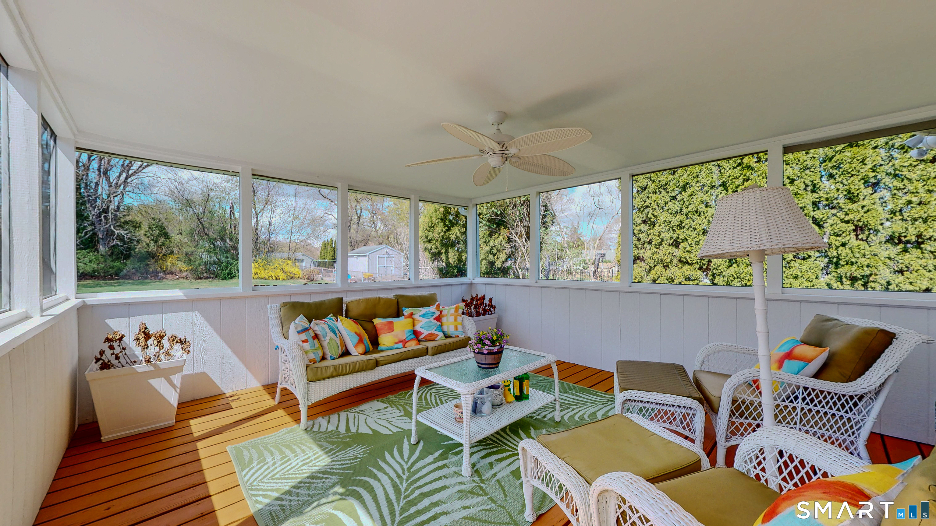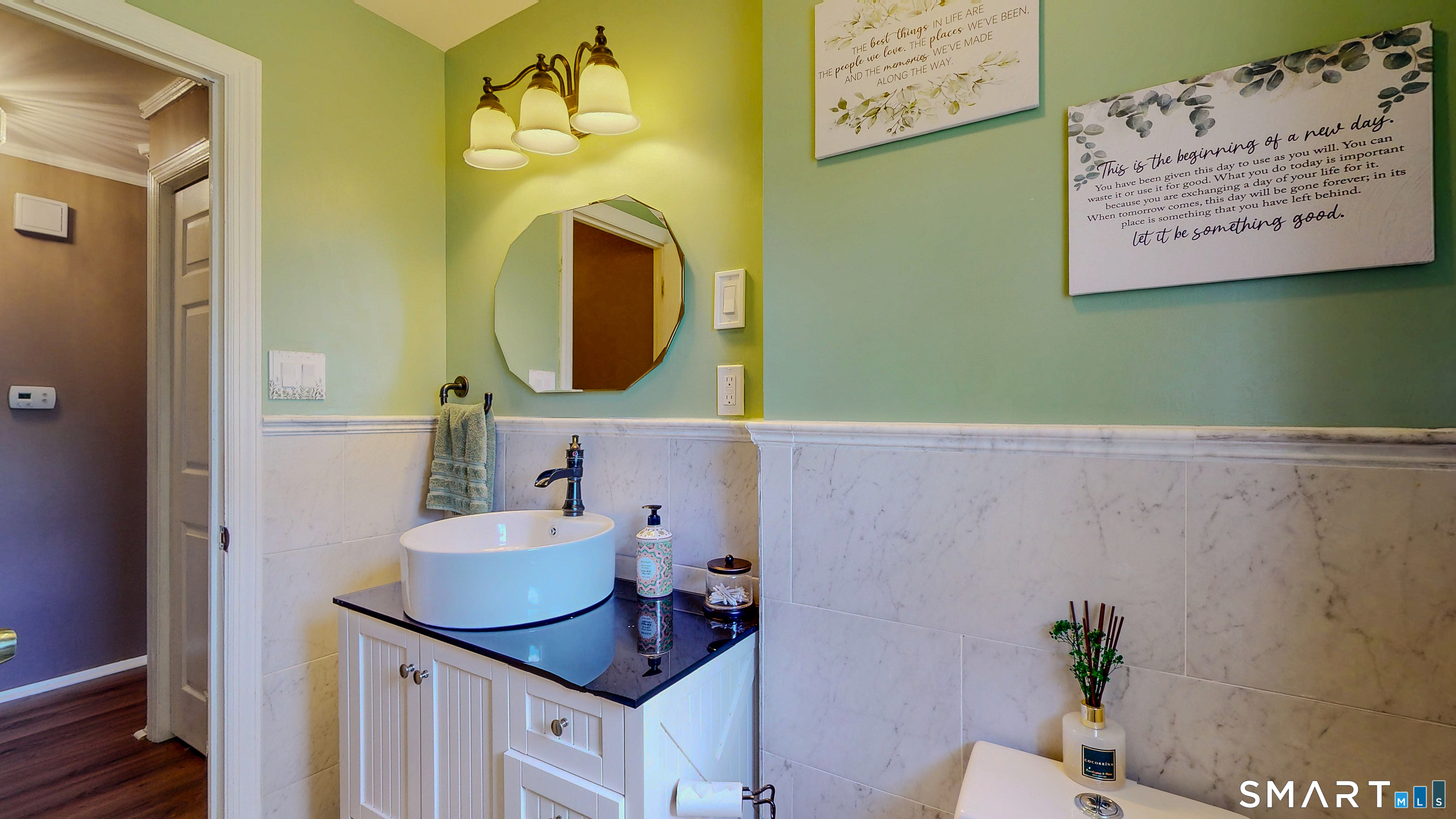 Welcome to this charming and spacious home, beautifully updated and truly move-in ready! The heart of the home is the stunning, fully remodeled kitchen featuring granite countertops, a farmhouse sink, stylish tile backsplash, and stainless steel appliances-perfect for everyday living and entertaining. The large living room offers warmth and character with a cozy fireplace and a bright bow window that fills the space with natural light. Just off the main living area, enjoy your morning coffee or unwind in the 3-season screened porch overlooking a private, level backyard-complete with a gorgeous slate patio ideal for relaxing or hosting guests. The finished lower level provides incredible flexibility and is perfect for a potential in-law setup, home office, or additional living space. Outside, the meticulously designed slate stone landscaping adds curb appeal and charm, while the new driveway and 1-car garage offer convenience. Additional features include an electronic dog fence, Ring cameras, and a security system-all included for peace of mind. This well-maintained home has seen many upgrades and has been cared for with pride. Ideally located near Trumbull's high rated schools: Jane Ryan Elementary is a 5-10 minute walk and Madison Middle School is only a mile away, beautiful parks, popular restaurants, and offering easy access for commuting to NYC and throughout Fairfield County, this home truly has it all.