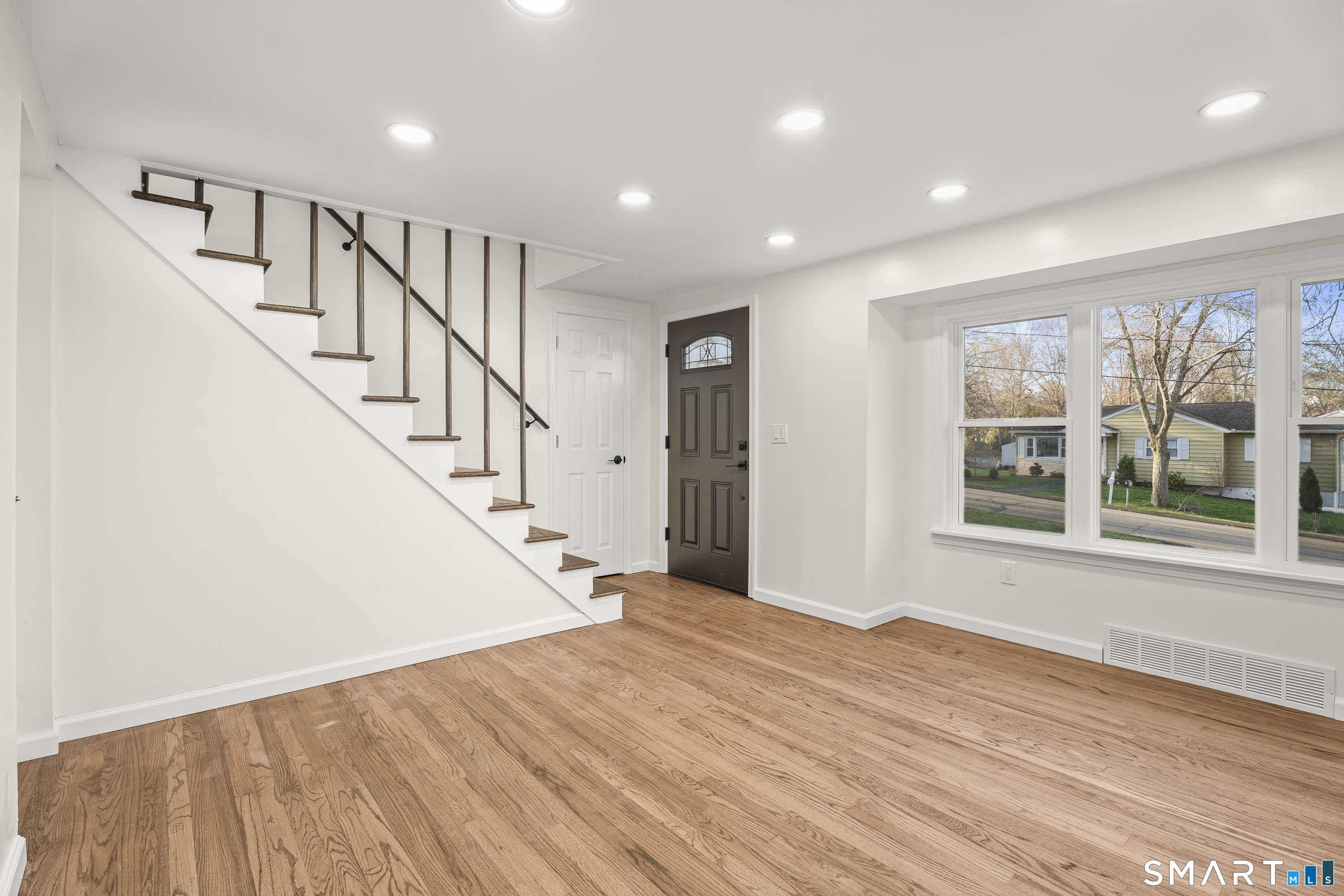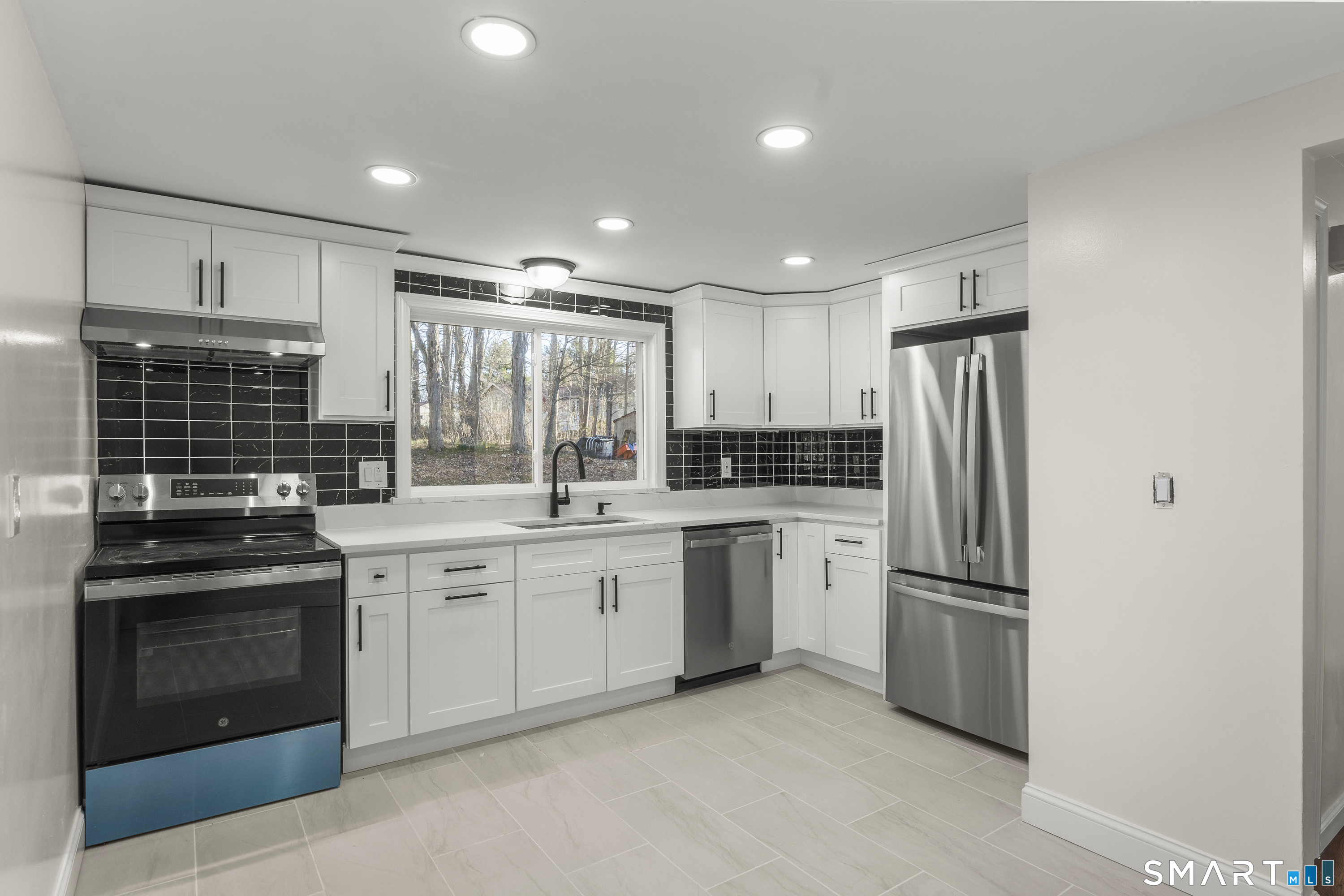 A fully remodeled Cape exudes charm and modern elegance, combining traditional design with contemporary updates. This lovely home features four spacious bedrooms, providing ample space and two bathrooms that were stylishly renovated, offering modern amenities and fixtures that enhance everyday comfort. The interior is bright and welcoming, showcasing an ideal layout that connects the living room, dining area, and a beautifully updated kitchen equipped with sleek appliances, quartz countertops, and ample storage space. Large windows allow natural light to flood the living spaces, creating a warm and inviting atmosphere. Central air conditioning ensures a comfortable environment year-round, making the home ideal for any season. Situated on a flat corner lot, this property features a well-maintained outdoor space, perfect for gatherings, gardening. List of upgrades include: brand new roof, siding, windows, furnace/AC, kitchen, bathrooms, floors and a freshly painted interior