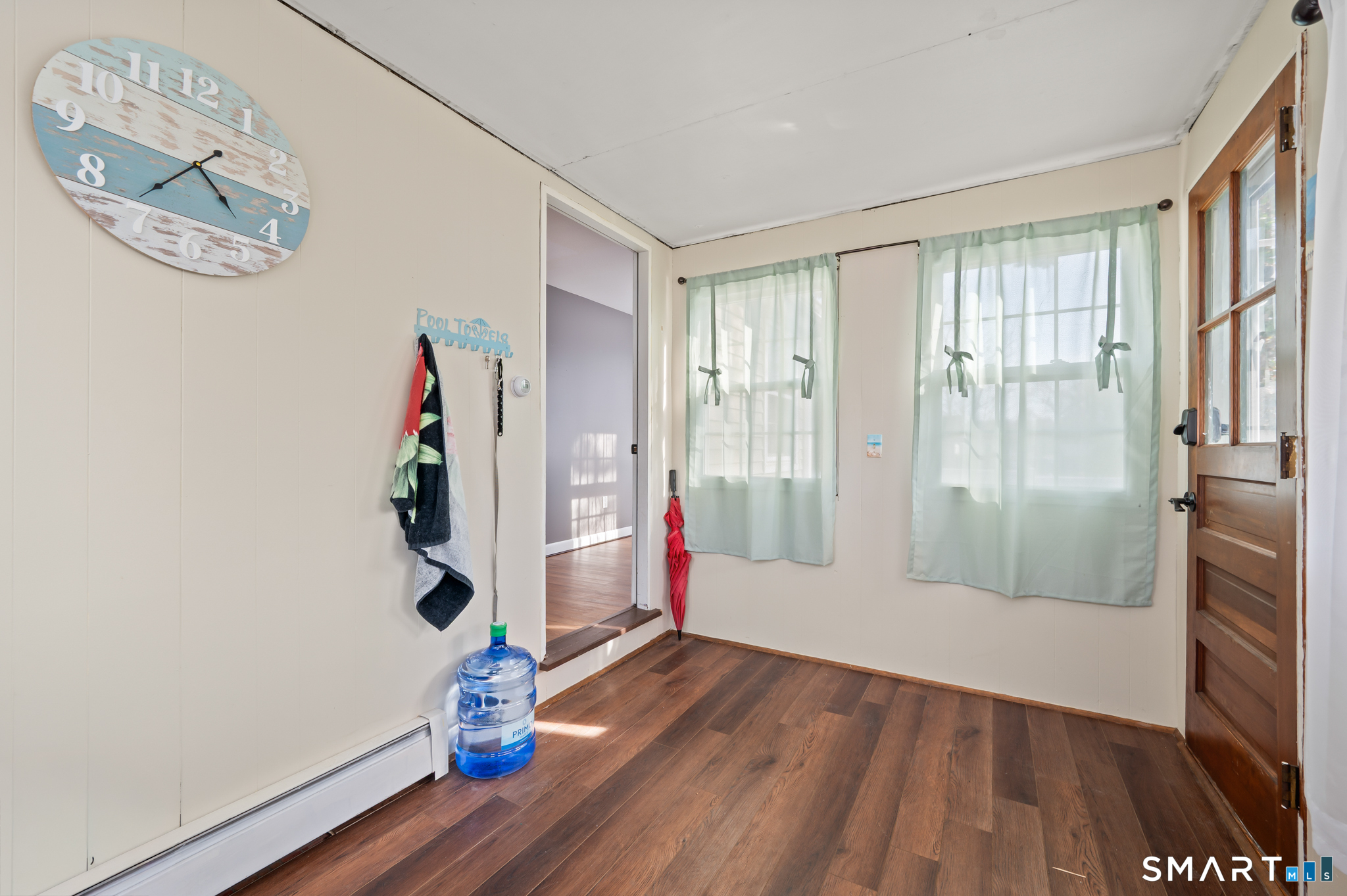 Welcome to 26 Doane St! This beautifully maintained 2-bedroom, 2-bath Cape-style home will grab your attention from the moment you arrive with an inviting large front porch that gives the home instant curb appeal. Inside, you'll find a bright and updated eat-in kitchen featuring crisp white cabinetry, stainless steel appliances, and plenty of space for your everyday needs. The main level offers a comfortable open living area filled with natural light from the bay window, as well as large custom bookshelves that really complete the space. You'll also find an additional room that can serve a variety of purposes, possibly even a 3rd future bedroom. The first floor also features a full bathroom as you continue through the main level toward the back porch. Upstairs, the second level provides two bedrooms and an additional full bath for your convenience! The finished lower level expands the home's functionality even further with a large recreation room / flex space ideal for a media room, home gym, office, guest overflow, or playroom. Outside, enjoy the welcoming porch, detached garage, and a nicely sized yard with an above ground pool and mature trees that add both character and privacy. This home offers more space and opportunity than meets the eye! Don't miss this wonderful opportunity to own a move-in ready home with charm, space, and flexibility in a desirable neighborhood.