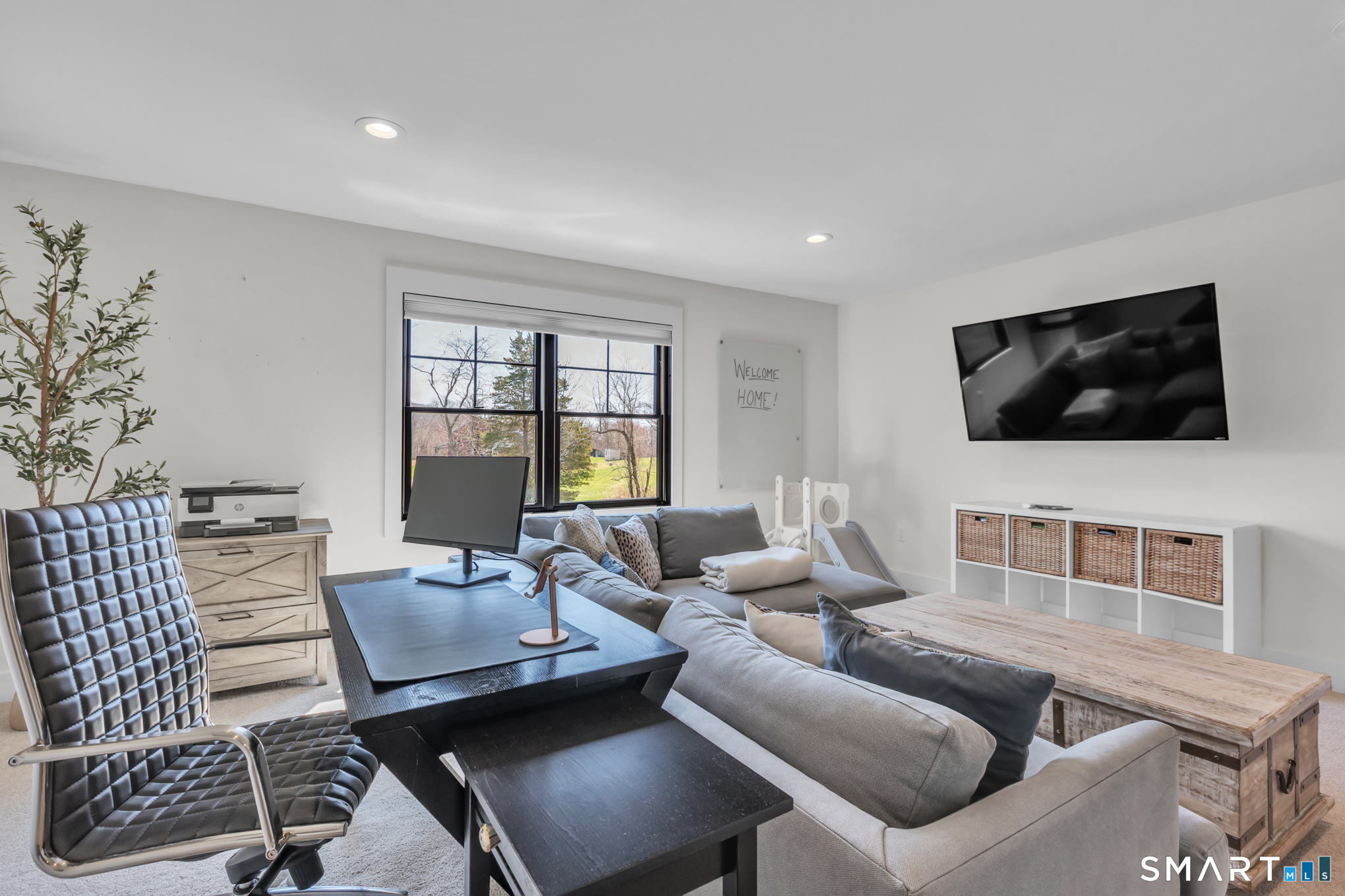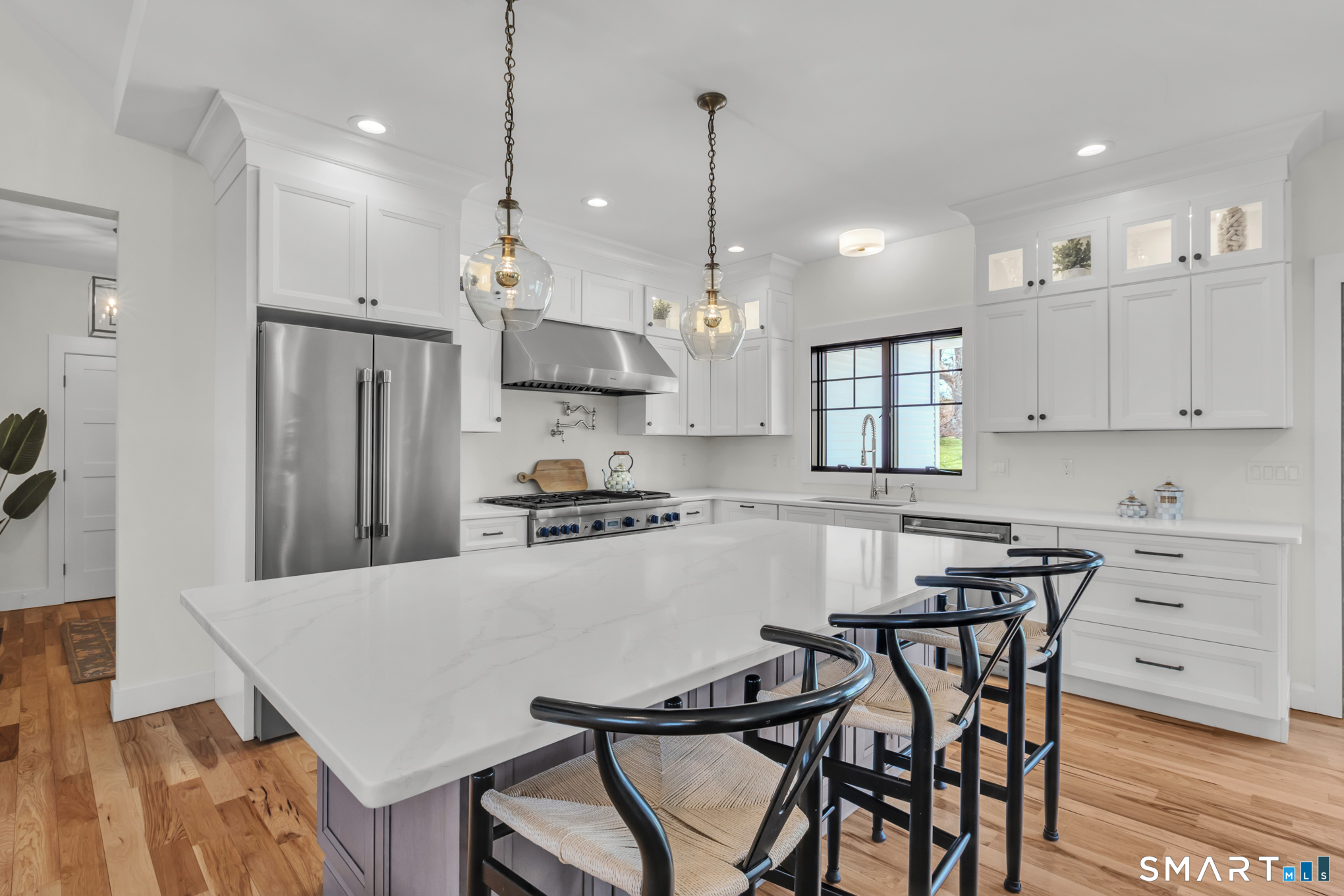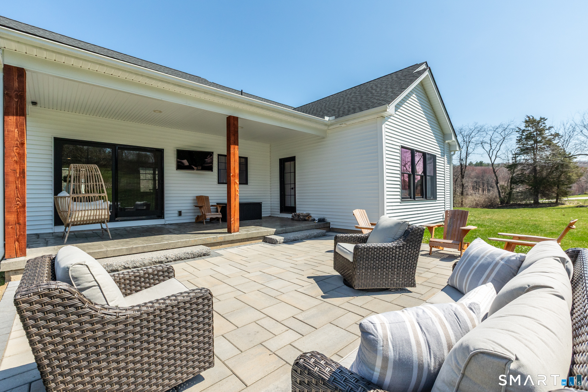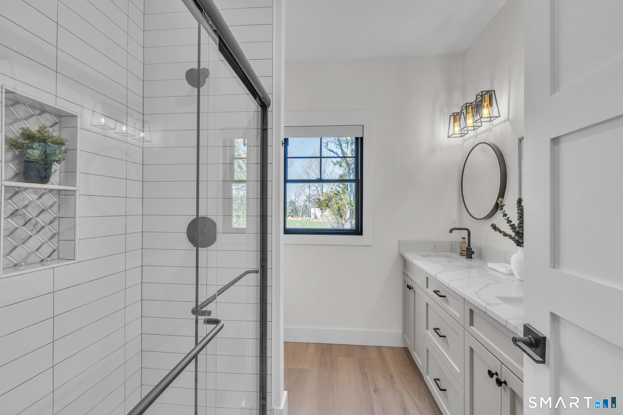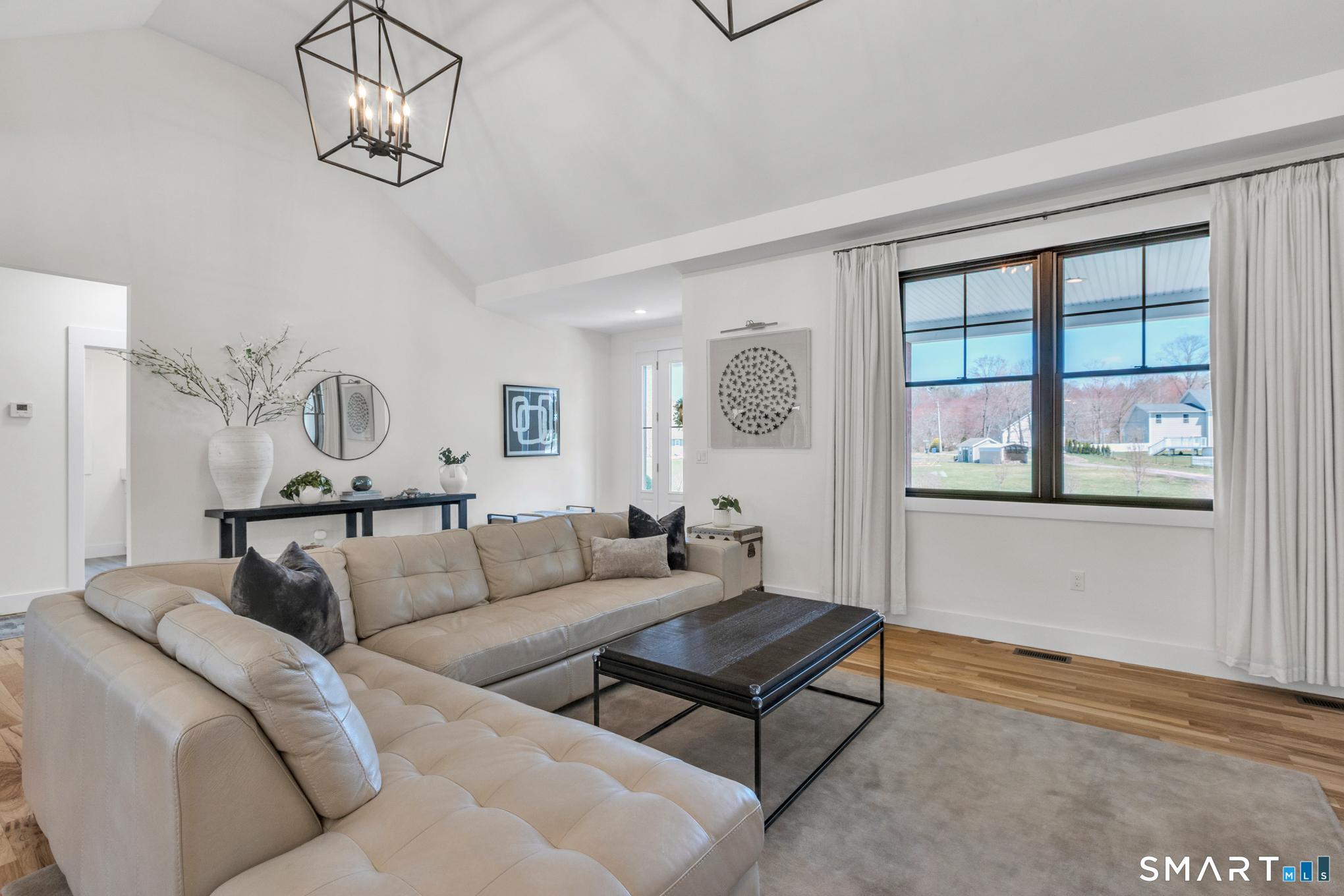 Welcome to 201 Mountain Street, Ellington - a striking modern farmhouse built in 2022 offering the perfect blend of thoughtful design, upscale finishes, and everyday functionality. Set on a beautiful 1.59-acre lot, this custom-built home delivers over 2,650 square feet of finished living space with an additional 2,100+ square feet in the expansive lower level ready for future finishing, recreation, or storage. The heart of the home is a beautifully designed chef's kitchen featuring an oversized quartz island, premium gas appliances, abundant custom cabinetry, and seamless flow into the dining and living areas-ideal for both everyday living and entertaining. Vaulted ceilings, wide-open spaces, and oversized windows fill the home with natural light while creating an airy, inviting feel throughout. The spacious primary suite offers a true retreat with a luxurious spa-like bathroom and generous walk-in closet. Two additional bedrooms provide flexibility for family, guests, or home office needs. Step outside to enjoy the covered rear patio overlooking the private backyard-perfect for relaxing or hosting in warmer months. With timeless curb appeal, high-end finishes, and room to expand in the massive basement, this nearly new home offers the rare opportunity to own modern construction without the wait of building. A standout offering in one of Ellington's most desirable settings. Subject to Sellers Finding Suitable Housing!