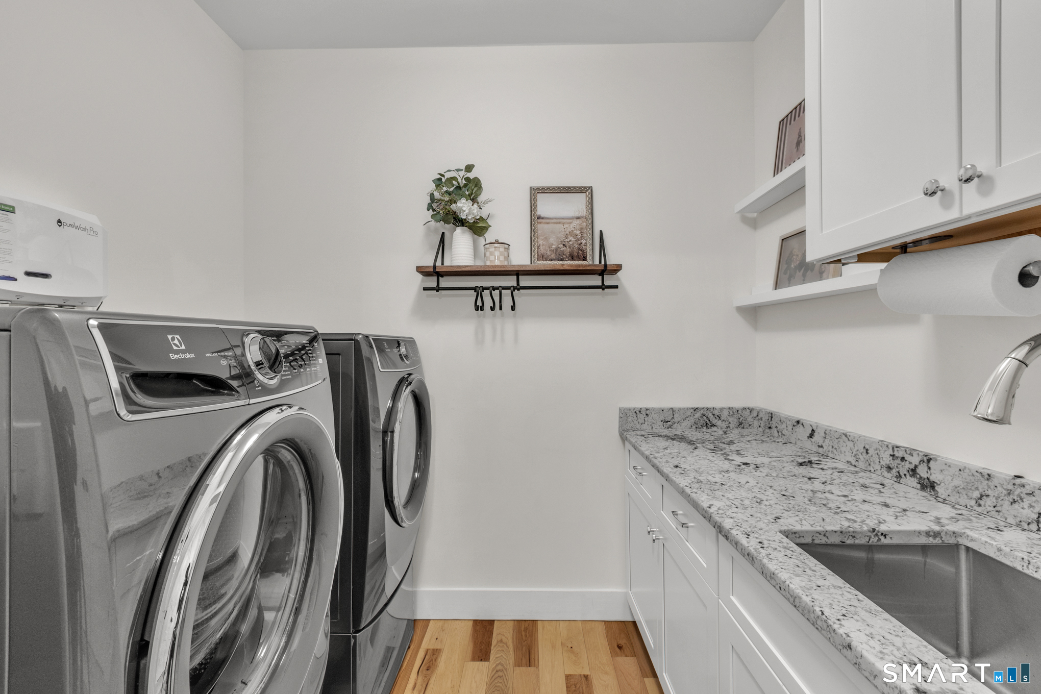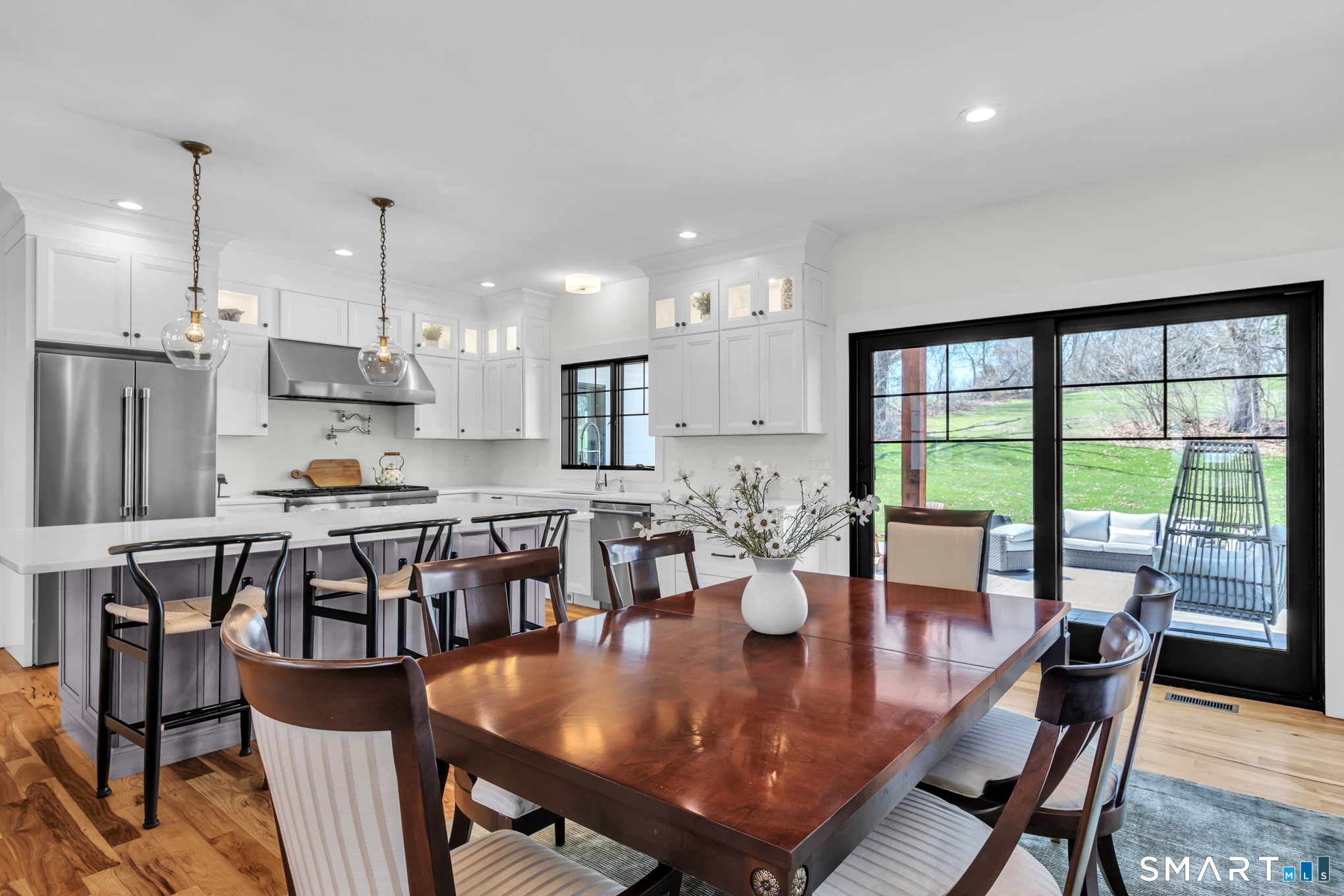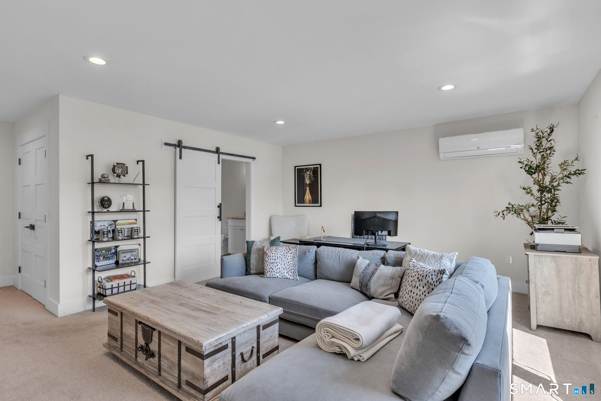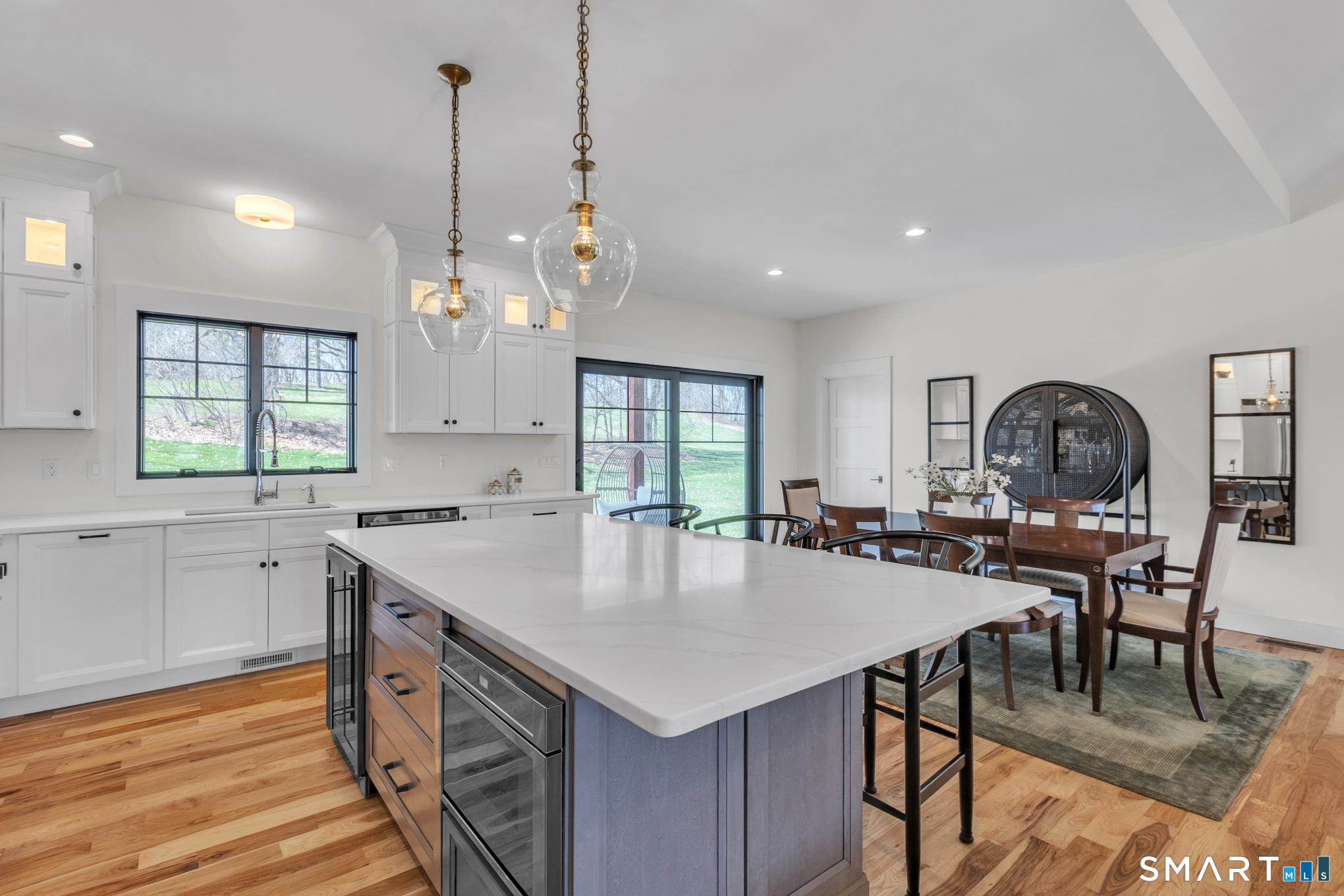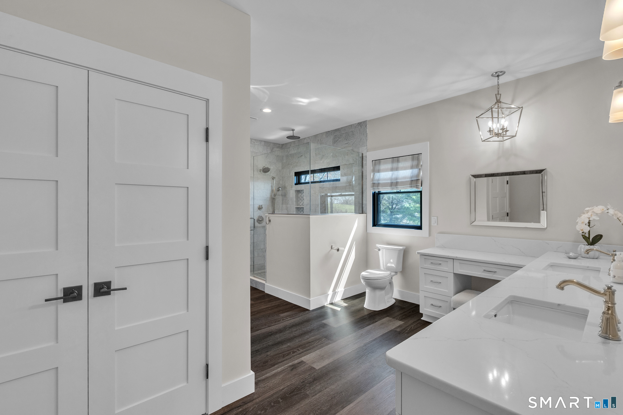 Welcome to 201 Mountain Street, Ellington - a striking modern farmhouse built in 2022 offering the perfect blend of thoughtful design, upscale finishes, and everyday functionality. Set on a beautiful 1.59-acre lot, this custom-built home delivers over 2,650 square feet of finished living space with an additional 2,100+ square feet in the expansive lower level ready for future finishing, recreation, or storage. The heart of the home is a beautifully designed chef's kitchen featuring an oversized quartz island, premium gas appliances, abundant custom cabinetry, and seamless flow into the dining and living areas-ideal for both everyday living and entertaining. Vaulted ceilings, wide-open spaces, and oversized windows fill the home with natural light while creating an airy, inviting feel throughout. The spacious primary suite offers a true retreat with a luxurious spa-like bathroom and generous walk-in closet. Two additional bedrooms provide flexibility for family, guests, or home office needs. Step outside to enjoy the covered rear patio overlooking the private backyard-perfect for relaxing or hosting in warmer months. With timeless curb appeal, high-end finishes, and room to expand in the massive basement, this nearly new home offers the rare opportunity to own modern construction without the wait of building. A standout offering in one of Ellington's most desirable settings. Subject to Sellers Finding Suitable Housing!