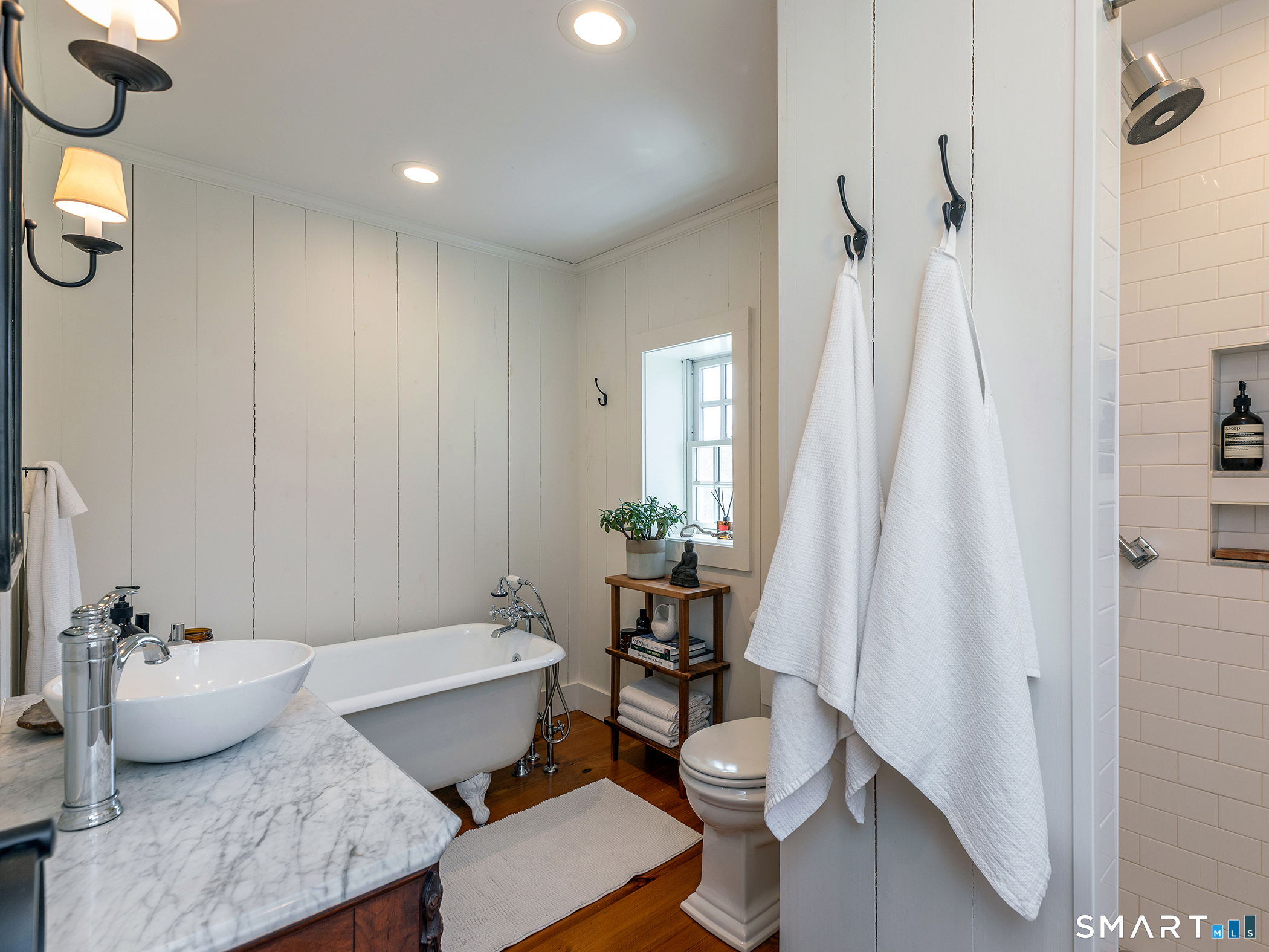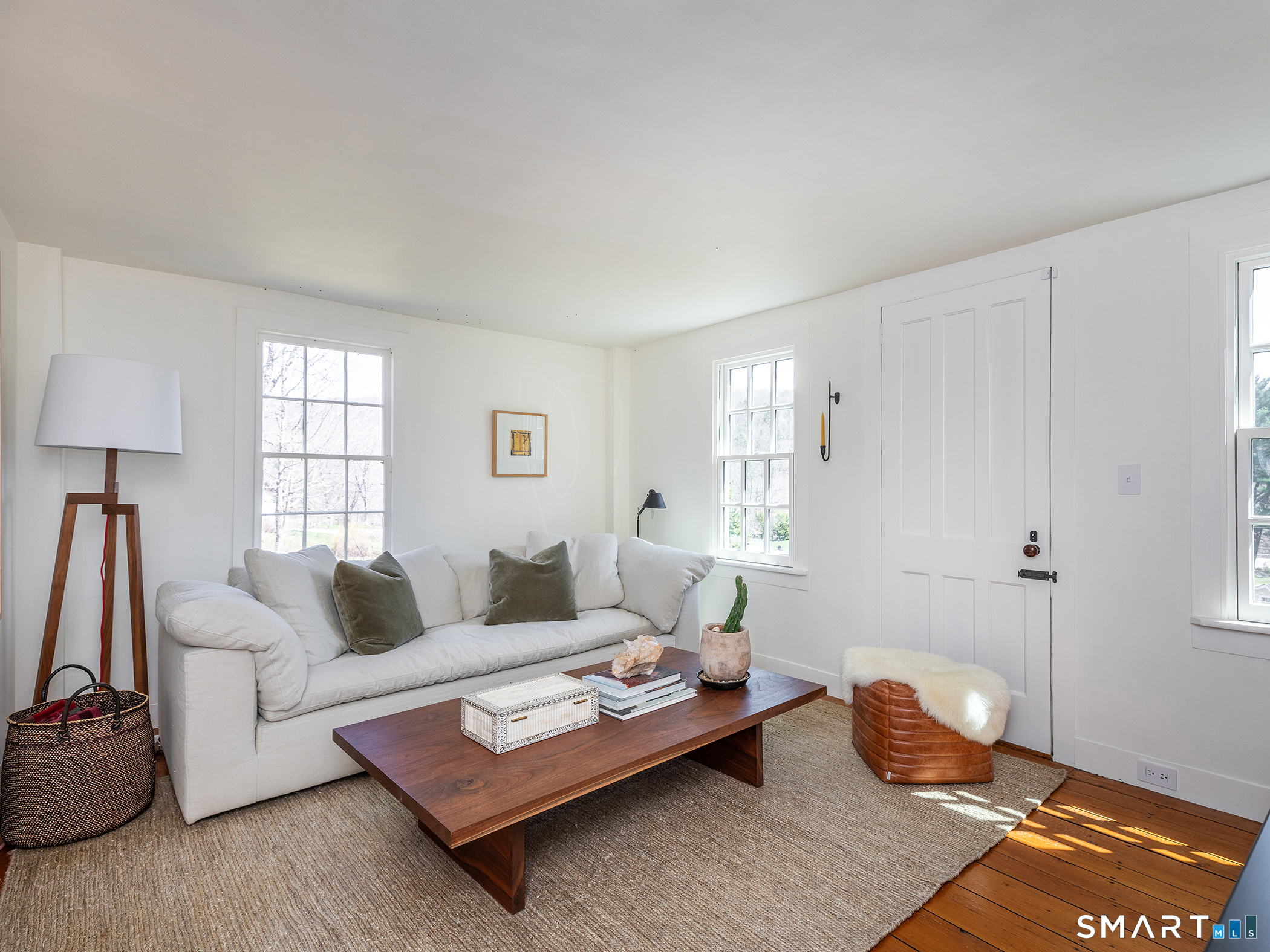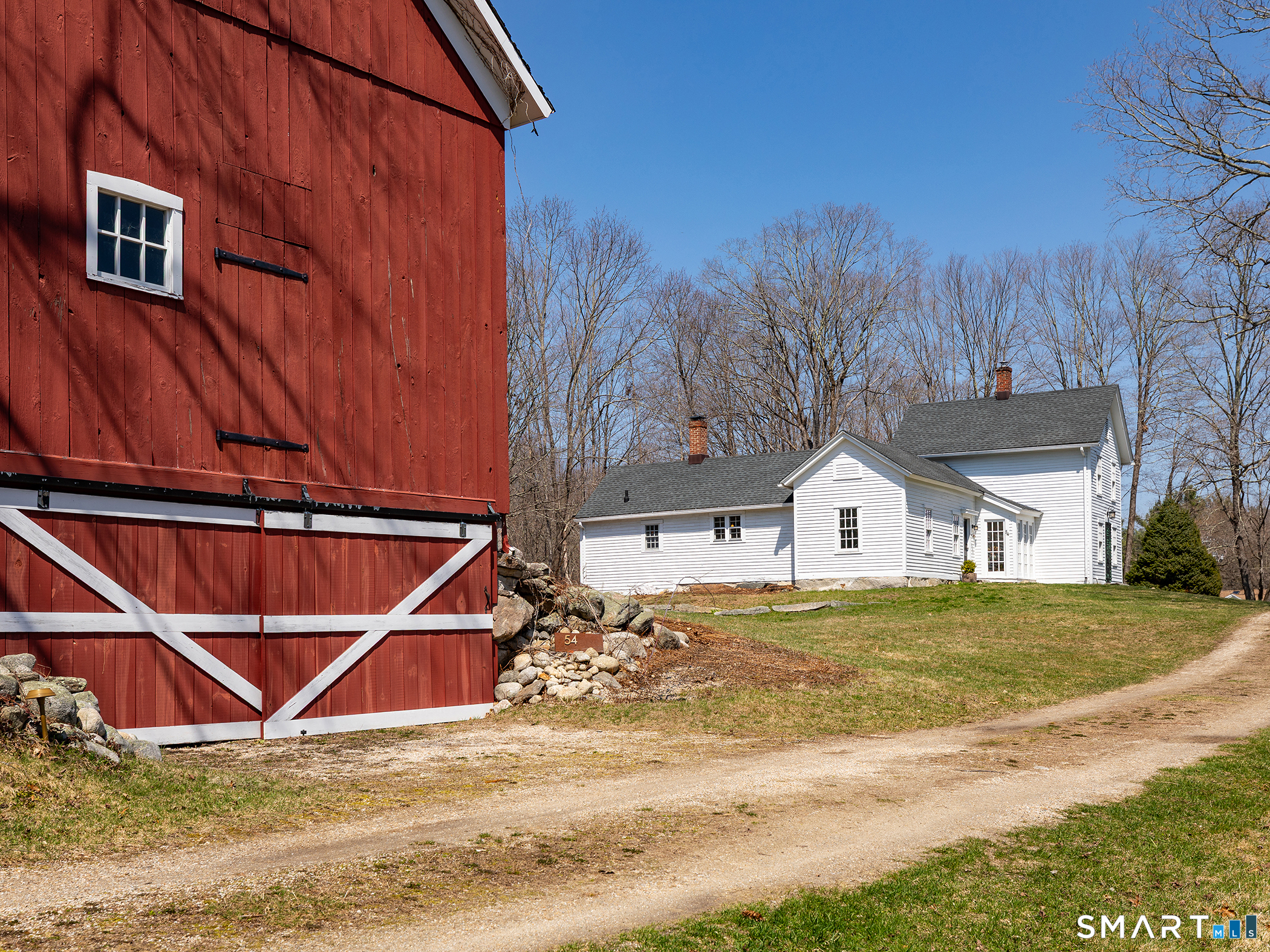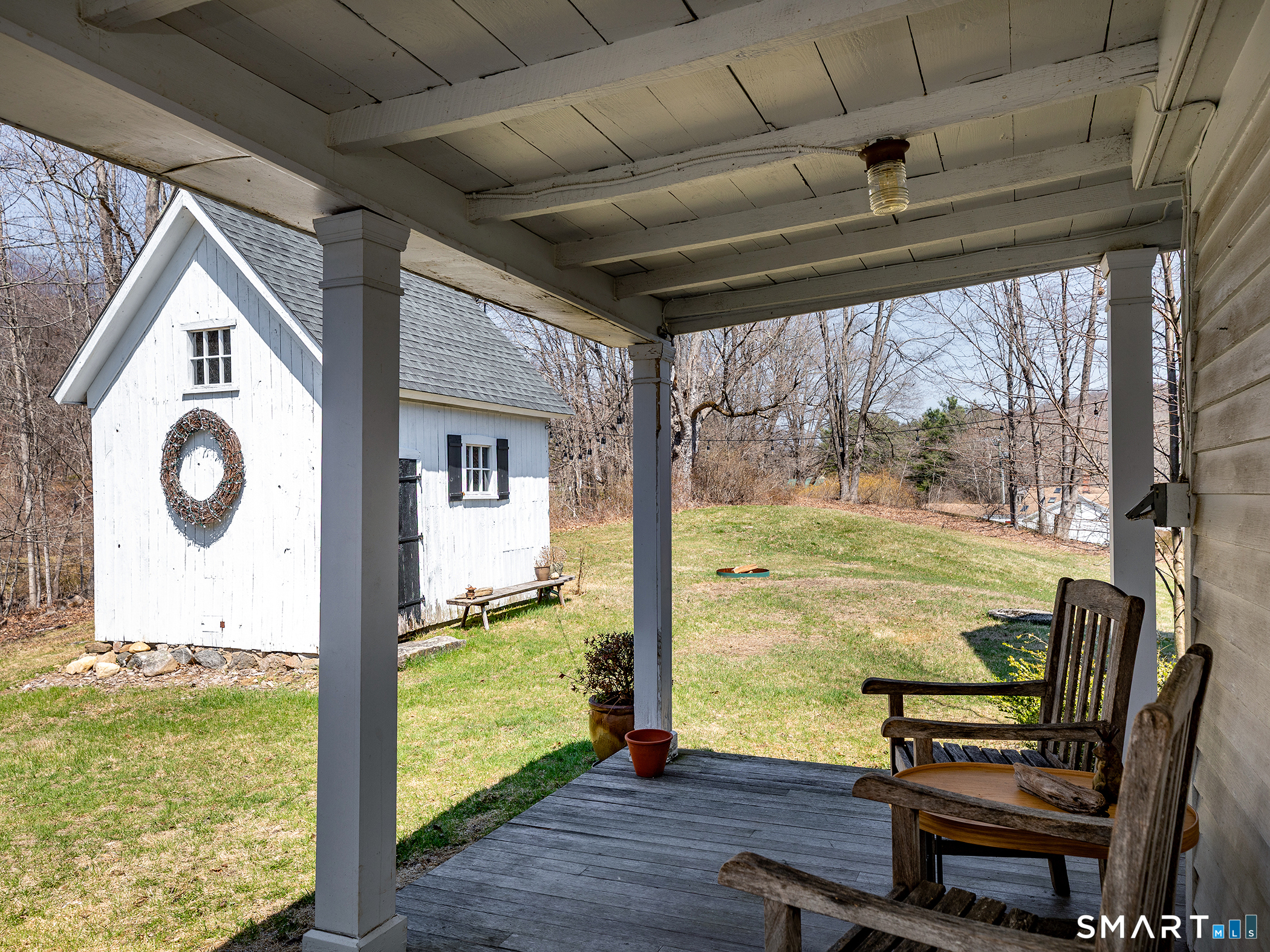 Charming antique in Washington's picturesque New Preston-Woodville neighborhood, this beautifully restored c.1866 Colonial offers a turnkey 3 bdrm, 1 bath country retreat, suited for a refined weekend escape from the city. Gracefully set atop a gentle knoll and framed by a classic red antique barn & "hobby shed", the property evokes the timeless qualities of a quintessential New England countryside scene. Inside, the home has thoughtfully preserved its historic character. The inviting eat-in kitchen serves as the heart of the home, featuring a wood-burning fireplace and spacious pantry. Just beyond, a dedicated laundry room with newer washer & dryer and a beautifully renovated full bath with soaking tub and separate shower add convenience and style. The main level also offers a convenient bedroom, along with generously scaled living, dining, and den spaces filled with natural light. Upstairs there are 2 add'l bedrooms and a spacious landing; ideal for a home office or reading nook, providing comfortable accommodations for guests. Original hardwood floors throughout and abundant southern exposure create a warm, airy ambiance in every room. A covered rear porch invites relaxed outdoor living in all seasons. Large yard with fire pit. The antique barn offers versatility, with space for storage, a workshop or studio, and parking for one to two cars. Enjoy the best of Litchfield County living just min from Lake Waramaug, the trails of Steep Rock Preserve, and skiiing at Mohawk Mt.