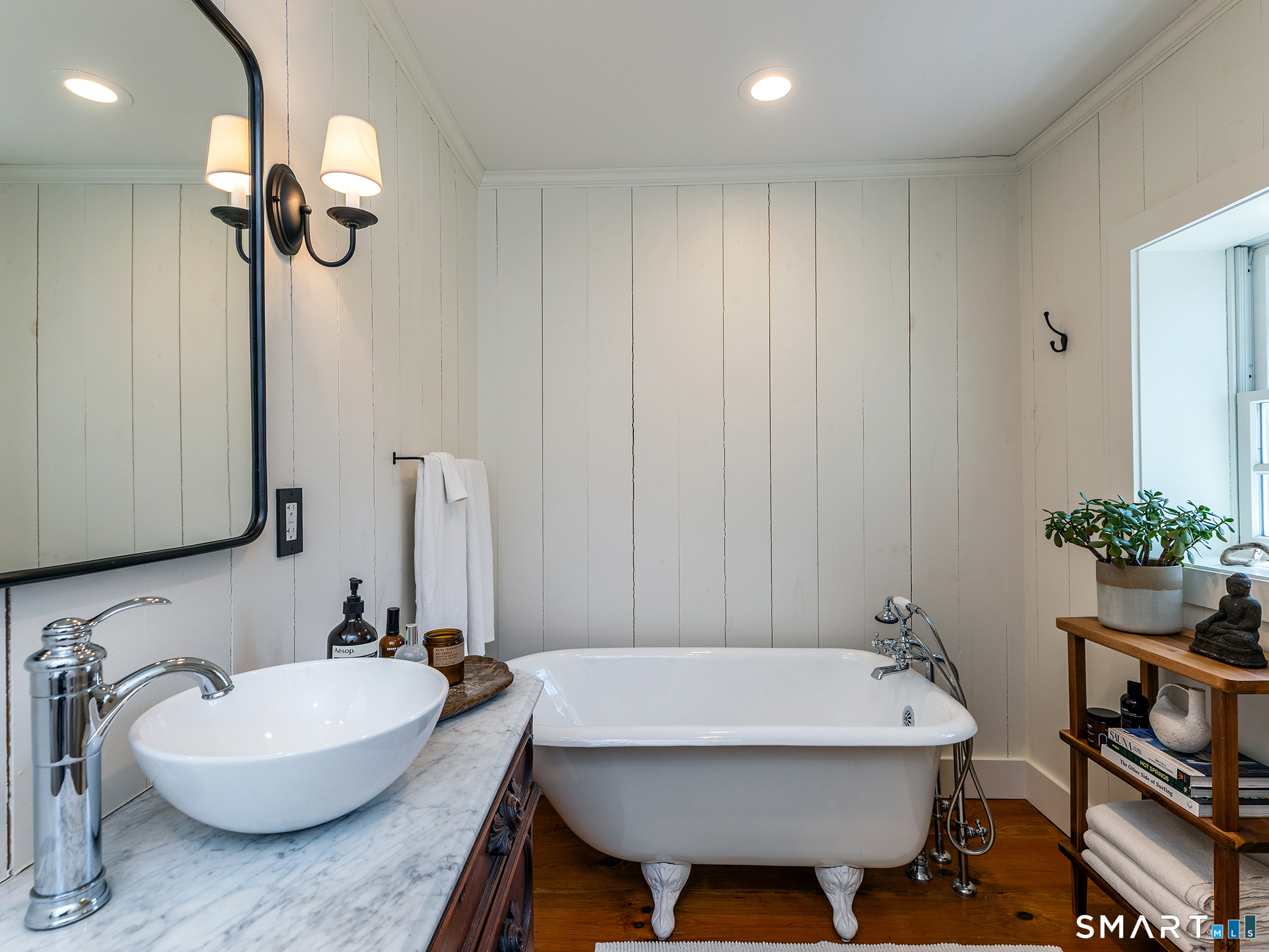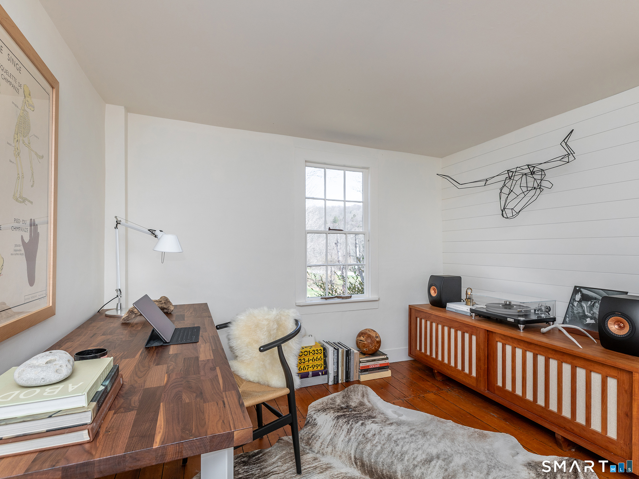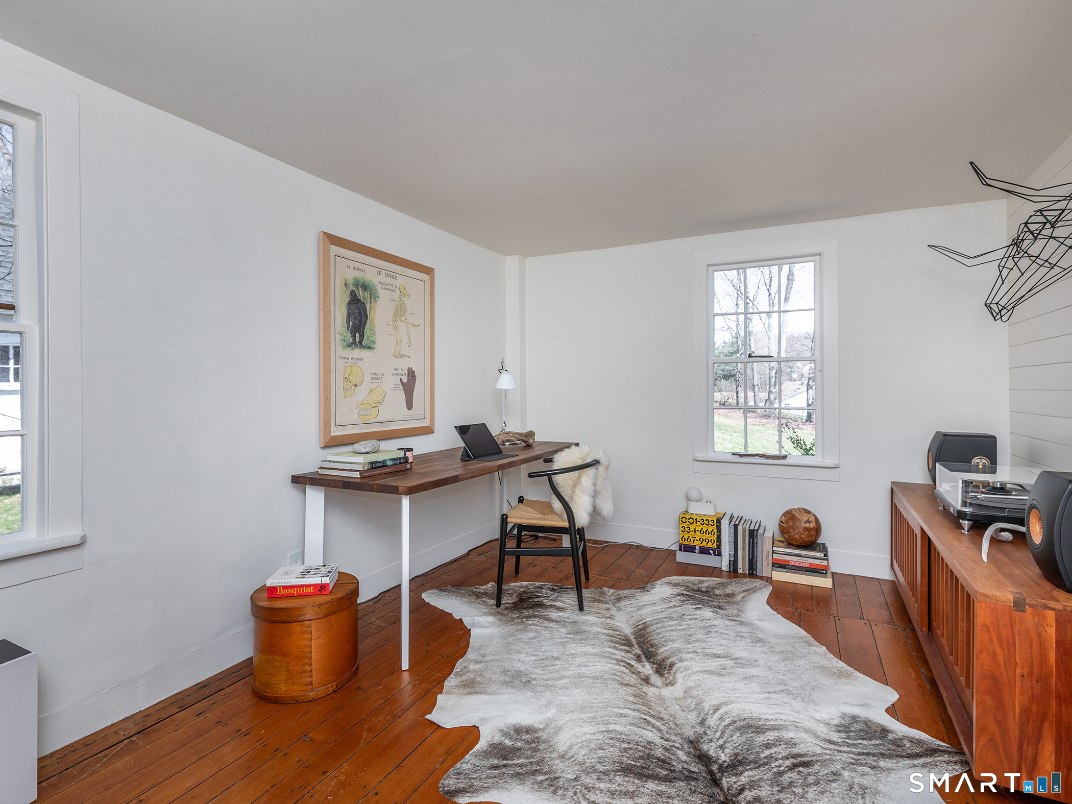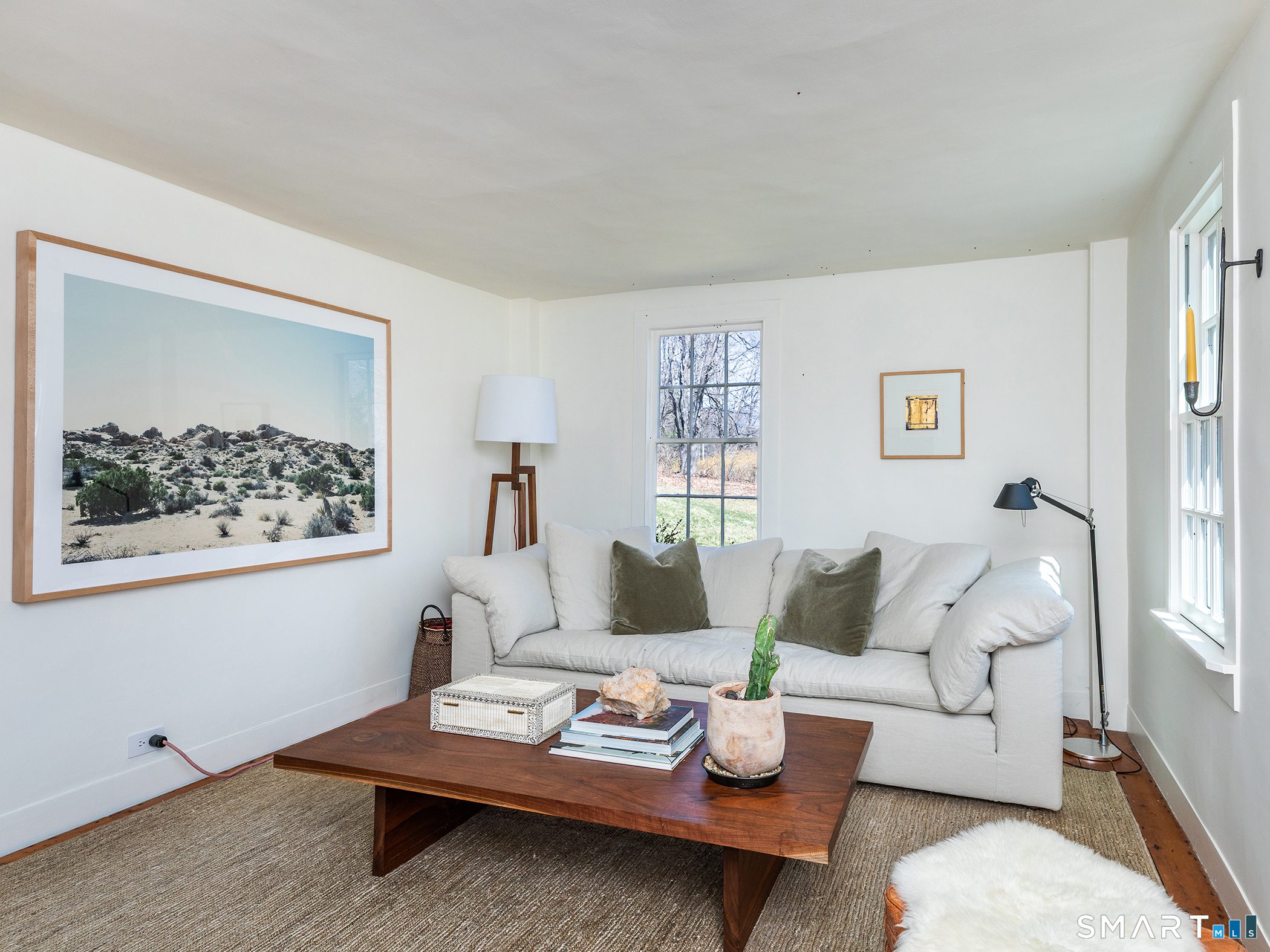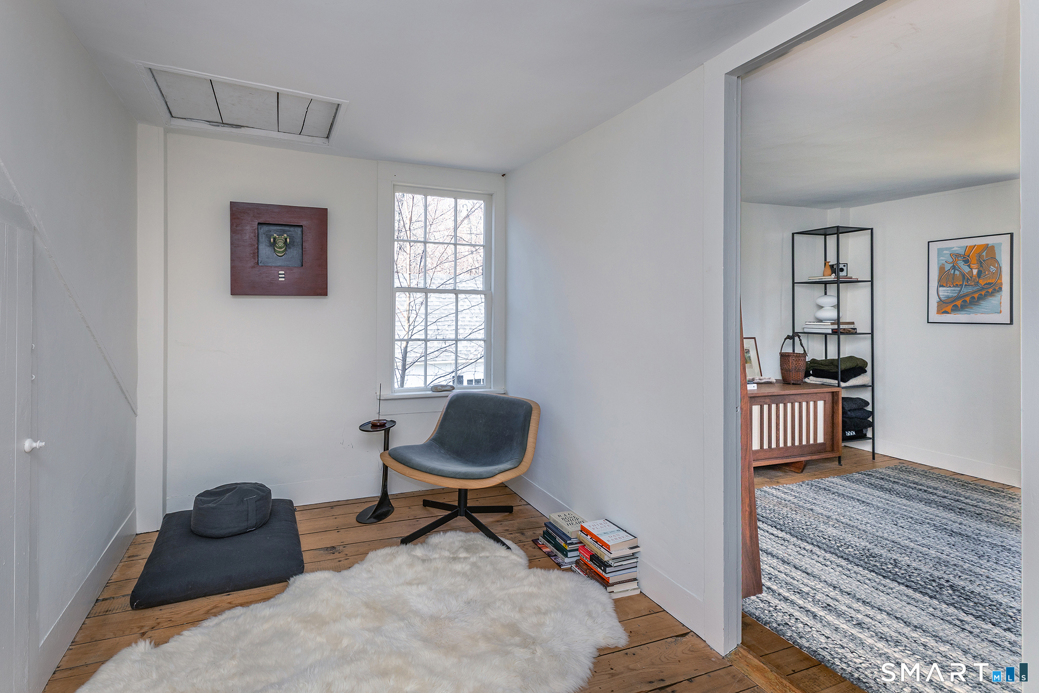 Charming antique in Washington's picturesque New Preston-Woodville neighborhood, this beautifully restored c.1866 Colonial offers a turnkey 3 bdrm, 1 bath country retreat, suited for a refined weekend escape from the city. Gracefully set atop a gentle knoll and framed by a classic red antique barn & "hobby shed", the property evokes the timeless qualities of a quintessential New England countryside scene. Inside, the home has thoughtfully preserved its historic character. The inviting eat-in kitchen serves as the heart of the home, featuring a wood-burning fireplace and spacious pantry. Just beyond, a dedicated laundry room with newer washer & dryer and a beautifully renovated full bath with soaking tub and separate shower add convenience and style. The main level also offers a convenient bedroom, along with generously scaled living, dining, and den spaces filled with natural light. Upstairs there are 2 add'l bedrooms and a spacious landing; ideal for a home office or reading nook, providing comfortable accommodations for guests. Original hardwood floors throughout and abundant southern exposure create a warm, airy ambiance in every room. A covered rear porch invites relaxed outdoor living in all seasons. Large yard with fire pit. The antique barn offers versatility, with space for storage, a workshop or studio, and parking for one to two cars. Enjoy the best of Litchfield County living just min from Lake Waramaug, the trails of Steep Rock Preserve, and skiiing at Mohawk Mt.