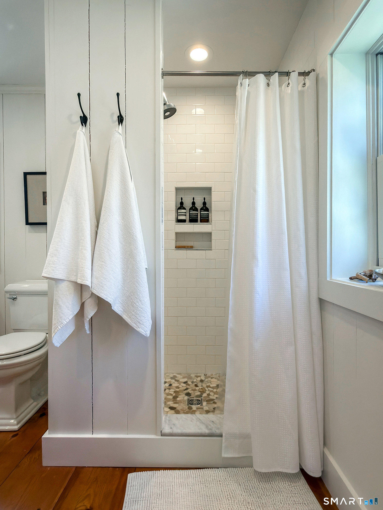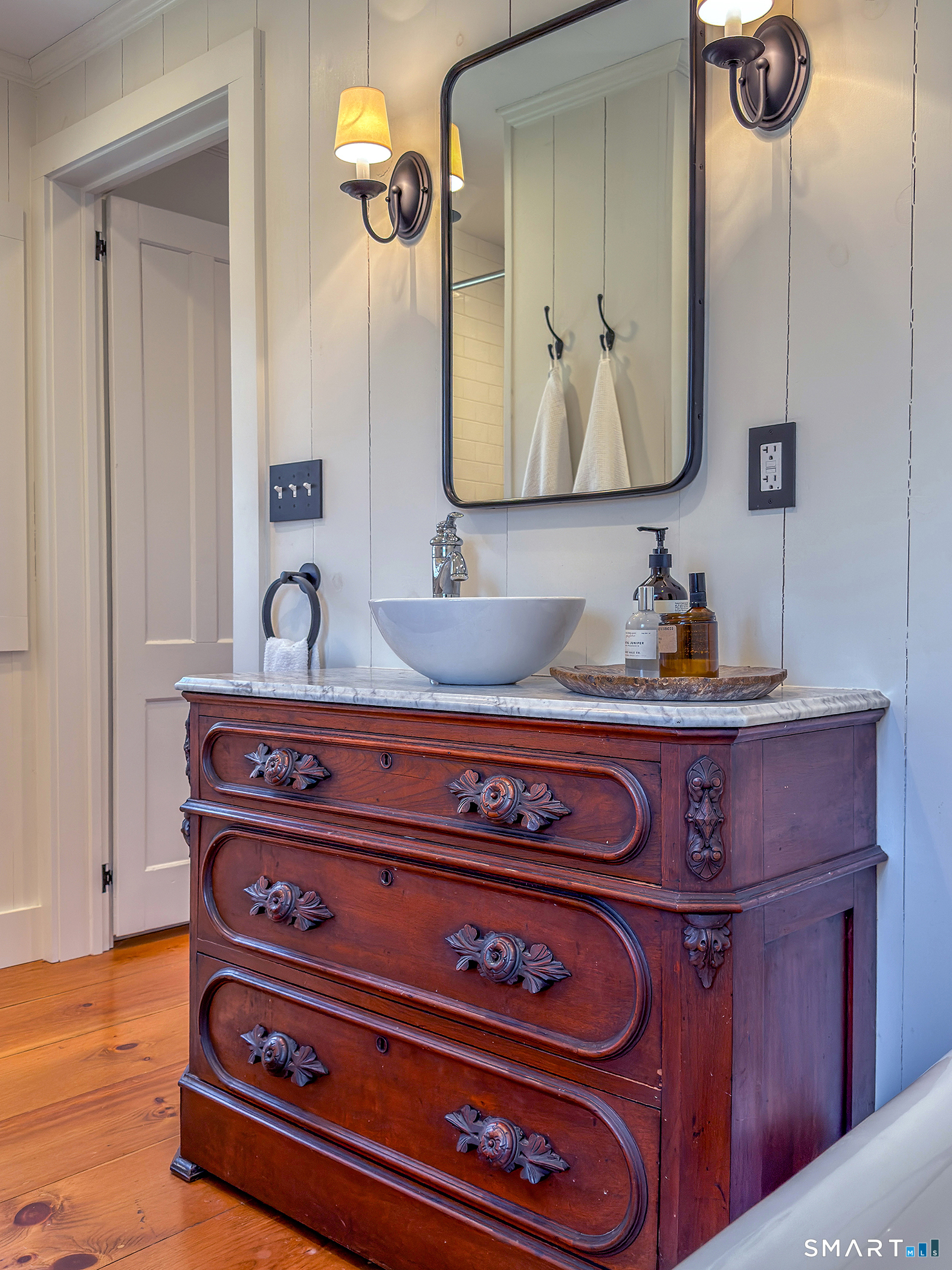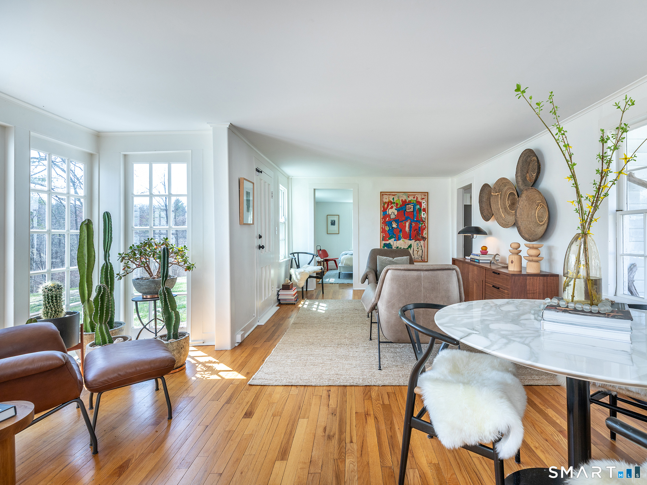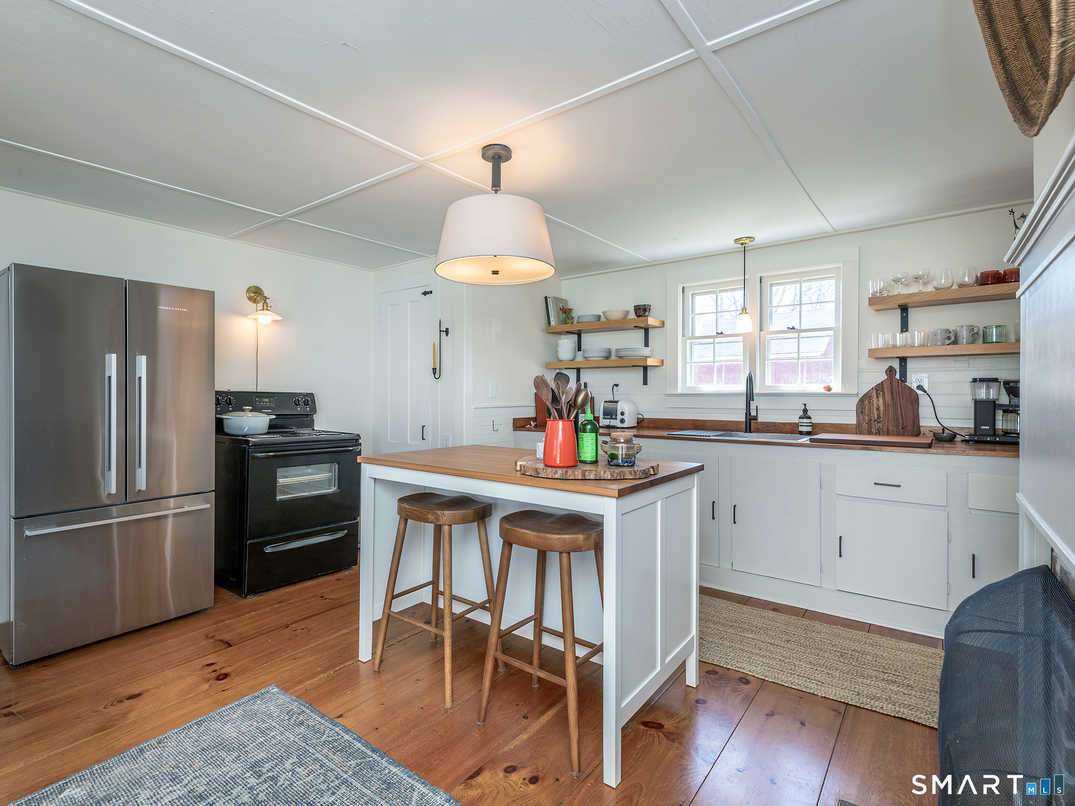 Charming antique in Washington's picturesque New Preston-Woodville neighborhood, this beautifully restored c.1866 Colonial offers a turnkey 3 bdrm, 1 bath country retreat, suited for a refined weekend escape from the city. Gracefully set atop a gentle knoll and framed by a classic red antique barn & "hobby shed", the property evokes the timeless qualities of a quintessential New England countryside scene. Inside, the home has thoughtfully preserved its historic character. The inviting eat-in kitchen serves as the heart of the home, featuring a wood-burning fireplace and spacious pantry. Just beyond, a dedicated laundry room with newer washer & dryer and a beautifully renovated full bath with soaking tub and separate shower add convenience and style. The main level also offers a convenient bedroom, along with generously scaled living, dining, and den spaces filled with natural light. Upstairs there are 2 add'l bedrooms and a spacious landing; ideal for a home office or reading nook, providing comfortable accommodations for guests. Original hardwood floors throughout and abundant southern exposure create a warm, airy ambiance in every room. A covered rear porch invites relaxed outdoor living in all seasons. Large yard with fire pit. The antique barn offers versatility, with space for storage, a workshop or studio, and parking for one to two cars. Enjoy the best of Litchfield County living just min from Lake Waramaug, the trails of Steep Rock Preserve, and skiiing at Mohawk Mt.