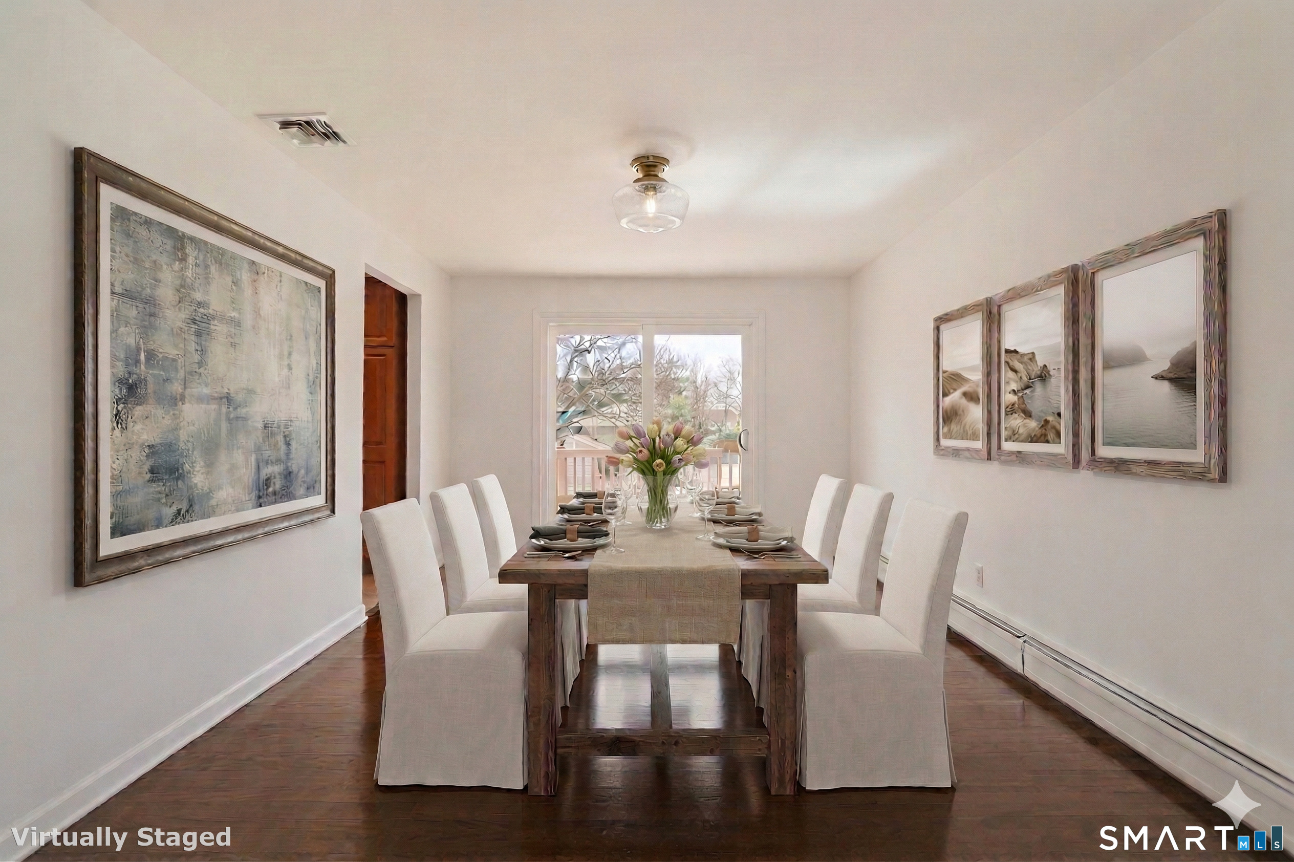 Welcome home to 195 Post Oak Road, a charming and updated ranch located in the desirable North End of Stratford. This home blends classic comfort with significant modern upgrades, featuring a newer roof, siding, windows, and garage doors for ultimate peace of mind. As you enter, you are greeted by a sun-drenched living room featuring newly refinished hardwood floors and a cozy brick fireplace. The entire interior has been freshly painted, offering a bright and clean feel throughout. The seamless flow leads into the dining area and an eat-in kitchen complete with a new backsplash, ample cabinetry, and stainless steel appliances. The main level hosts three spacious bedrooms, all boasting these same newly refinished hardwood floors, and a full bathroom with new vanity. Downstairs, the expansive unfinished basement offers incredible potential for a home gym, workshop, or future finished living space. This home is truly move-in ready, equipped with central air conditioning for summer comfort and efficient natural gas heating. Located in a quiet neighborhood with virtually no through-traffic, this home is perfectly situated less than a mile away from Bunnell High School and Eli Whitney Elementary. Enjoy easy access to highways, shopping, restaurants, parks, and all that Stratford has to offer in this well-maintained, turn-key gem.