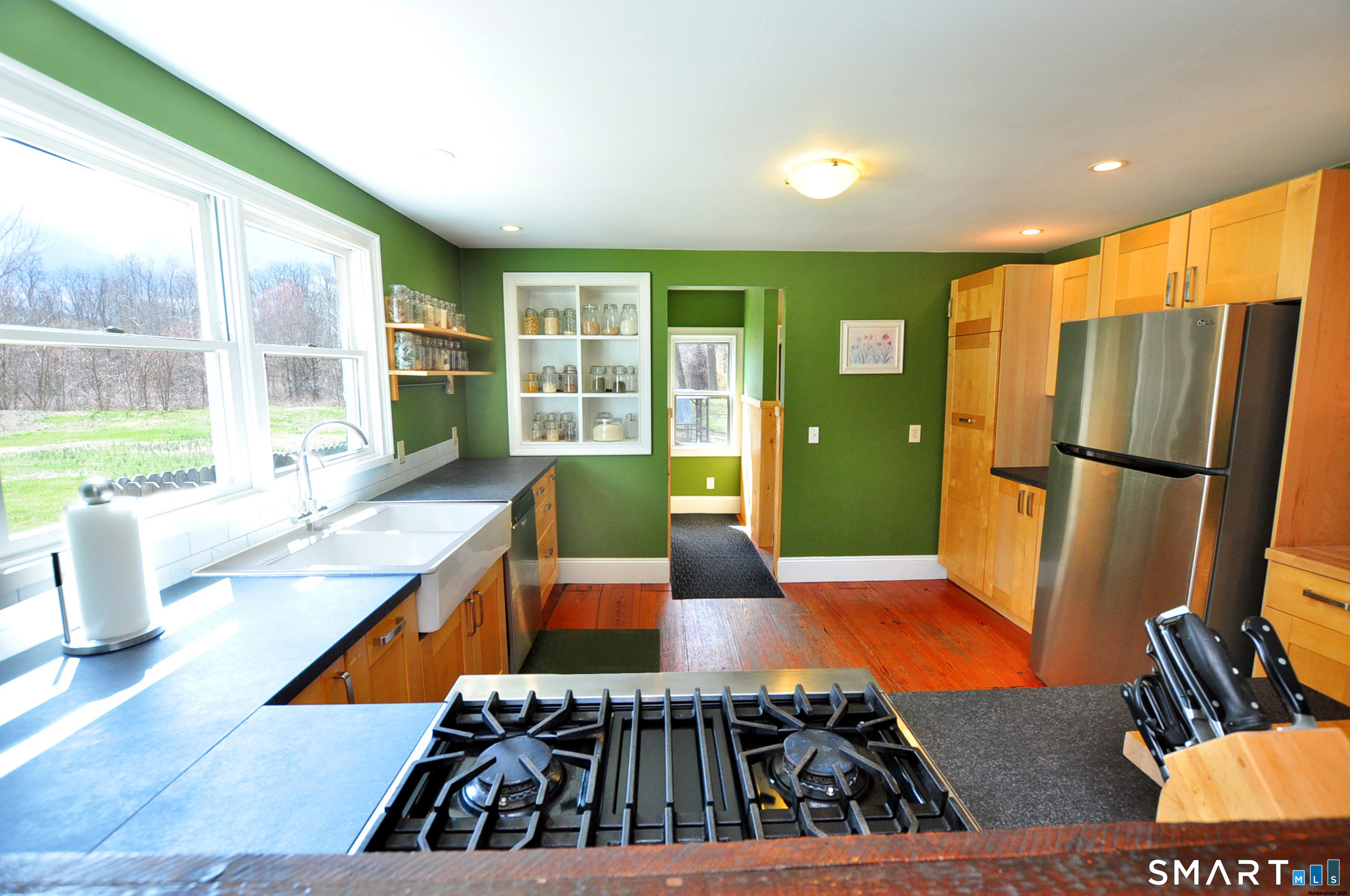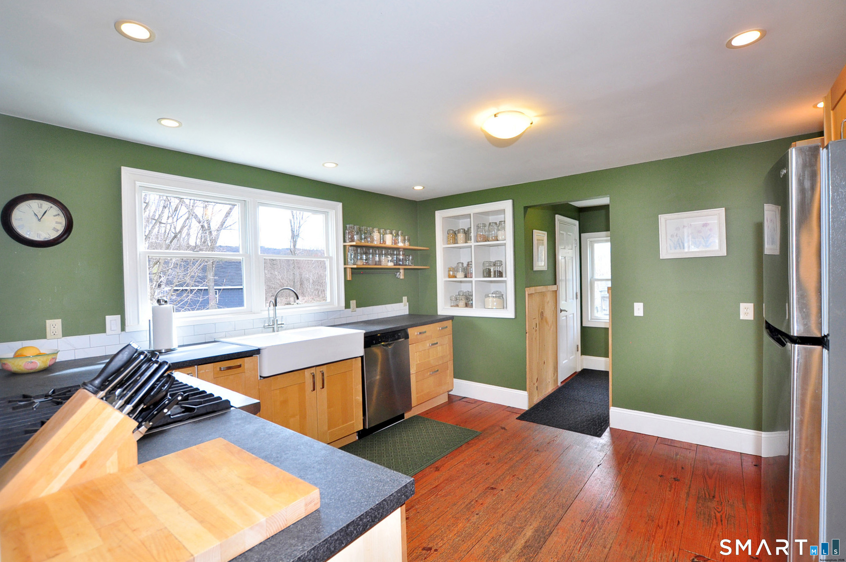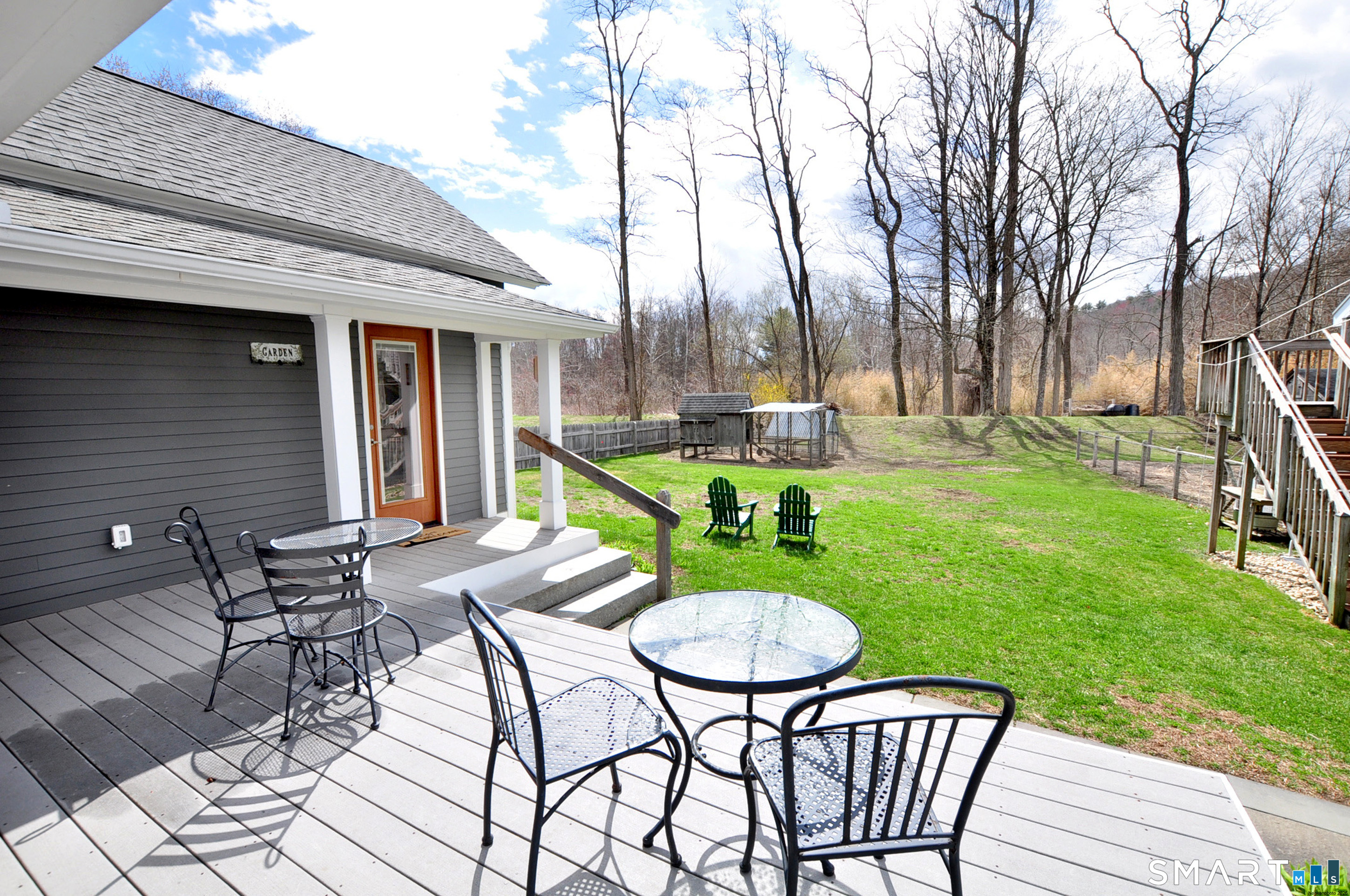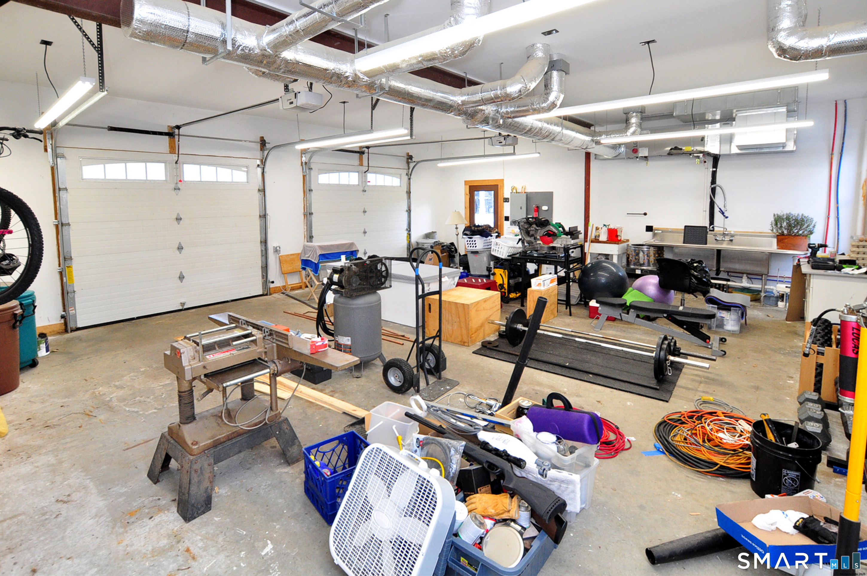 Welcome to 71 Cottage St! Offering a rare blend of charm and modern functionality, this well-maintained property features a single-family home complemented by a newer in-law studio apartment above an oversized detached 2-car garage. Set on .5 acres, this special home provides an elevated living experience with flexibility for extended family, multi-generational living, or income potential. The main home offers a warm and inviting layout with a living room equipped with wideboard flooring a wood burning stove, and open to the kitchen. The living room also provides access to a covered porch and your beautiful back yard. The kitchen features stainless steel appliances, a propane stove, porcelain farmhouse sink, new laminate countertops, built-ins, and plenty of storage. A convenient laundry room with exterior access and a storage bench is located just off the kitchen. The main level also includes a half bath with beadboard molding, a first-floor bedroom, and an additional flexible room currently used as a gym yet ideal for a family room, office, or formal living space. Upstairs, you will find three additional rooms for your choice of bedroom space, and a full bathroom remodeled in 2019 with an updated vanity. Additional improvements and features include a new septic tank (2023), roof (2017), boiler (2016), replacement windows, and a 200-amp electrical panel. The detached 2-car garage features high ceilings, oversized doors, and a stainless steel sink. Above the garage,