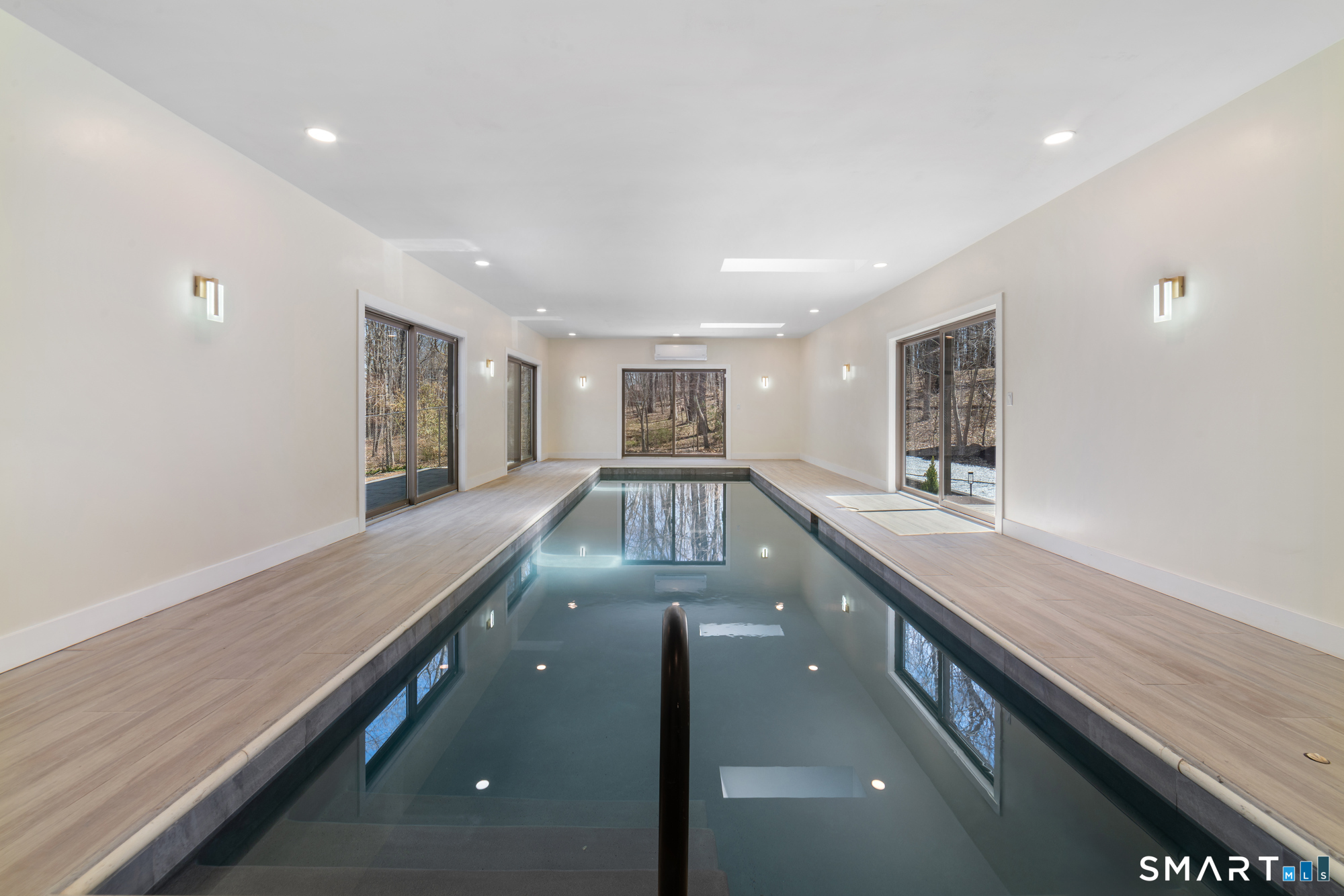 Own your own little oasis! Set back in the woods of guilford on 3.5 acres you have a ton of privacy with this impressive home. As you walk in, you are greeted by a spacious living room which features a new addition making this large room great for entertaining. Throughout the dining room and kitchen you see flawless finishes adding to the newly renovated kitchen with a propane gas cook top and new stainless steel appliances throughout. As you make your way down the hall you have each bedroom with its very own newly renovated full bathroom. Once you walk in the primary bedroom you are greeted by loads of natural sun light beaming in this enormous primary suite. As you walk around the room you see his and her closets as well as the beautifully renovated primary bathroom with stand up shower and tub as well as a his and her sink giving tons of versatility. A standout feature is the indoor heated pool, allowing for year round enjoyment, while the expansive in-law unit in the lower level offers flexible living arrangements for extended family or guests. Throughout the home are new floors and touches that really make this modern home move in ready. Completing the home is a newly built two-car garage, making this move in ready residence a rare and exceptional opportunity. Located very close to Lake Quonnipaug with it's very own beach area and dock making this a true getaway while still being right at home!