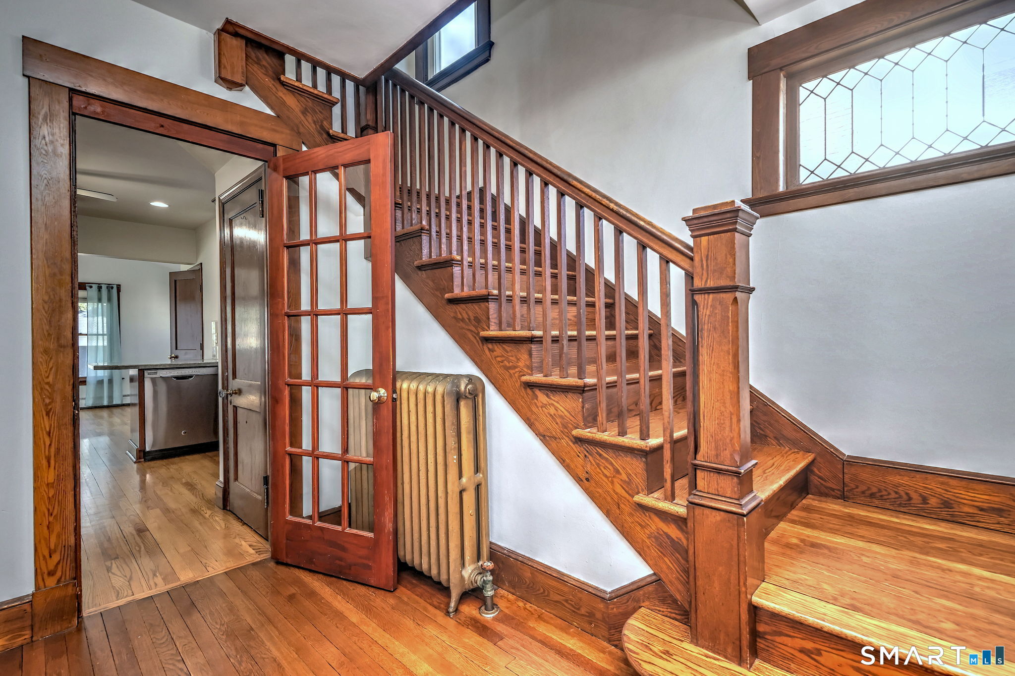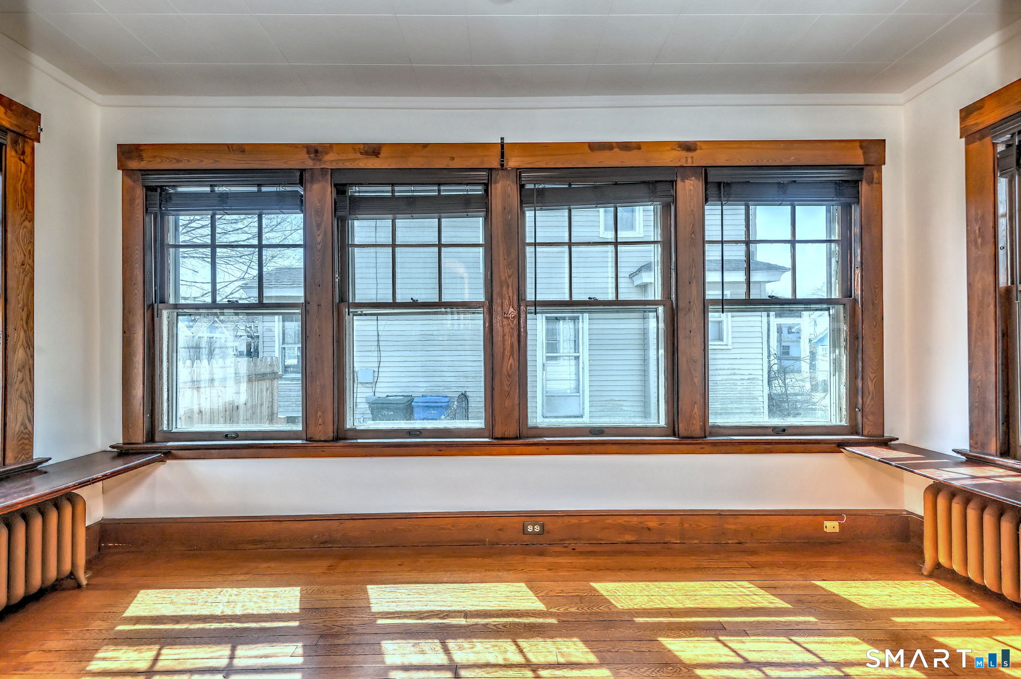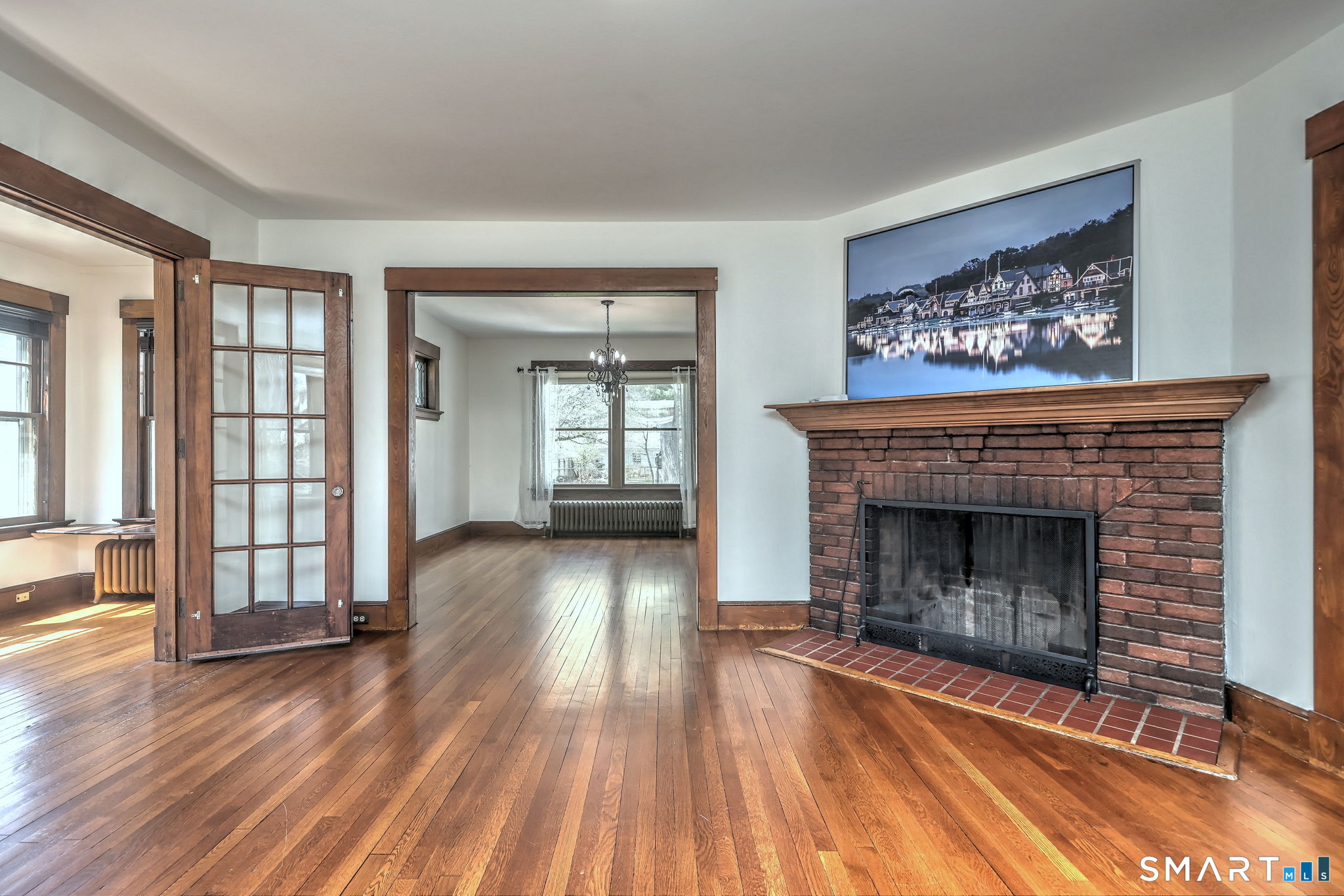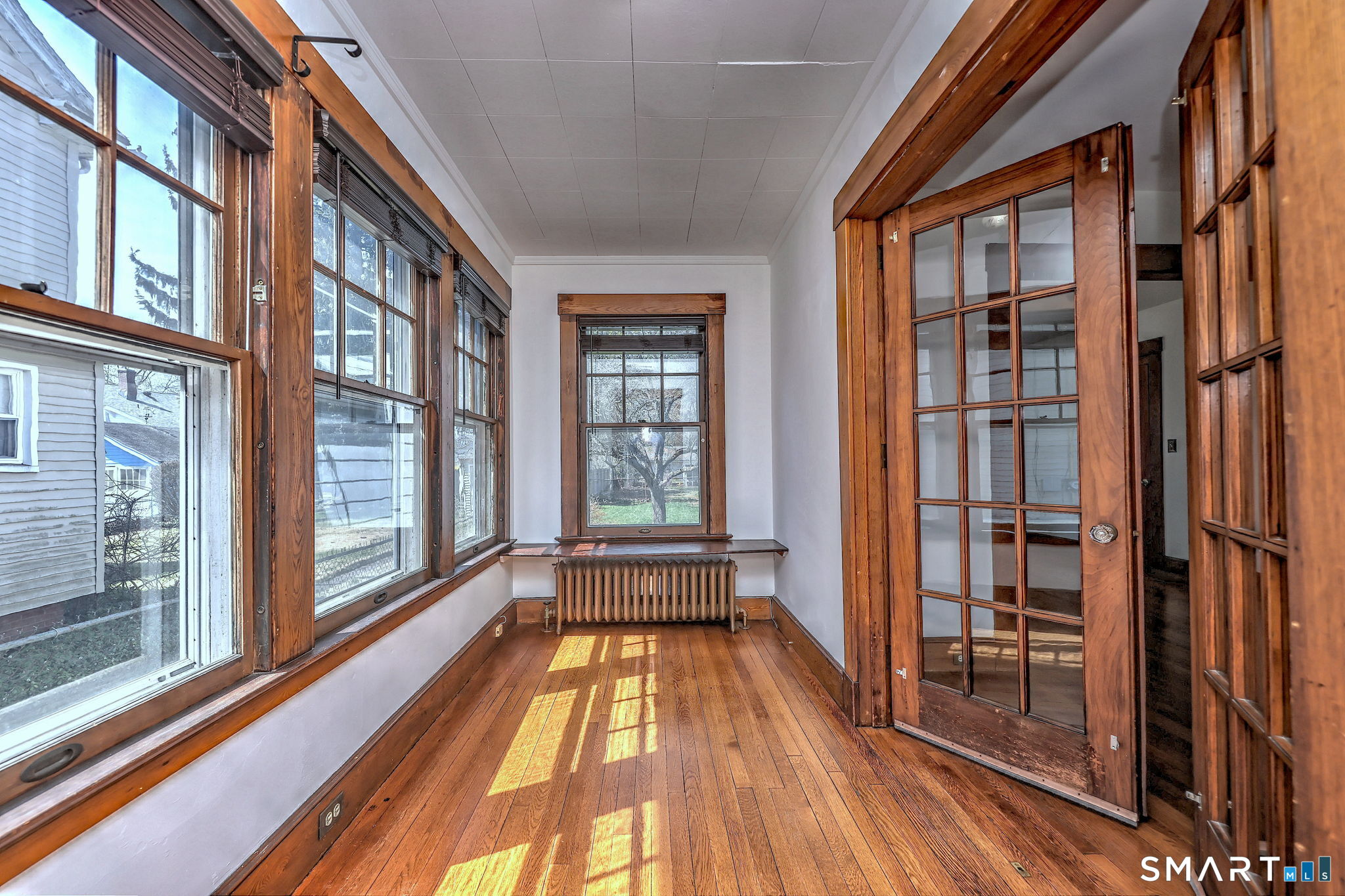 Come see this classic 1923 Colonial on a quiet sidewalk-lined street in the heart of Spring Glen. This spacious home offers a formal living room filled with natural light, original ornate woodwork, beautiful hardwood floors, and a wood-burning fireplace. French doors lead to a light-filled heated sunroom with expansive windows, perfect for a home office or playroom. The formal dining room flows into a kitchen with cherry cabinets and stainless-steel appliances. Just off the kitchen, an open-concept bonus room with a cathedral ceiling makes an inviting family room and includes an attached half bath. The second floor features an open hall and spacious landing, a large primary bedroom with hardwood floors, generous closet space, and a newly renovated porch. There are also two additional bedrooms, plus a fourth room ideal for a den or nursery, along with a large tile bathroom with an updated vanity. Pull-down stairs provide access to the attic, which offers significant storage space. The partially finished basement includes a large separate area for additional storage. Outside, the private level backyard includes a patio and a one-car garage. Enjoy a short stroll to neighborhood favorites, including great restaurants and shops. Yale, Quinnipiac, hospitals, and highway access are all just 15 minutes away. See it soon!