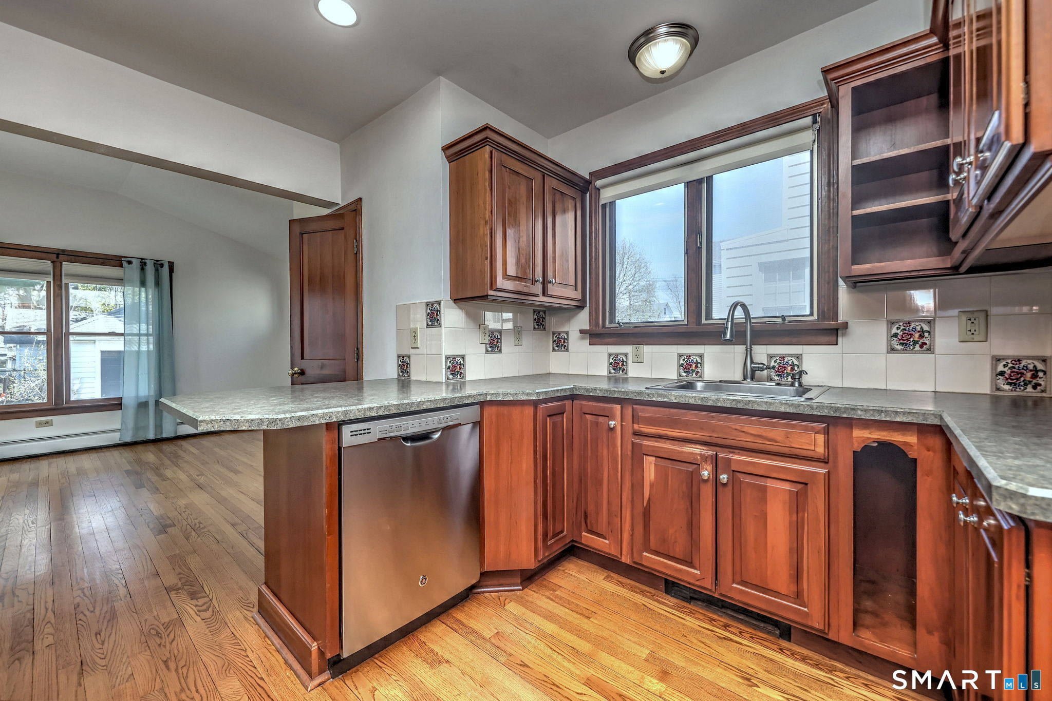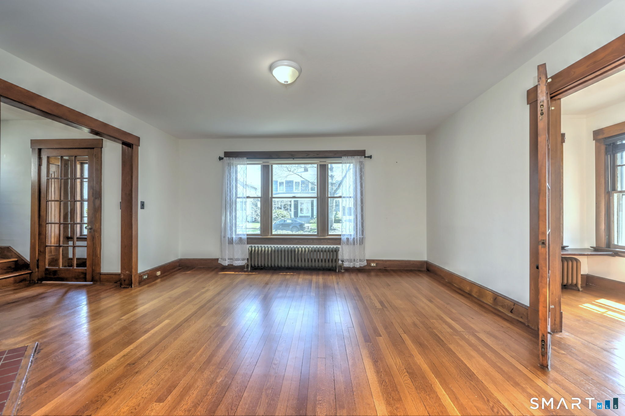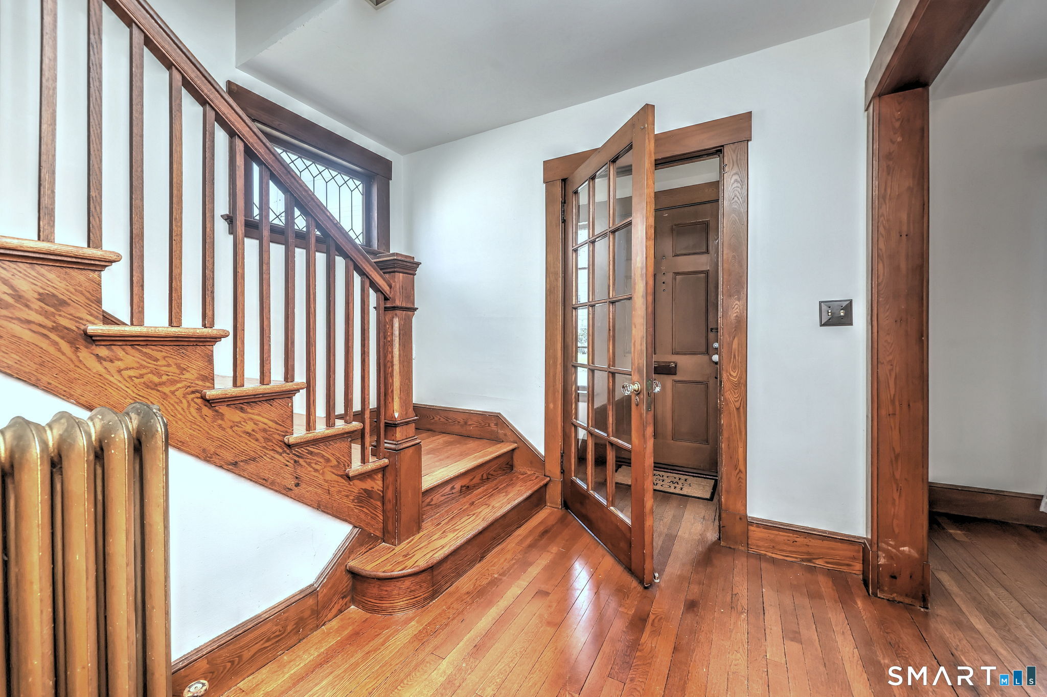 Come see this classic 1923 Colonial on a quiet sidewalk-lined street in the heart of Spring Glen. This spacious home offers a formal living room filled with natural light, original ornate woodwork, beautiful hardwood floors, and a wood-burning fireplace. French doors lead to a light-filled heated sunroom with expansive windows, perfect for a home office or playroom. The formal dining room flows into a kitchen with cherry cabinets and stainless-steel appliances. Just off the kitchen, an open-concept bonus room with a cathedral ceiling makes an inviting family room and includes an attached half bath. The second floor features an open hall and spacious landing, a large primary bedroom with hardwood floors, generous closet space, and a newly renovated porch. There are also two additional bedrooms, plus a fourth room ideal for a den or nursery, along with a large tile bathroom with an updated vanity. Pull-down stairs provide access to the attic, which offers significant storage space. The partially finished basement includes a large separate area for additional storage. Outside, the private level backyard includes a patio and a one-car garage. Enjoy a short stroll to neighborhood favorites, including great restaurants and shops. Yale, Quinnipiac, hospitals, and highway access are all just 15 minutes away. See it soon!