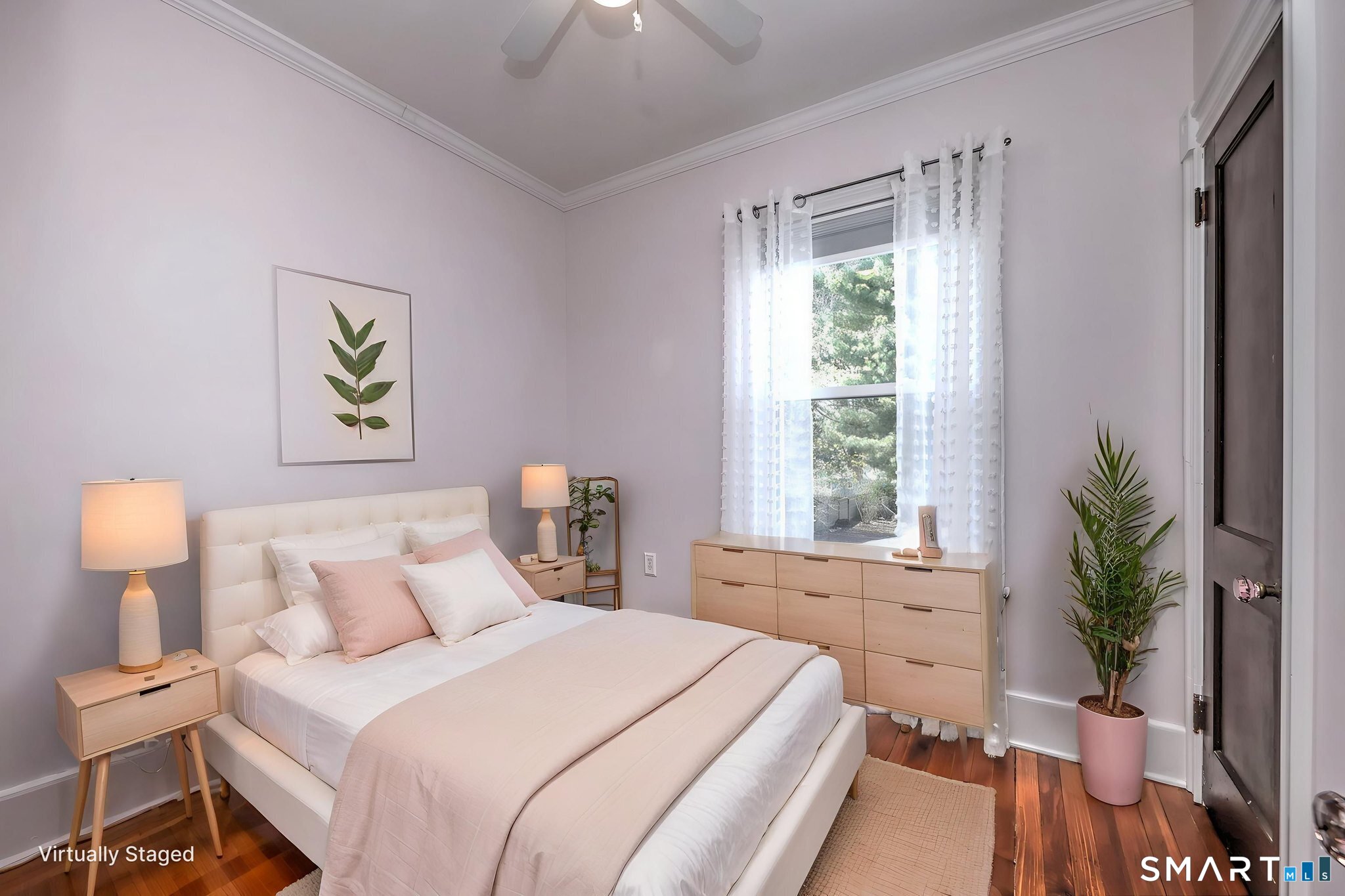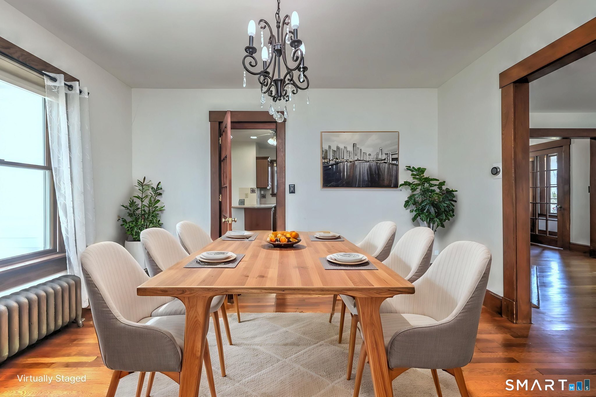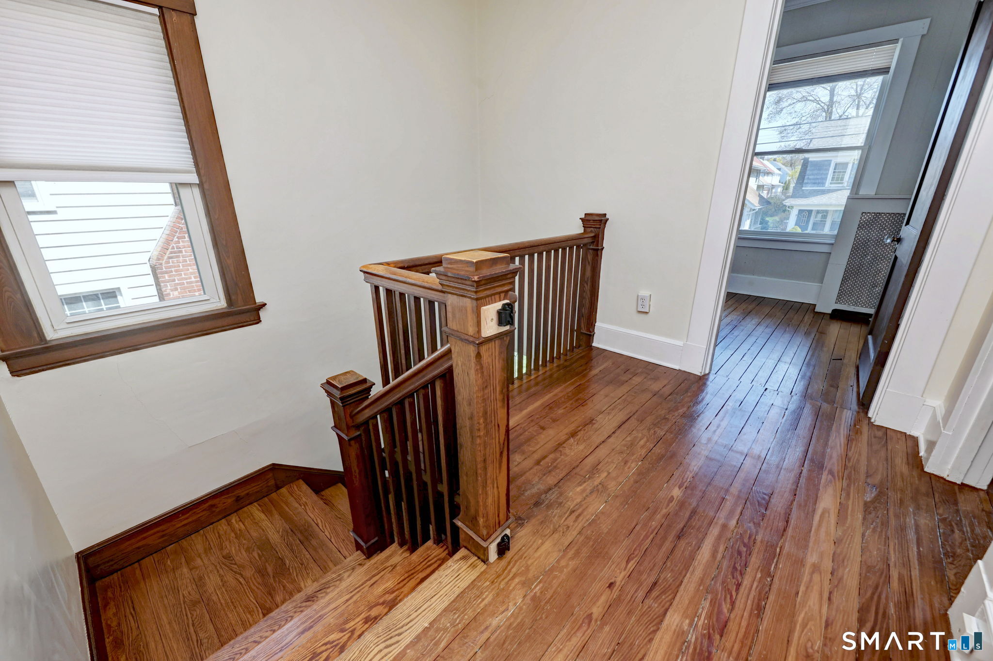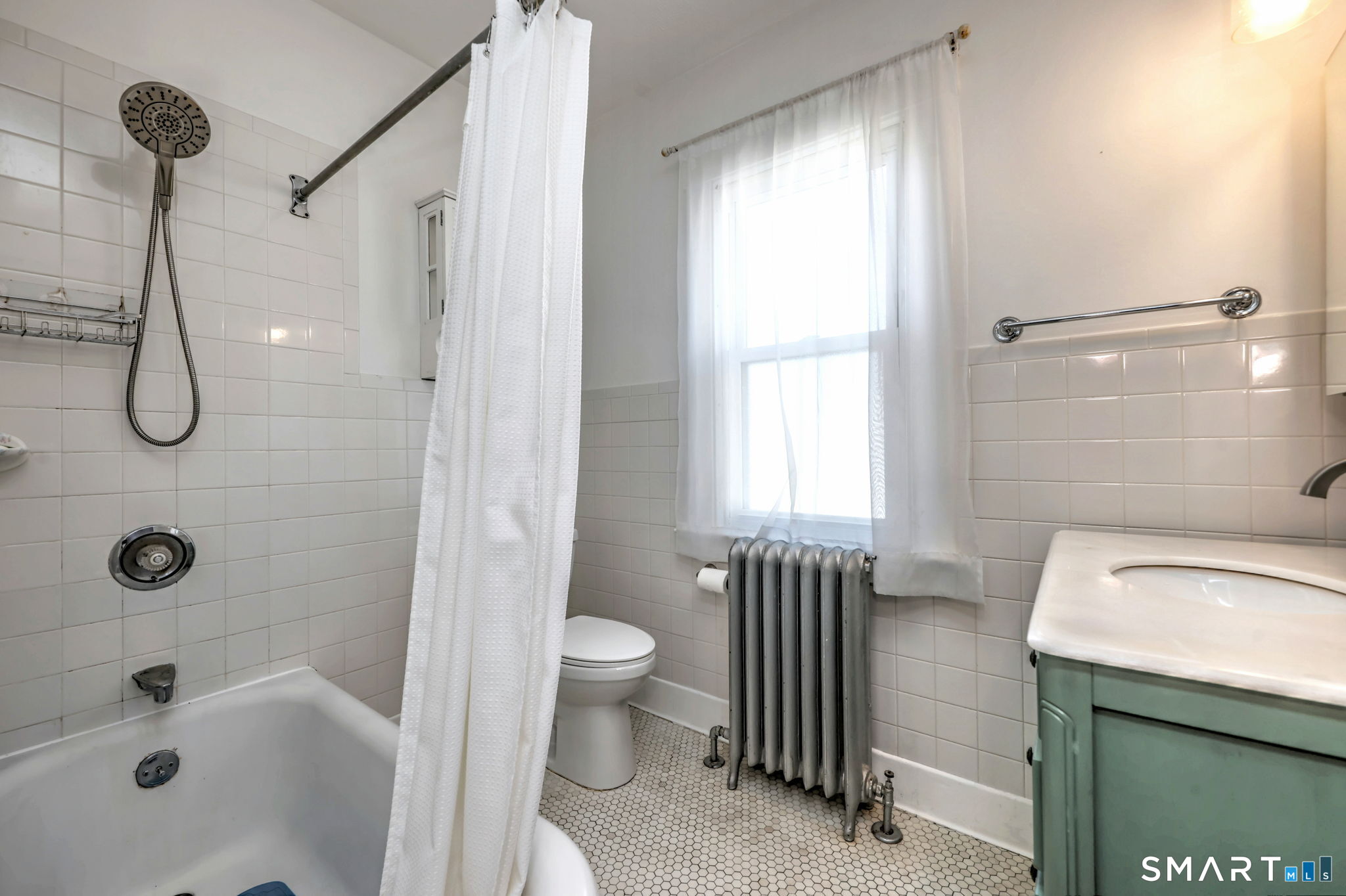 Come see this classic 1923 Colonial on a quiet sidewalk-lined street in the heart of Spring Glen. This spacious home offers a formal living room filled with natural light, original ornate woodwork, beautiful hardwood floors, and a wood-burning fireplace. French doors lead to a light-filled heated sunroom with expansive windows, perfect for a home office or playroom. The formal dining room flows into a kitchen with cherry cabinets and stainless-steel appliances. Just off the kitchen, an open-concept bonus room with a cathedral ceiling makes an inviting family room and includes an attached half bath. The second floor features an open hall and spacious landing, a large primary bedroom with hardwood floors, generous closet space, and a newly renovated porch. There are also two additional bedrooms, plus a fourth room ideal for a den or nursery, along with a large tile bathroom with an updated vanity. Pull-down stairs provide access to the attic, which offers significant storage space. The partially finished basement includes a large separate area for additional storage. Outside, the private level backyard includes a patio and a one-car garage. Enjoy a short stroll to neighborhood favorites, including great restaurants and shops. Yale, Quinnipiac, hospitals, and highway access are all just 15 minutes away. See it soon!