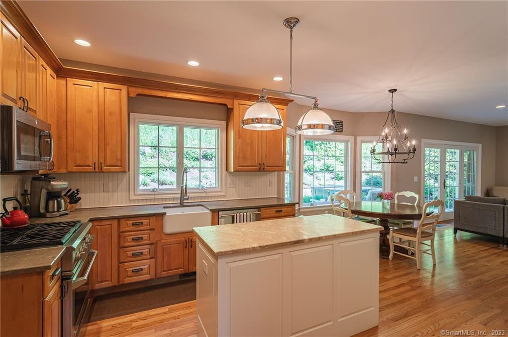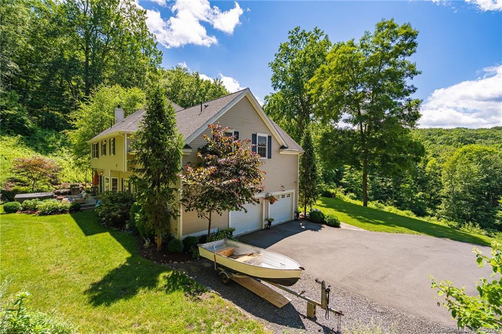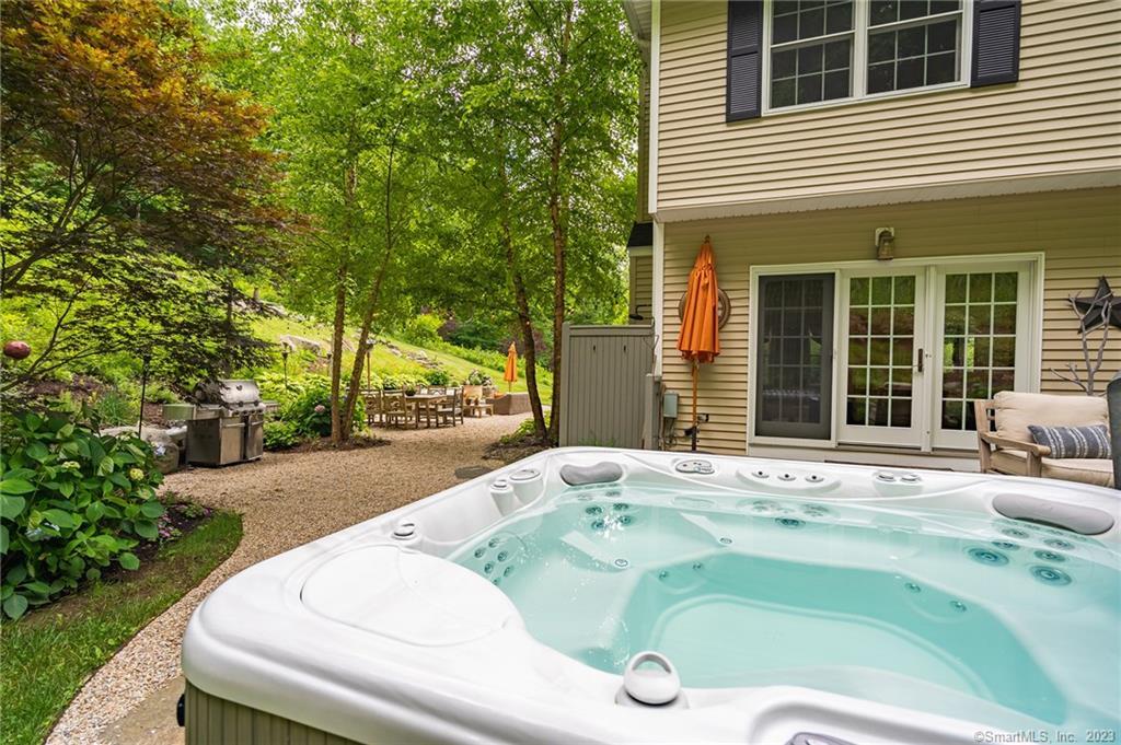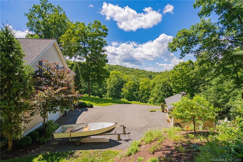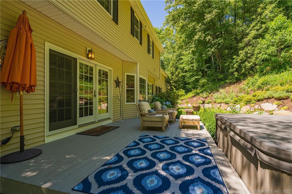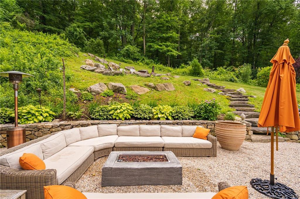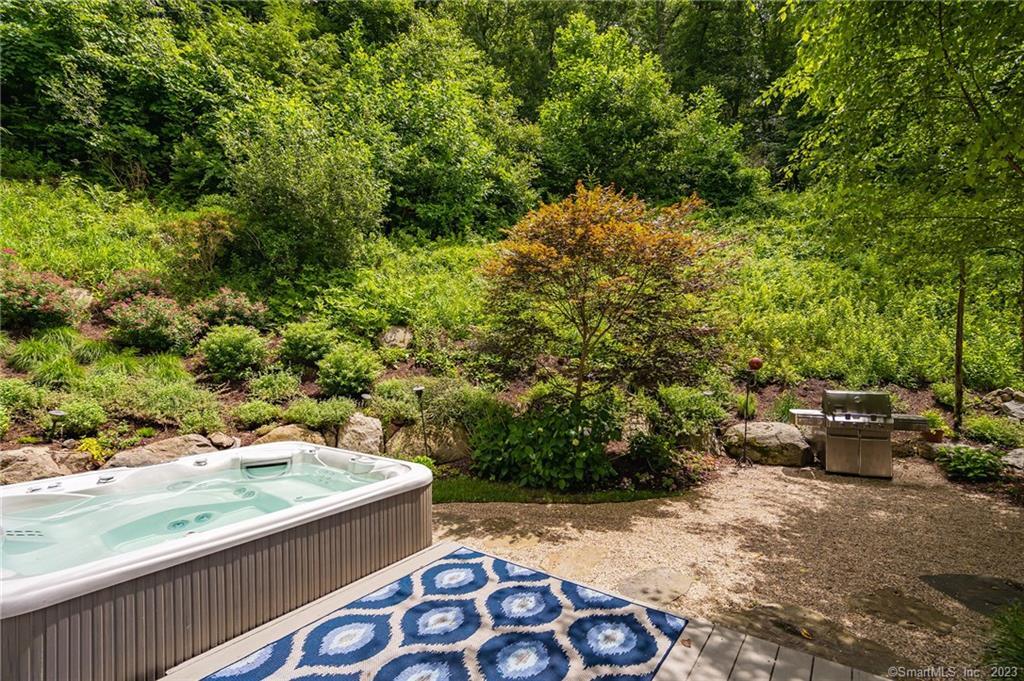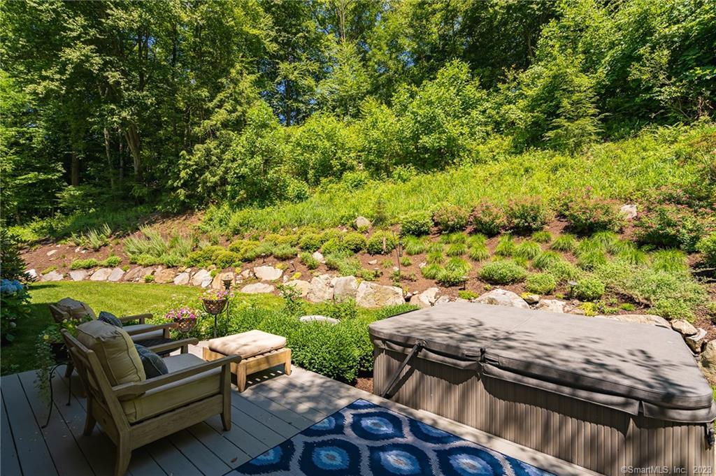 There is no better place to spend your time in Litchfield County than the town of Woodbury. Honored as "Connecticut's most charming town" you have access to award-winning dining (indoor & outdoor), local farms & CSA's, natural food stores, spa's, vineyards & breweries, antique shops, golf courses, bike trails, lakes & hiking - all minutes away from this centrally located property. This home's long curving drive pulls you into quiet country seclusion. On a west-facing hill, overlooking its 12 acres, the home and property offer the utmost in privacy. You can enjoy long, sunset views from two levels of furnished terraces. Carefully and thoughtfully designed as a countryside retreat, the landscaped gardens and outdoor living space offer endless enjoyment, privacy, and serenity. Walk the private, wood-chipped walking paths. Take a refreshing outdoor shower and rejuvenate under the stars, soaking in the outdoor spa. The interior is tastefully decorated with clean, sophisticated furnishings, in neutral tones. Abundant natural light energizes the home and the clean hardwood cohesively joins each brightly lit space. The finished lower level is large enough to provide space for exercise, studies, or socializing. The property is within walking distance to the 2100-acres of hiking trails at Whittemore Sanctuary, minutes to several private lake clubs for swimming and kayaking (kayaks included with the house), as well as a private pool & tennis club.