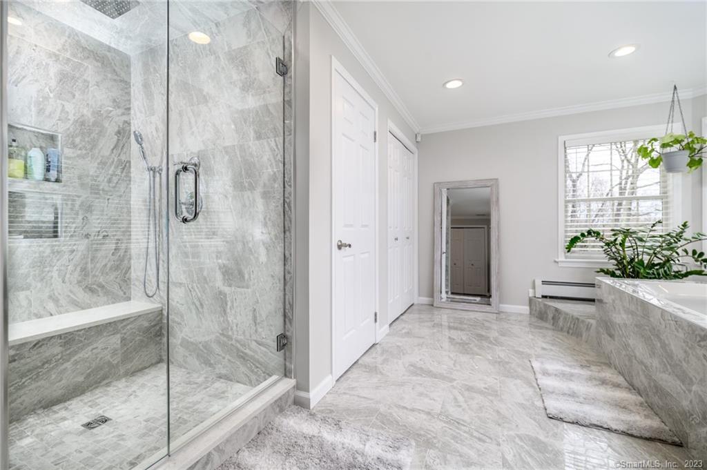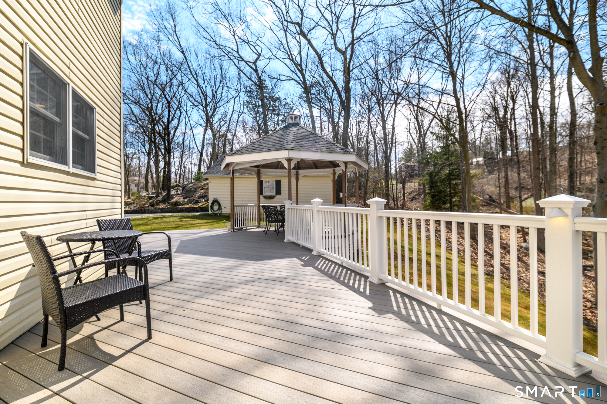 Tucked away at the end of a peaceful N. Stamford cul-de-sac, this exceptional home lives like a private retreat-where luxury, comfort, and privacy come together in perfect balance. Surrounded by mature trees and professionally designed landscape lighting, the property offers a truly serene, resort-like setting day and night. Step inside to sunlit, beautifully appointed interiors featuring hardwood floors, custom millwork, and thoughtfully designed spaces. The chef's kitchen is stunning and functional, with premium appliances including a Sub-Zero, double ovens, warming drawer, and an oversized walk-in pantry-ideal for everyday living and elevated entertaining alike. The home's layout flows effortlessly from room to room, with a formal dining space for memorable gatherings and a study or a perfect home office. Luxury window treatments throughout add warmth, texture, and a polished finish. The primary suite is a true haven, featuring a spa-inspired bath with soaking tub, glass-enclosed rain shower, dual vanities, and two walk-in closets. The walk-out lower level enhances the lifestyle experience with a professional wine cellar, flexible recreation space, and dedicated workshop. Outdoors, experience resort-like living with an expansive deck, charming gazebo, and a privately positioned ThermoSpa hot tub-creating the perfect setting for relaxation under the stars. More than a home-it's a refined escape, offering an exceptional lifestyle in one of Stamford's most desirable settings.