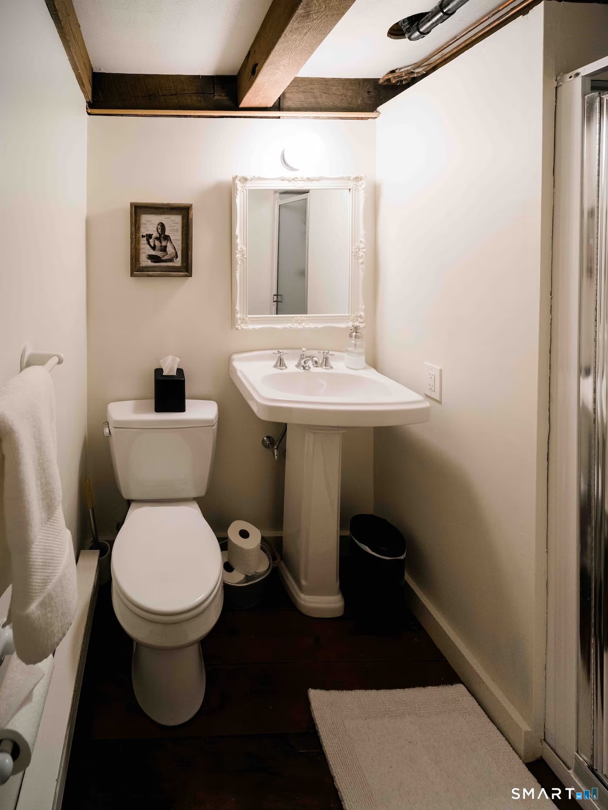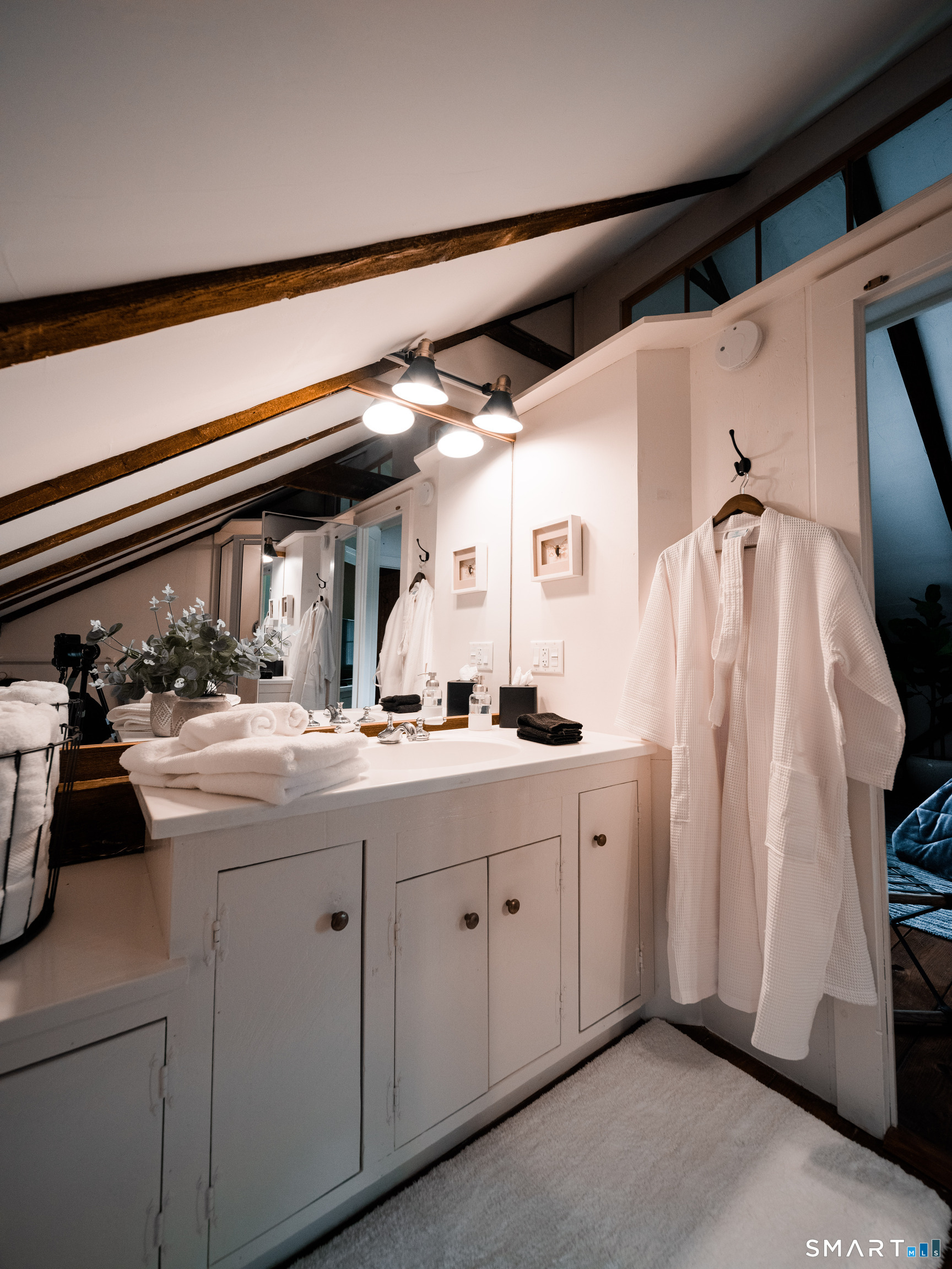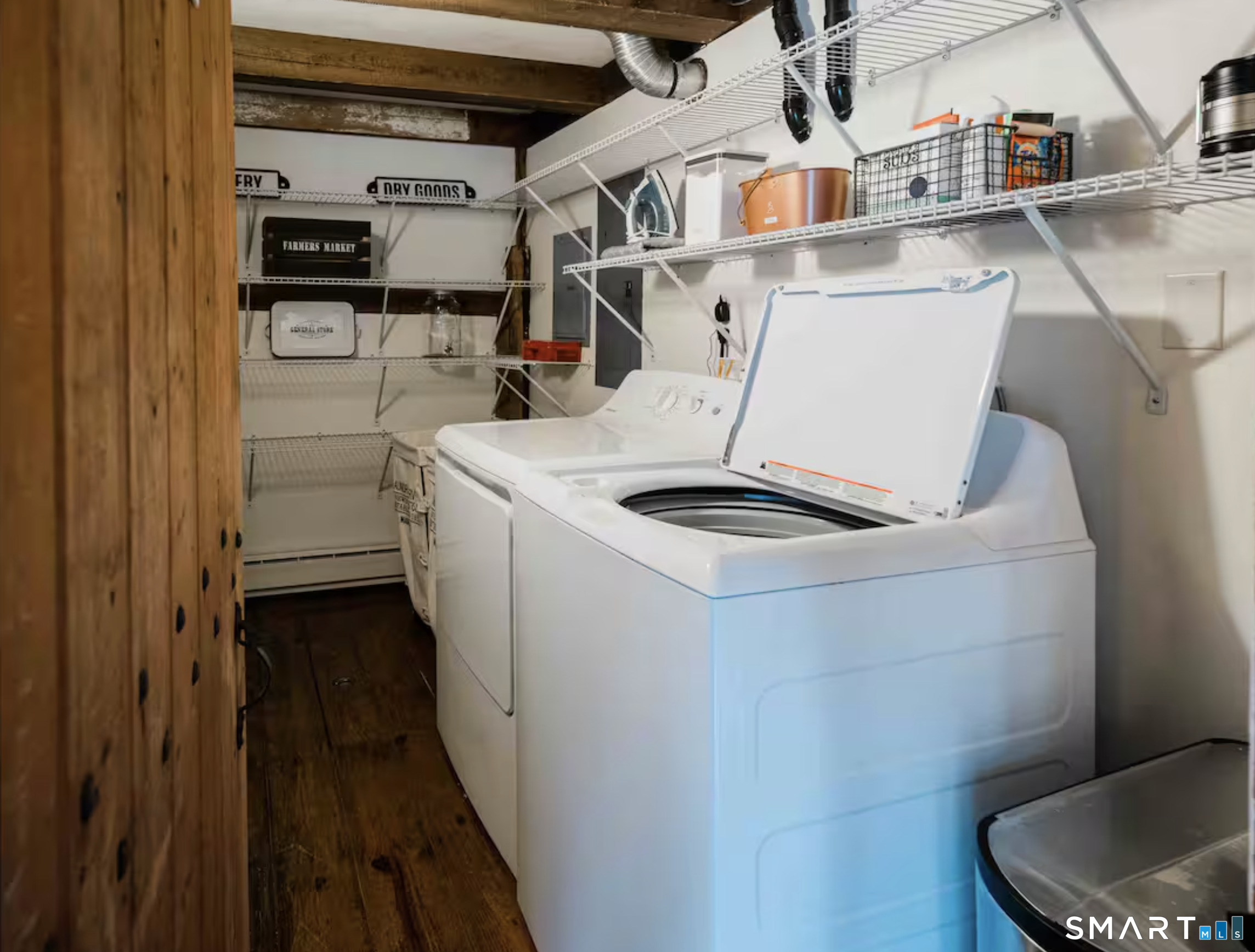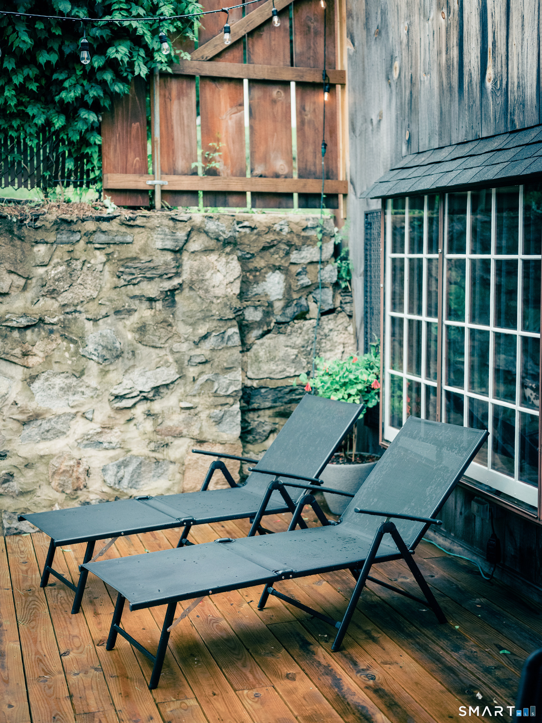 Meticulously maintained and thoughtfully curated, this one-of-a-kind post-and-beam barn in the Essex Village district offers a rare blend of historic character and modern comfort. Showcasing wide plank floors, rich natural textures, and awe-inspiring architectural details throughout, this home delivers warmth and style in every space. The open-concept main living area is anchored by a striking stucco wood-burning fireplace. The home features two bedrooms and two full baths, including a primary suite with ensuite bath. Bay-style windows wrap around the lower level, filling the home with an abundance of warm natural light. The eat-in kitchen flows seamlessly to the outdoors. Step onto the newly finished deck, complete with an awning, creating the perfect covered outdoor dining and entertaining space. The private, level yard is fully fenced and complemented by professionally maintained gardens, offering a peaceful and picturesque setting. Located on a corner lot, where Saybrook Road meets Benson Lane.