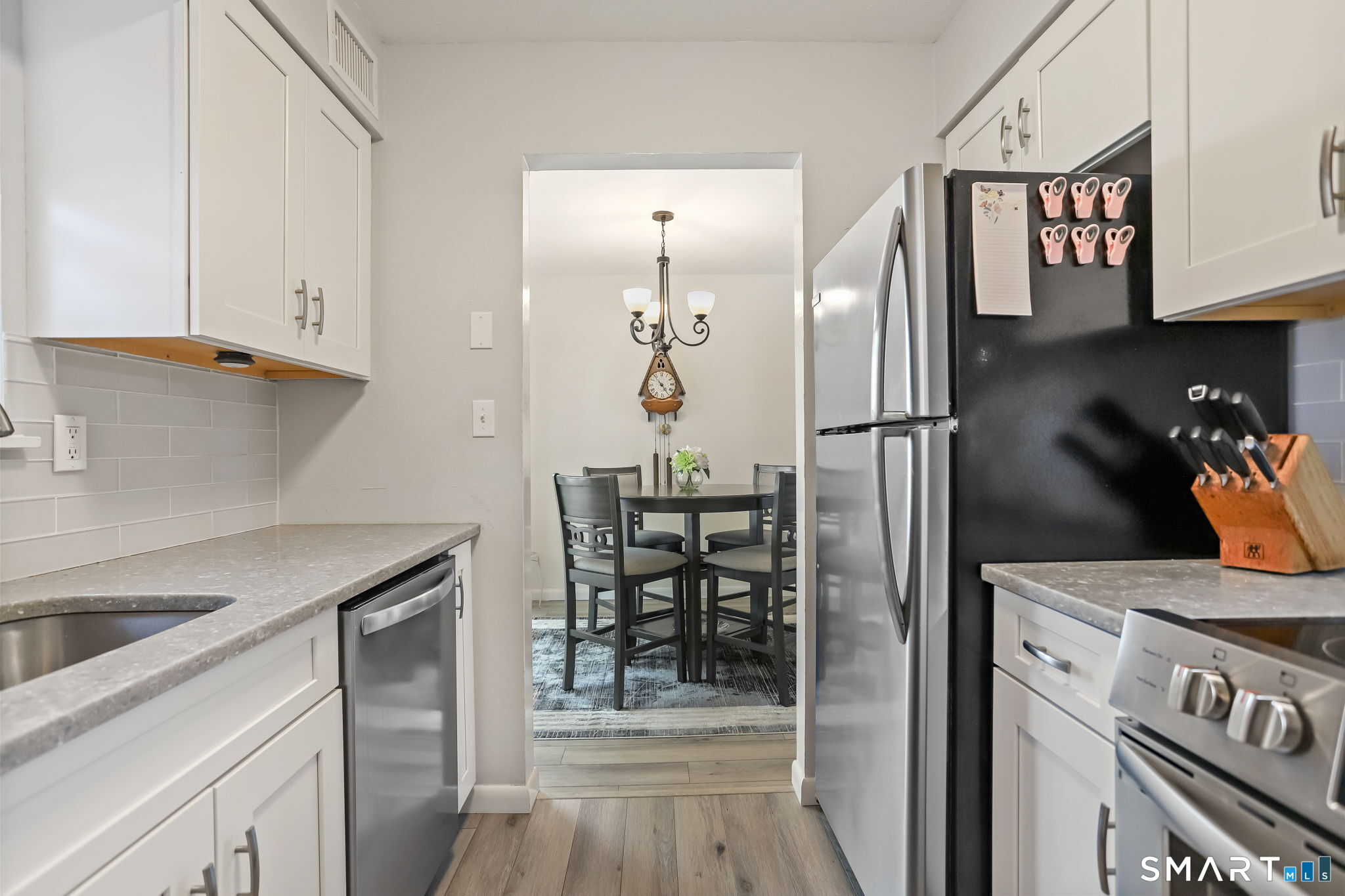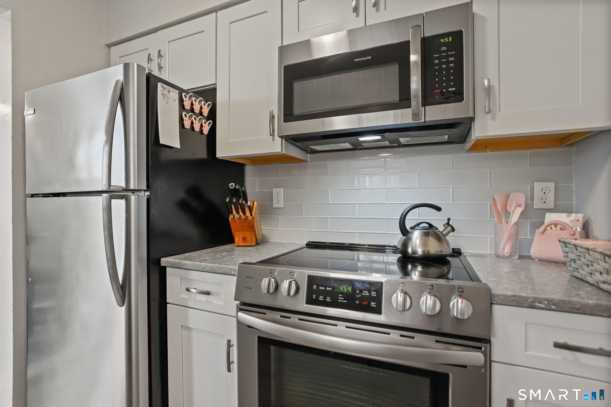 Welcome to High View Condominiums! Meticulously maintained Townhouse style unit offers a truly move in ready experience. This beautifully updated 2 bedroom 1-1/2 bath condo features a spacious living room that flows into the dining area with new sliding glass doors to a private deck. Perfect for morning coffee or entertaining. Half bath is located off the living room. Ample Storage space with a large coat closet and pantry! The kitchen offers Quartz counter tops and SS appliances. The second level features a spacious primary bedroom with three generously sized closets. The secondary bedroom offers two closets. The updated full bathroom features a Quartz counter tops, tile floors, tub and beautifully tiled walls. Full sized washer dryer complete the second floor. The unit offers ample additional storage with a large attic accessible with pull downstairs. The unit is located steps away from a the in-ground pool, perfect for relaxing on hot summer days. New hot water tank (2025) HVAC has a new motor was installed 2024. Conveniently located to I-95, Merritt Parkway, shops and restaurants. This unit offers convenience and style for the ultimate living experience.