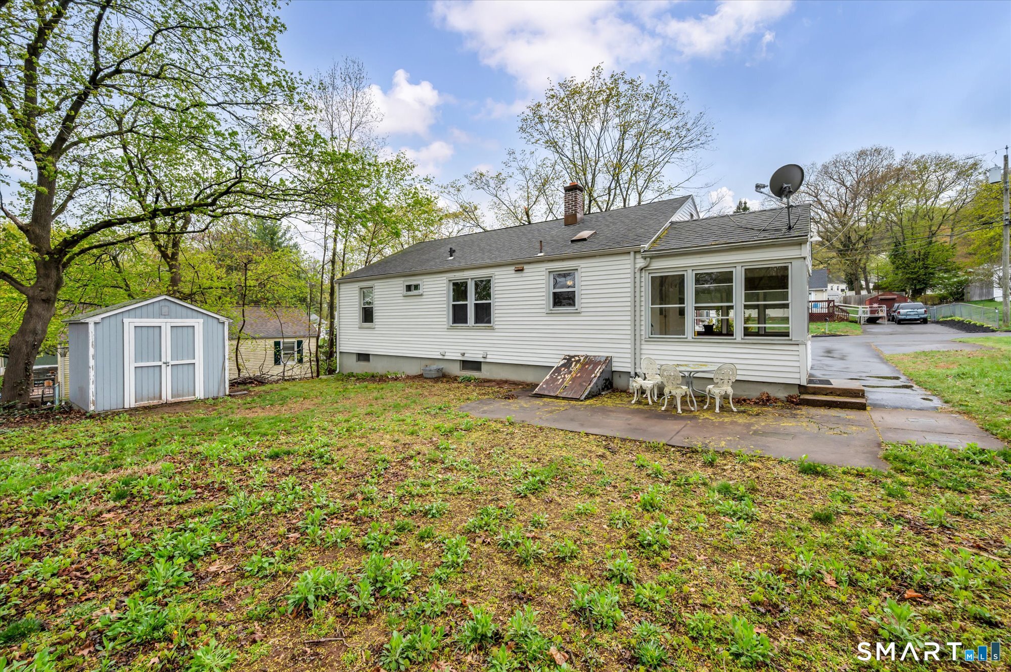 Welcome to easy, one-level living on the desirable west side of Wallingford! This 3-bedroom, 1-bath ranch offers comfort, convenience, and great functionality. Ideally located close to major highways, commuting is a breeze while still enjoying a quiet residential setting. Step inside to find a bright and inviting layout featuring a spacious living area and a kitchen equipped with stainless steel appliances, a gas stove, and plenty of cabinet space. Just off the kitchen, an enclosed side porch provides the perfect spot for morning coffee, a mudroom, or additional flex space. The main level offers three comfortable bedrooms and a full bath. Downstairs, the finished basement expands your living space with a versatile area ideal for a game room, home office, or gym, along with a convenient half bath. Outside, enjoy a level yard perfect for entertaining, gardening, or relaxing, along with a handy storage shed for all your outdoor needs.