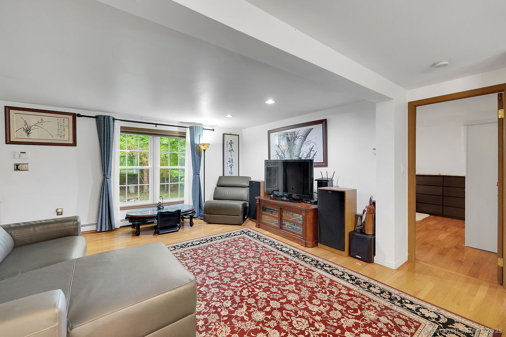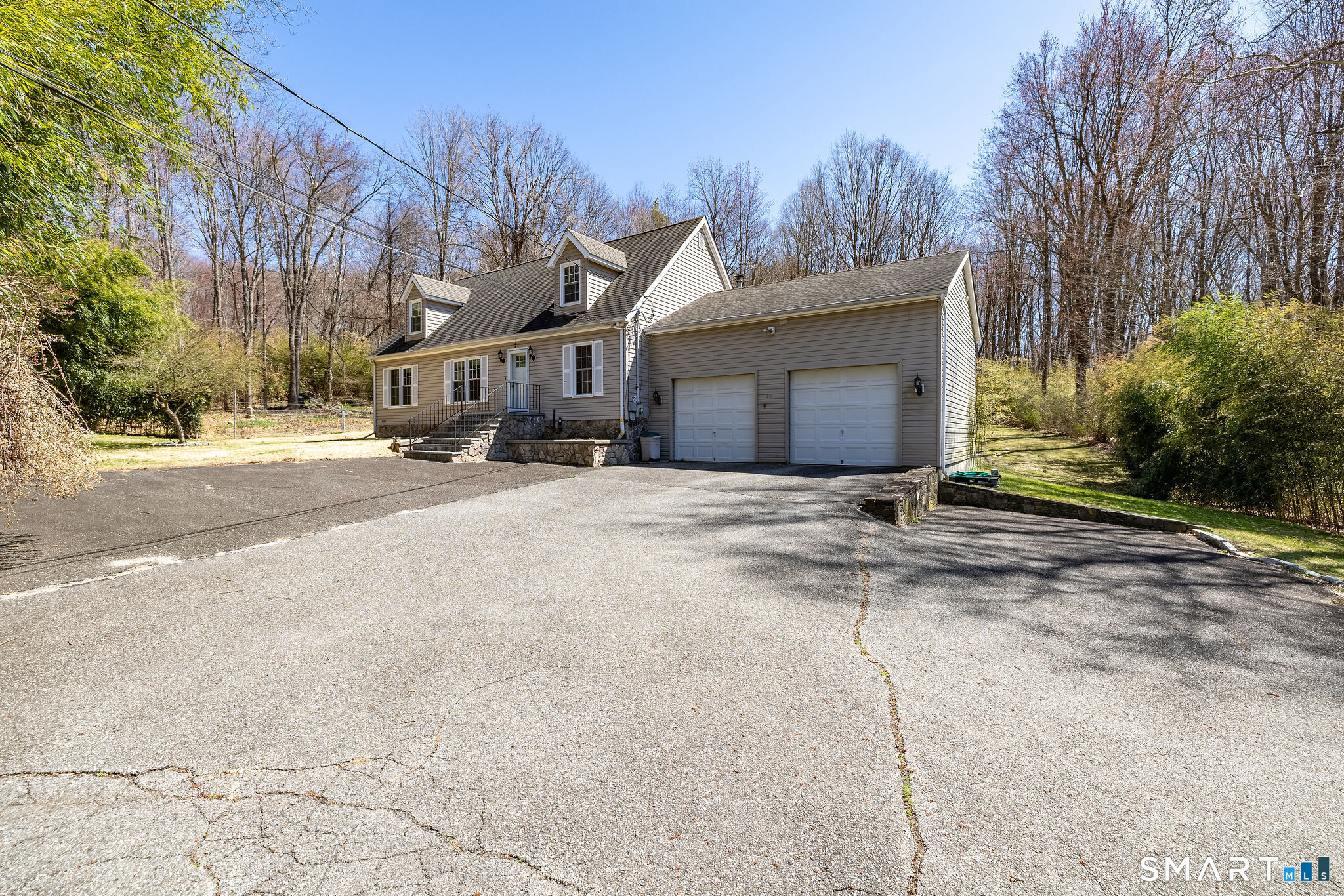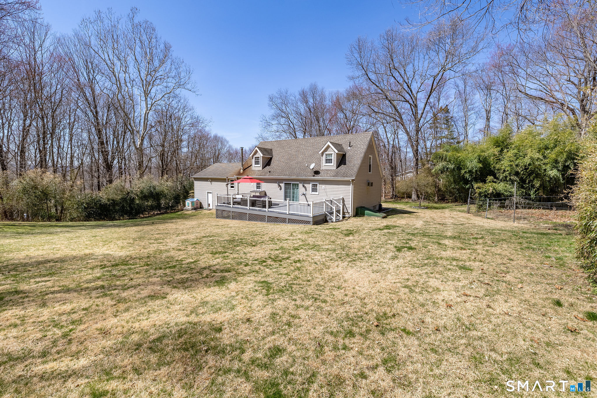 Classic cape on a serene and pleasantly private 3 acre lot. A true park-like setting with rolling lawns, stacked stone walls and a meandering driveway. There's a flexible floor plan that offers 4 bedrooms and 3 baths. The current owners have converted a main floor bedroom into a dining room. This lovely home features a main floor primary bedroom suite, complete with its own bath and walk-in-closet. The living room opens onto a spacious deck that is perfect for outdoor entertaining and overlooks secluded back yard. The second floor offers 2 dormered bedrooms, another full bath and a versatile bonus space. The home's over-sized garage offers plenty of additional storage, as does the large basement. Home sold 'as-is'.