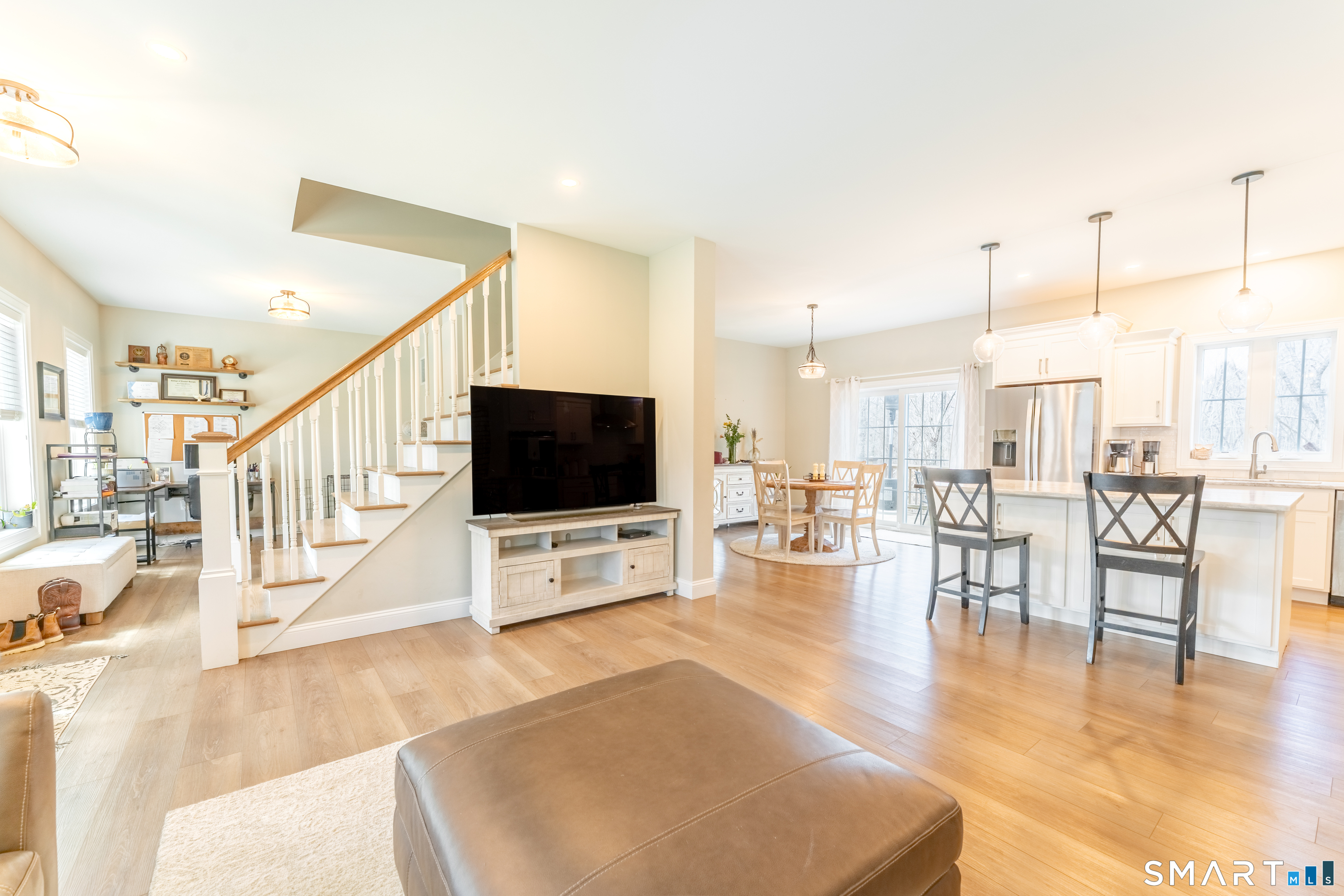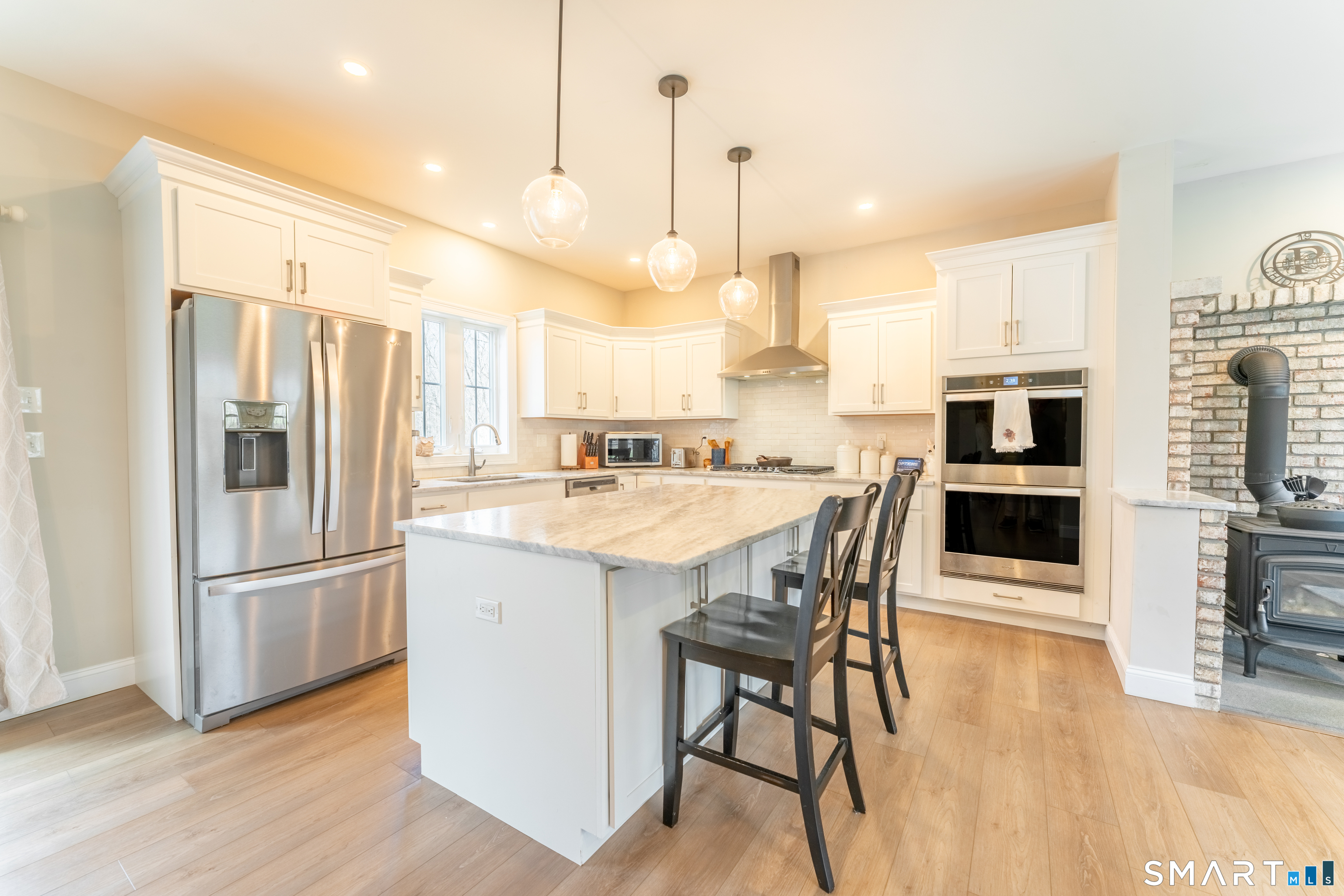 Stunning Custom-Built Home. Welcome to this exceptional home completed in 2022, where modern design meets peaceful natural surroundings. This beautifully crafted 3-bedroom, 2.5-bath residence offers an open-concept layout perfect for today's lifestyle and effortless entertaining. The heart of the home is the gourmet kitchen with large center island and ample space for hosting gatherings both large and small. The kitchen flows seamlessly into the spacious living room with beautiful whitewashed brick hearth and Jotul woodstove. The dining area has bright and inviting atmosphere with sliding doors leading to a large deck. Upstairs, you'll find three generously sized bedrooms, including a luxurious primary suite designed for comfort and relaxation. The finished walk-out basement provides additional living space ideal for a family room, home office, or recreation area, offering endless possibilities for customization. Step outside and enjoy exquisite landscaping, complete with a beautifully designed patio and fire pit-perfect for relaxing evenings or entertaining guests. The backyard overlooks a serene, private brook, offering a tranquil setting that feels like your own personal retreat. This one-of-a-kind property combines quality craftsmanship, thoughtful design, and a truly picturesque setting-don't miss the opportunity to make it yours!
