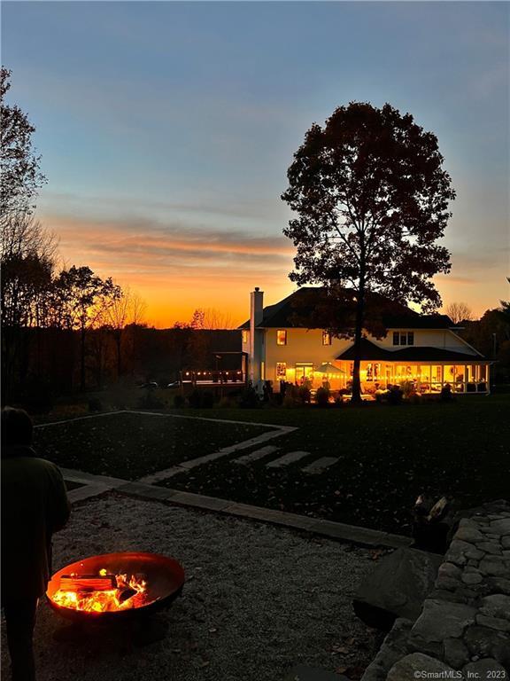 Perched atop Painter Hill-Roxbury's highest elevation and one of its most coveted addresses-this newly renovated residence offers breathtaking, year-round Sunrise and Sunset views. Spanning over 4,500 sq ft, featuring 4-5 bedrooms and is thoughtfully designed for both comfort and entertaining, complete with a three-story elevator & dedicated game/media room. The chef's kitchen is a showpiece, appointed with premium appliances, a walk-in pantry, oversized island, and stylish bar. It opens seamlessly to a spacious screened porch with inviting dining and lounge areas. Outdoor living is elevated by an expansive ipe deck that functions as a true open-air great room-ideal for al fresco gatherings. The dining room extends to a charming sunset porch adorned with a pergola and irrigated herb garden. The grounds are equally impressive, with professionally designed landscaping that includes an apple orchard, restored stone walls, and a picturesque pond with cascading waterfall. A striking custom pool features a lap lane, lounging platform, and firepit with integrated stone seating, creating a private resort-like setting. Addl highlights include a 3,000-bottle wine cellar, heated garage, pergola-covered carport, and a newly finished oil-and-stone driveway. Ideally located just minutes from the chic shops & fine dining of Washington and Woodbury. Nearby land trust trails offer plentiful hiking. This turnkey property offers easy access to the very best of Litchfield County! Agent Owner.