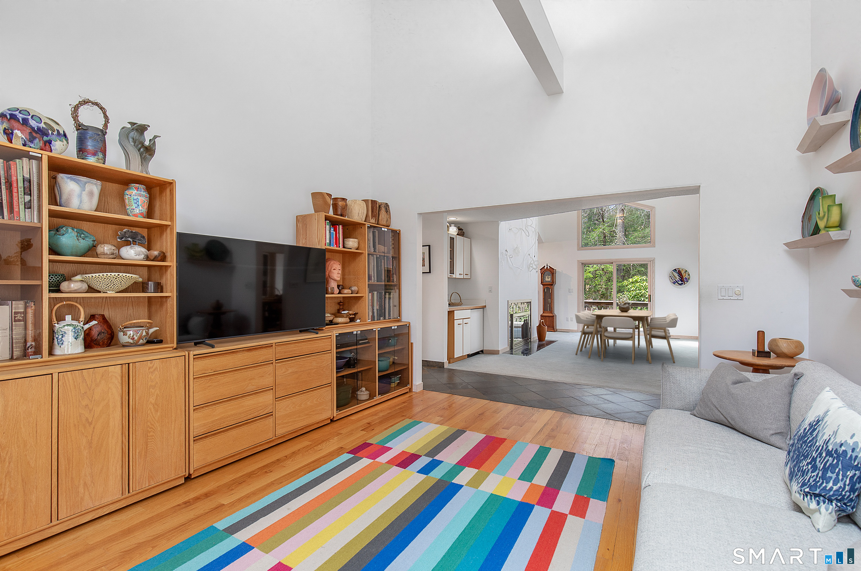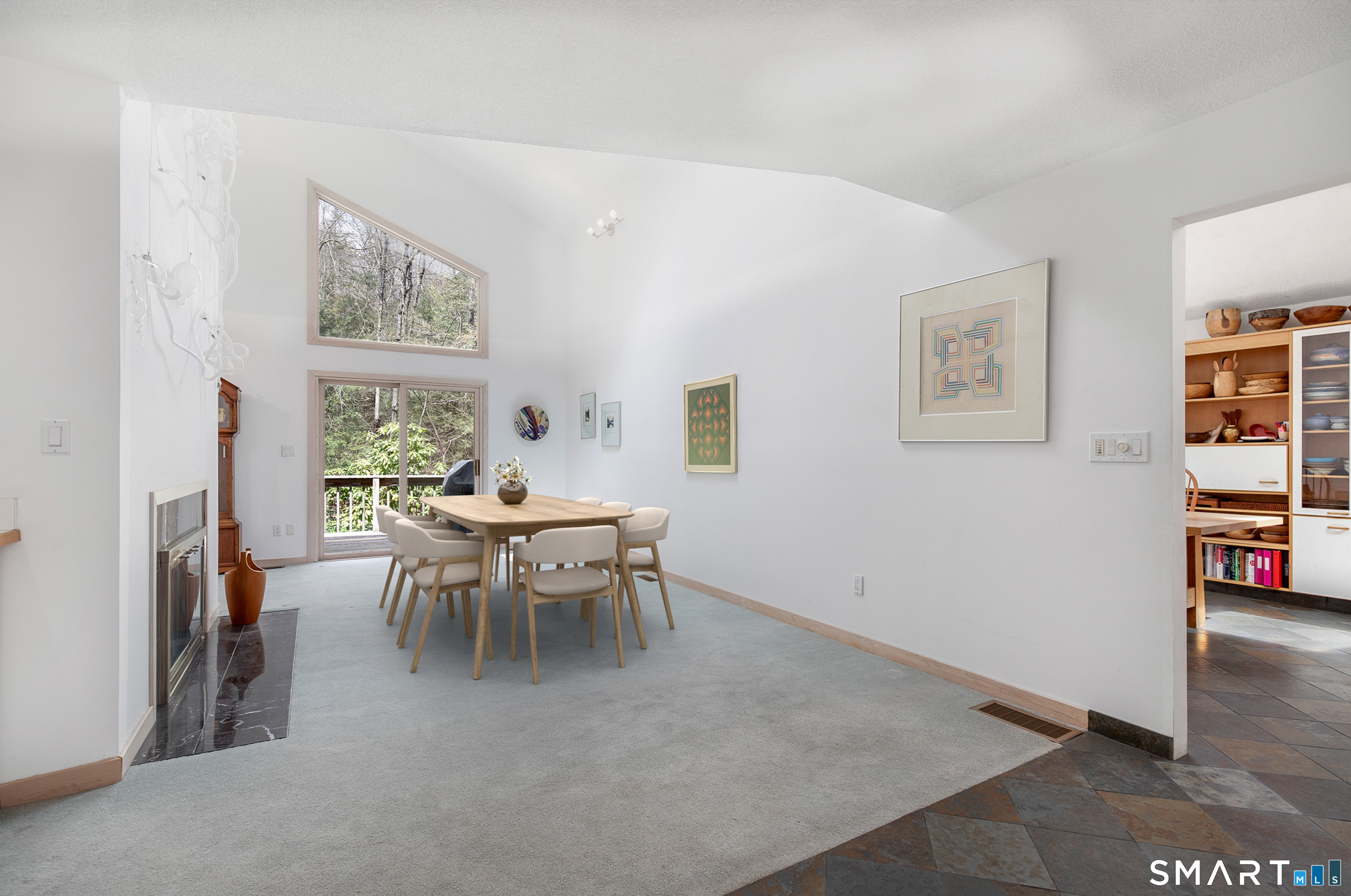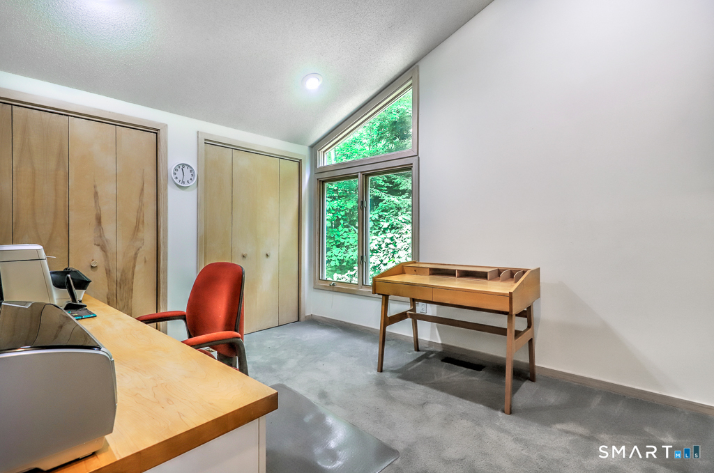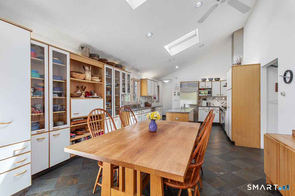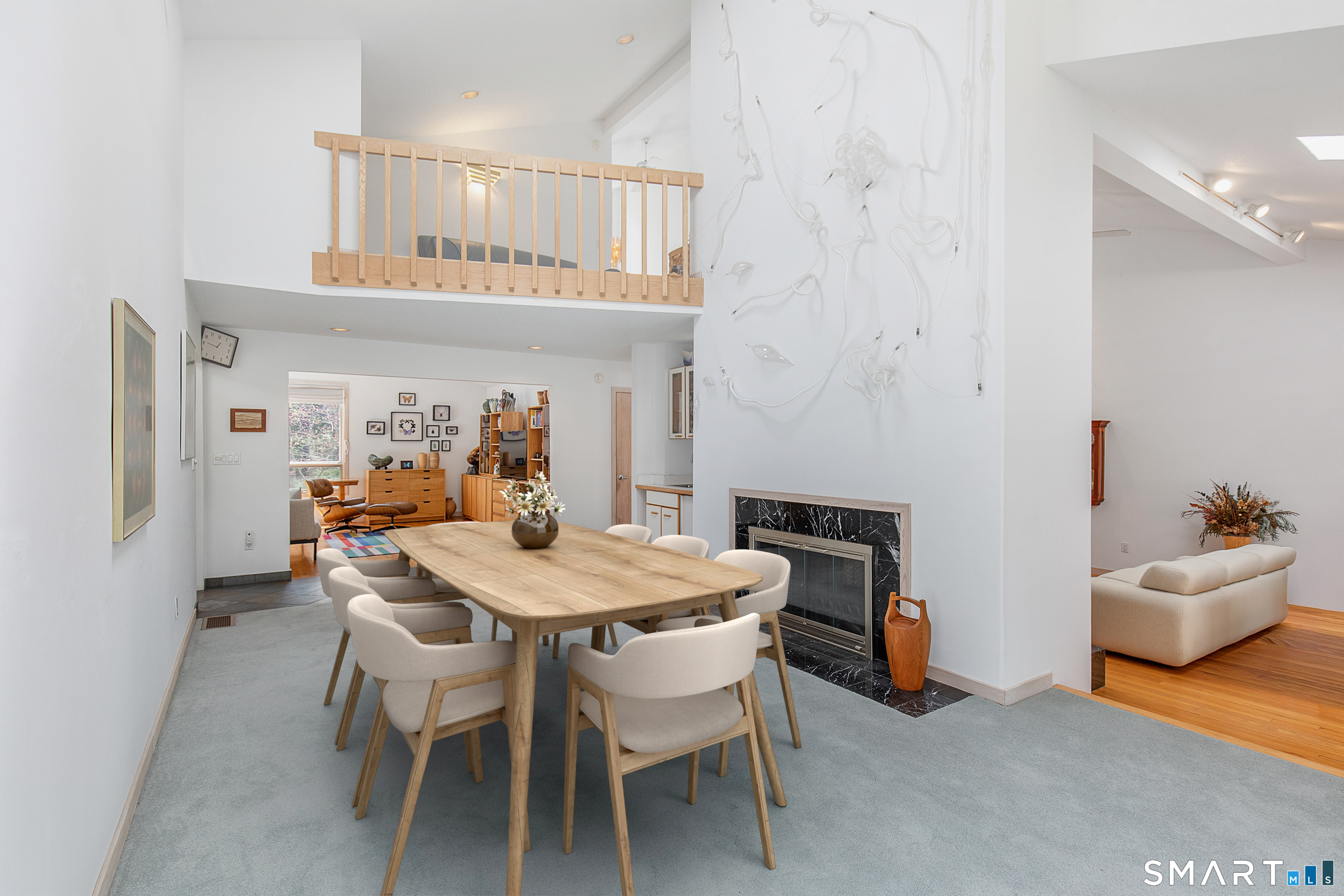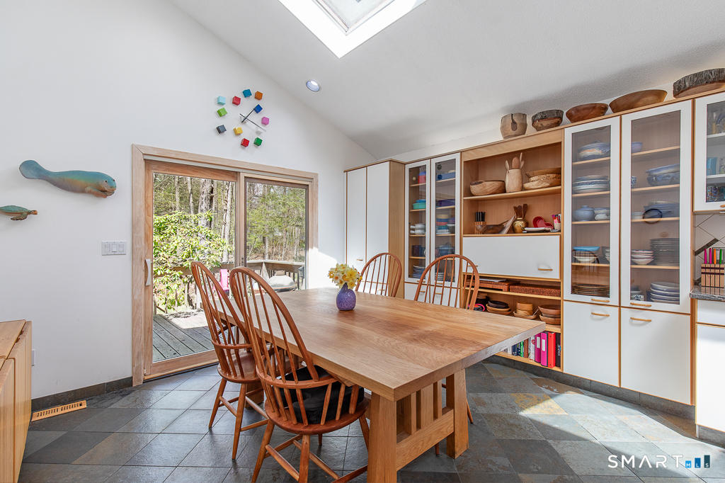 A rare offering from the home's original owners, this custom contemporary is tucked on a tranquil cul-de-sac, bordering the 200-acre Elderslie Preserve to provide preferential privacy. This singular, open-concept showpiece offers 3,346sqft of soaring ceilings paired w/ walls of windows that bathe the home in brilliant light & blur the line between indoors & the lush landscape beyond. A bright, welcoming foyer expands effortlessly into a sunken living room crowned by a striking 2-story ceiling & warmed by a sleek pass-through gas FP shared w/ the formal dining room. Chefs will delight at the generously scaled eat-in kitchen outfitted w/ center island, 2 sinks, & professional-grade appliances, including a Viking dual-fuel range w/ grill & hood. Sliders in the kitchen invite entertaining out on the delightful deck overlooking a private, peaceful yard framed by mature trees & soon-to-bloom plantings. The main-level primary suite is a serene sanctuary w/ its own deck, walk-in closet, & spacious bath. A comfortable family room, versatile 2nd BR/office, & full bath w/ laundry complete the main level. Upstairs, an airy loft & open catwalk lead to 3 voluminous BRs, each w/ vaulted ceilings, plus a shared bath. The full lower level, accessible by 2 stairways, offers abundant storage or future finished potential & connects to a 2-car garage w/ room for a sizable workshop. Lovingly maintained by its first caretakers, this distinctive residence radiates pride, polish, & enduring appeal!