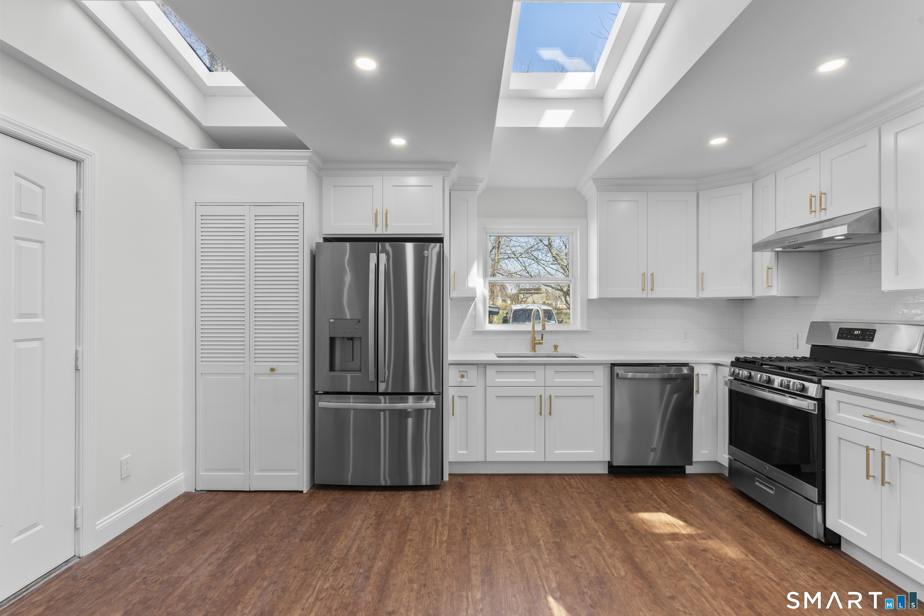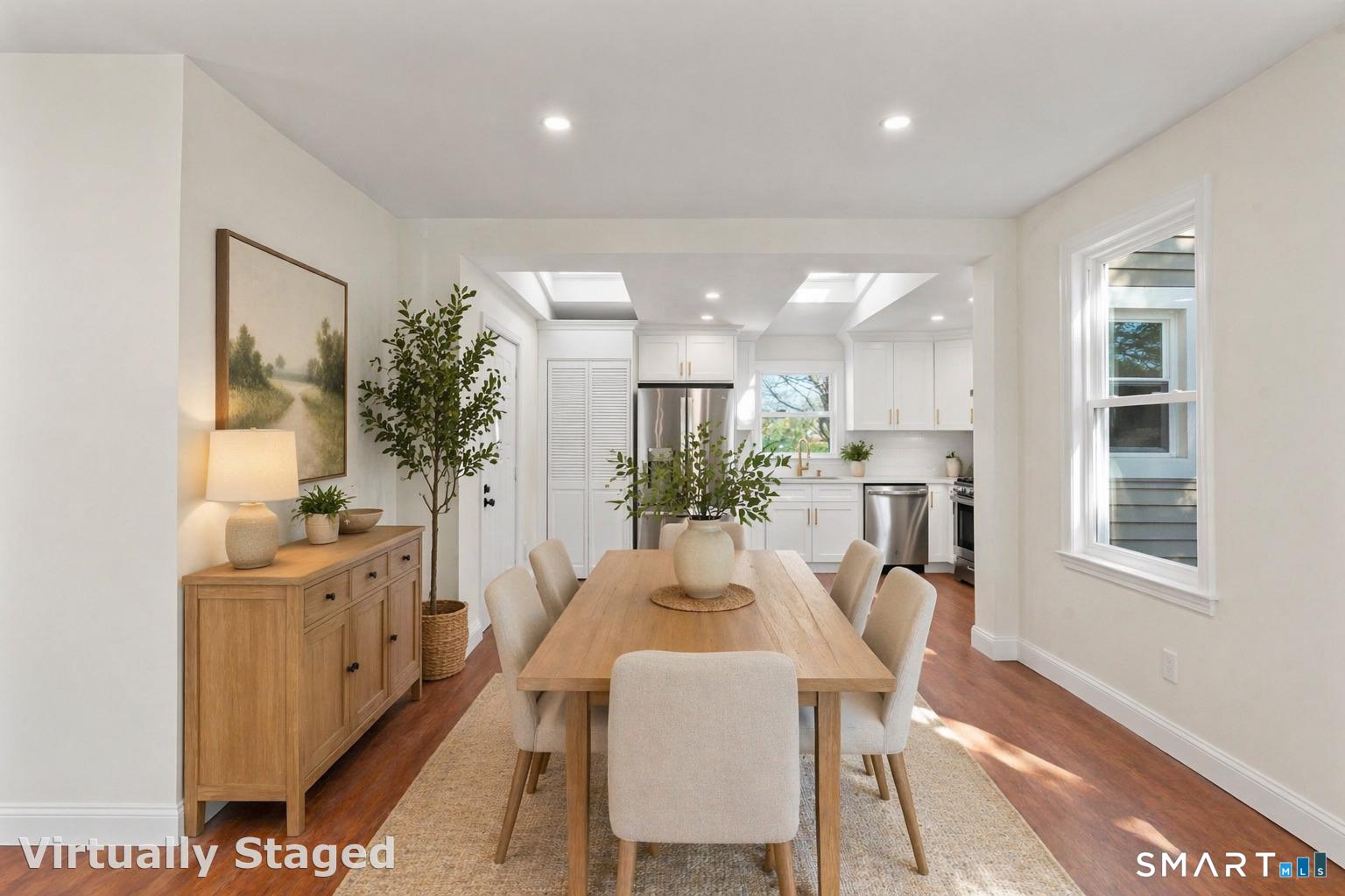 Move right into this beautifully renovated Colonial with 3 bedrooms and 2 full baths, offering 3 levels of bright, inviting living space. Sunlight pours in through skylights and large windows, complemented by recessed lighting throughout. The kitchen is a standout, featuring generous quartz counter space and great attention to detail. Main level laundry for added convenience. Enjoy privacy with a spacious backyard that backs up to a park. Detached 2-car garage and ample parking. Conveniently located close to all amenities and just 6 minutes to Stratford train station for train that goes to NYC. Also enjoy an expansive private yard set against a park backdrop, offering serene greenery, enhanced privacy, and unobstructed views