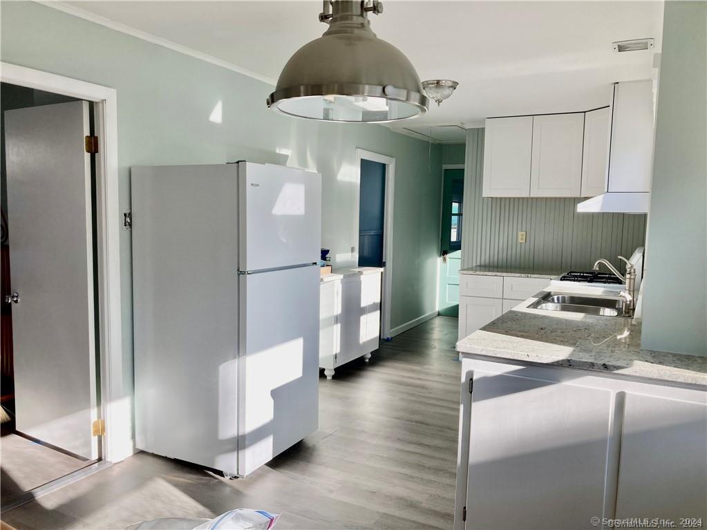 Remodeled ranch style open and airy cottage. Heated front porch, nice size living room and kitchen, mostly newer windows, 2 bedrooms with nice size closets, 1 bath with a tub, charming beadboard and nicely painted walls. White appliances and cabinets in kitchen. Nice yard for relaxing. Walk to Bayview Beach for fun in the sun, or all year round. Waterproof vinyl flooring throughout. Laundry is in the basement through the bulk head. Pull down stairway to attic. Appliances are a couple years old. No smoking. Gas heat. Use Rent Spree. A small well-behaved dog, or a small cat (ask). GOOD CREDIT A MUST!