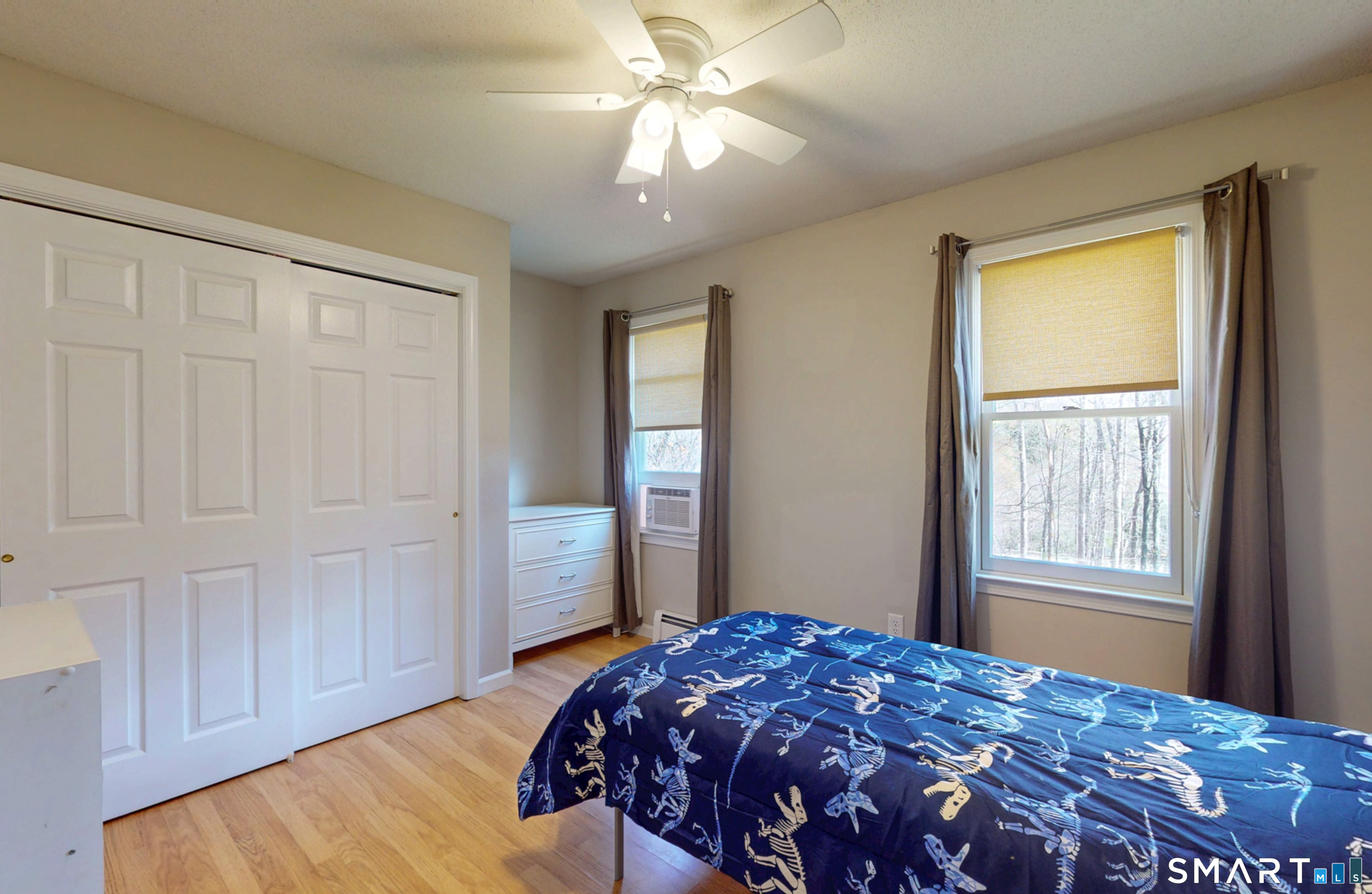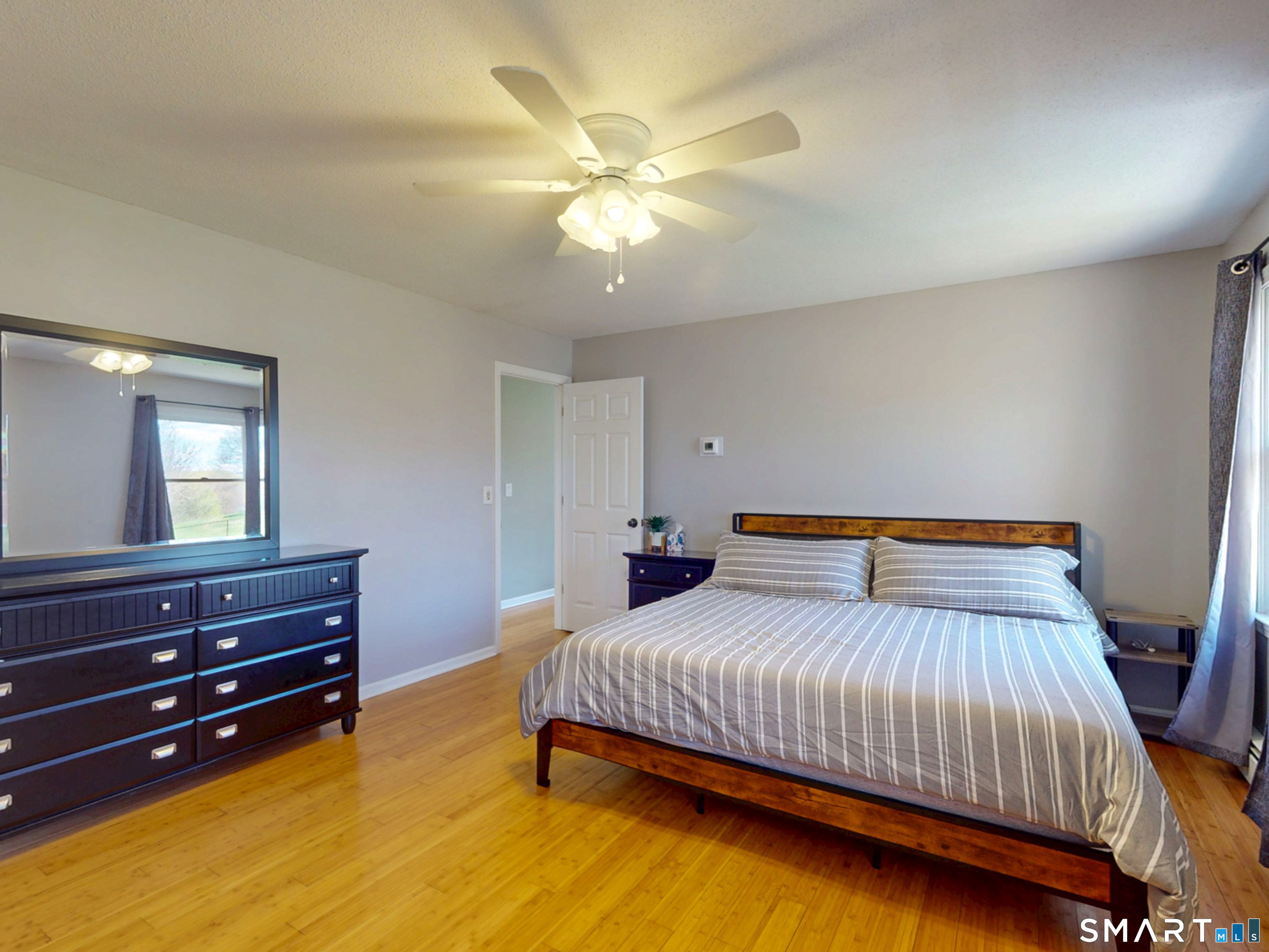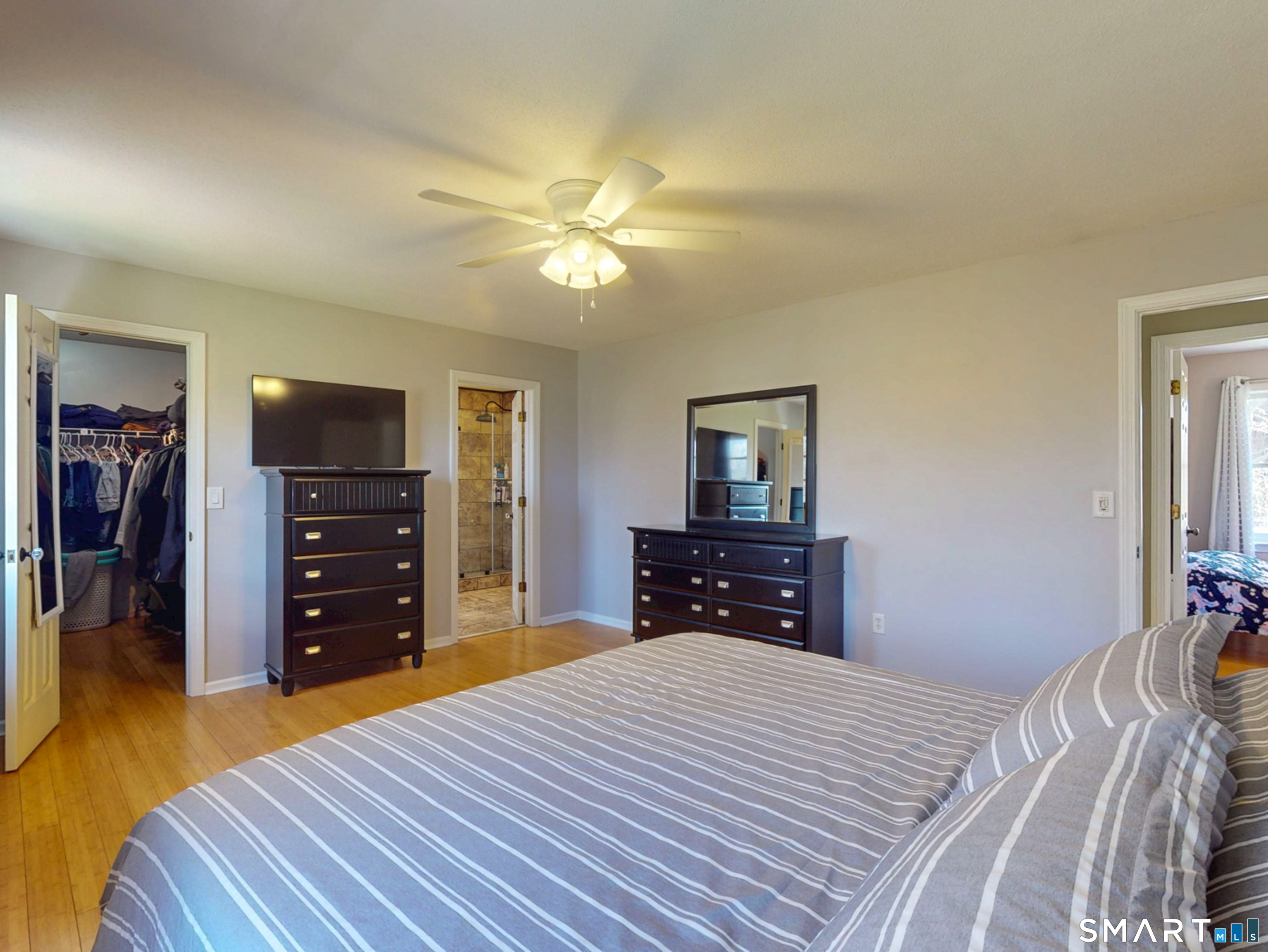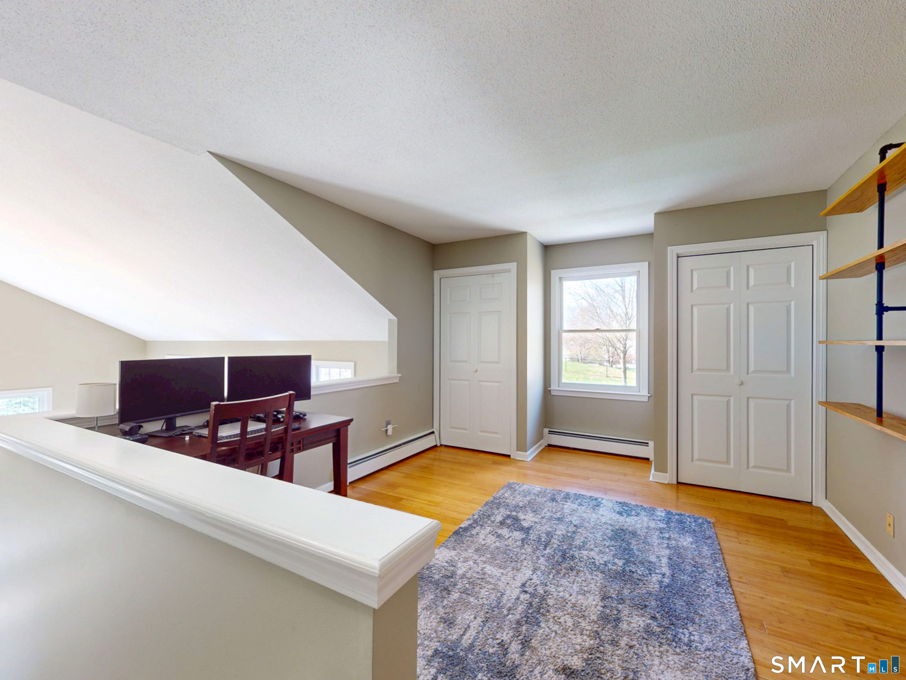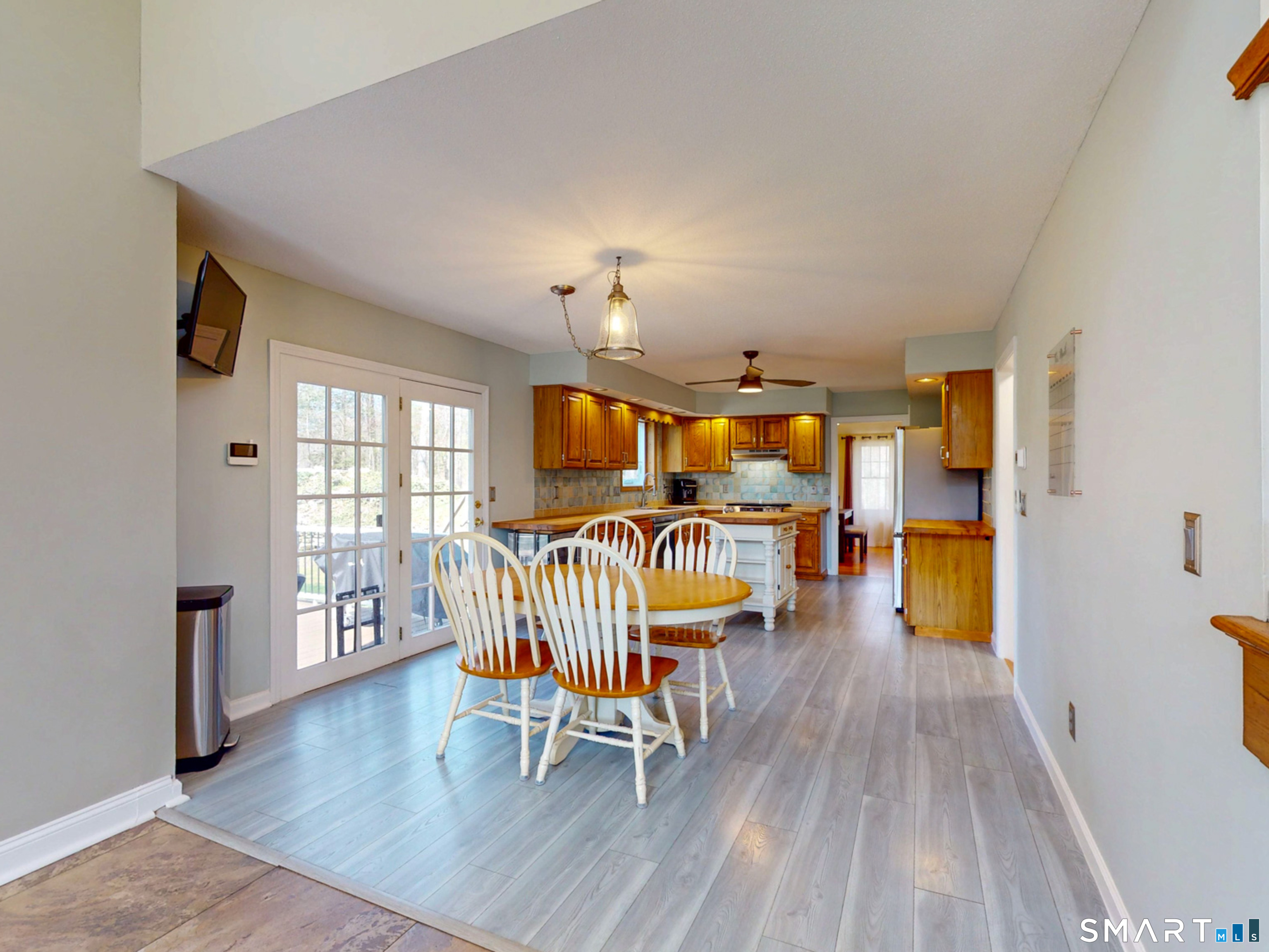 This spacious 3-bedroom, 2.5-bath Colonial offering over 2,600 sq ft of comfortable living is the one you've been waiting for. Set on an elevated lot overlooking the neighborhood entrance, this home combines great layout, everyday functionality and an ideal location. The oversized family room, with vaulted ceilings, radiant heat and tons of light, flows seamlessly into the eat-in kitchen, creating an open, inviting space. French doors lead to a low-maintenance Trex deck and a fenced backyard. Hardwood floors run throughout the formal dining room, living room, second-floor loft, and all bedrooms. Upstairs you'll find 3 generous sized bedrooms and additional flex space with purposes such as a home office, study or den. New garage doors and on demand hot water heater. Newer gas fired Bosch furnace, mudroom entry from the attached 2-car garage, tons of garage and basement storage, a home gym, and a backyard shed. Conveniently located just over the line from South Glastonbury, this home offers easy access to local amenities while maintaining a peaceful neighborhood setting.