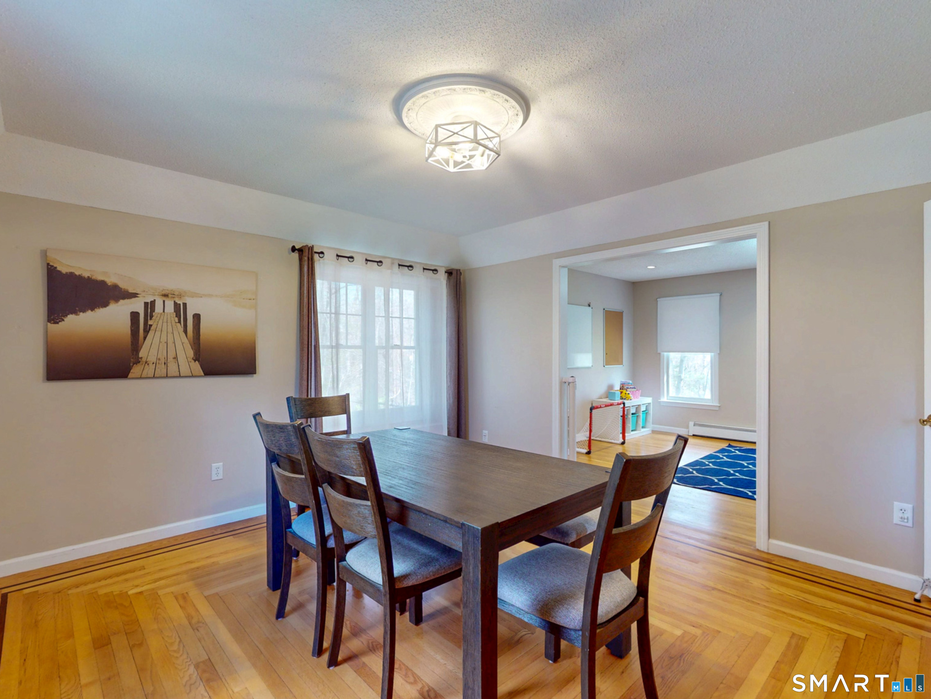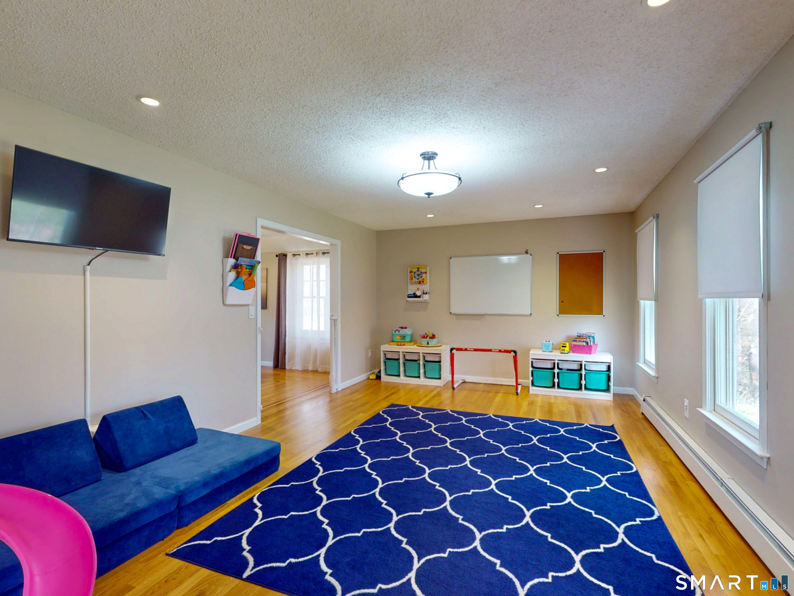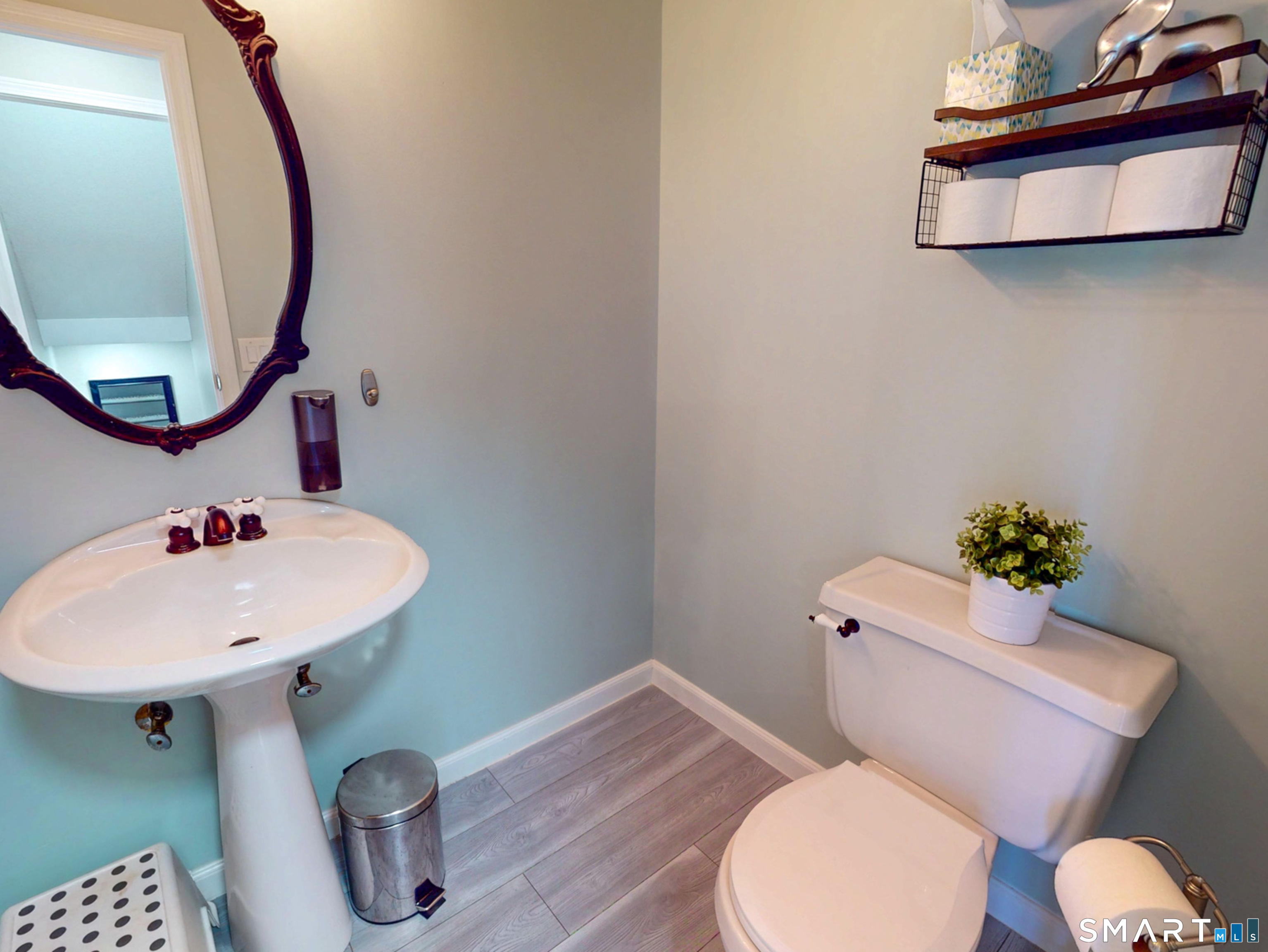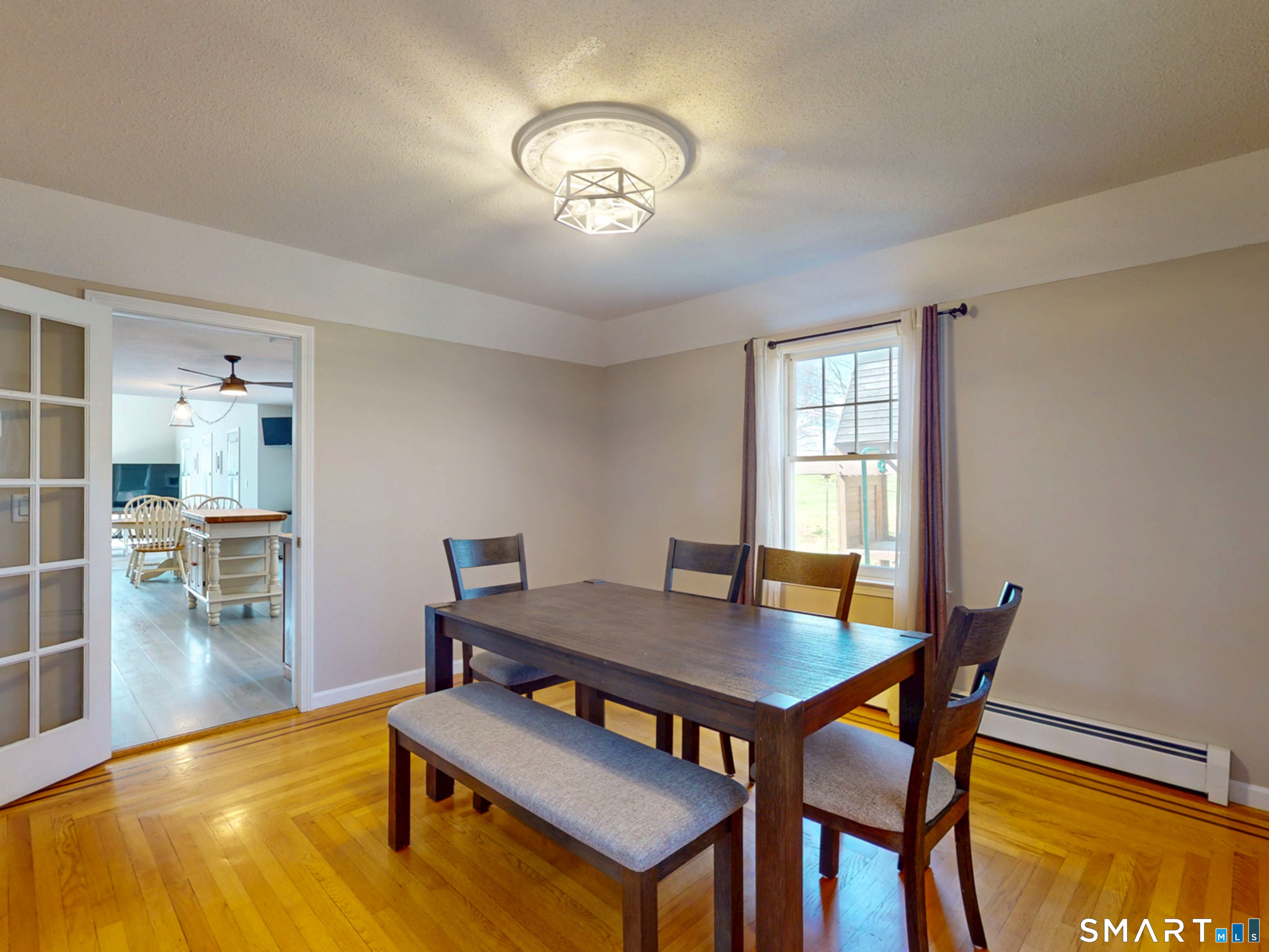 This spacious 3-bedroom, 2.5-bath Colonial offering over 2,600 sq ft of comfortable living is the one you've been waiting for. Set on an elevated lot overlooking the neighborhood entrance, this home combines great layout, everyday functionality and an ideal location. The oversized family room, with vaulted ceilings, radiant heat and tons of light, flows seamlessly into the eat-in kitchen, creating an open, inviting space. French doors lead to a low-maintenance Trex deck and a fenced backyard. Hardwood floors run throughout the formal dining room, living room, second-floor loft, and all bedrooms. Upstairs you'll find 3 generous sized bedrooms and additional flex space with purposes such as a home office, study or den. New garage doors and on demand hot water heater. Newer gas fired Bosch furnace, mudroom entry from the attached 2-car garage, tons of garage and basement storage, a home gym, and a backyard shed. Conveniently located just over the line from South Glastonbury, this home offers easy access to local amenities while maintaining a peaceful neighborhood setting.