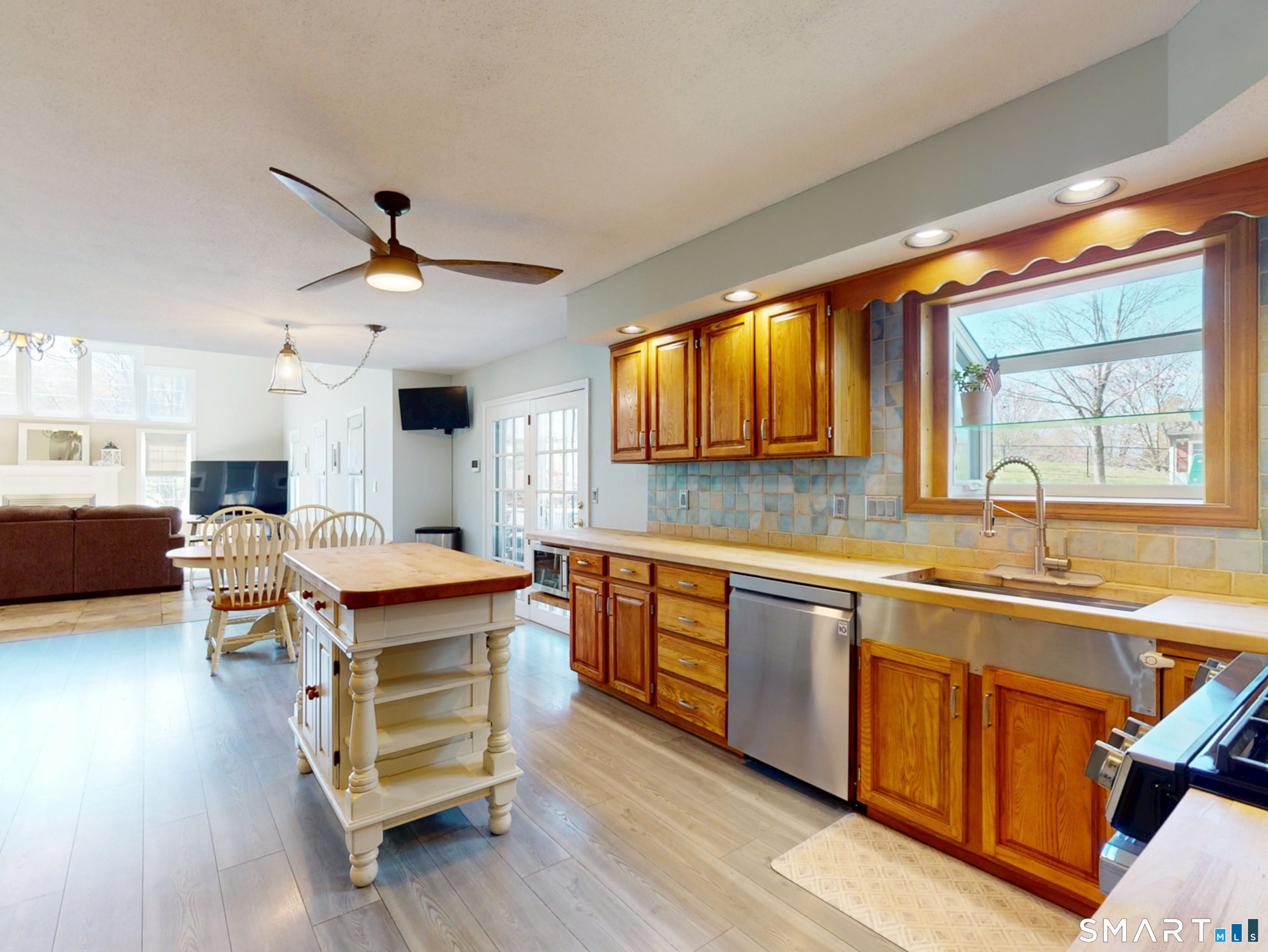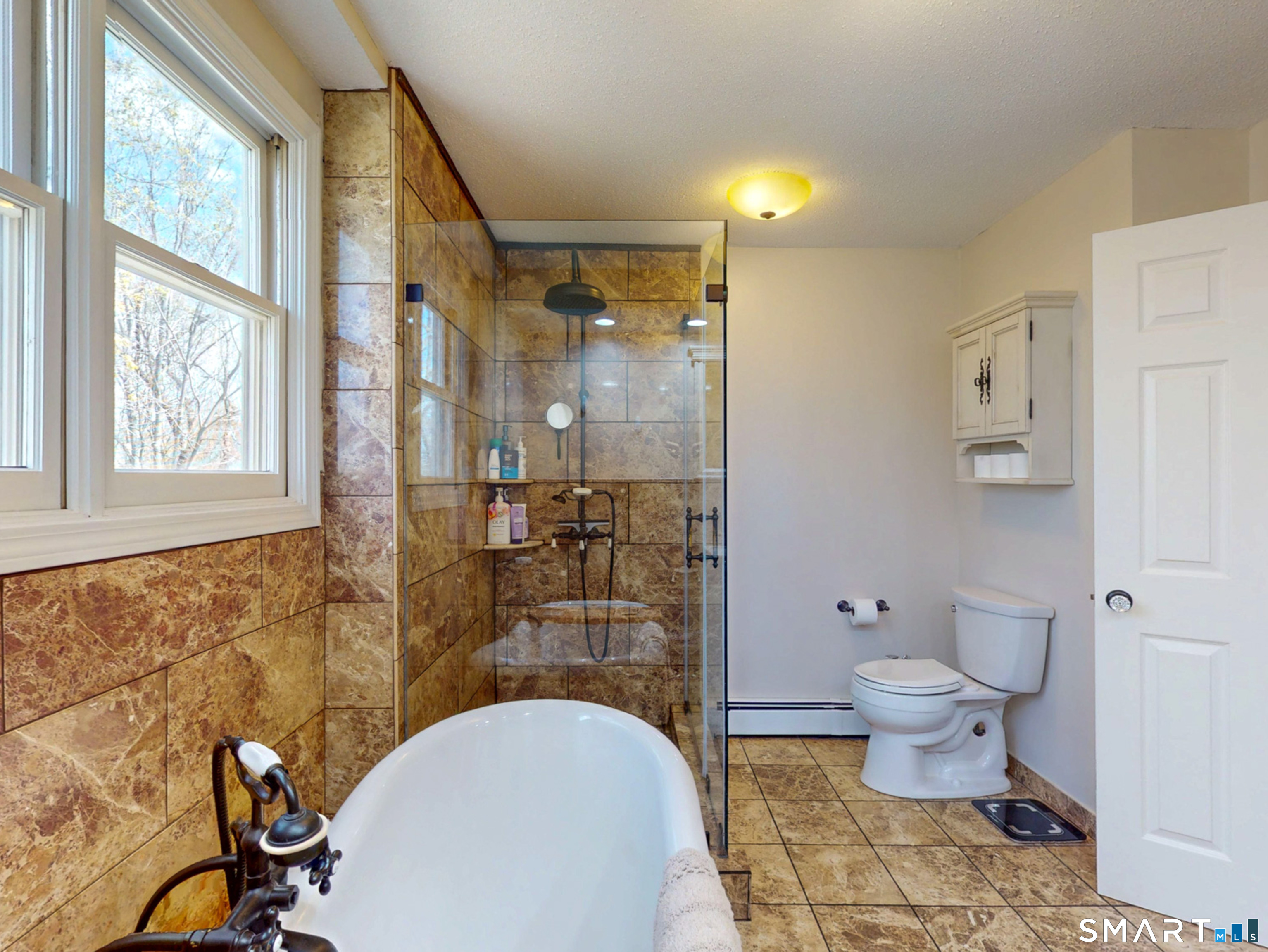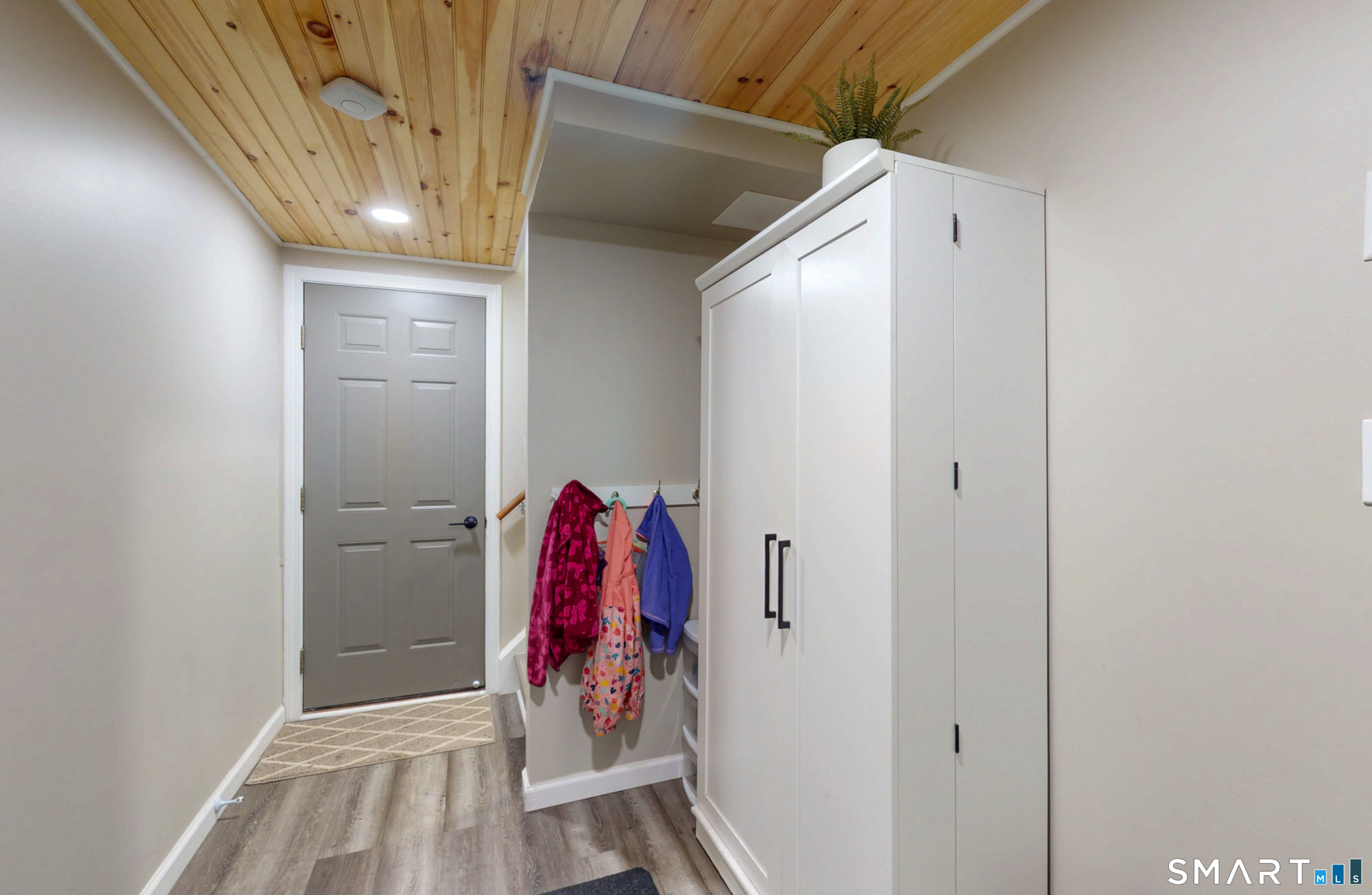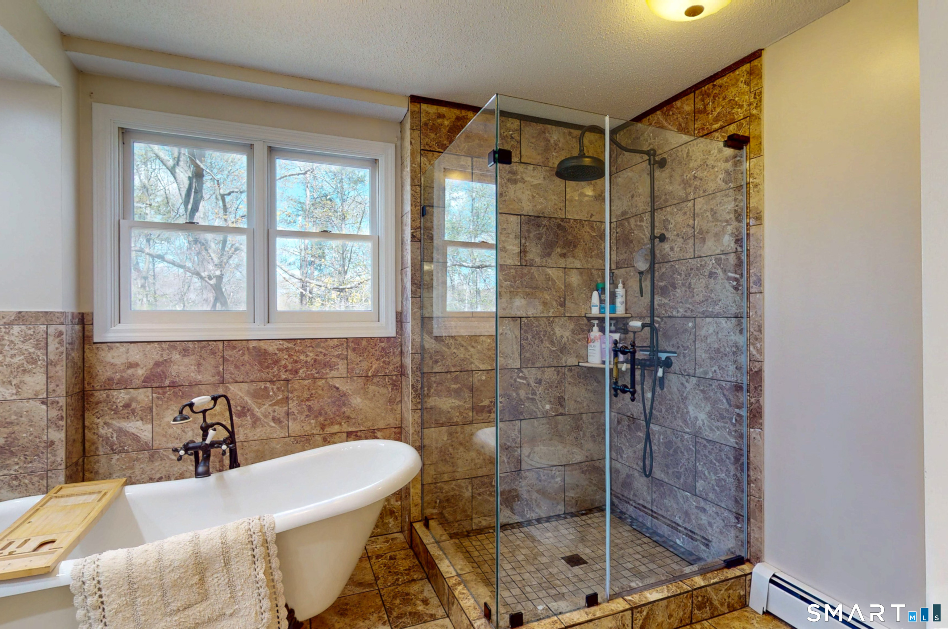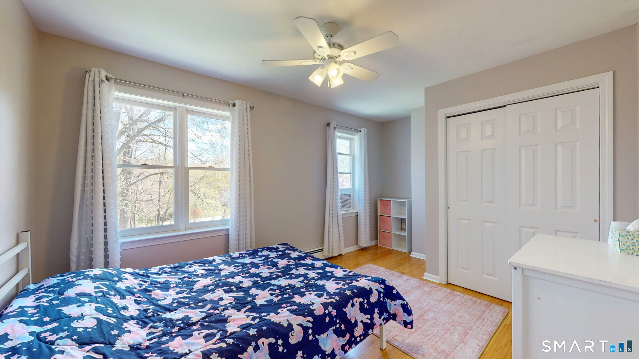 This spacious 3-bedroom, 2.5-bath Colonial offering over 2,600 sq ft of comfortable living is the one you've been waiting for. Set on an elevated lot overlooking the neighborhood entrance, this home combines great layout, everyday functionality and an ideal location. The oversized family room, with vaulted ceilings, radiant heat and tons of light, flows seamlessly into the eat-in kitchen, creating an open, inviting space. French doors lead to a low-maintenance Trex deck and a fenced backyard. Hardwood floors run throughout the formal dining room, living room, second-floor loft, and all bedrooms. Upstairs you'll find 3 generous sized bedrooms and additional flex space with purposes such as a home office, study or den. New garage doors and on demand hot water heater. Newer gas fired Bosch furnace, mudroom entry from the attached 2-car garage, tons of garage and basement storage, a home gym, and a backyard shed. Conveniently located just over the line from South Glastonbury, this home offers easy access to local amenities while maintaining a peaceful neighborhood setting.