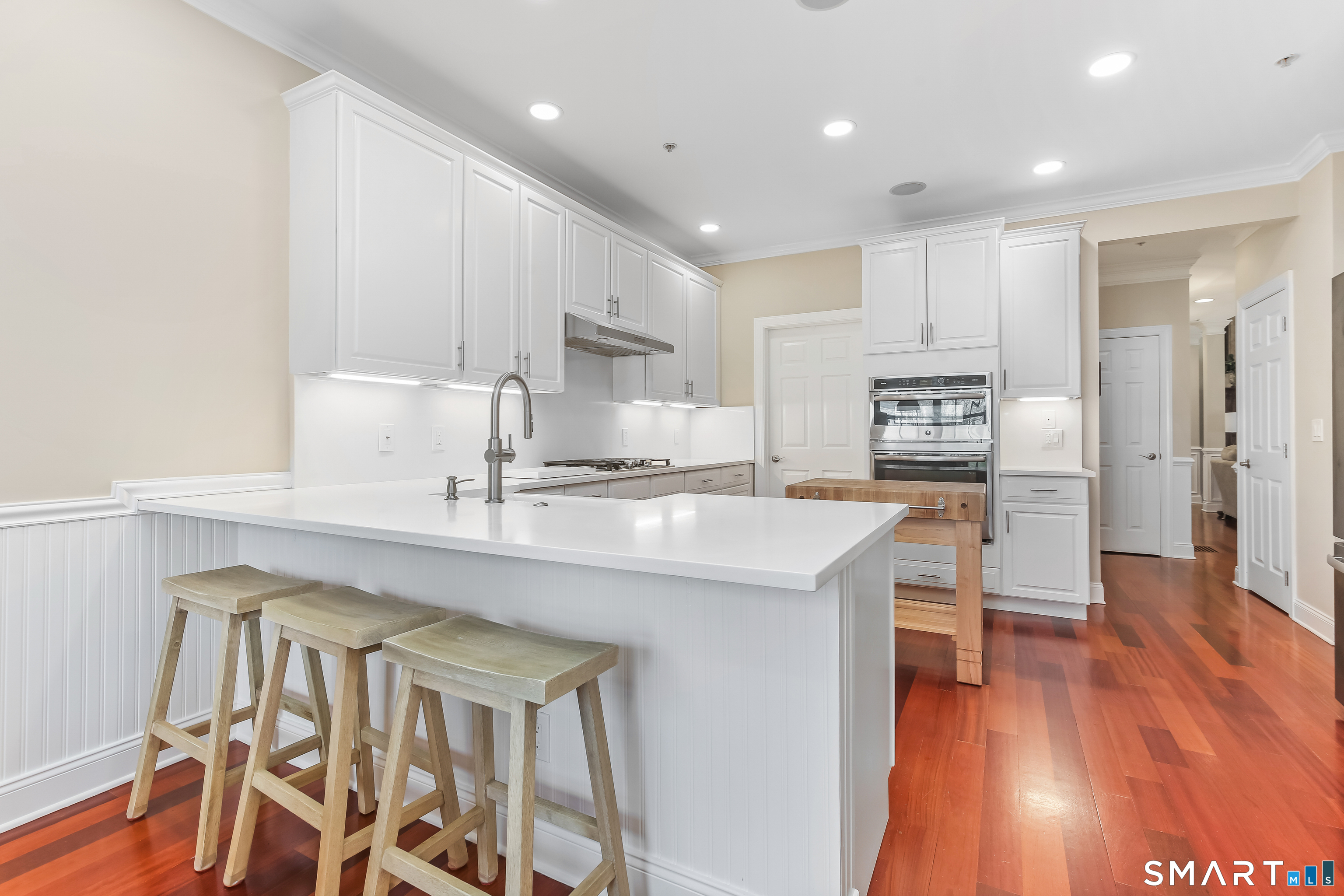 Experience the pinnacle of over-55 living in this meticulously updated "Grand View" end-unit unlike any other. The oversized first floor primary suite features dual custom walk-in closets, with a luxurious remodeled spa-like bath designed with accessibility in mind, including a walk-in shower w/ bench seating. What sets this unit apart from the others is the expansive finished basement, w/ an additional half bath. The chef-inspired kitchen remodeled in 2021 is an entertainer's dream. The garage outfitted with custom cabinetry, which enters directly into the kitchen makes it a breeze to unload any groceries. Built in speakers, crown molding, hardwood floors throughout the first floor, a wet-bar and newer mechanicals, this home is the definition of turnkey. Every detail has been curated for an effortless, and sophisticated lifestyle.