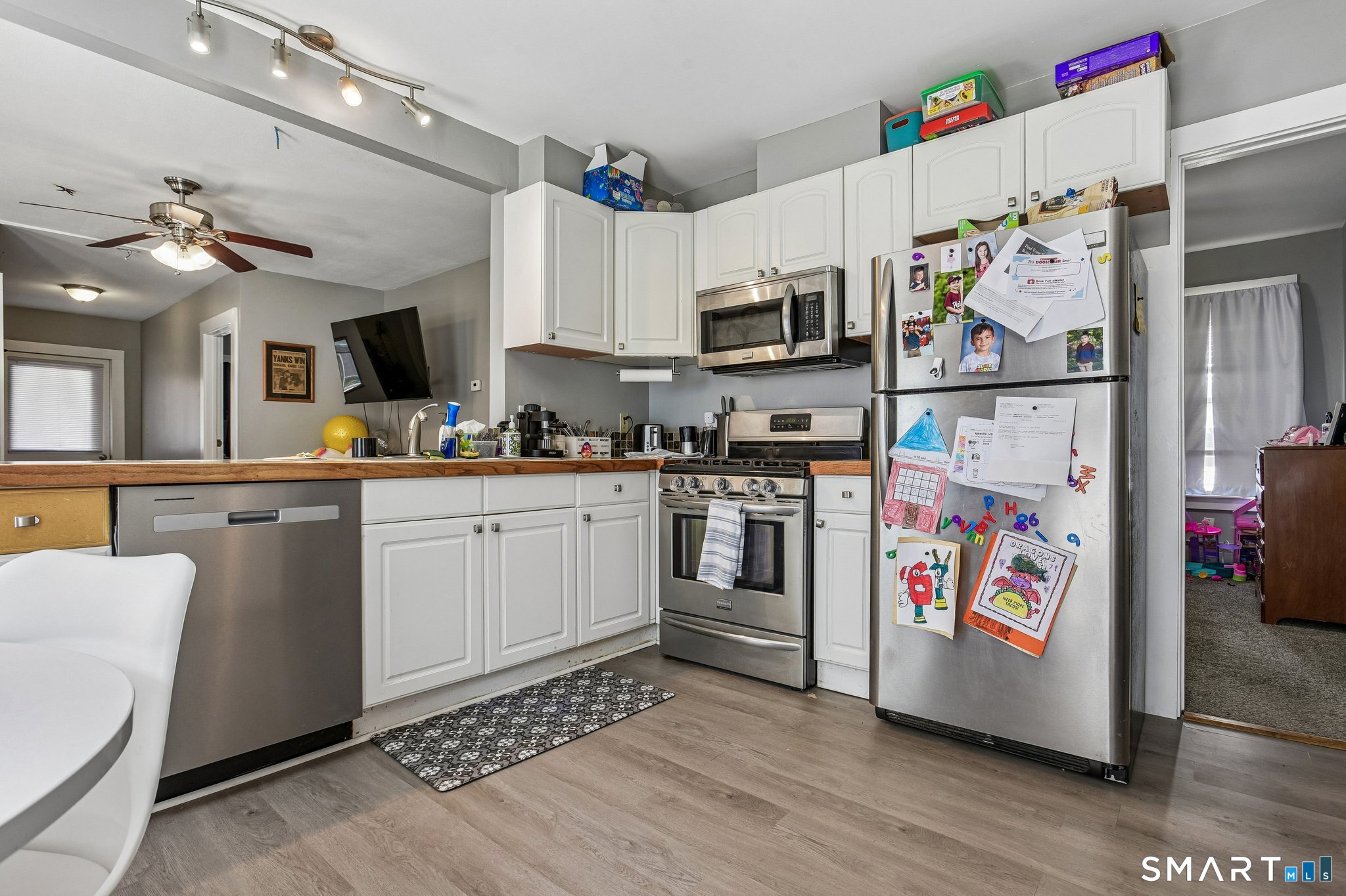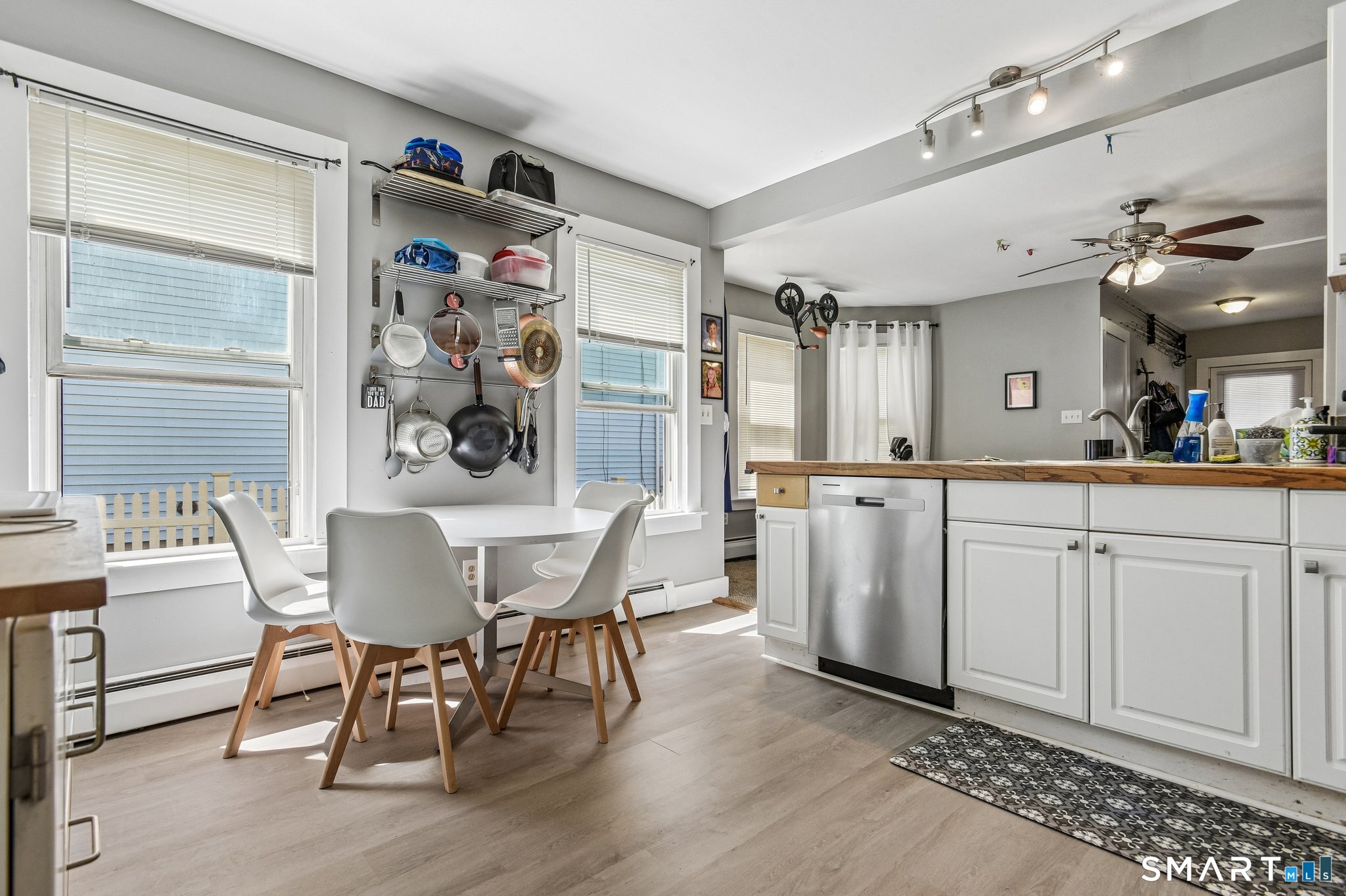 Spacious first-floor rental offering a bright and inviting open floor plan filled with natural light from large windows throughout. This well-maintained unit features 3 generously sized bedrooms with plenty of space for comfortable living, along with an eat-in kitchen complete with a gas stove and room for dining. Enjoy the convenience of an in-unit washer and dryer, efficient gas heat, and a layout designed for everyday ease. Relax on the large front porch, perfect for enjoying your morning coffee or unwinding at the end of the day. Off-street parking is included, with plenty of additional street parking available for guests. Ideally situated within walking distance to downtown Wallingford's restaurants, coffee shops, library, shops, and more. This home offers the perfect blend of comfort, convenience, and vibrant downtown living. All interested parties must apply through rentspree.