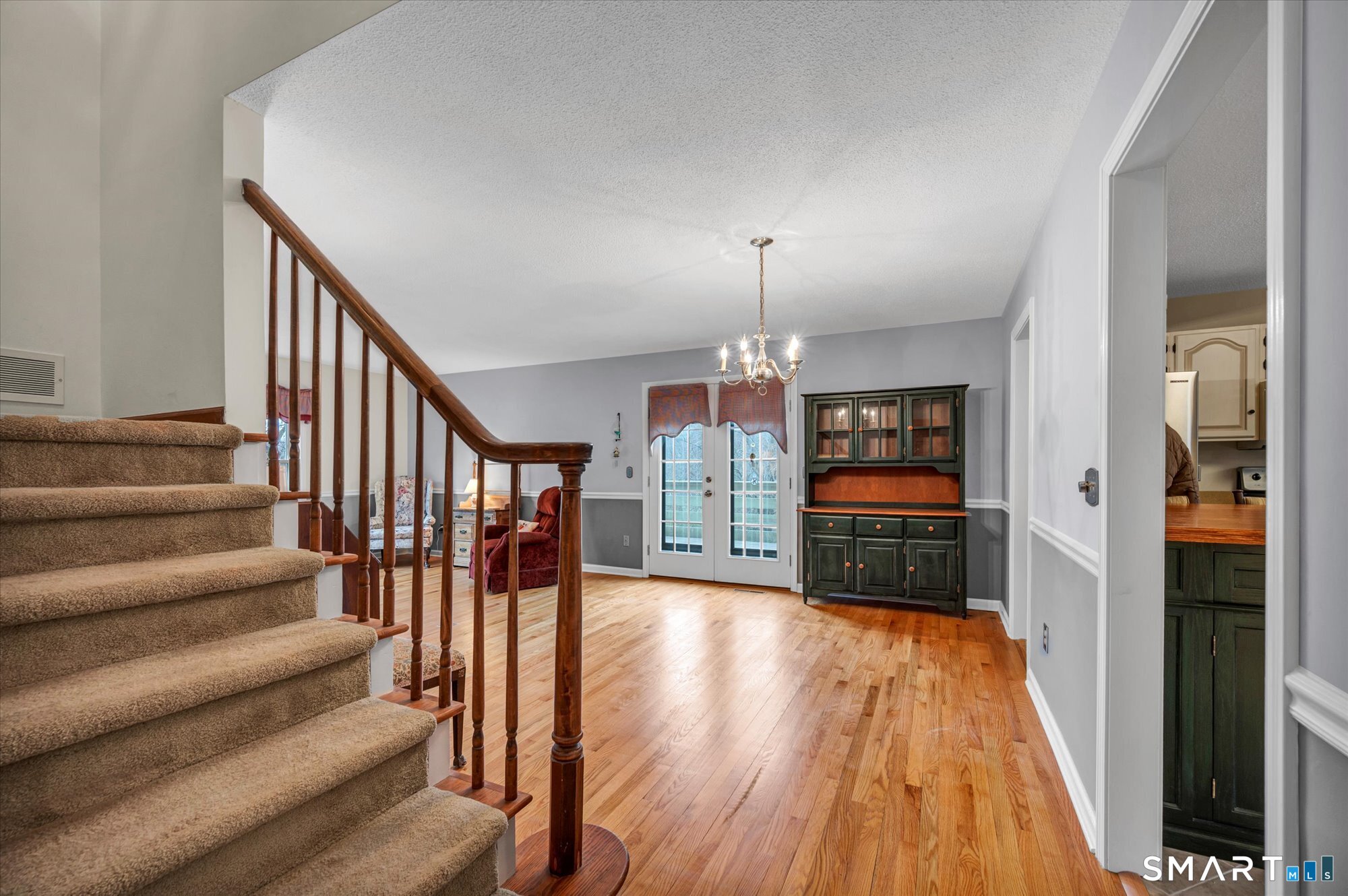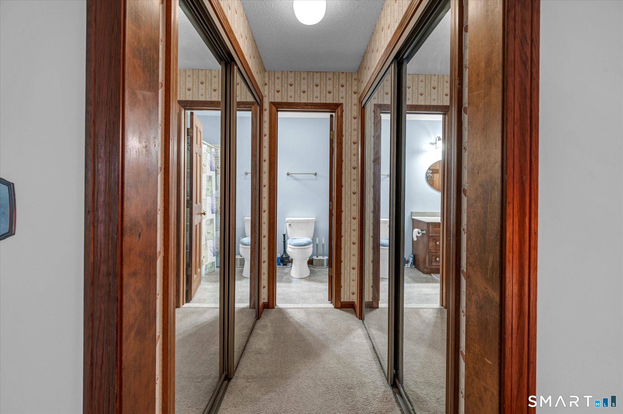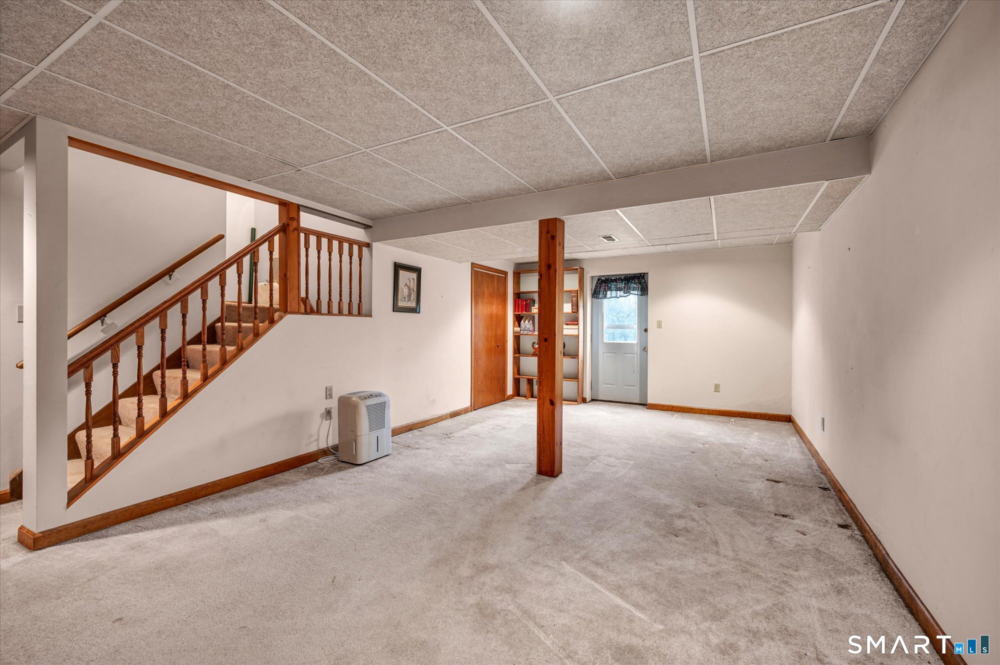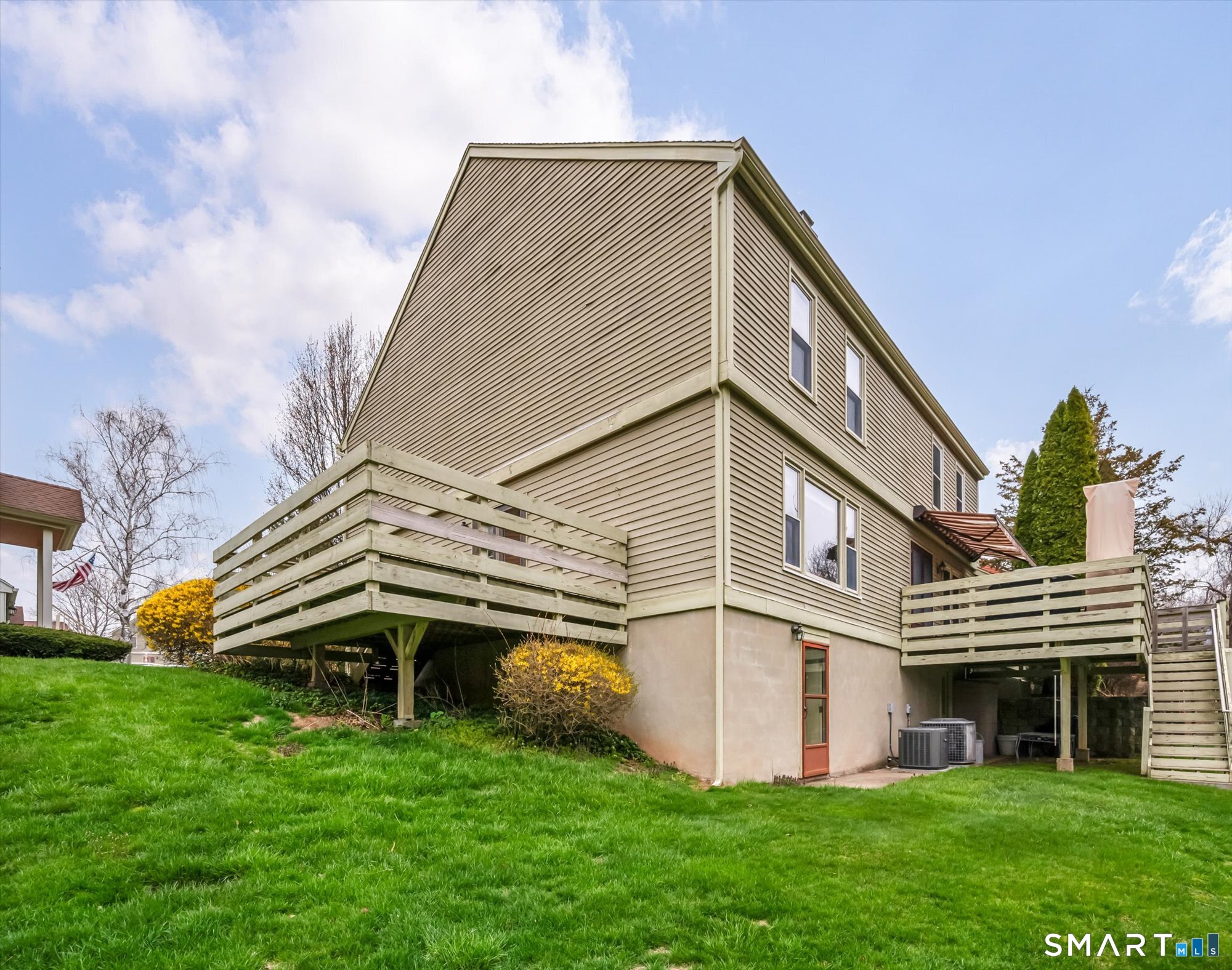 Welcome to this beautifully maintained classic Colonial-style condo, ideally situated in a highly sought-after complex on a quiet cul-de-sac. This inviting home offers the perfect blend of comfort, style, and privacy. Step inside to find gleaming hardwood floors and a spacious, light-filled layout. The updated kitchen features modern finishes and ample cabinetry, making it perfect for both everyday living and entertaining. The cozy fireplace adds warmth and charm to the main living area. Upstairs, you'll find two generously sized bedrooms and a full bath, along with a convenient half bath on the main level. The finished lower level offers additional living space with a walk-out, ideal for a family room, home office, or guest area. Enjoy peaceful mornings or relaxing evenings on the large private deck, accessible through sliding doors and overlooking serene wooded views. Additional highlights include a two-car tandem garage, abundant storage, and a desirable location within the community. A wonderful opportunity to enjoy low-maintenance living in a tranquil setting-don't miss it!