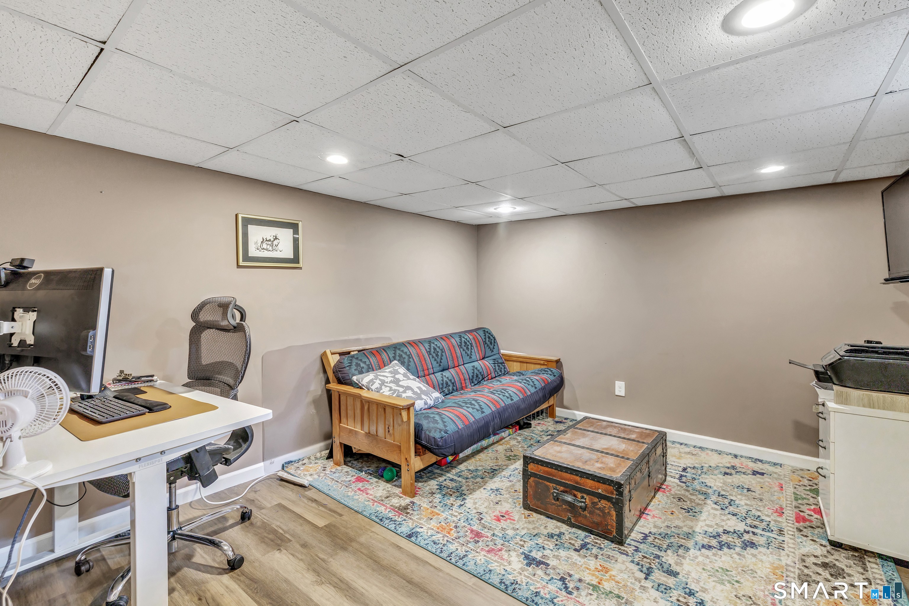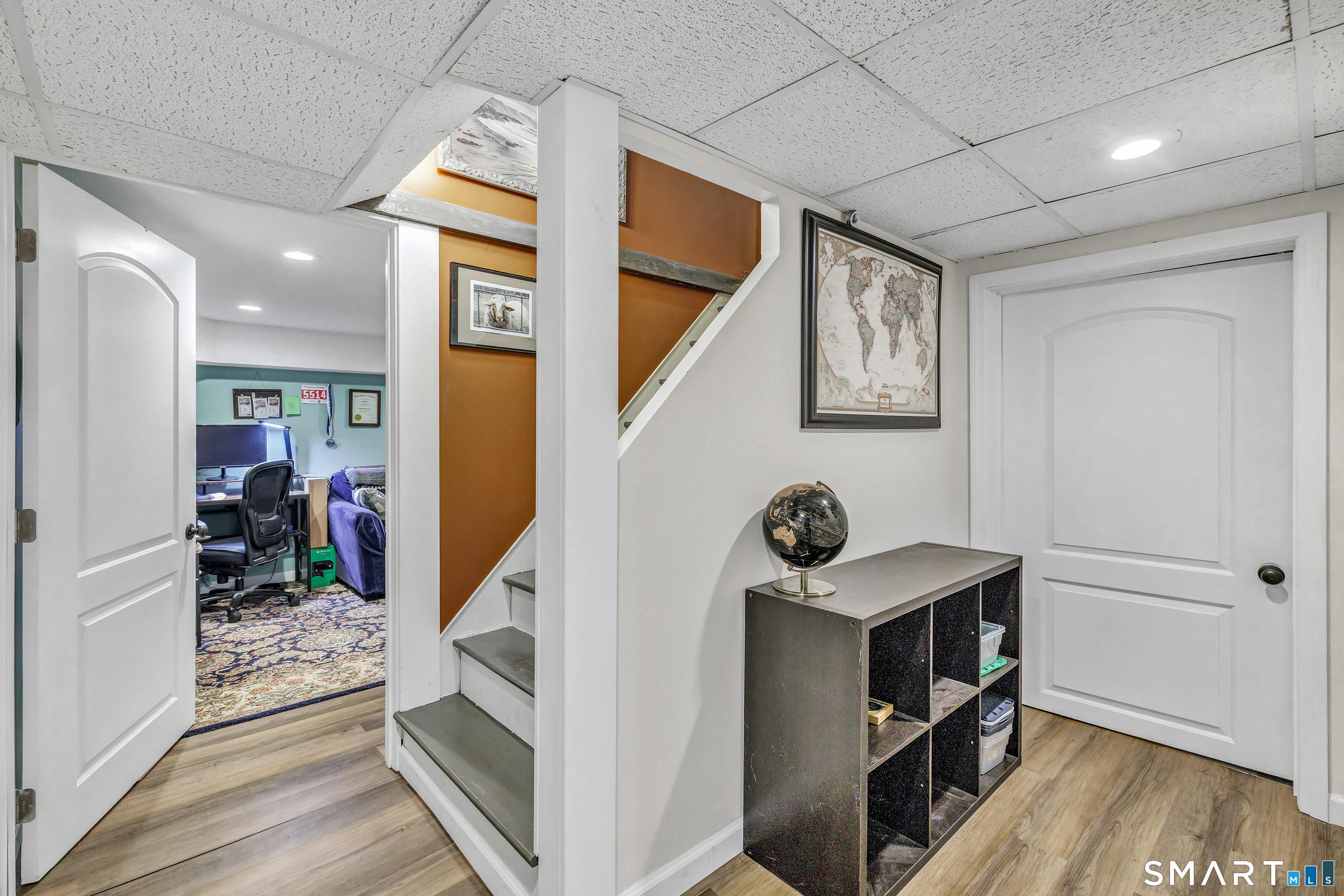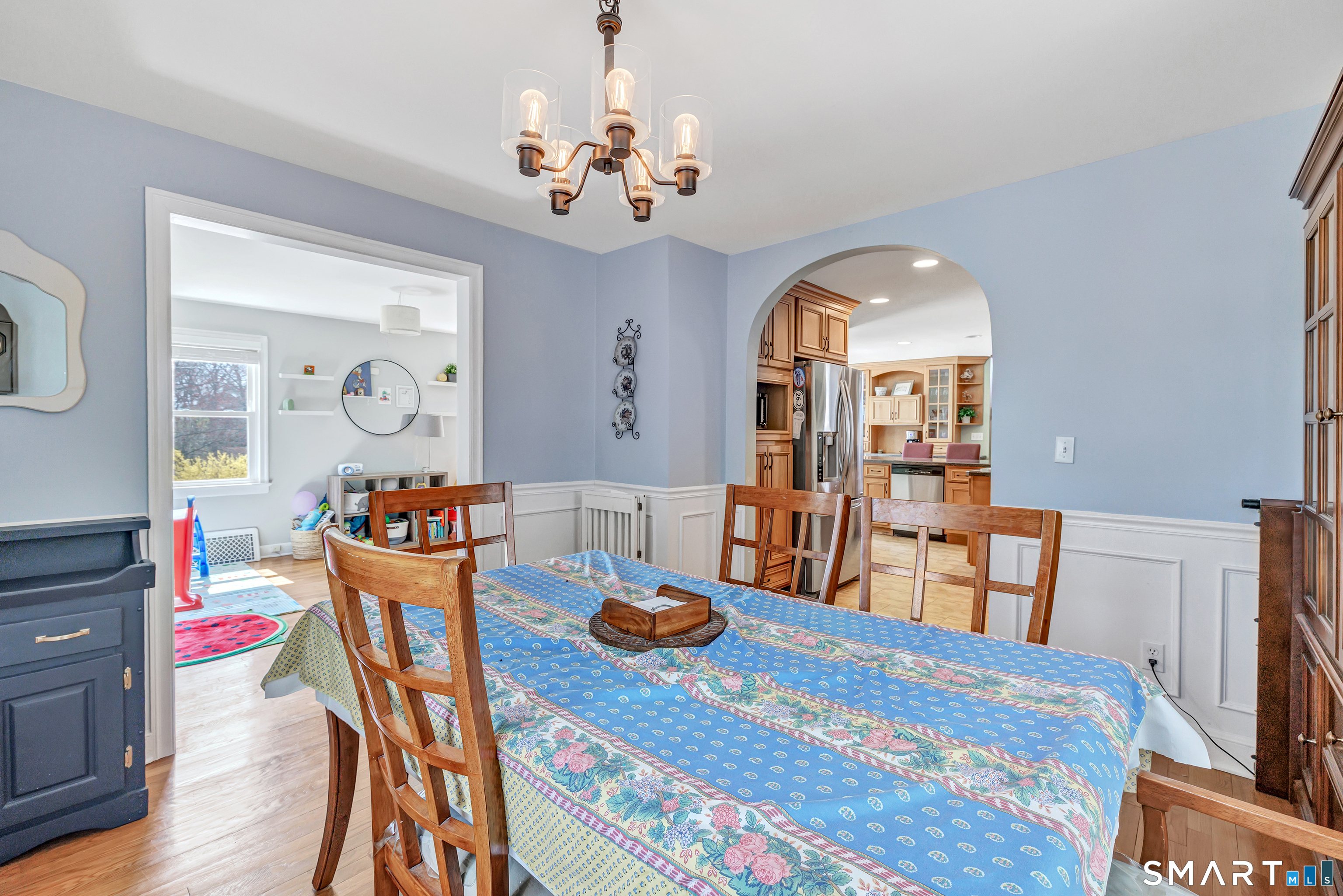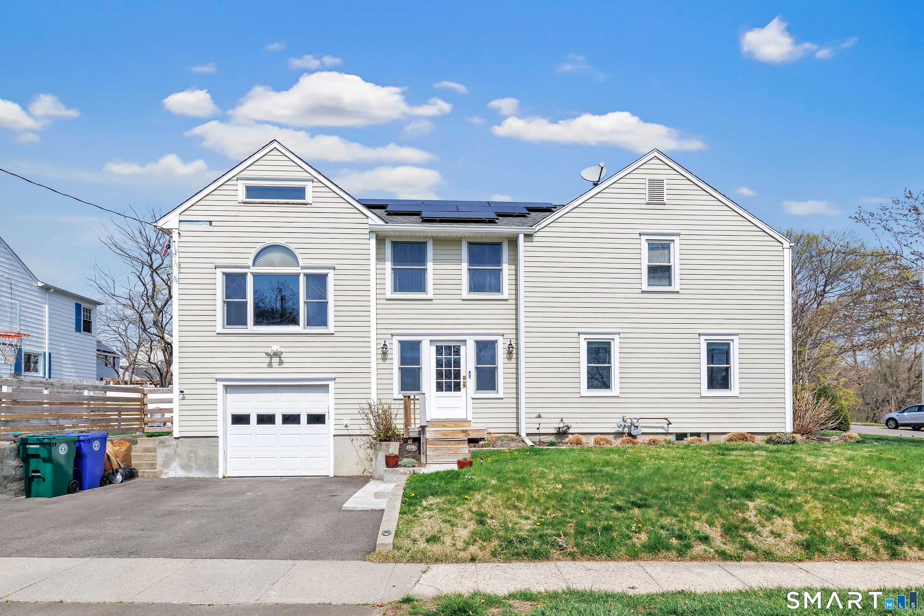 Welcome to this stunning 3-bedroom Colonial in the heart of Paradise Green, perfectly situated across from the park and Pender's Field. This beautifully maintained home blends classic charm with modern updates. The spacious eat-in kitchen serves as the centerpiece of the home, featuring a large island with seating and custom cabinetry- ideal for both everyday living and entertaining. Sunlight fills the bright living room and formal dining room. A standout feature is the expansive family room above the garage, boasting soaring 9+ foot ceilings-perfect for gatherings, a media room, or a play space. A convenient half bath completes the main level. Upstairs, the primary suite offers a peaceful retreat with an updated full bathroom and a walk-in closet. Two additional generously sized bedrooms and a shared full bath provide ample space for family or guests. The finished lower level adds even more versatility, with a den, home office, laundry area, and plenty of storage. Additional highlights include an attached garage, newer furnace (2026), 2 zone central AC and energy-saving solar panels. Enjoy the unbeatable location-just a short stroll to parks, a pond, sports fields, and local dining.