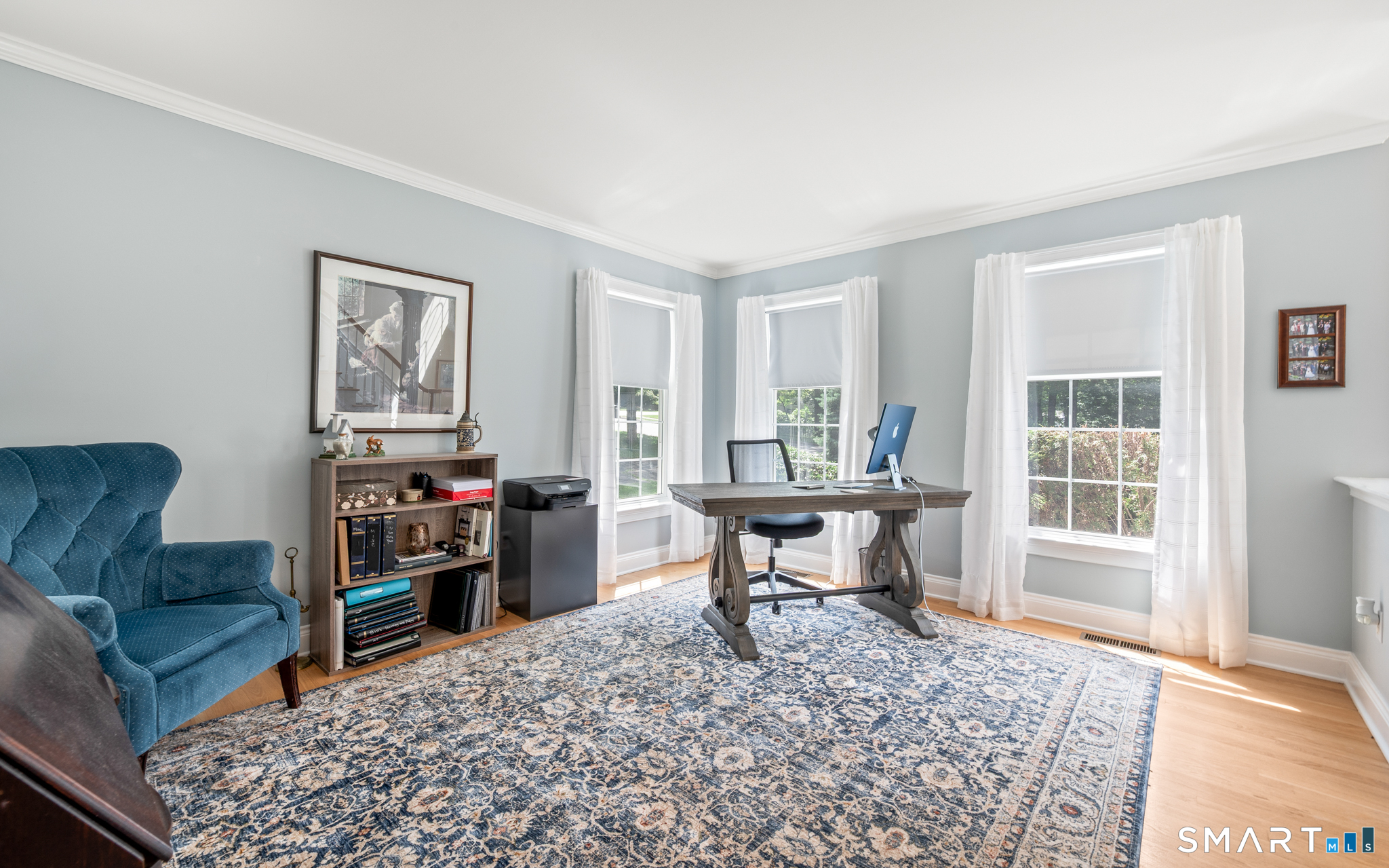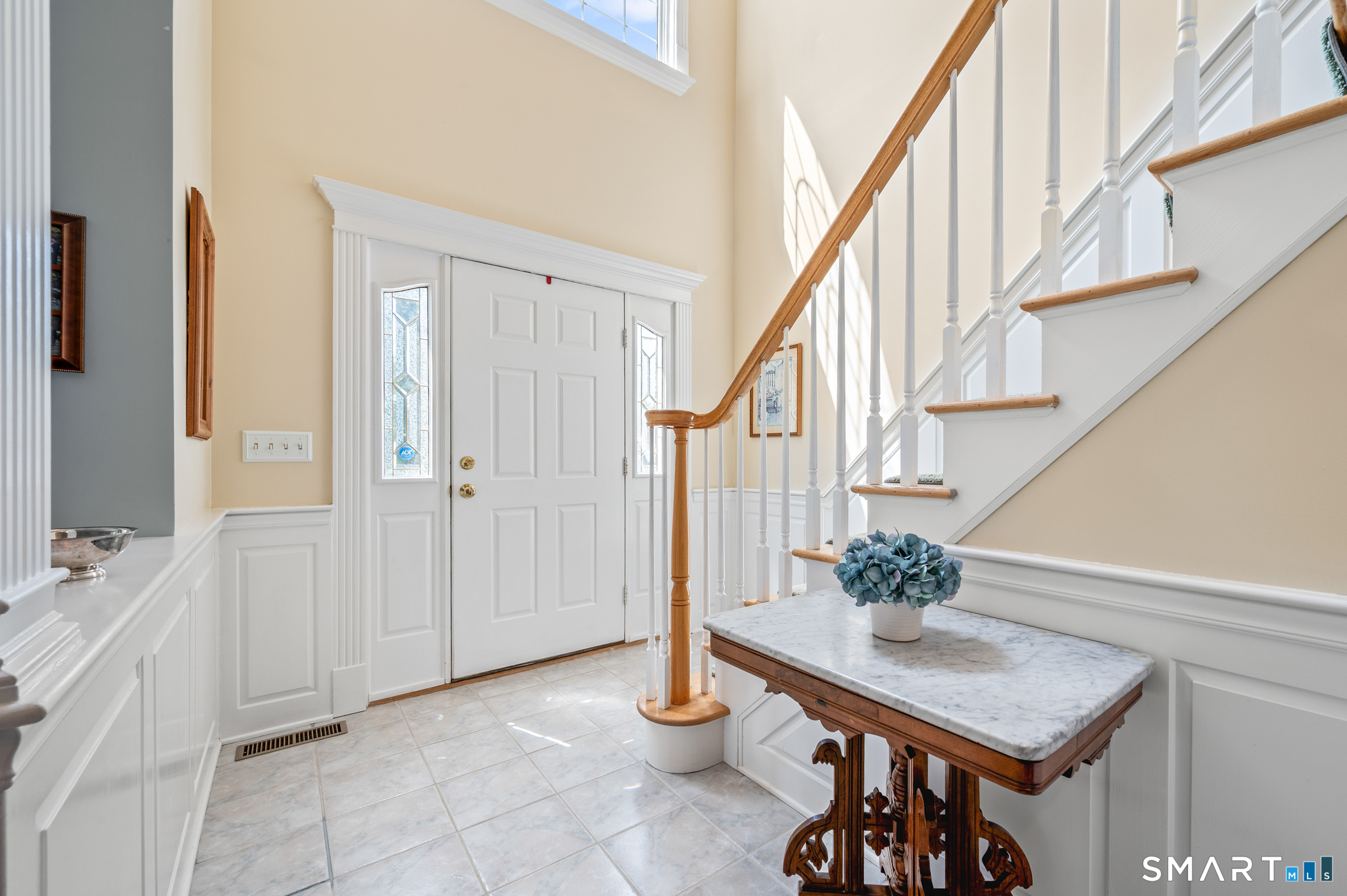 Welcome to this beautifully maintained Colonial, where pride of ownership shines throughout. Step into the stunning two-story foyer, featuring an oversized radius window and elegant chandelier that fill the space with natural light. The tiled entry is flanked by pillars, opening to a flexible first-floor office or formal living room-tailor it to your needs. Down the hall, you'll find a convenient half bath and a warm, inviting family room with a gas fireplace and a wall of windows overlooking the private backyard. The spacious eat-in kitchen flows seamlessly into a bright three-season porch, which opens to a ground-level Trex deck-perfect for relaxing or entertaining. A formal dining room sits just off the kitchen. Upstairs, the primary suite offers a tray ceiling, dual walk-in closets, and a luxurious bath with a vaulted ceiling, skylight, and Jacuzzi tub. Two additional generously sized bedrooms, a full bath, and second-floor laundry complete this level. Recent updates include: roof (2017), garage doors (2018), drainage system and sump pump with battery backup (2024), new first-floor A/C (2025), and upgraded Toto toilets throughout. Additional highlights include crown molding, six-panel doors, upgraded trim and baseboards, raised panel wainscoting, central vacuum, and more. A must-see to truly appreciate the craftsmanship and attention to detail! Please be advised that a deadline for FINAL and BEST offers to be submitted has been set for Sun, 4/26/26 by 5PM