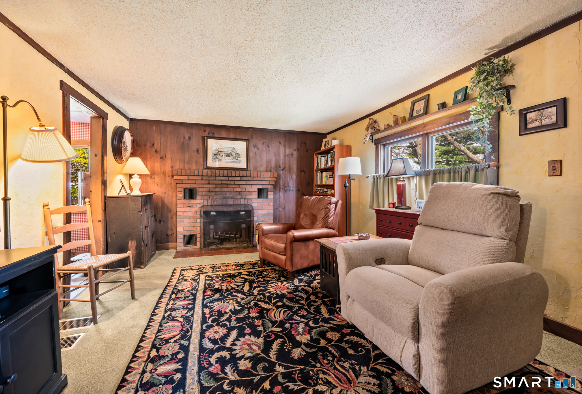 Affordability without sacrificing condition, comfort, or location! Clean, meticulously cared for, and located on the corner of a quiet residential street in Enfield near the Massachusetts line, this 2-bed, 1-bath, move-in-ready, well-maintained, 880-square-foot ranch home proves you don't need huge square footage to live comfortably! Kitchen has a warm, functional layout with solid wood cabinets, plenty of storage, big window, large pullout chopping board, and new refrigerator. Lots of natural custom pinewood details, newer Corinthian bathroom counter, and a spacious primary bedroom with plenty of room for a king-sized bed and a lot more (primary bedroom was once two adjacent bedrooms). Second bedroom with closet is currently in use as a craft room. Living room with a cozy fireplace for those chilly nights! Full basement with workshop. Mechanicals regularly serviced. Garden shed for storage and newer vinyl fencing (power washed April 2026) for privacy. Quiet neighborhood right on the Mass. line, minutes to I-91 and Rt 5 for quick access to Hartford, Springfield, and Bradley International Airport. Shop at Enfield Square area, Freshwater Commons, and Stateline Plaza, easy access to grocery stores, Target, Home Depot, and restaurant favorites like J. Timothy's Taverne and Wood-n-Tap. Scantic River State Park, Brainard Park, and the Windsor Locks Canal Trail are all close for walking, kayaking, and biking. Perfect move-in-ready starter home, or for those looking to downsize!