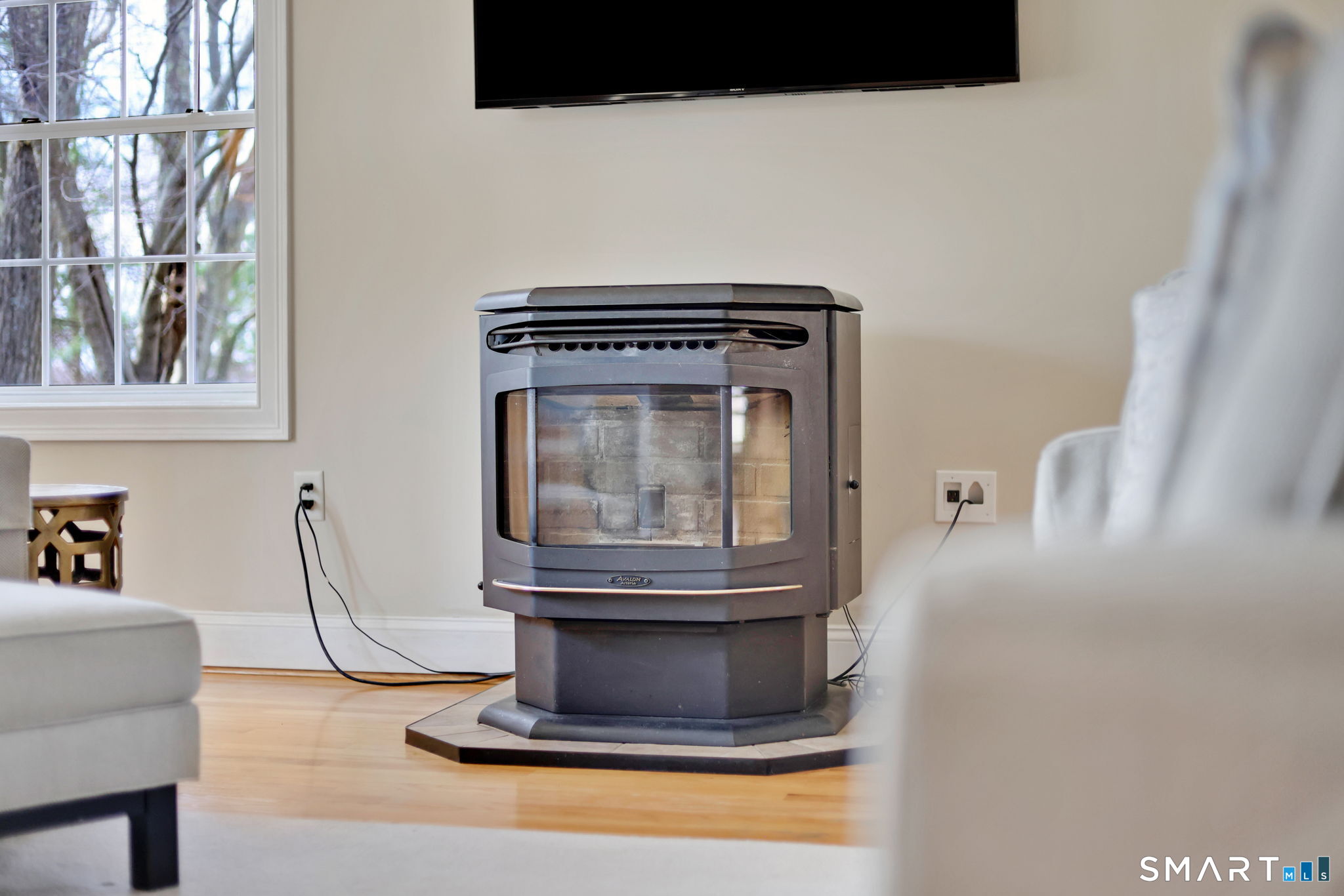 Spectacular home featuring a 1st floor primary bedroom, open-concept layout, and breathtaking views of Crystal Lake as you exit this sought-after neighborhood. Step inside to find gleaming hardwood floors throughout the main level. Living and dining areas seamlessly flow together creating an inviting and airy space perfect for entertaining. The kitchen is beautifully appointed with granite countertops, a crisp tile backsplash, newer appliances, and access to the deck that is ideal for enjoying nature. The 1st floor primary suite offers a full bathroom and walk-in closet. An additional main-level bedroom provides flexibility as a guest room, home office, or den, with access to a second full bathroom. The laundry located on the main level makes this home truly one-level living! Upstairs features 2 oversized bedrooms with fresh paint and new carpeting, along with a full bathroom. Each bedroom showcases unique charm with features such as built-in benches, walk-in closet, bookshelves, and a cozy office nook. The unfinished basement provides abundant storage and opportunity for future expansion. Upgrades include a brand-new roof with gutter guards, new front window, generator hookup, and a heated garage. Equipped with 2 zone central air for summer cooling and pellet stove for winter heating! Set slightly back, the property offers privacy and a perfectly sized yard. Surrounded by rolling hills and sparkling lake views, this neighborhood is ideal for walking!